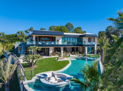 This brand new Backen-inspired contemporary farmhouse estate is a stunning, private, green retreat set on an exclusive, park-like acre in Pacific Palisades, only minutes to the beach. Behind reclaimed oak gates, a well-manicured driveway leads ...