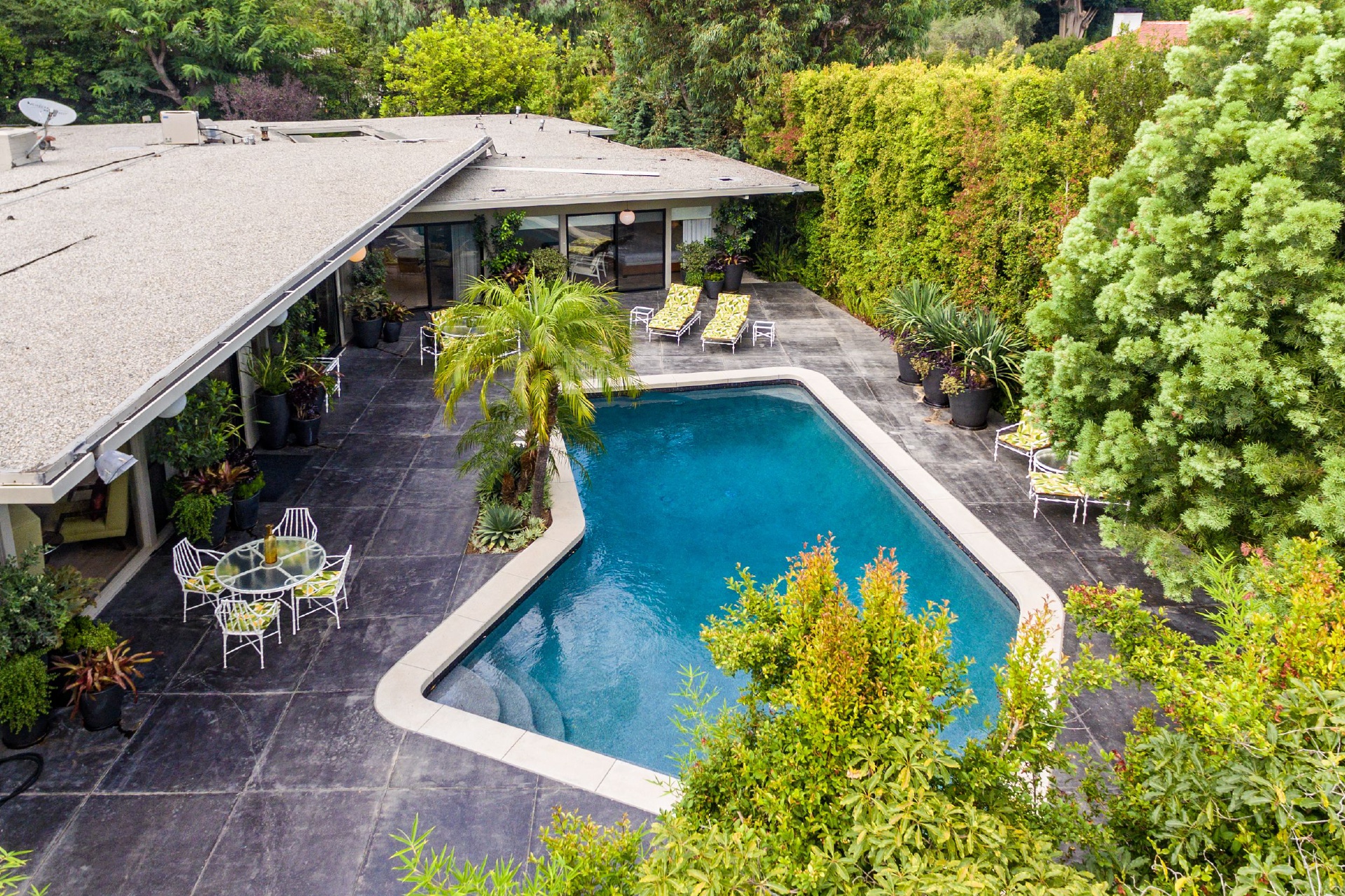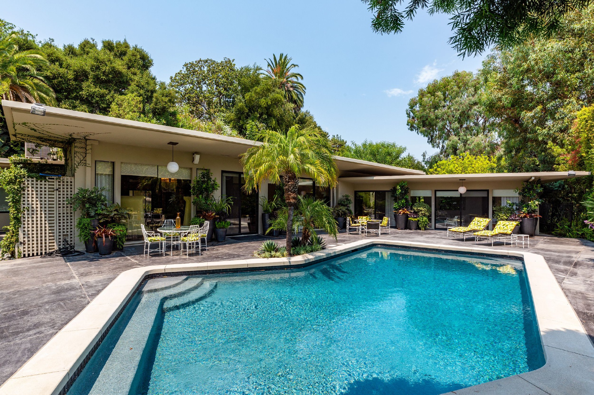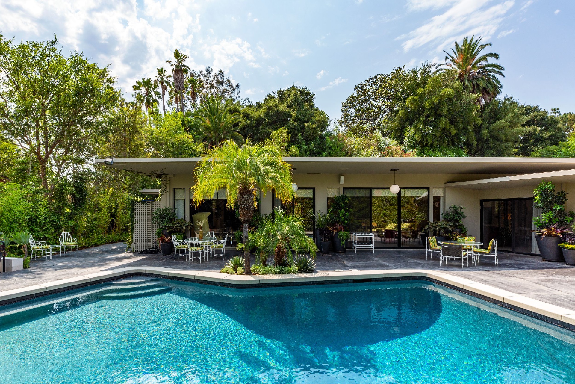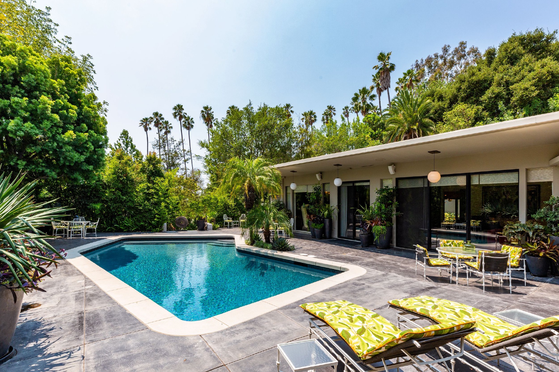 Steps from the Beverly Hills hotel and set behind private gates, this sophisticated mid-century contemporary estate offers poolside and treetop views from every room. Enter to a stunning formal entry and stylish living room that connect to a vibrant & luxurious family room with bar. Ideal for entertaining with an open floor plan that blends seamlessly into your own lush oasis with high hedges, pool and massive outdoor deck. Spacious master suite with luxurious bathroom, large walk-in closet and separate office. Features a gourmet kitchen, dining room, additional maid’s room & bathroom, incredible built-ins and easy parking with garage & motor court.