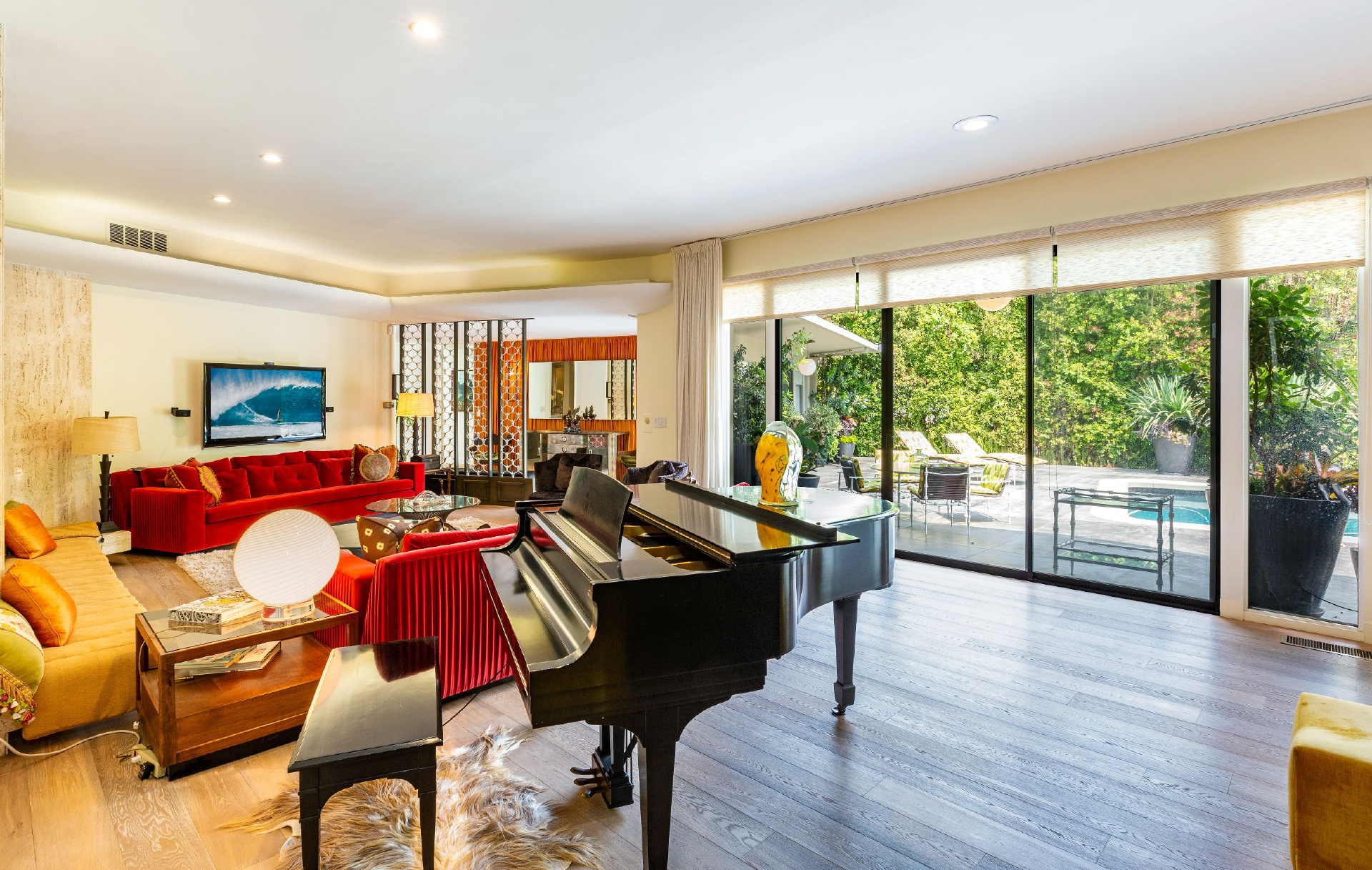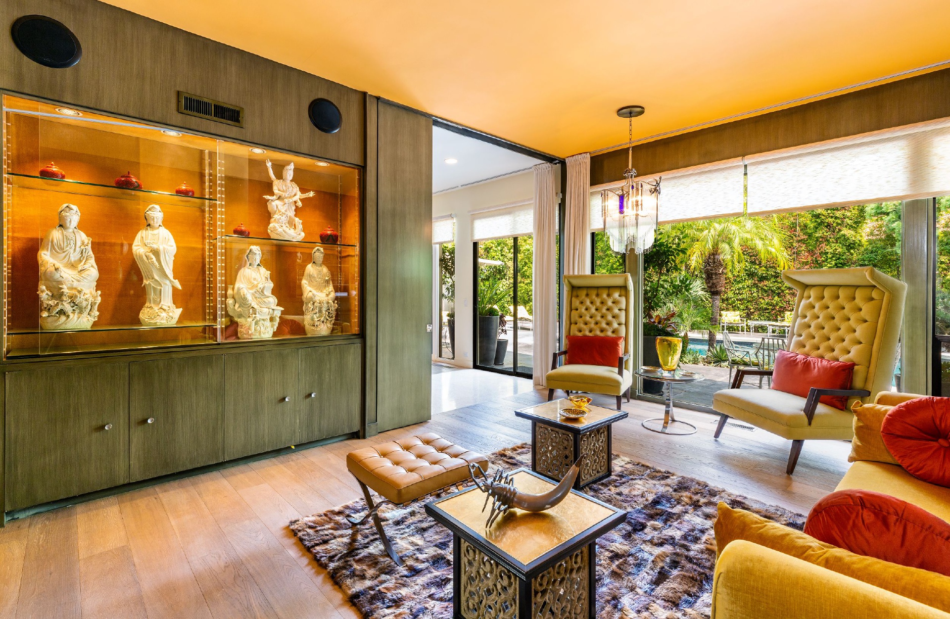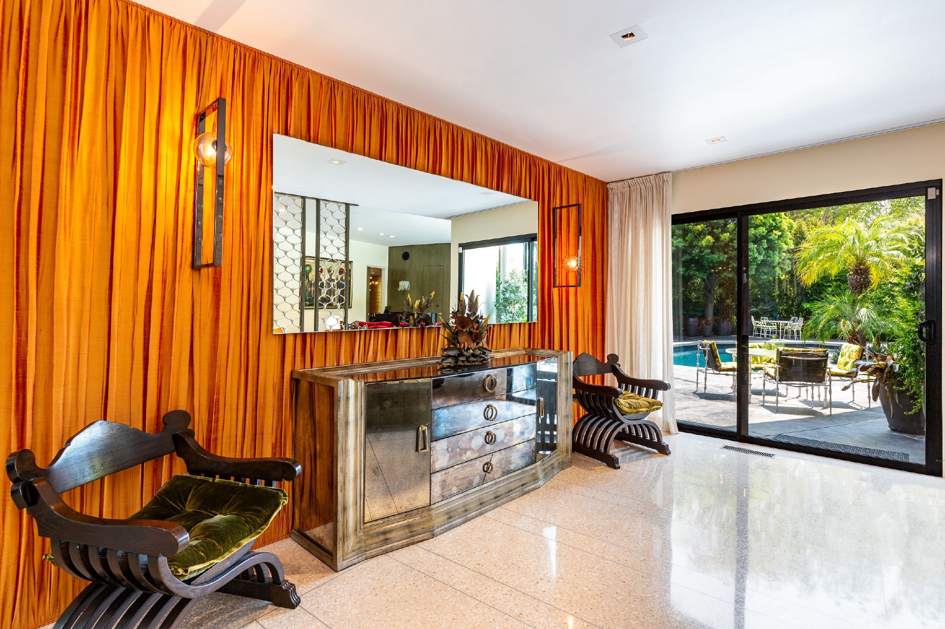 Steps from the Beverly Hills hotel and set behind private gates, this sophisticated mid-century contemporary estate offers poolside and treetop views from every room. Enter to a stunning formal entry and stylish living room that connect to a vibrant & luxurious family room with bar. Ideal for entertaining with an open floor plan that blends seamlessly into your own lush oasis with high hedges, pool and massive outdoor deck. Spacious master suite with luxurious bathroom, large walk-in closet and separate office. Features a gourmet kitchen, dining room, additional maid’s room & bathroom, incredible built-ins and easy parking with garage & motor court.
