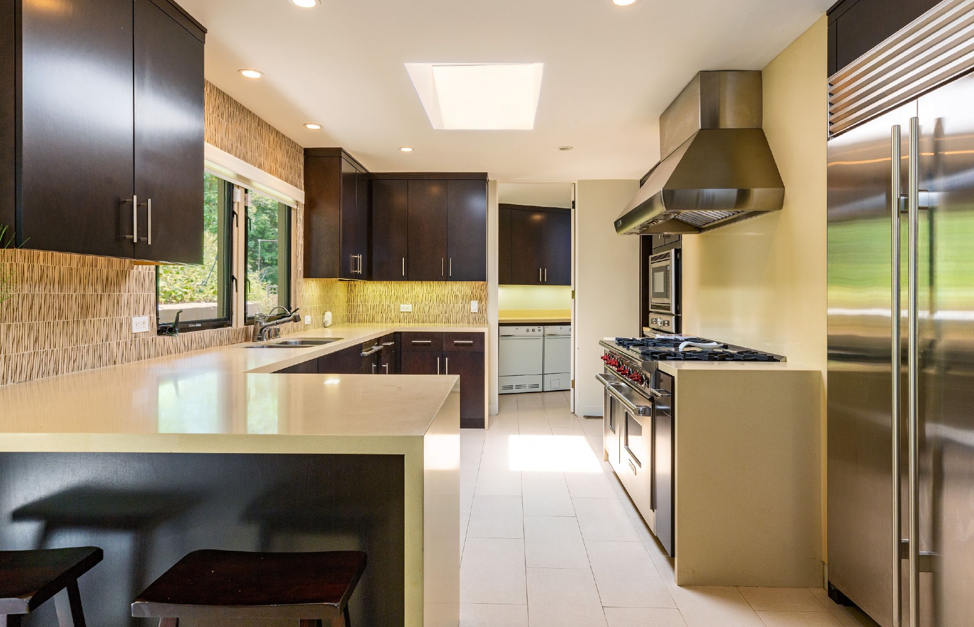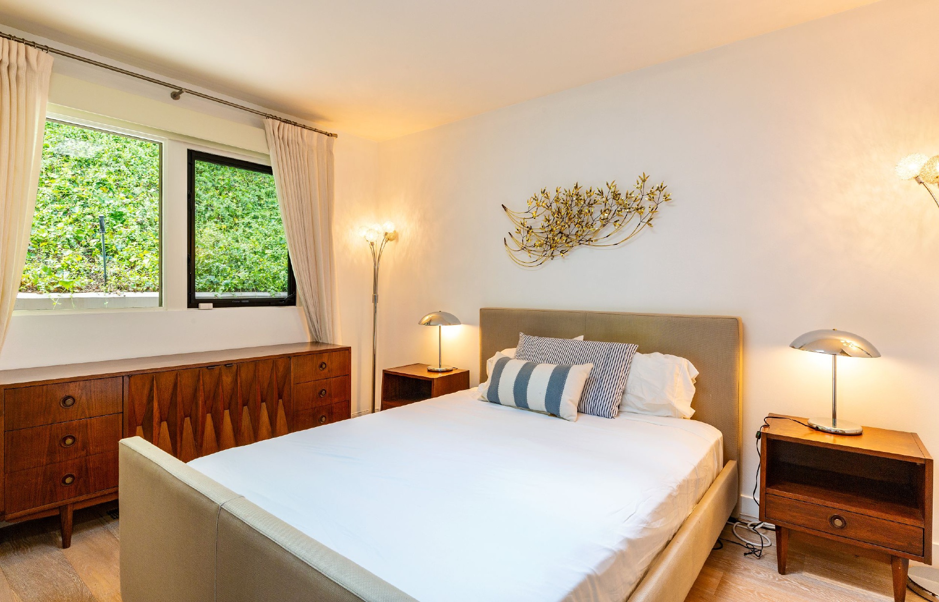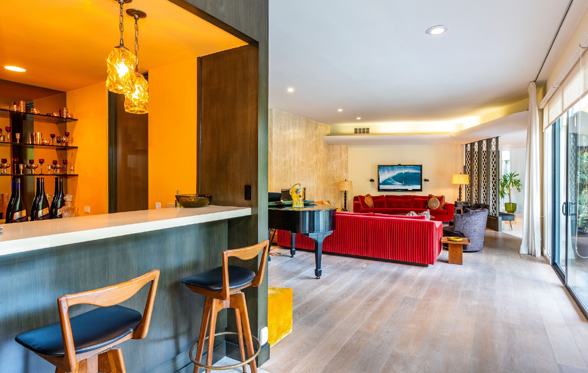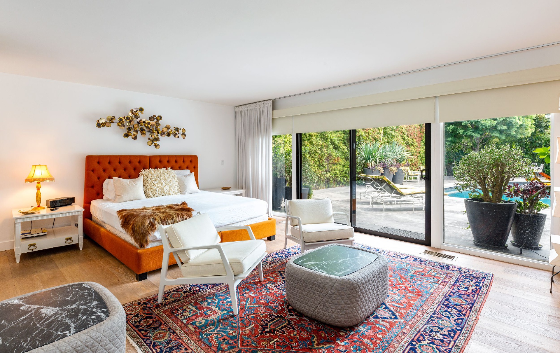 Steps from the Beverly Hills hotel and set behind private gates, this sophisticated mid-century contemporary estate offers poolside and treetop views from every room. Enter to a stunning formal entry and stylish living room that connect to a vibrant & luxurious family room with bar. Ideal for entertaining with an open floor plan that blends seamlessly into your own lush oasis with high hedges, pool and massive outdoor deck. Spacious master suite with luxurious bathroom, large walk-in closet and separate office. Features a gourmet kitchen, dining room, additional maid’s room & bathroom, incredible built-ins and easy parking with garage & motor court.