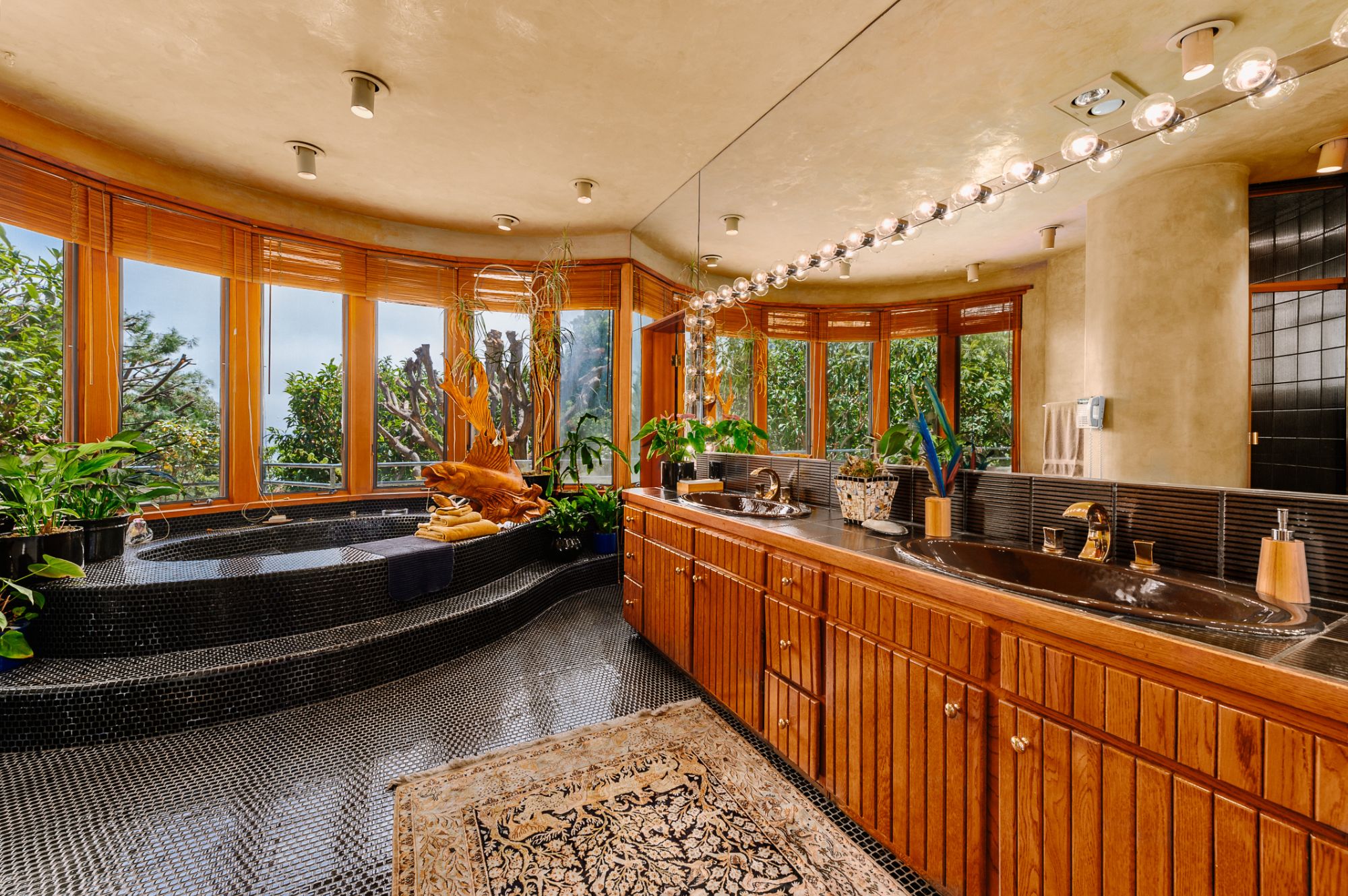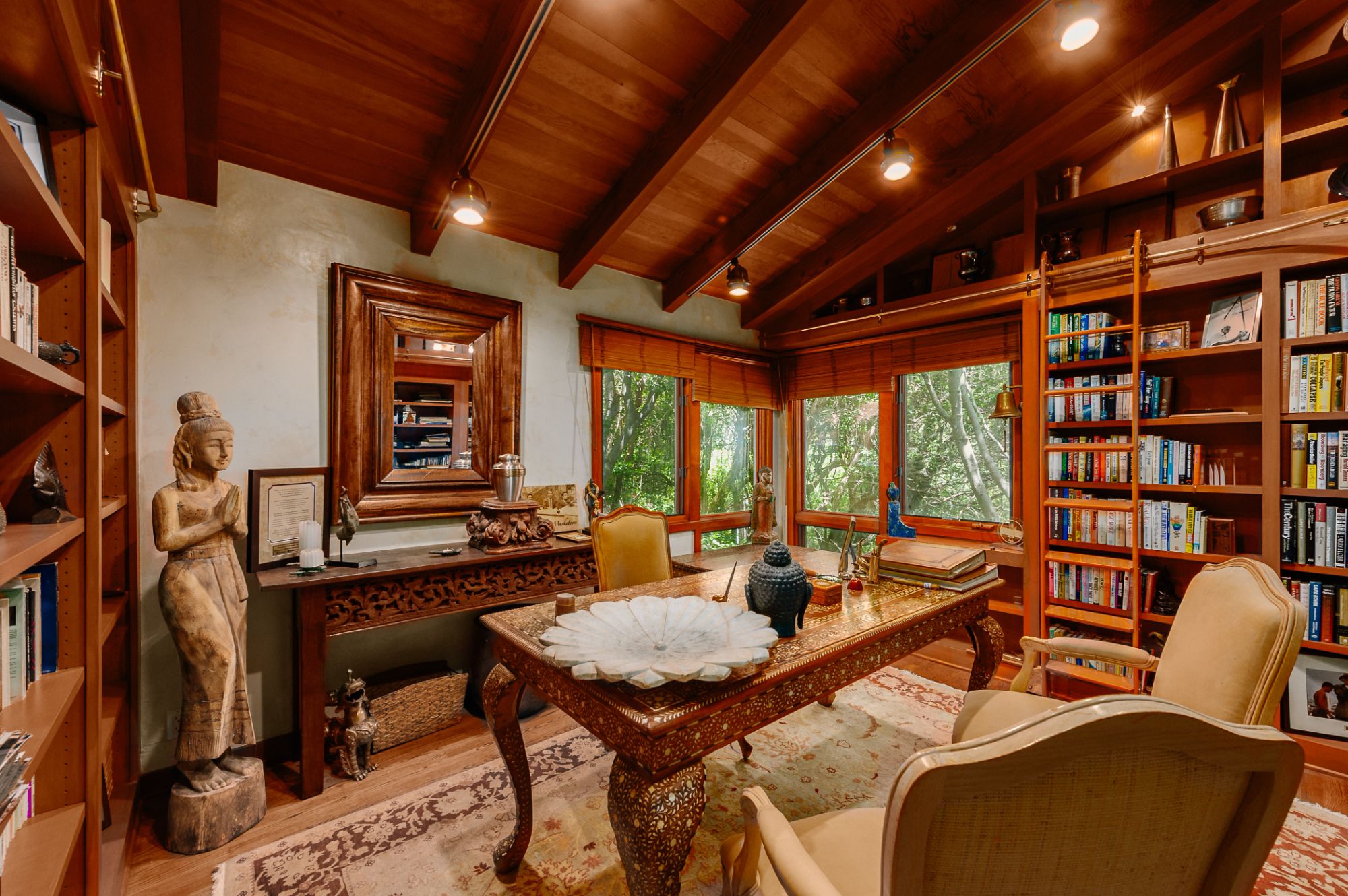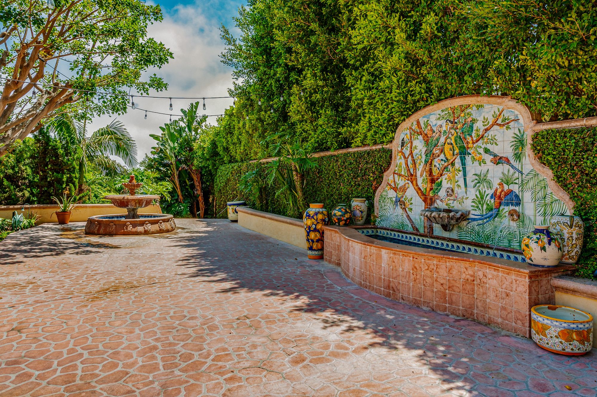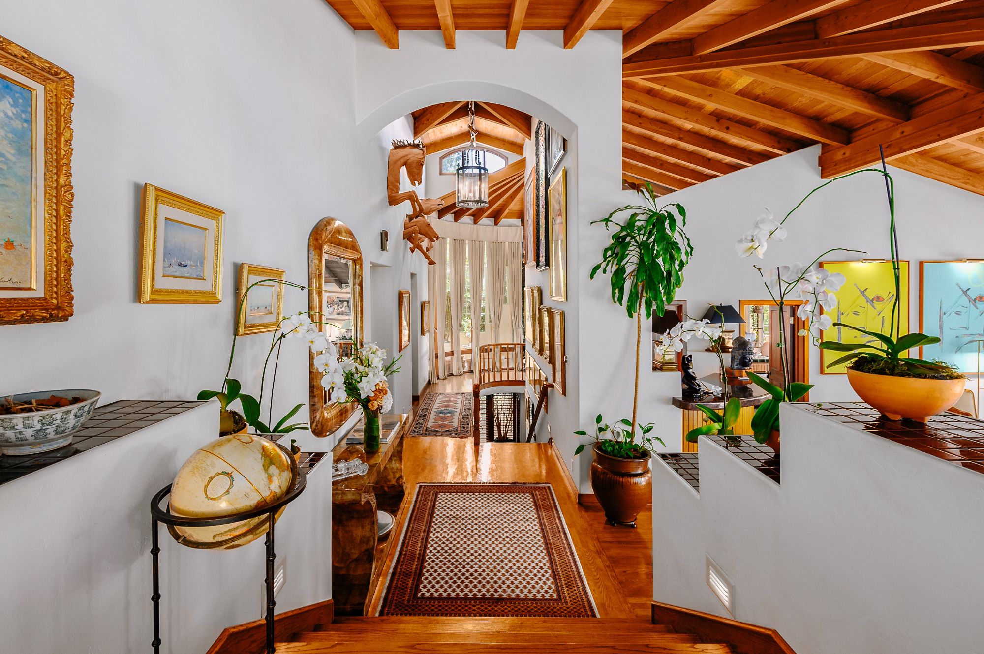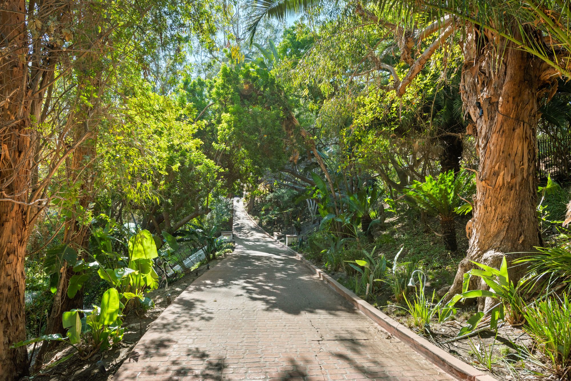 Paradise Cove on the beach. Breathtaking gated ocean-view estate with tropical gardens, fountain courtyard, high wood-beamed ceilings, arched doorways and windows, and hardwood floors. Chandelier dining room has bar and bay of windows with ocean views. Formal living room with fireplace and leaded glass doors to patio, which continues to another patio and putting green watched over by four huge Buddha's'. Gourmet island kitchen with tile countertops, high-end appliances, butler's pantry, breakfast bar, and seating area with ocean-view windows. Spacious carpeted family room with fireplace opens to deck with barbecue island and dining patio. Hallway lined with bookshelves leads to library/office and full bath. Downstairs are three bedrooms, laundry room, and generous storage. Owner's retreat has fireplace, desk, large custom closets, and lux bathroom, plus French doors to deck, mirrored and carpeted gym, sauna, and cold-soak tub. Large motor court and garage parking for two cars. Live and entertain in true Malibu style. This sale includes 2 APN's 27910 PCH (4460-032-018) and 27856 PCH (4460-032-008).