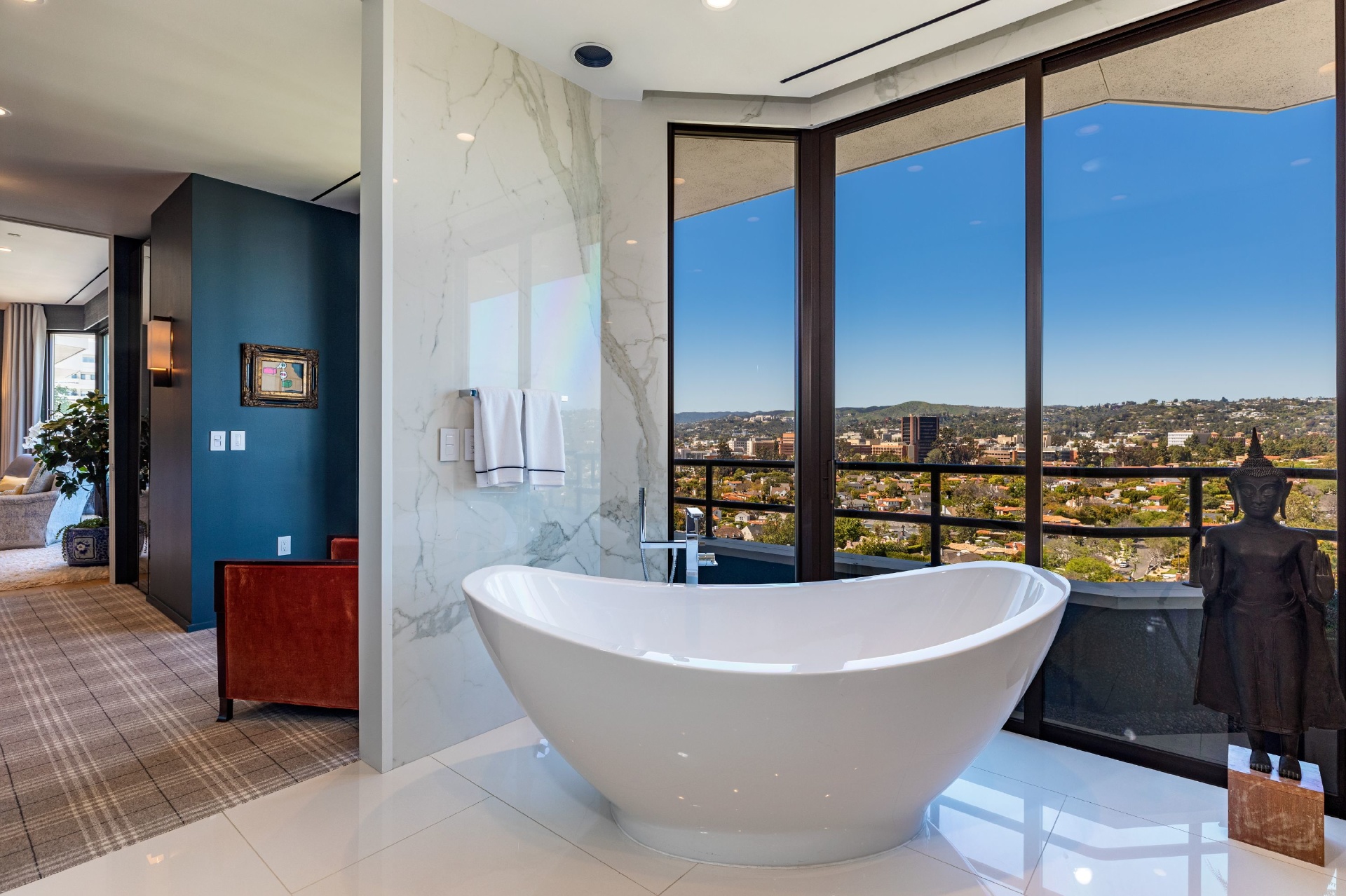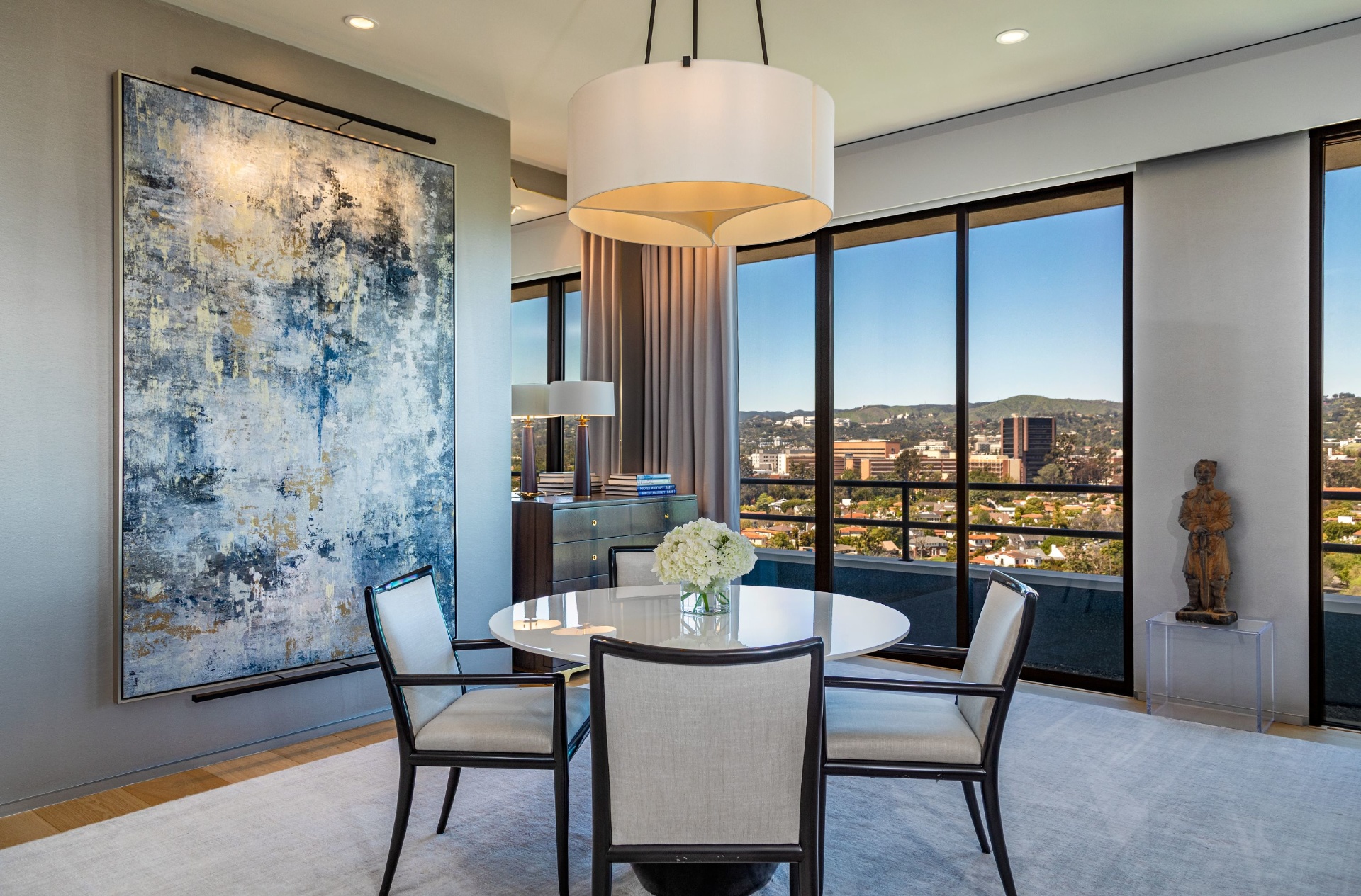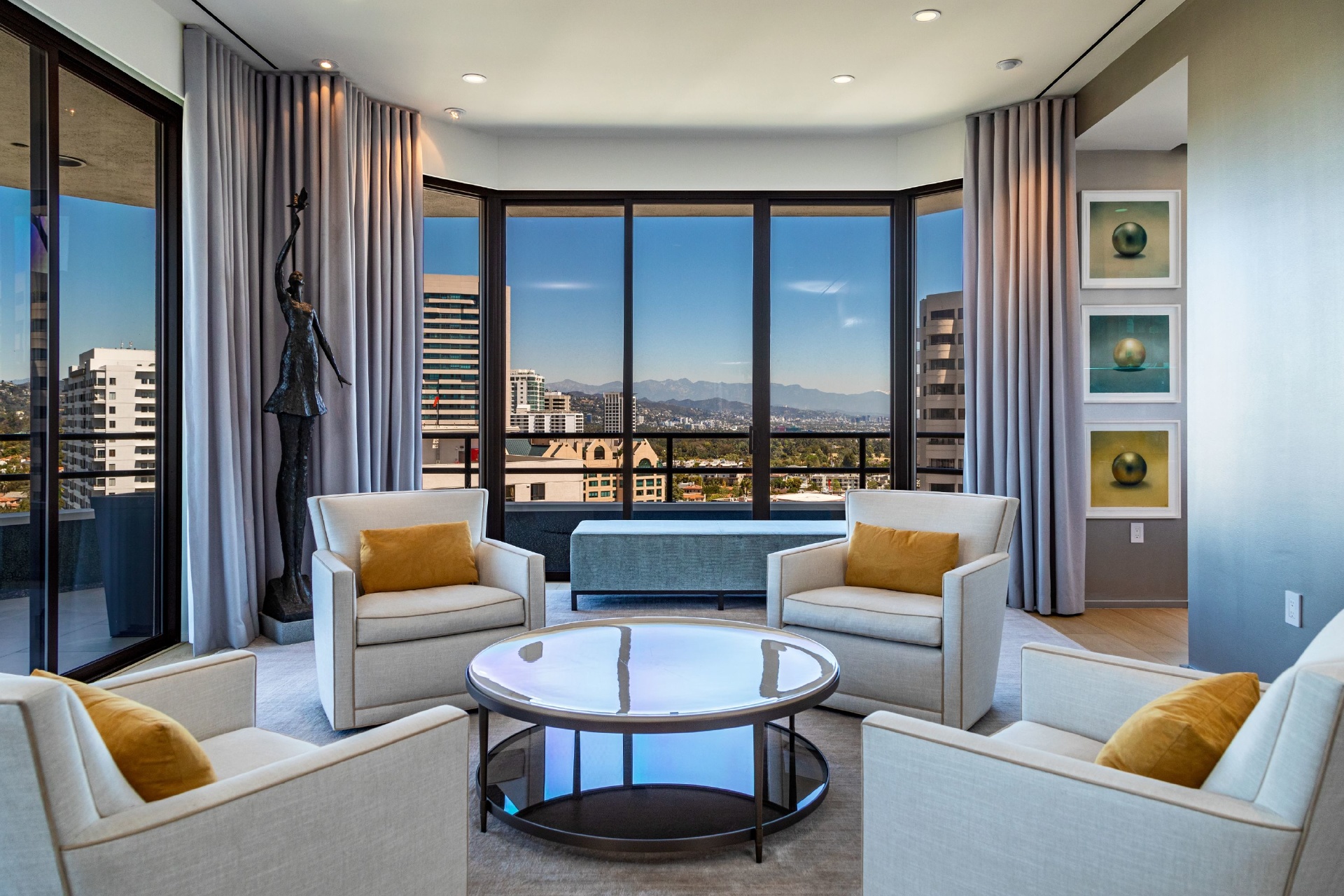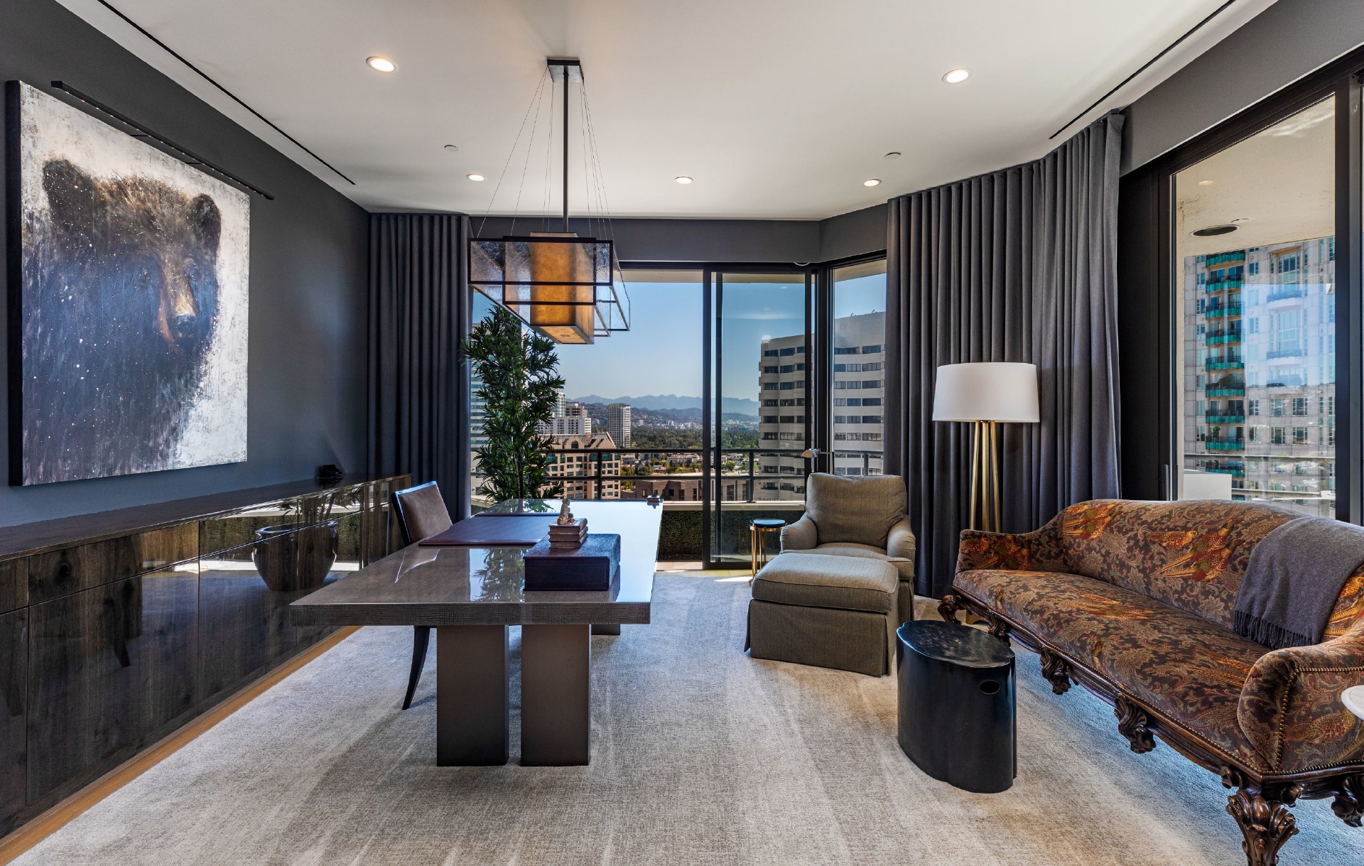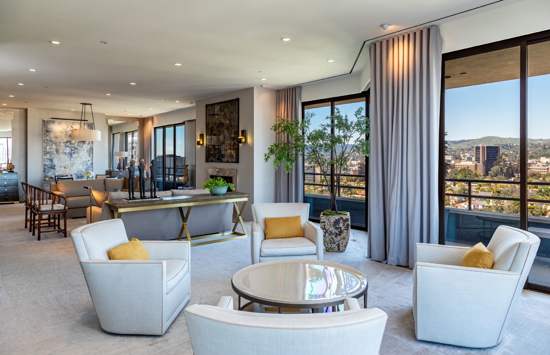 The Wilshire House; Timelessly designed by internationally acclaimed Bauhaus architect Victor Gruen is Los Angeles' preeminent full service luxury high-rise building. Situated in its coveted location on the Wilshire Corridor, residents are mere minutes away from world class dining, shopping and entertainment in Beverly Hills, Century City, Bel Air and Westwood. Penthouse 19 occupies nearly an entire floor and is the 42-month culmination of two penthouses reimagined as one spectacular contemporary home creating the largest unit in the building!
