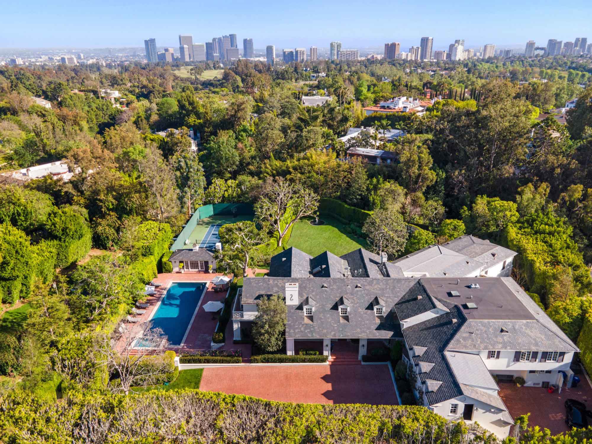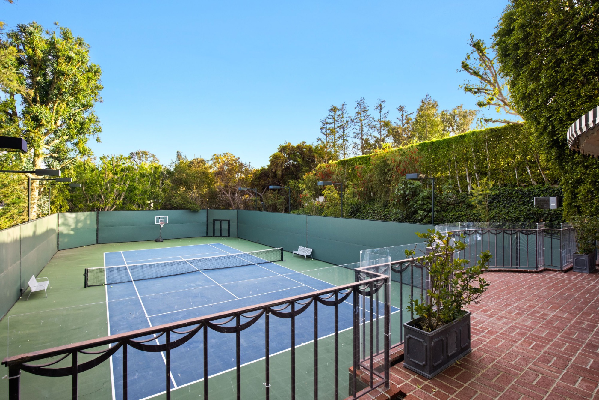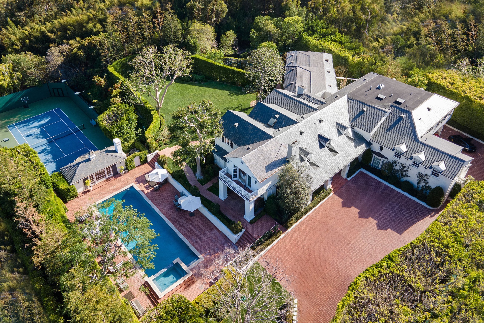 This completely renovated Paul Williams traditional on an acre of magnificent lawns and gardens is the culmination of Golden Age opulence and contemporary elegance in Holmby Hills. Behind the privacy of gates and lush hedges, vast front court leads to a nearly 14,000 SF, 7-bed, 13-bath estate with natural light, stunning volume, and the finest marble and wood finishes throughout. Built in 1936, updated by acclaimed builder Richard Manion and further expanded into a mega mansion with first-class craftsmanship and luxurious entertaining possibilities. Elegant living & sitting rooms flow together seamlessly. A lavish bar with circular marble counter and wine room serves the family room. Upscale dining options include a classic chef’s kitchen, breakfast area, garden side and formal dining rooms. Floor-to-ceiling doors open up to multiple outdoor entertaining areas featuring a N/S championship tennis court, swimmer’s pool & spa, pool house, and well landscaped lawns. Exceptional amenities boast gym, massage, theater and a guest house with a separate entrance. The sumptuous primary suite features extravagant partner’s marble bathrooms. Live among the most discerning elites in this historically significant home featured in Architectural Digest.
