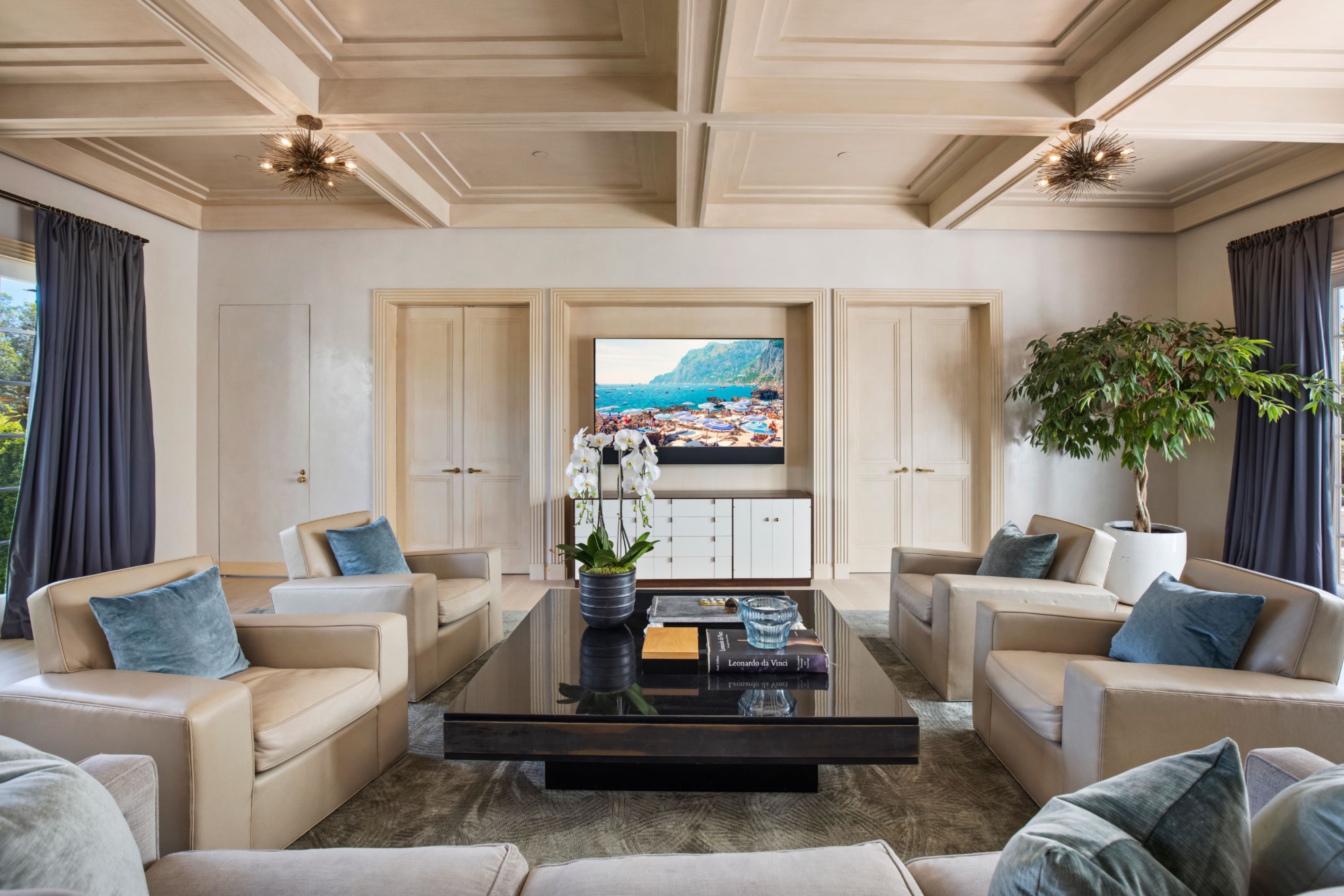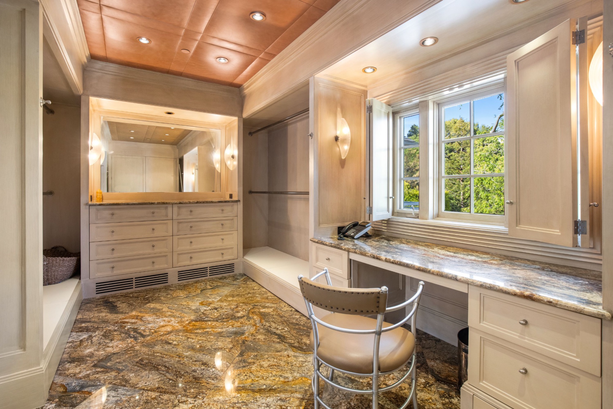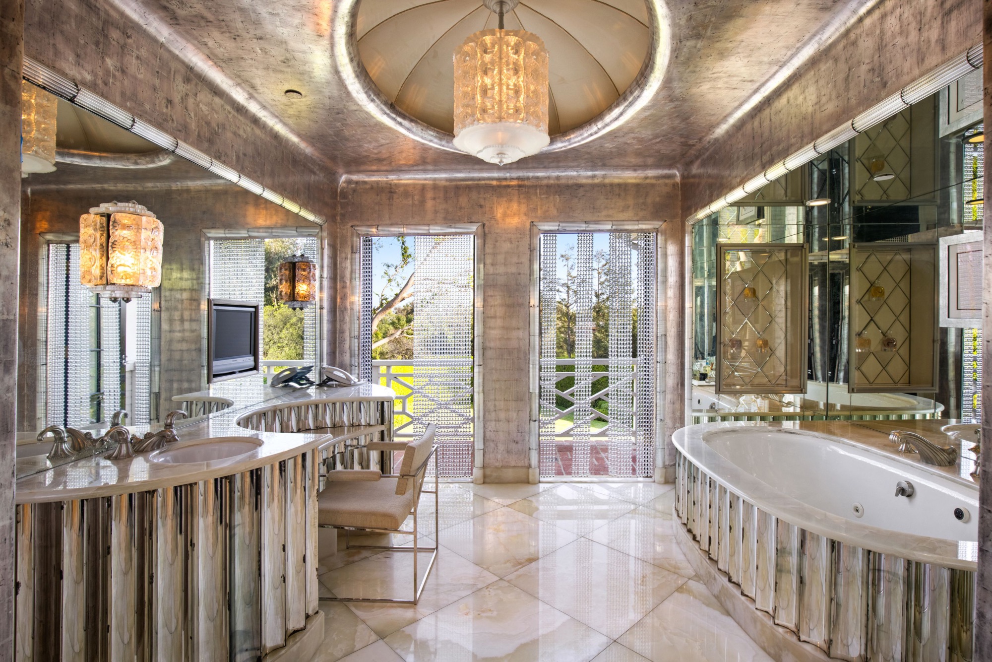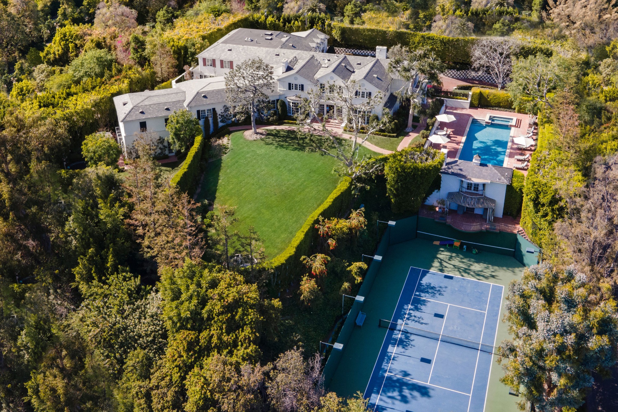 This completely renovated Paul Williams traditional on an acre of magnificent lawns and gardens is the culmination of Golden Age opulence and contemporary elegance in Holmby Hills. Behind the privacy of gates and lush hedges, vast front court leads to a nearly 14,000 SF, 7-bed, 13-bath estate with natural light, stunning volume, and the finest marble and wood finishes throughout. Built in 1936, updated by acclaimed builder Richard Manion and further expanded into a mega mansion with first-class craftsmanship and luxurious entertaining possibilities. Elegant living & sitting rooms flow together seamlessly. A lavish bar with circular marble counter and wine room serves the family room. Upscale dining options include a classic chef’s kitchen, breakfast area, garden side and formal dining rooms. Floor-to-ceiling doors open up to multiple outdoor entertaining areas featuring a N/S championship tennis court, swimmer’s pool & spa, pool house, and well landscaped lawns. Exceptional amenities boast gym, massage, theater and a guest house with a separate entrance. The sumptuous primary suite features extravagant partner’s marble bathrooms. Live among the most discerning elites in this historically significant home featured in Architectural Digest.