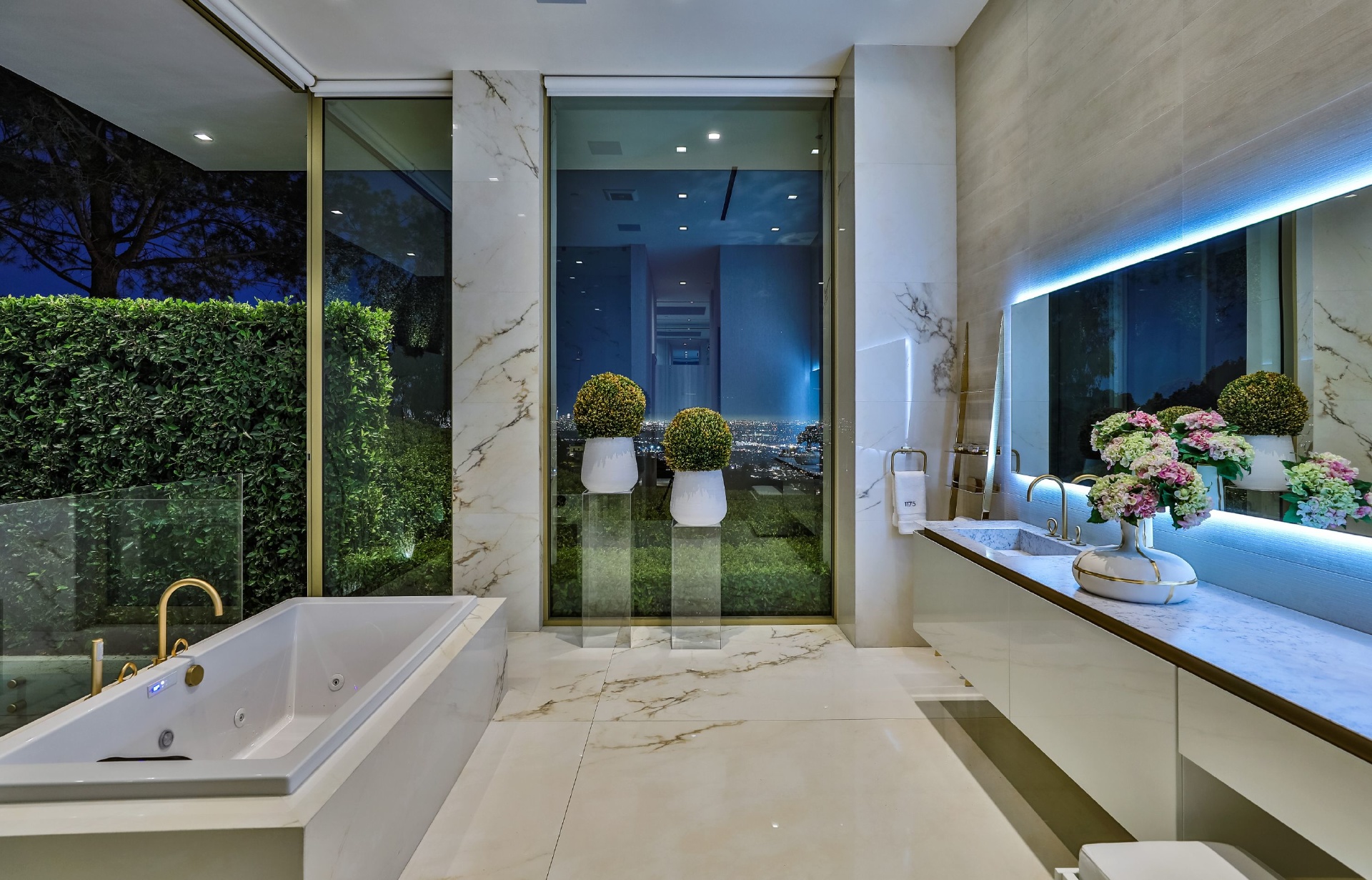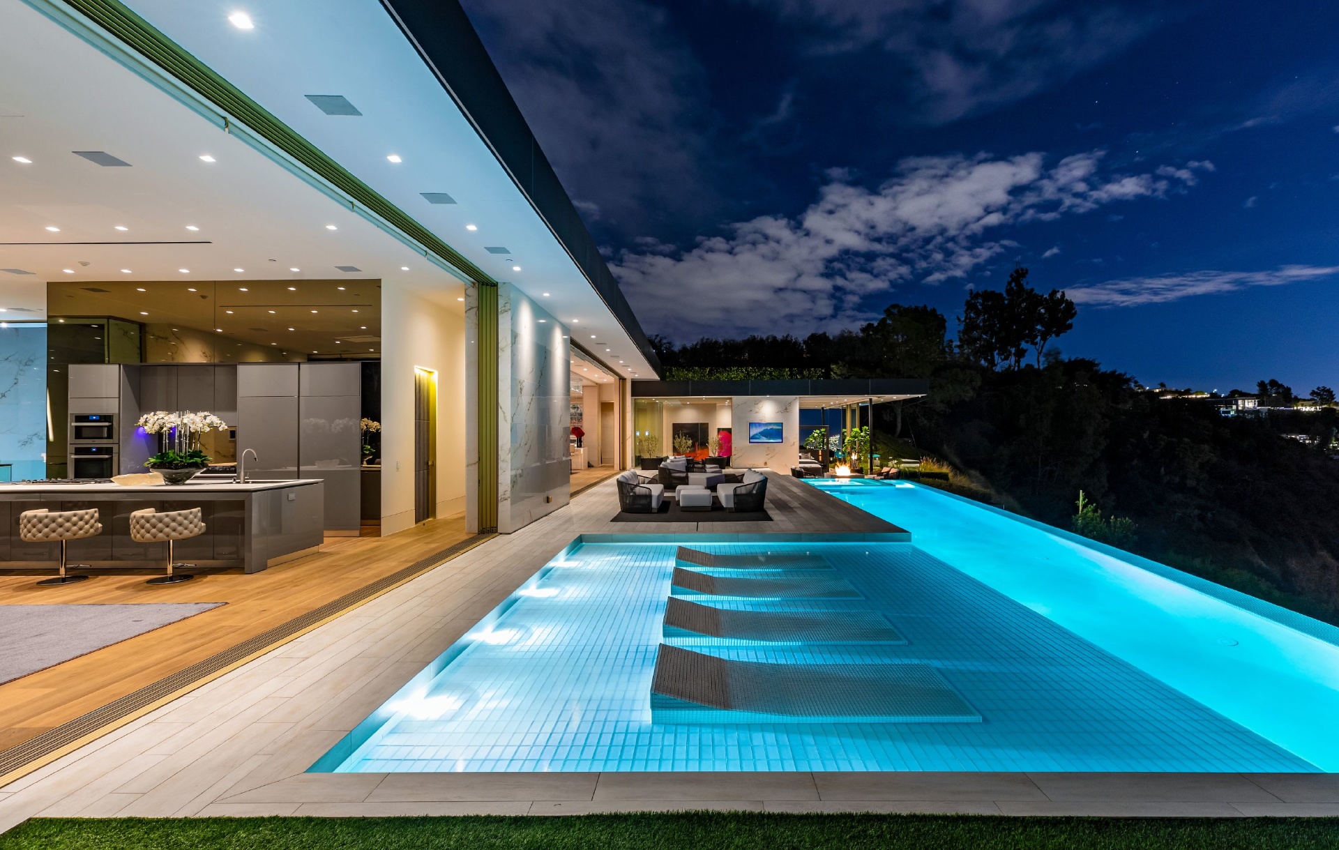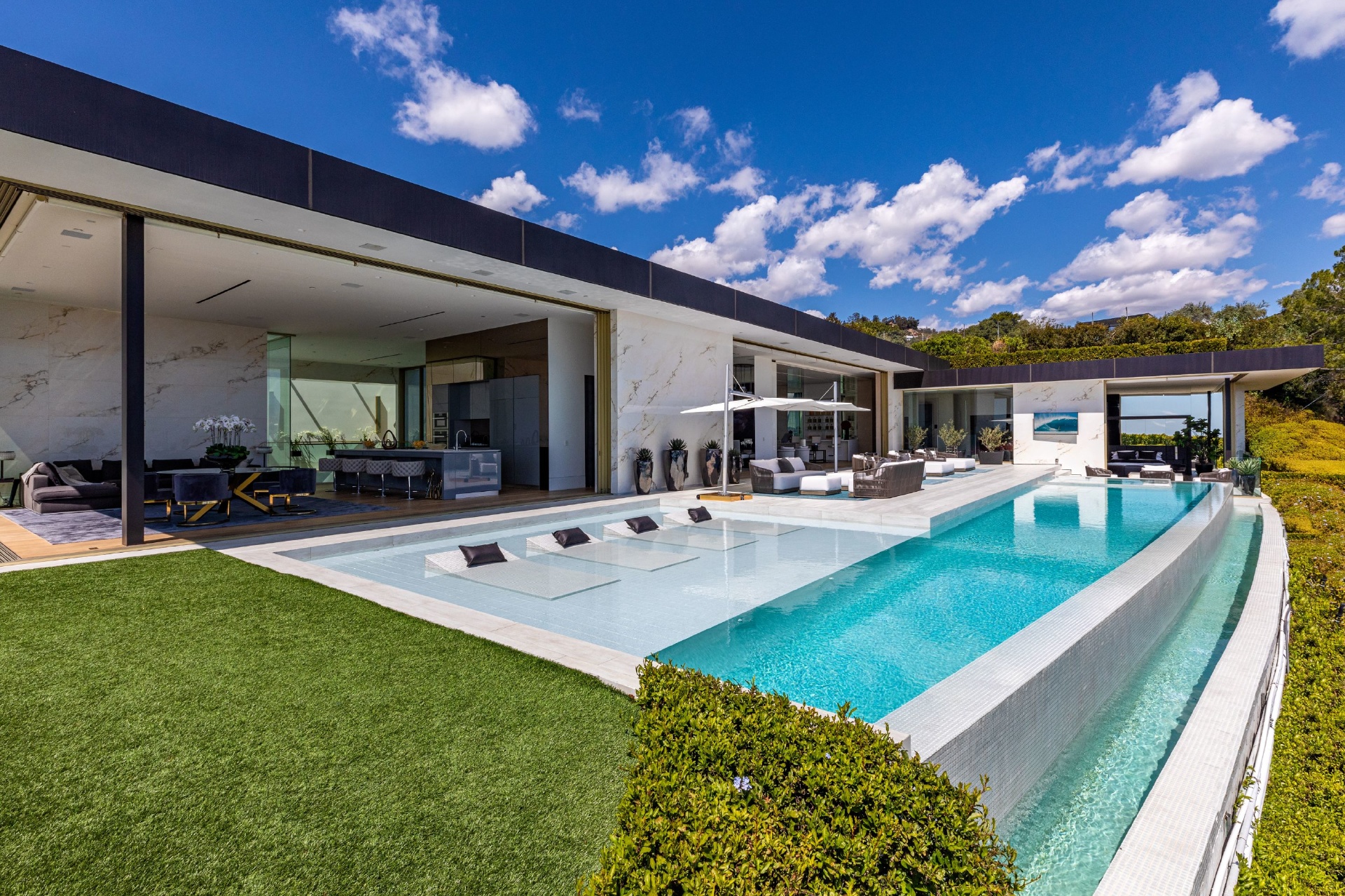 The most spectacular and luxurious organic modern home ever constructed, in the prestigious Trousdale neighborhood of Beverly Hills. Set on a promontory in Billionaires Row with the most explosive views in all of Los Angeles, the estate hovers over the finest amenities of 90210, Rodeo Drive and the legendary Sunset Strip. Designed by world-renowned architect, Paul McClean, master of space, light and flow. No expense was spared. This modern Shangri-La features only the most top of the line amenities in the world including two luxurious pools, two gourmet kitchens, walk-in temperature controlled pantry, an oversized theater, wine cellar, billiards room, car museum and mind blowing audio/visuals. Fully designed with the best cutting edge design that Italy has to offer. Live among the stars and titans of industry at the most coveted address in all of Los Angeles.
