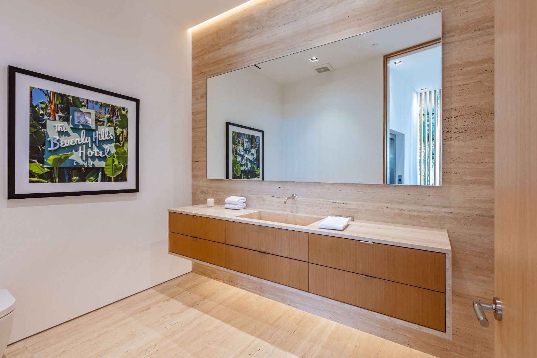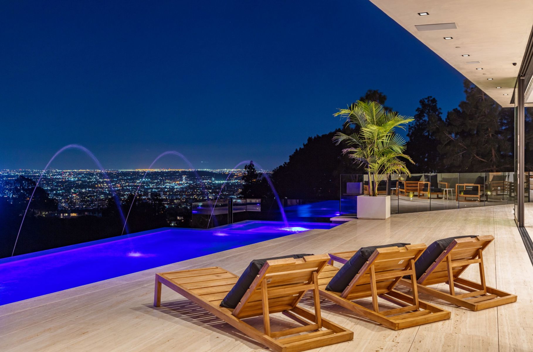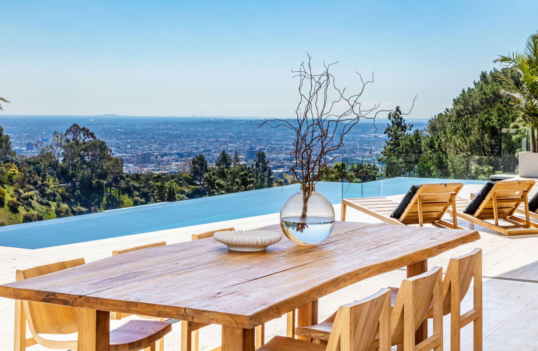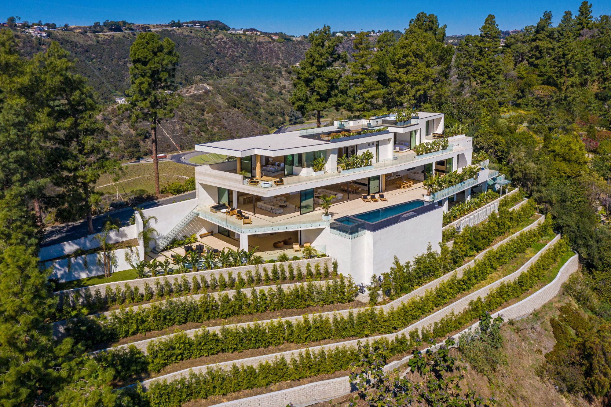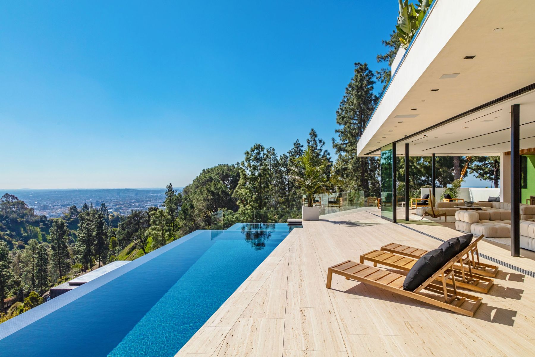 Design icon Richard Landry & Merkoh Development joined forces to create this organic modern masterpiece. Located on a picturesque acre, this showpiece is immersed with spectacular 360° city, ocean & canyon views within the heart of Beverly Hills. Its stunning matchbook travertine exterior and Italian teakwood smart door sets the tone for an elegant mix of serenity-evoking aesthetics and cutting-edge automated lifestyle. Interiors feature world-class Italian Classico unfilled travertine, teakwood, white oak louvers & floorings throughout. Beautiful open floor plan with soaring motorized sliding doors soaks up the sunlight and the explosive views. Tri-level entertainment oasis with 2 exquisite bars & kitchens, formal & alfresco dining options, a movie theater, sauna/steam, gym & wine rooms. Gourmet Kitchen features servo cabinetry & calacatta viola countertop bar. Multiple decks, perfect for entertaining on any scale boast BBQ kitchen, rooftop jacuzzi, rooftop yoga space, infinity pool/spa that overlooks LA skyline along with a poolside TV that emerges at the touch of a button. Primary suite features a private deck and partners’ bathroom with a calacatta viola shower and hand-crafted solid marble tub. Experience this trophy estate that leaves no desires unsatisfied and spares no expense.