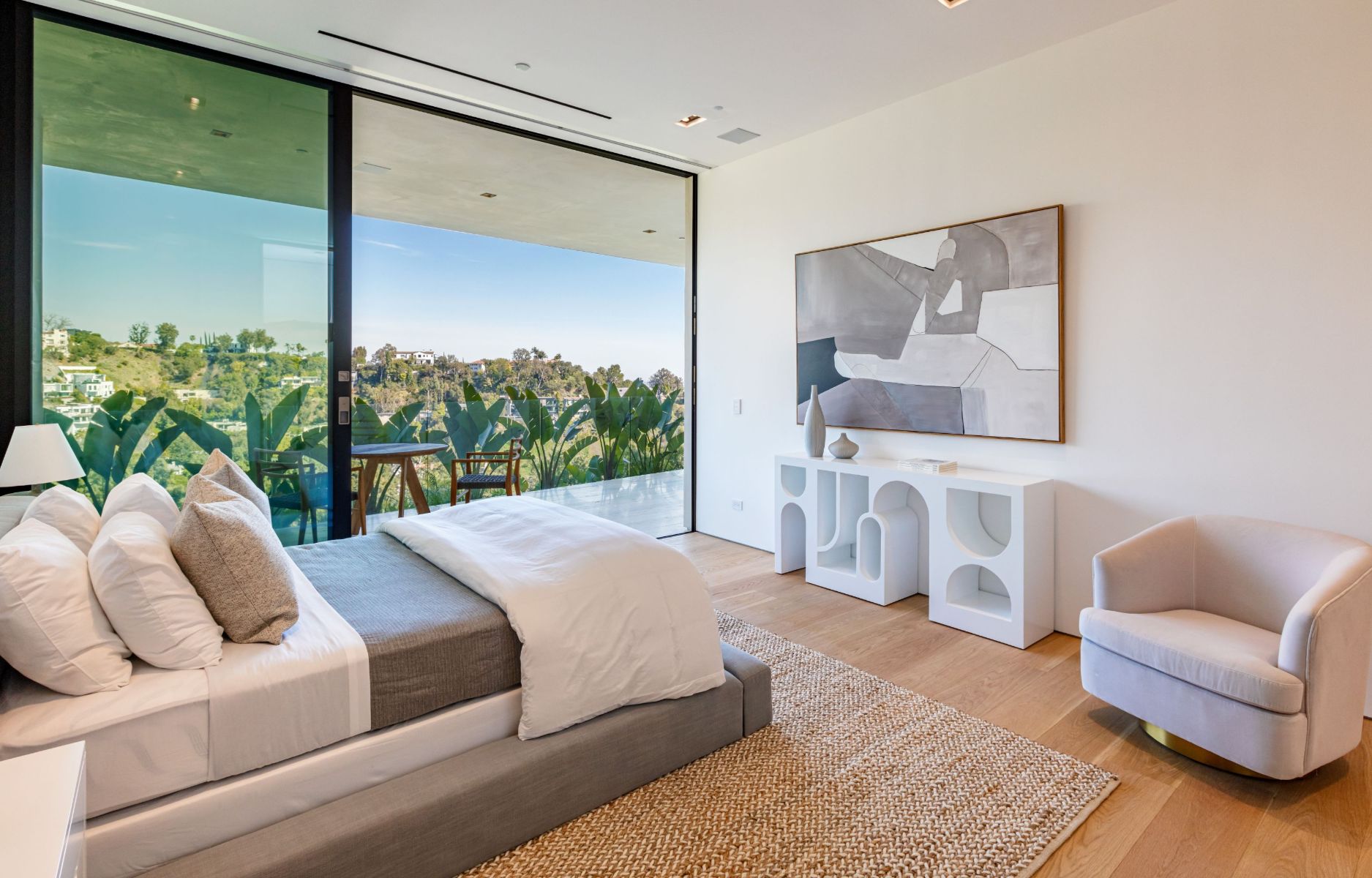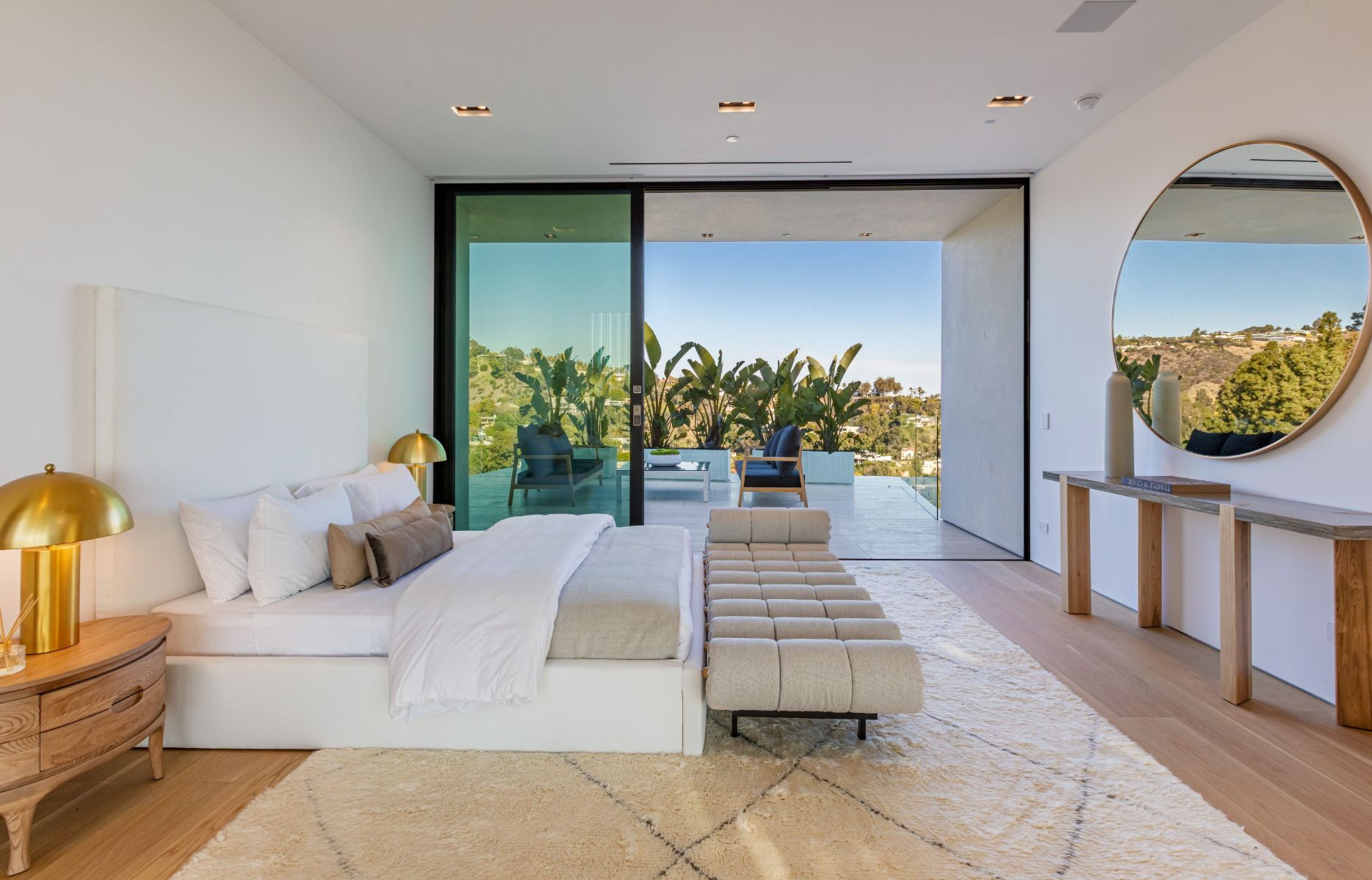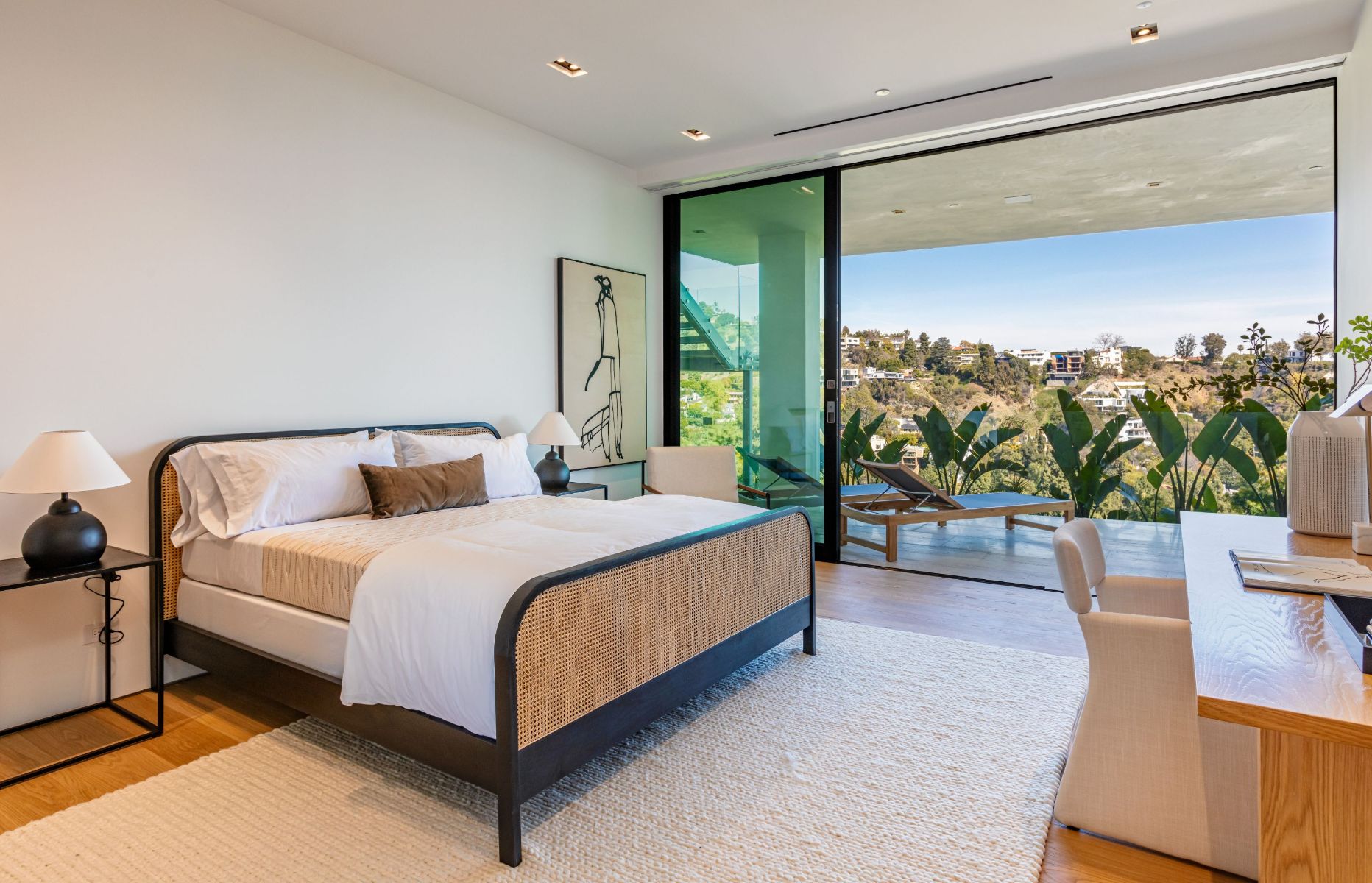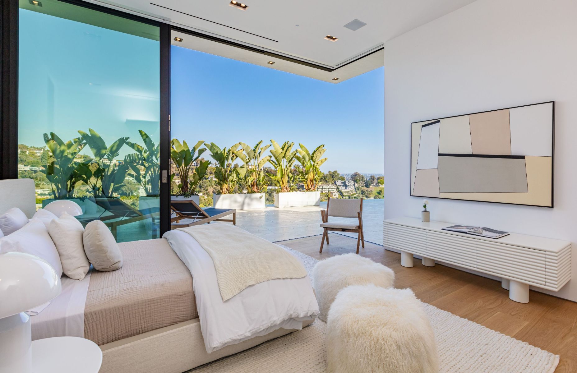Design icon Richard Landry & Merkoh Development joined forces to create this organic modern masterpiece. Located on a picturesque acre, this showpiece is immersed with spectacular 360° city, ocean & canyon views within the heart of Beverly Hills. Its stunning matchbook travertine exterior and Italian teakwood smart door sets the tone for an elegant mix of serenity-evoking aesthetics and cutting-edge automated lifestyle. Interiors feature world-class Italian Classico unfilled travertine, teakwood, white oak louvers & floorings throughout. Beautiful open floor plan with soaring motorized sliding doors soaks up the sunlight and the explosive views. Tri-level entertainment oasis with 2 exquisite bars & kitchens, formal & alfresco dining options, a movie theater, sauna/steam, gym & wine rooms. Gourmet Kitchen features servo cabinetry & calacatta viola countertop bar. Multiple decks, perfect for entertaining on any scale boast BBQ kitchen, rooftop jacuzzi, rooftop yoga space, infinity pool/spa that overlooks LA skyline along with a poolside TV that emerges at the touch of a button. Primary suite features a private deck and partners’ bathroom with a calacatta viola shower and hand-crafted solid marble tub. Experience this trophy estate that leaves no desires unsatisfied and spares no expense.