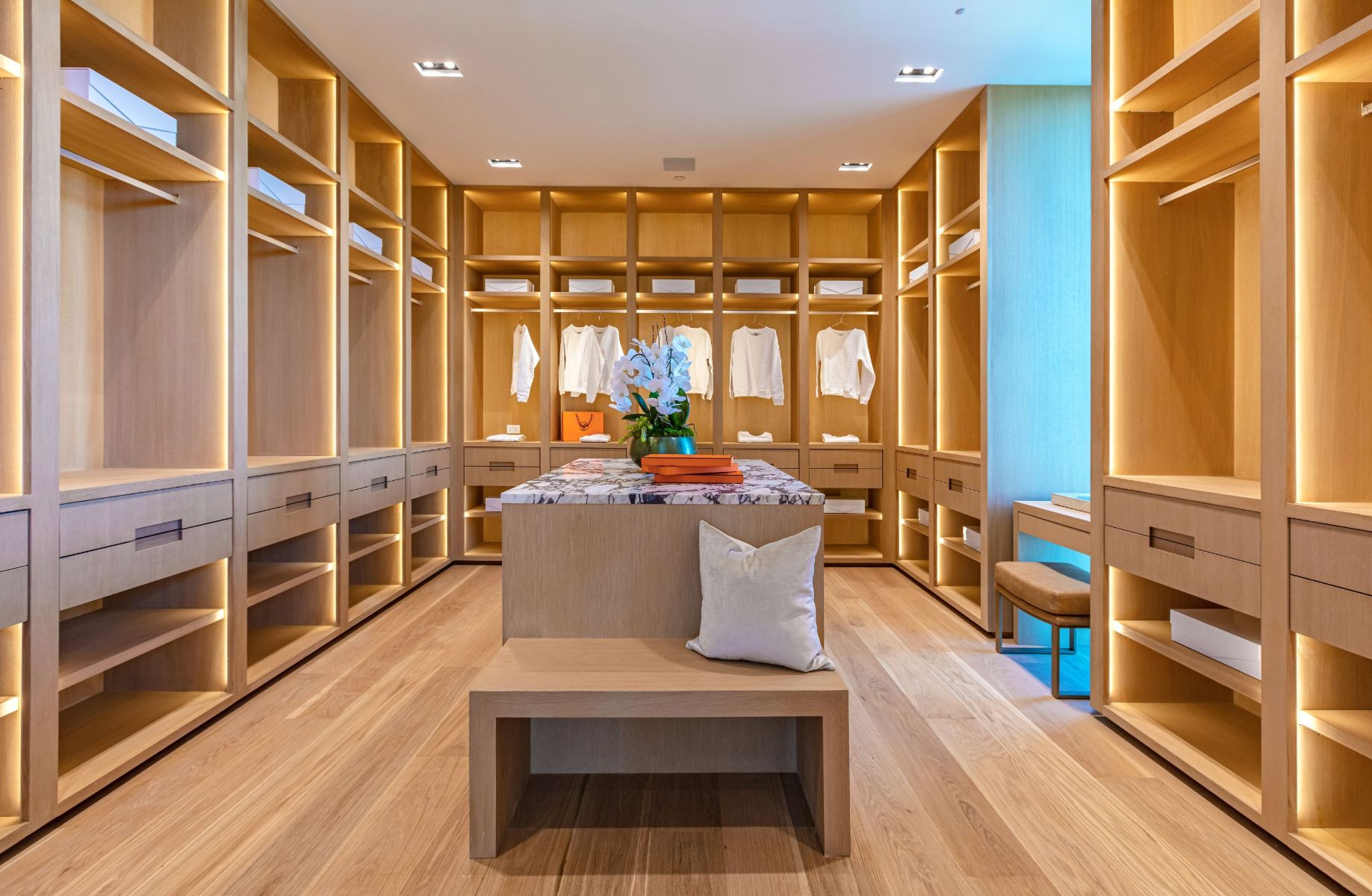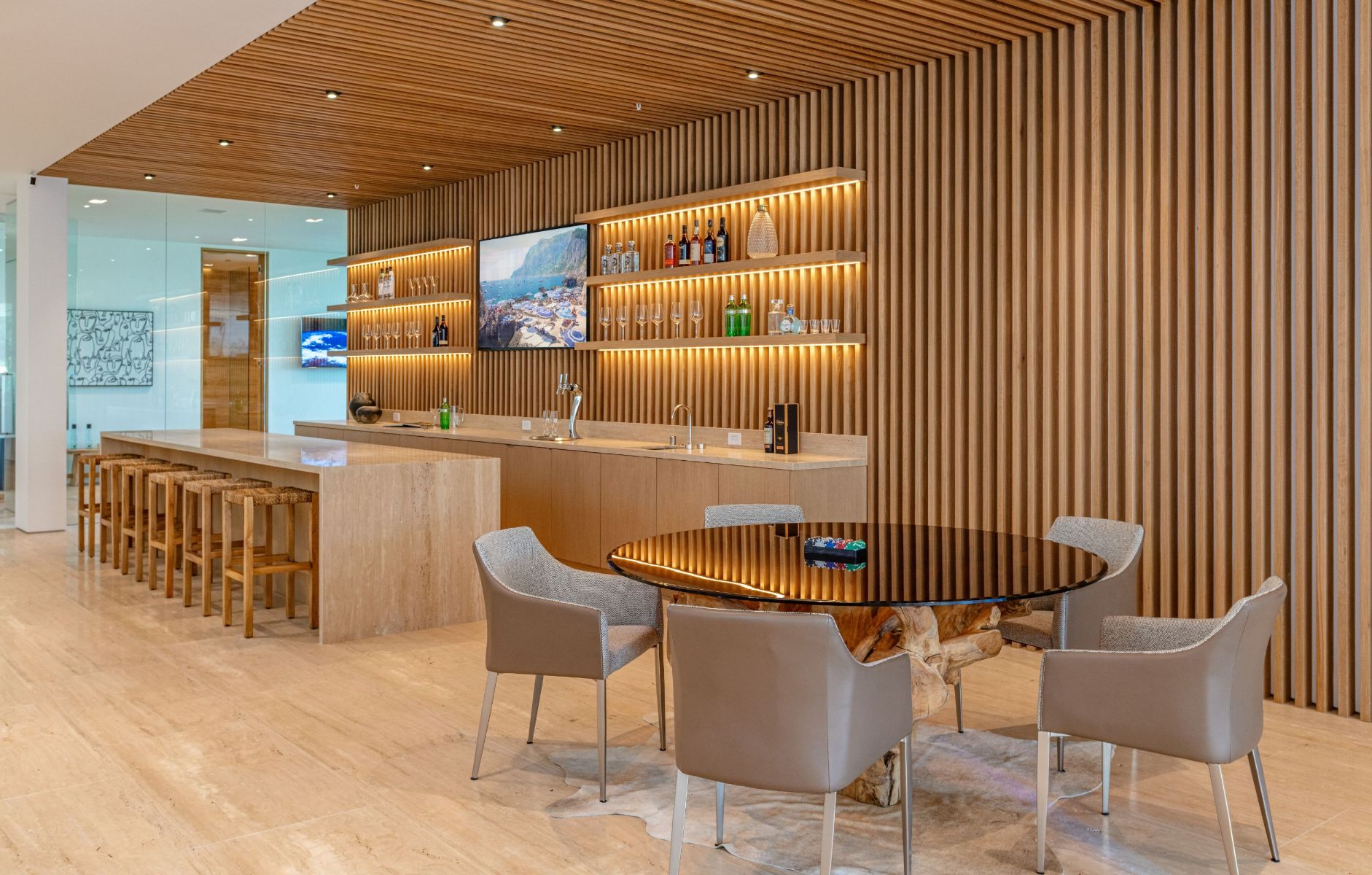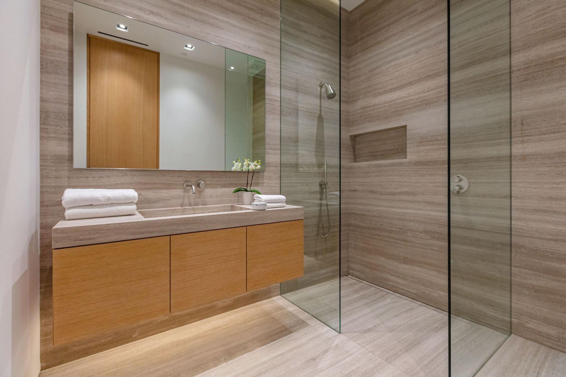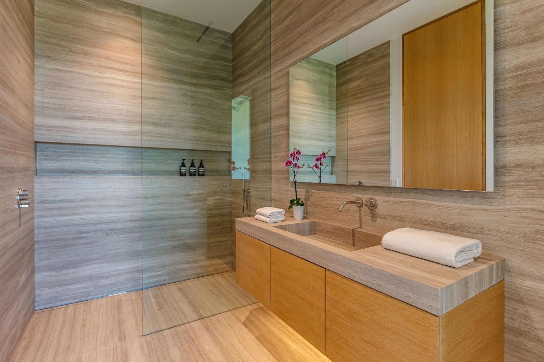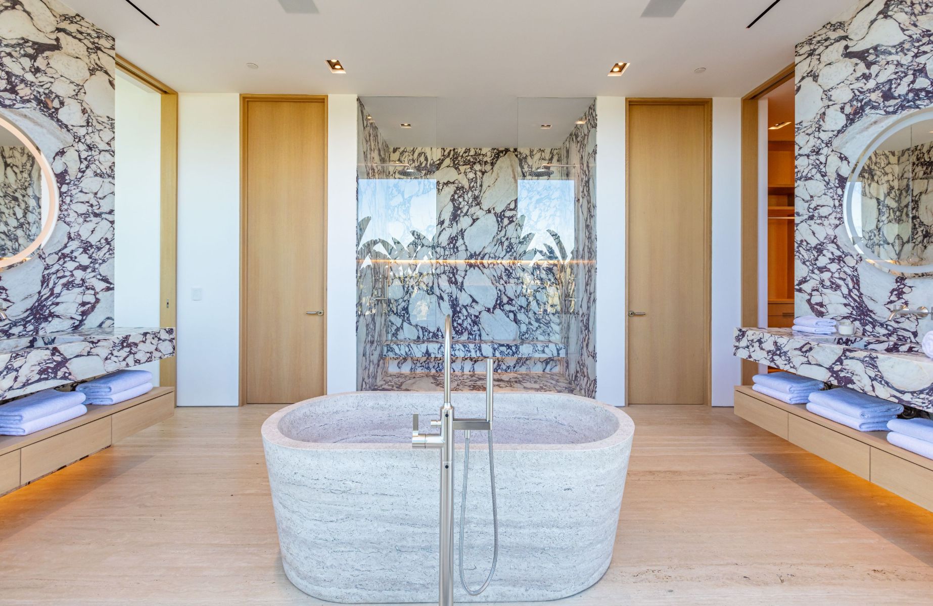 Design icon Richard Landry & Merkoh Development joined forces to create this organic modern masterpiece. Located on a picturesque acre, this showpiece is immersed with spectacular 360° city, ocean & canyon views within the heart of Beverly Hills. Its stunning matchbook travertine exterior and Italian teakwood smart door sets the tone for an elegant mix of serenity-evoking aesthetics and cutting-edge automated lifestyle. Interiors feature world-class Italian Classico unfilled travertine, teakwood, white oak louvers & floorings throughout. Beautiful open floor plan with soaring motorized sliding doors soaks up the sunlight and the explosive views. Tri-level entertainment oasis with 2 exquisite bars & kitchens, formal & alfresco dining options, a movie theater, sauna/steam, gym & wine rooms. Gourmet Kitchen features servo cabinetry & calacatta viola countertop bar. Multiple decks, perfect for entertaining on any scale boast BBQ kitchen, rooftop jacuzzi, rooftop yoga space, infinity pool/spa that overlooks LA skyline along with a poolside TV that emerges at the touch of a button. Primary suite features a private deck and partners’ bathroom with a calacatta viola shower and hand-crafted solid marble tub. Experience this trophy estate that leaves no desires unsatisfied and spares no expense.