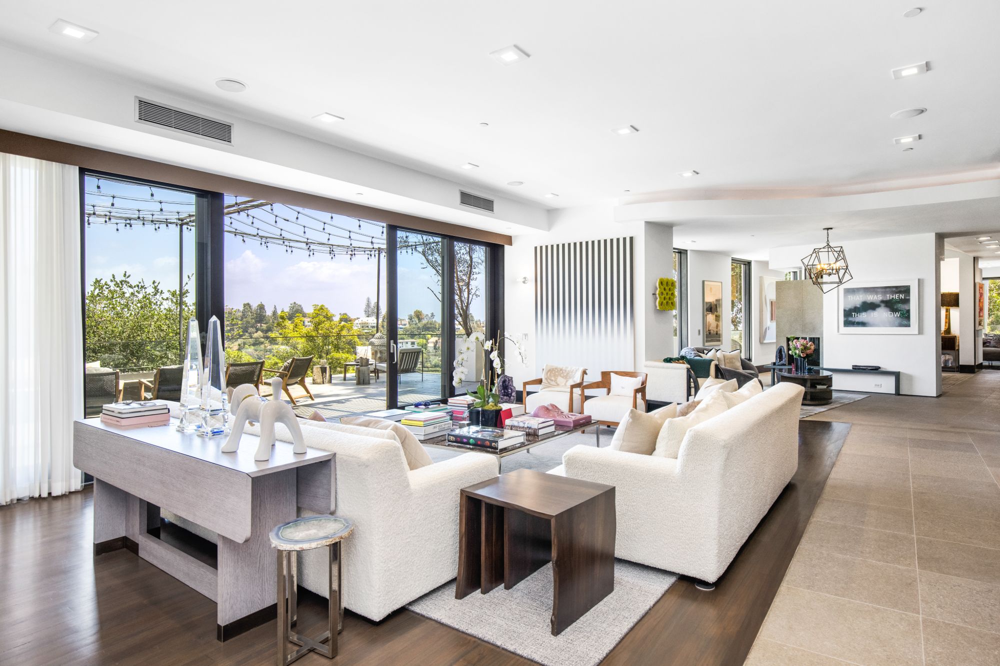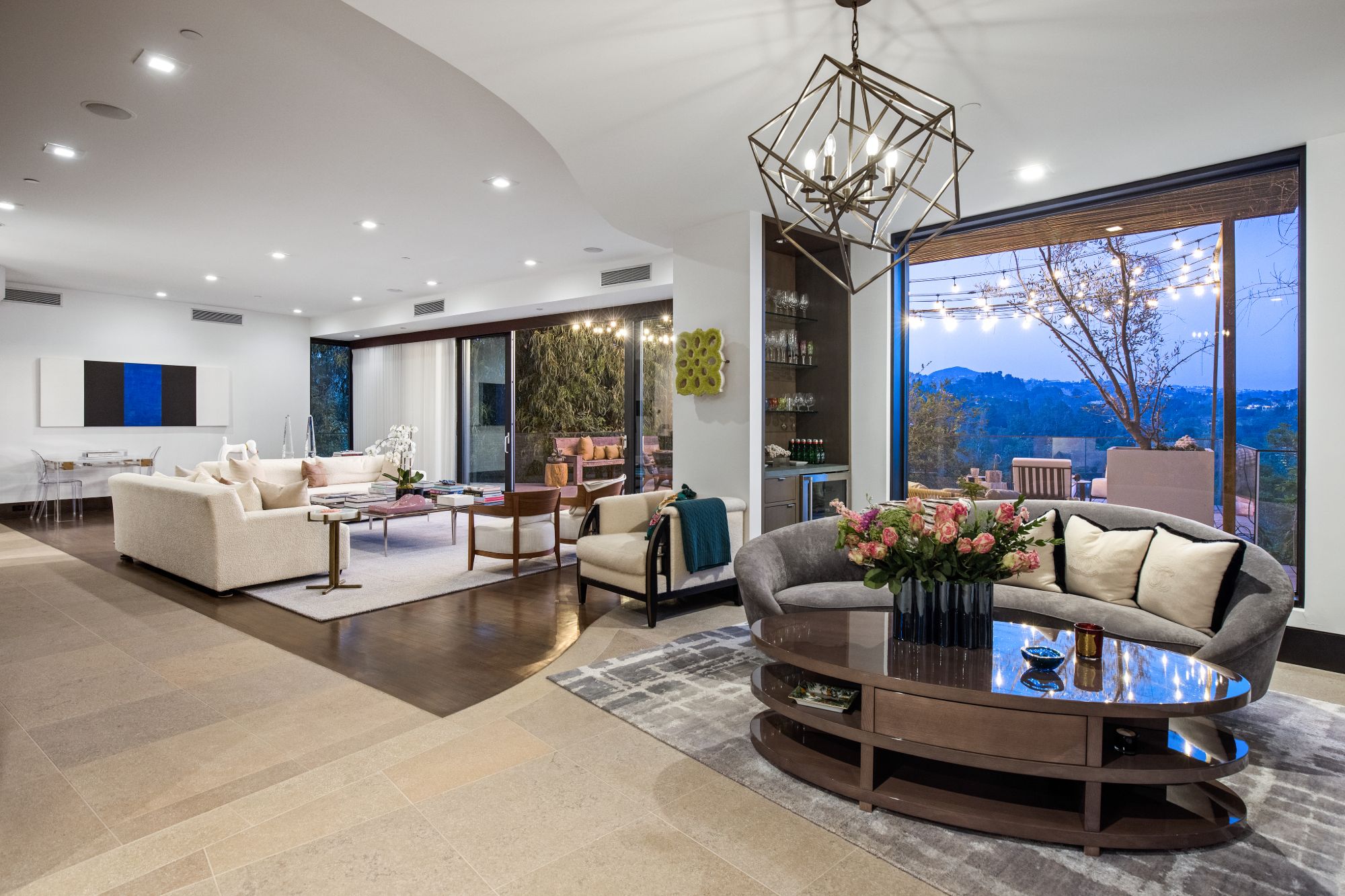 Flawlessly imagined and created by world-renowned architect/developer Ardie Tavangarian of Arya Group. This warm contemporary architectural marvel is set in the tranquil, rolling hills of the Pacific Palisades Riviera with sweeping views of the Brentwood Hills out to the Getty Center, just minutes away from world-class shopping, dining and entertainment in Brentwood, Santa Monica & the Palisades Village. A luxurious, private retreat in a forested setting behind lush trees and gates that evoke peace and serenity with its clean, sophisticated design, soothing palettes, and the finest organic finishes such as rare French limestones and teak wood floors throughout. A magnificent 5-bed, 7-bath, estate with stunning entertaining possibilities encompassing perfectly proportioned infinity pool & spa, oversized lawn with lush landscaping and generous entertainment deck space. Open, sun-splashed living spaces feature a large great room leading to an oversized terrace with a fire pit overlooking the canyon, as well as an open kitchen, family room, den, formal dining room, screening room, master office and staff office. Experience luxurious, sophisticated California indoor-outdoor living at its finest in one of the most coveted neighborhoods in Pacific Palisades.