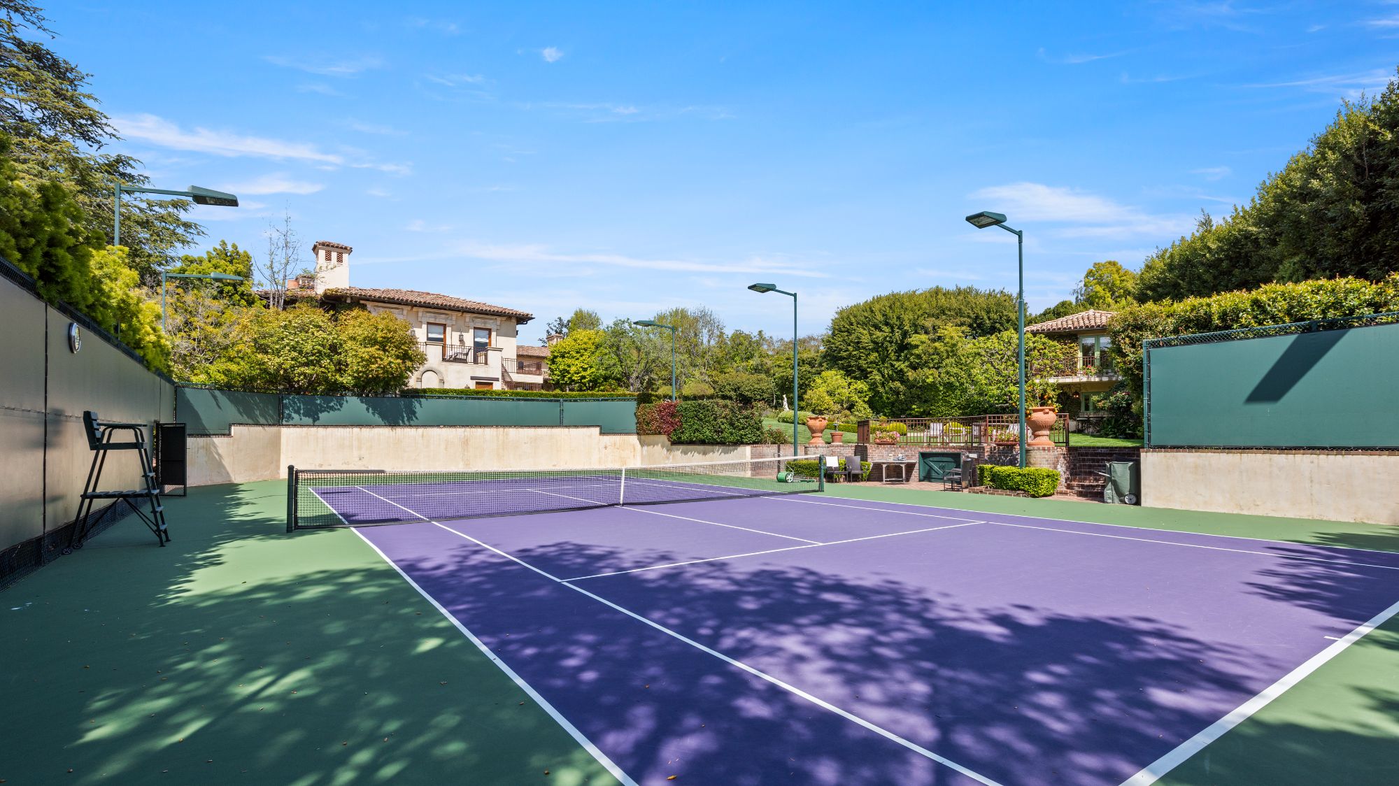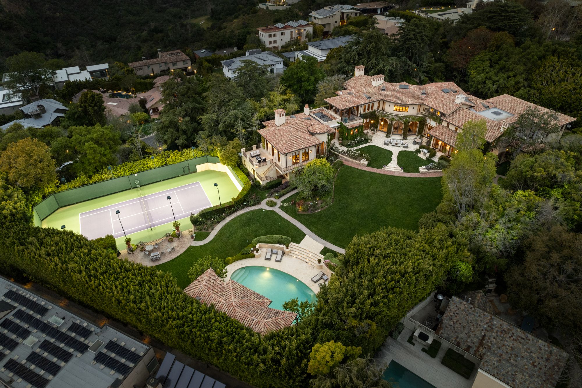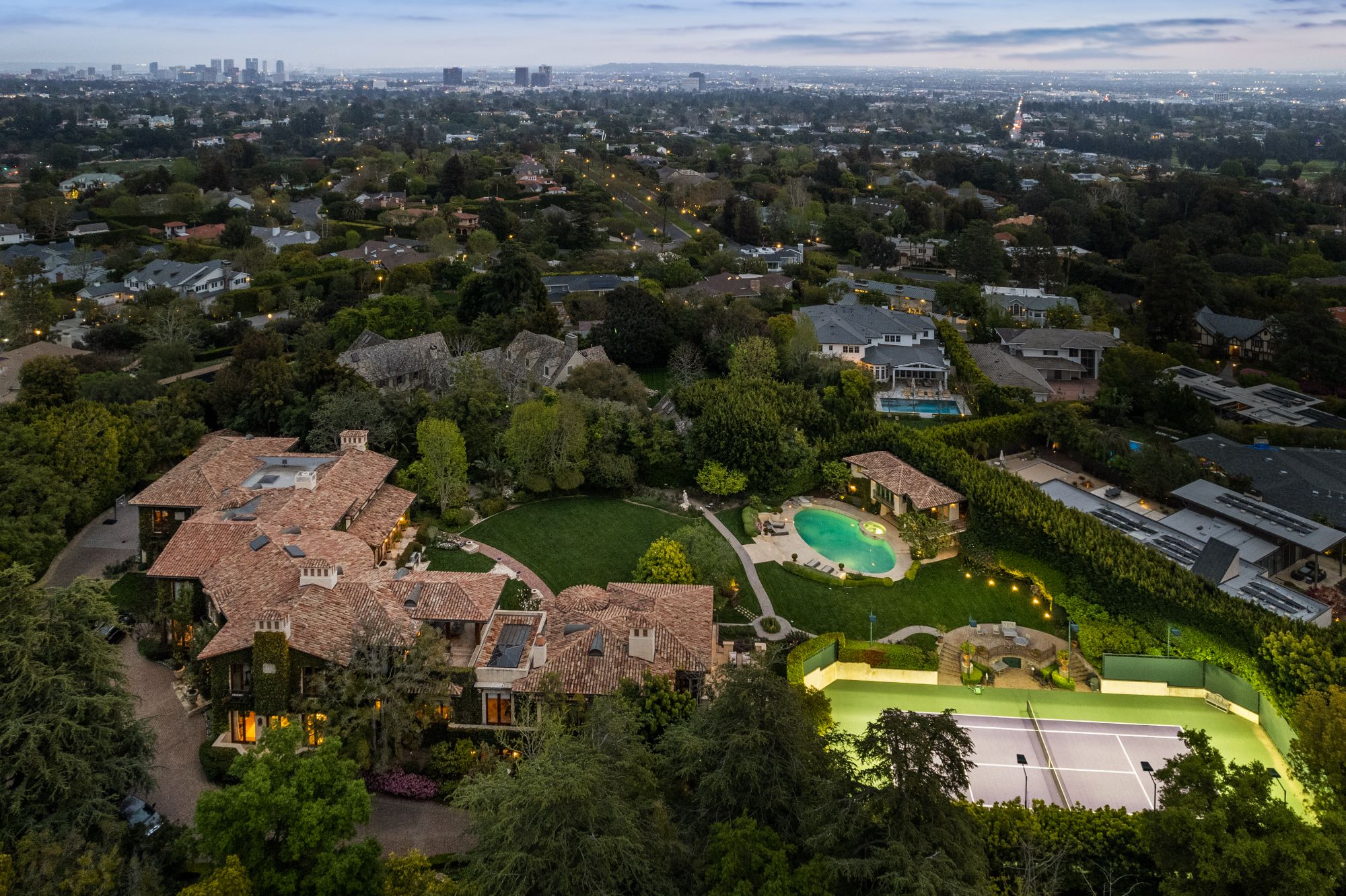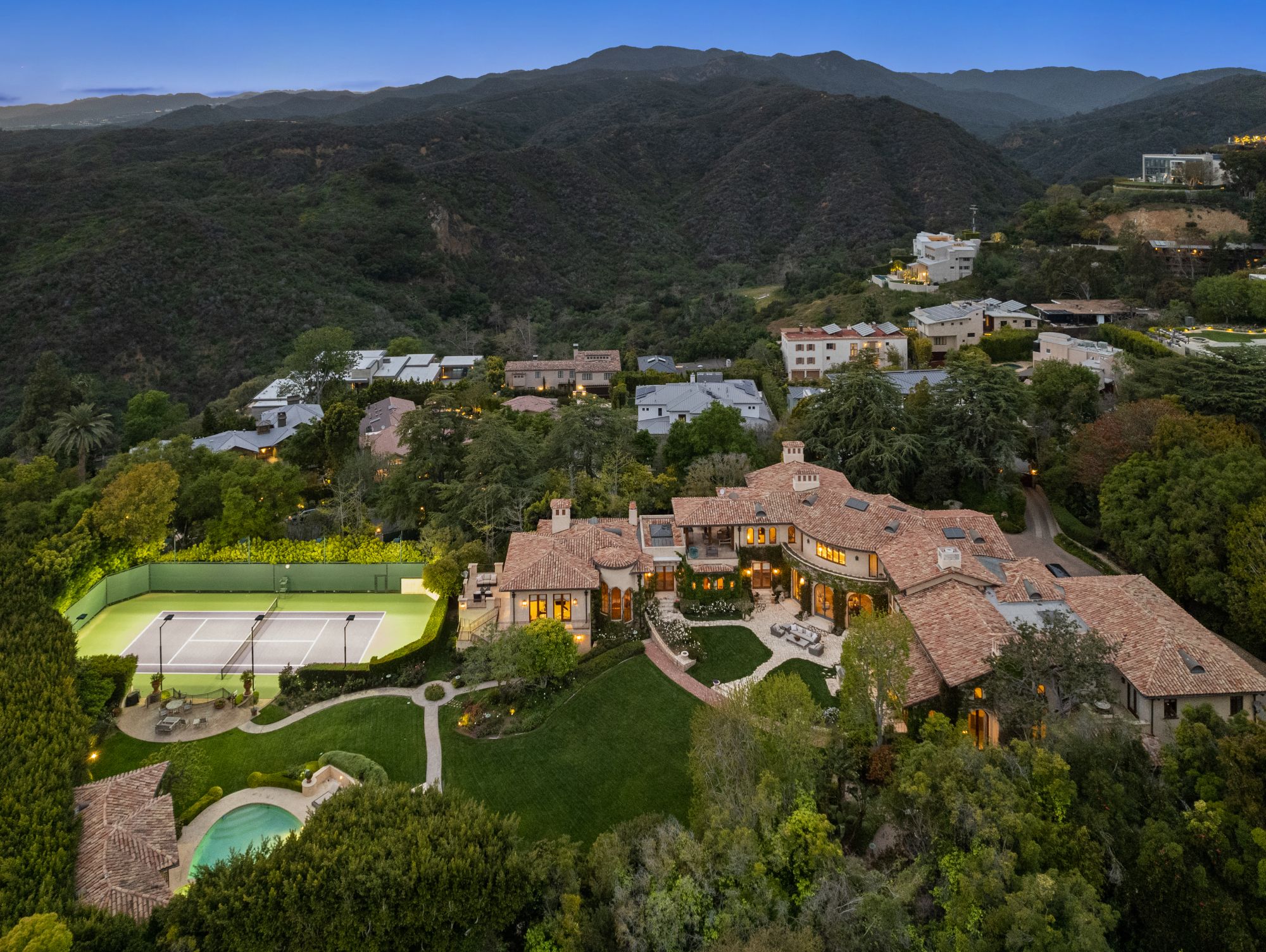 An estate of incomparable grandeur and legacy, this one-of-a-kind Villa is situated on a premier Pacific Palisades street, boasting ~2 acres of immaculate grounds with its own private tennis court. Designed by world-renowned architect Richard Landry, this estate showcases ultimate privacy, set behind large double gates and mature hedging on one of the largest lots in the Riviera. This estate consists of approximately 17,000 square feet of palatial living. Showcasing unparalleled design, this masterpiece is accented with the finest materials. This beautifully crafted Italian compound boasts 8 bedrooms, 15 bathrooms with an expansive floor plan showcasing grand scale, design and functionality. Drenched in natural light, the main home includes elaborate details and finishes with European imported stone, coffered and vaulted beamed ceilings, and rare biblical stone from Jerusalem. Highlights on the main level include a bright solarium, a luxury dining room with access to the grand chef's kitchen that exudes opulence with professional grade appliances, two islands with seating and a large pantry. Upstairs, the lavish primary suite includes a fireplace, sitting area, and private balcony that overlooks the grounds and has gorgeous ocean and canyon views. The spa-like bathroom includes dual layout, each having their own private space with showroom style walk-in closets. The home boasts multiple recreational areas including a screening room, large sitting/playroom upstairs, and a dedicated game room on the main level. Outdoor entertainment at its finest, the sizable backyard includes a newly restored lit private north/south tennis court with viewing area, putting green, built-in BBQ with dining and bask in the large pool/spa in the sun all day. The property also offers a 2-story, private 1-bedroom, 2-bathroom guest house that includes a full kitchen. This once-in-a-generation estate is one that you do not want to miss.