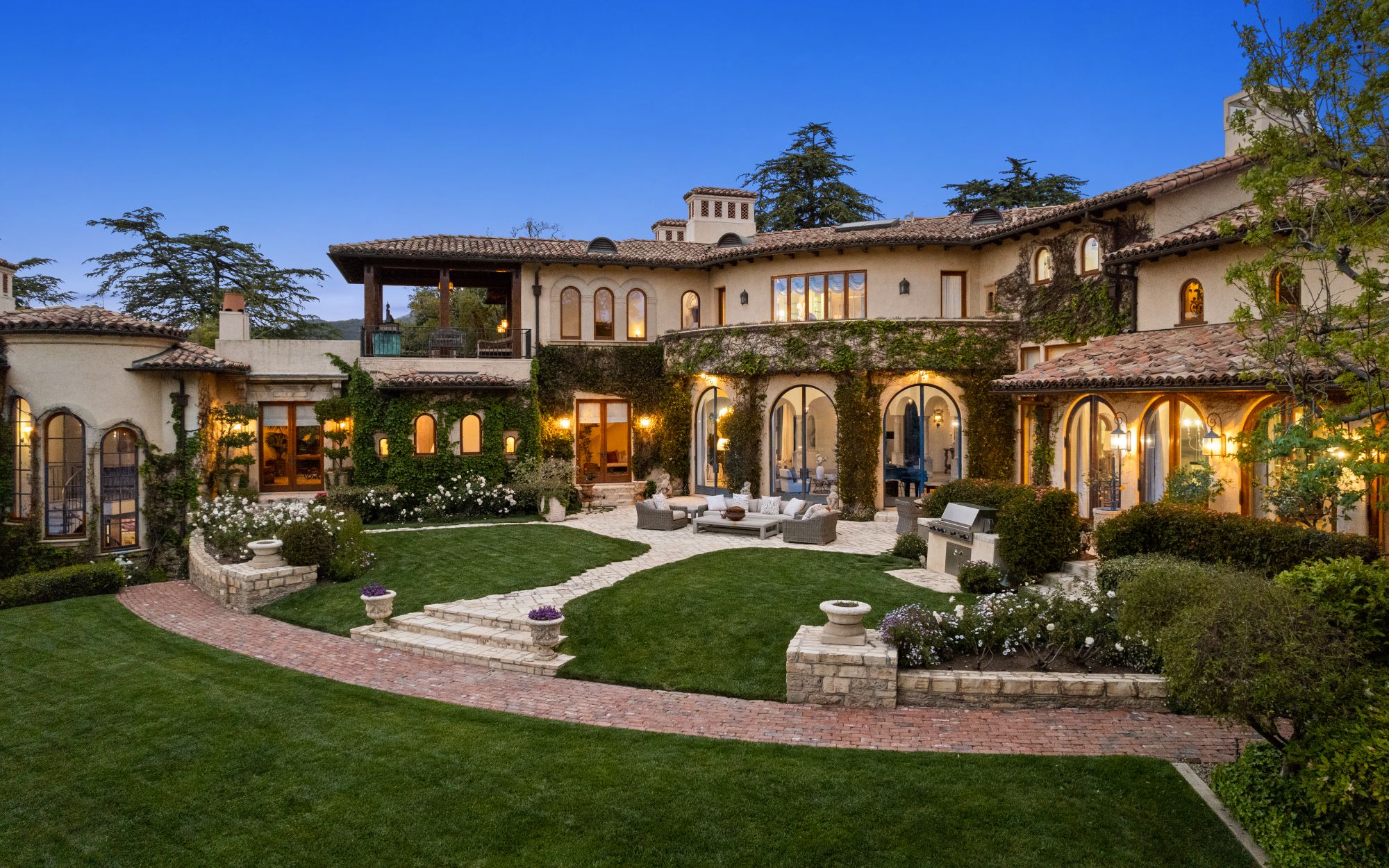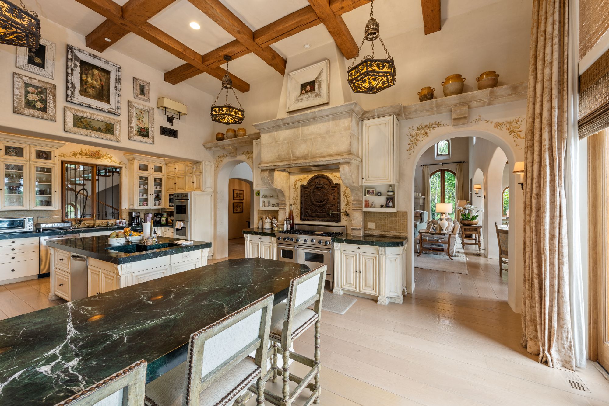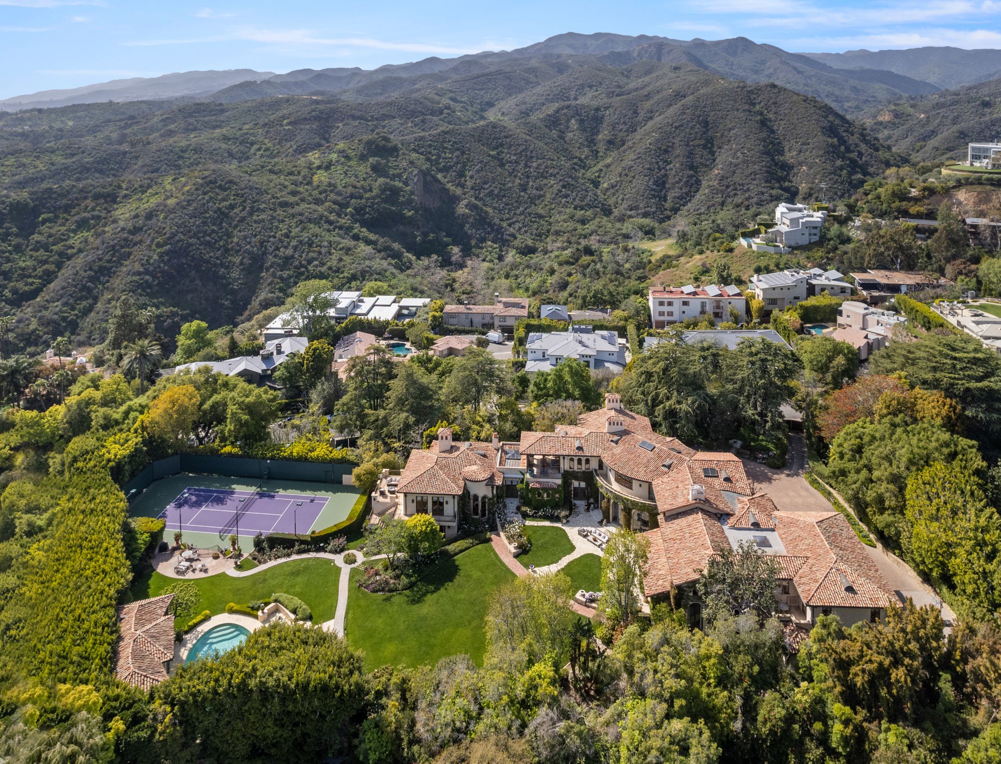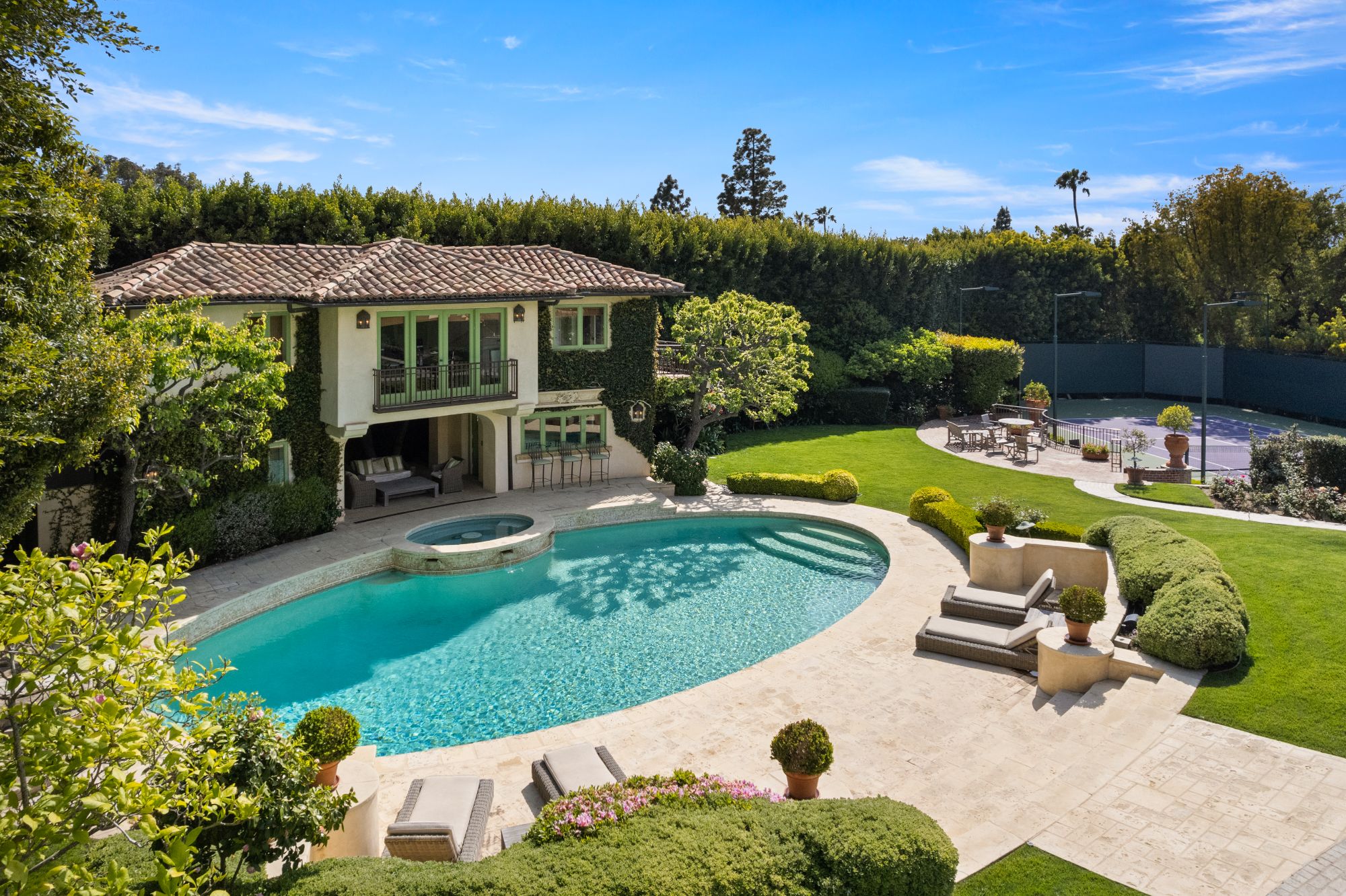 An estate of incomparable grandeur and legacy, this one-of-a-kind Villa is situated on a premier Pacific Palisades street, boasting ~2 acres of immaculate grounds with its own private tennis court. Designed by world-renowned architect Richard Landry, this estate showcases ultimate privacy, set behind large double gates and mature hedging on one of the largest lots in the Riviera. This estate consists of approximately 17,000 square feet of palatial living. Showcasing unparalleled design, this masterpiece is accented with the finest materials. This beautifully crafted Italian compound boasts 8 bedrooms, 15 bathrooms with an expansive floor plan showcasing grand scale, design and functionality. Drenched in natural light, the main home includes elaborate details and finishes with European imported stone, coffered and vaulted beamed ceilings, and rare biblical stone from Jerusalem. Highlights on the main level include a bright solarium, a luxury dining room with access to the grand chef's kitchen that exudes opulence with professional grade appliances, two islands with seating and a large pantry. Upstairs, the lavish primary suite includes a fireplace, sitting area, and private balcony that overlooks the grounds and has gorgeous ocean and canyon views. The spa-like bathroom includes dual layout, each having their own private space with showroom style walk-in closets. The home boasts multiple recreational areas including a screening room, large sitting/playroom upstairs, and a dedicated game room on the main level. Outdoor entertainment at its finest, the sizable backyard includes a newly restored lit private north/south tennis court with viewing area, putting green, built-in BBQ with dining and bask in the large pool/spa in the sun all day. The property also offers a 2-story, private 1-bedroom, 2-bathroom guest house that includes a full kitchen. This once-in-a-generation estate is one that you do not want to miss.