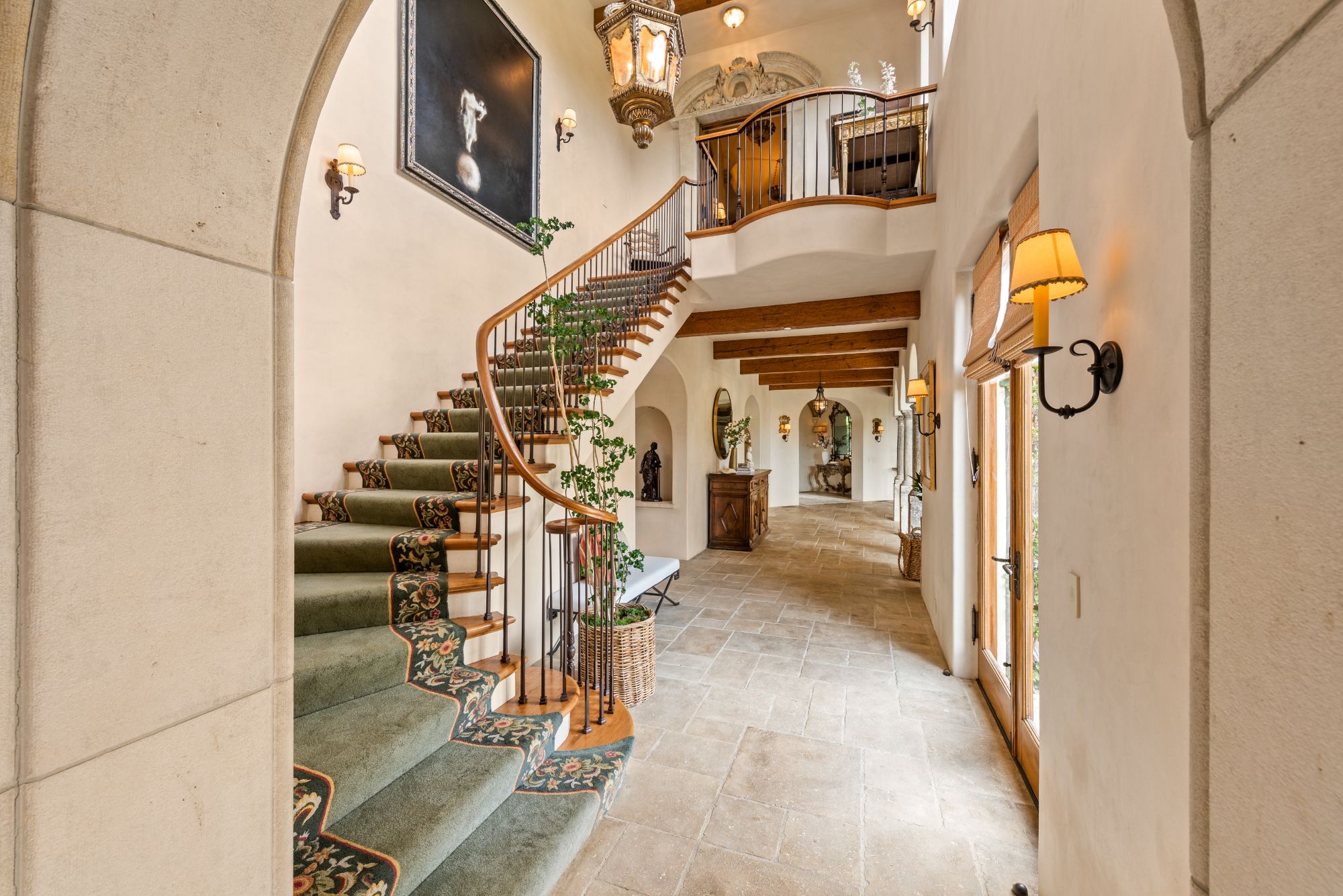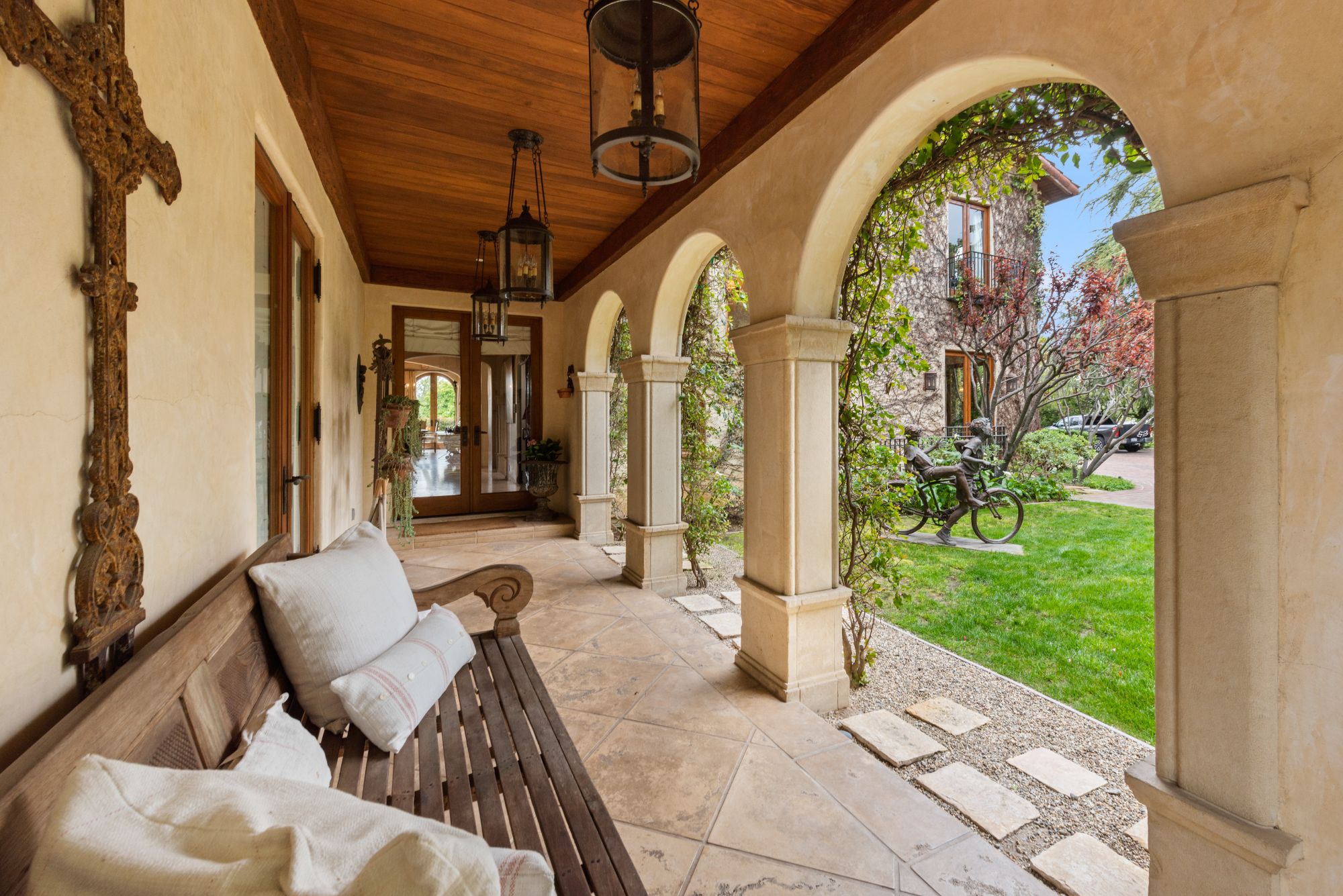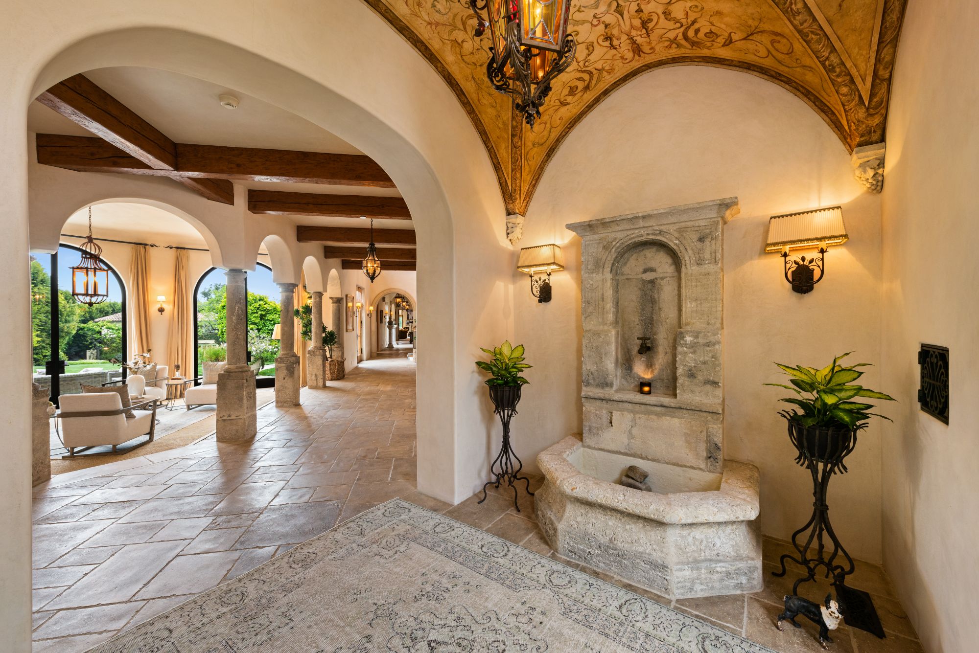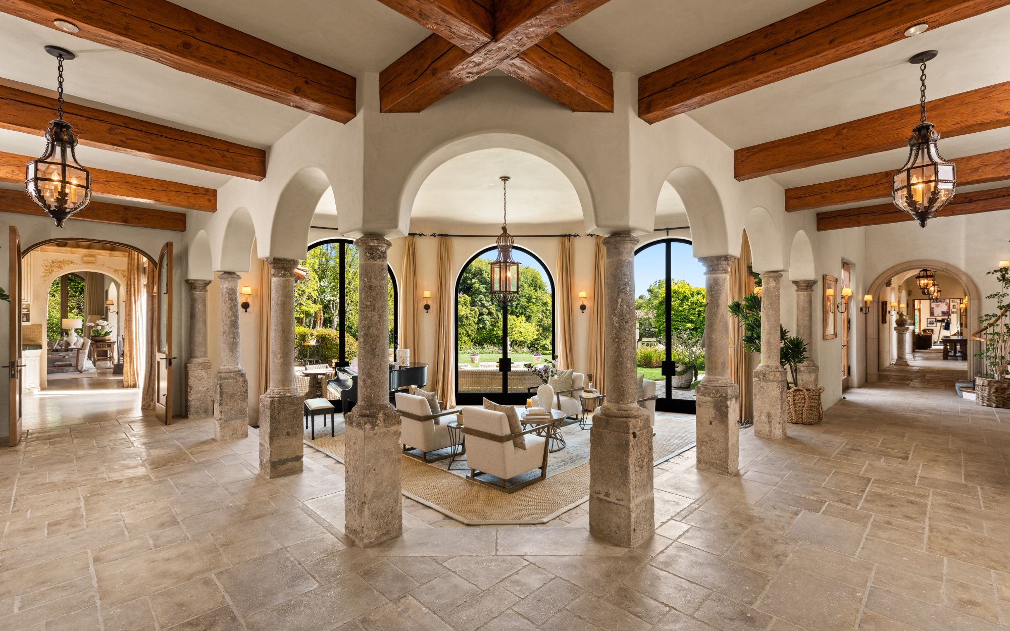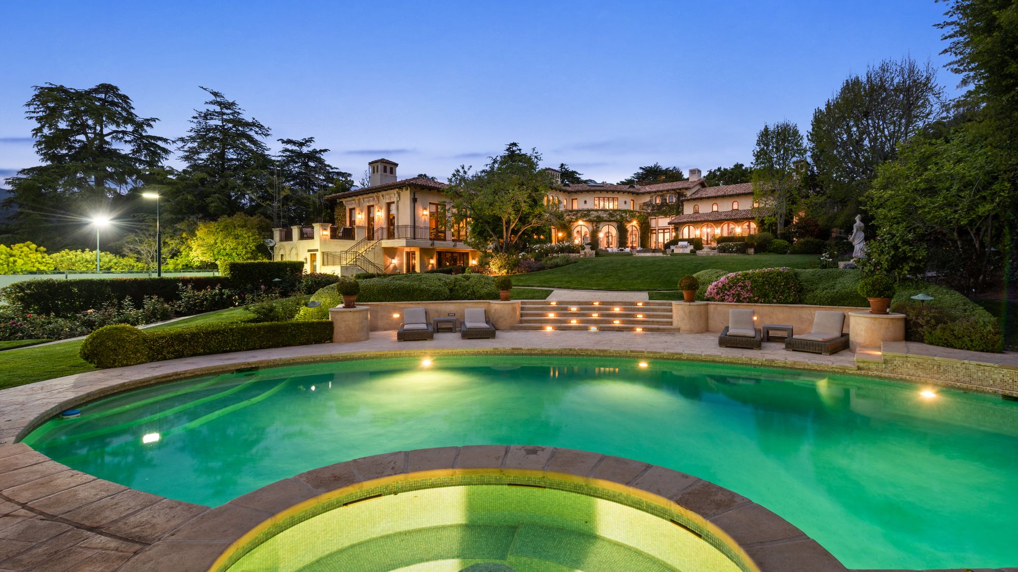 An estate of incomparable grandeur and legacy, this one-of-a-kind Villa is situated on a premier Pacific Palisades street, boasting ~2 acres of immaculate grounds with its own private tennis court. Designed by world-renowned architect Richard Landry, this estate showcases ultimate privacy, set behind large double gates and mature hedging on one of the largest lots in the Riviera. This estate consists of approximately 17,000 square feet of palatial living. Showcasing unparalleled design, this masterpiece is accented with the finest materials. This beautifully crafted Italian compound boasts 8 bedrooms, 15 bathrooms with an expansive floor plan showcasing grand scale, design and functionality. Drenched in natural light, the main home includes elaborate details and finishes with European imported stone, coffered and vaulted beamed ceilings, and rare biblical stone from Jerusalem. Highlights on the main level include a bright solarium, a luxury dining room with access to the grand chef's kitchen that exudes opulence with professional grade appliances, two islands with seating and a large pantry. Upstairs, the lavish primary suite includes a fireplace, sitting area, and private balcony that overlooks the grounds and has gorgeous ocean and canyon views. The spa-like bathroom includes dual layout, each having their own private space with showroom style walk-in closets. The home boasts multiple recreational areas including a screening room, large sitting/playroom upstairs, and a dedicated game room on the main level. Outdoor entertainment at its finest, the sizable backyard includes a newly restored lit private north/south tennis court with viewing area, putting green, built-in BBQ with dining and bask in the large pool/spa in the sun all day. The property also offers a 2-story, private 1-bedroom, 2-bathroom guest house that includes a full kitchen. This once-in-a-generation estate is one that you do not want to miss.