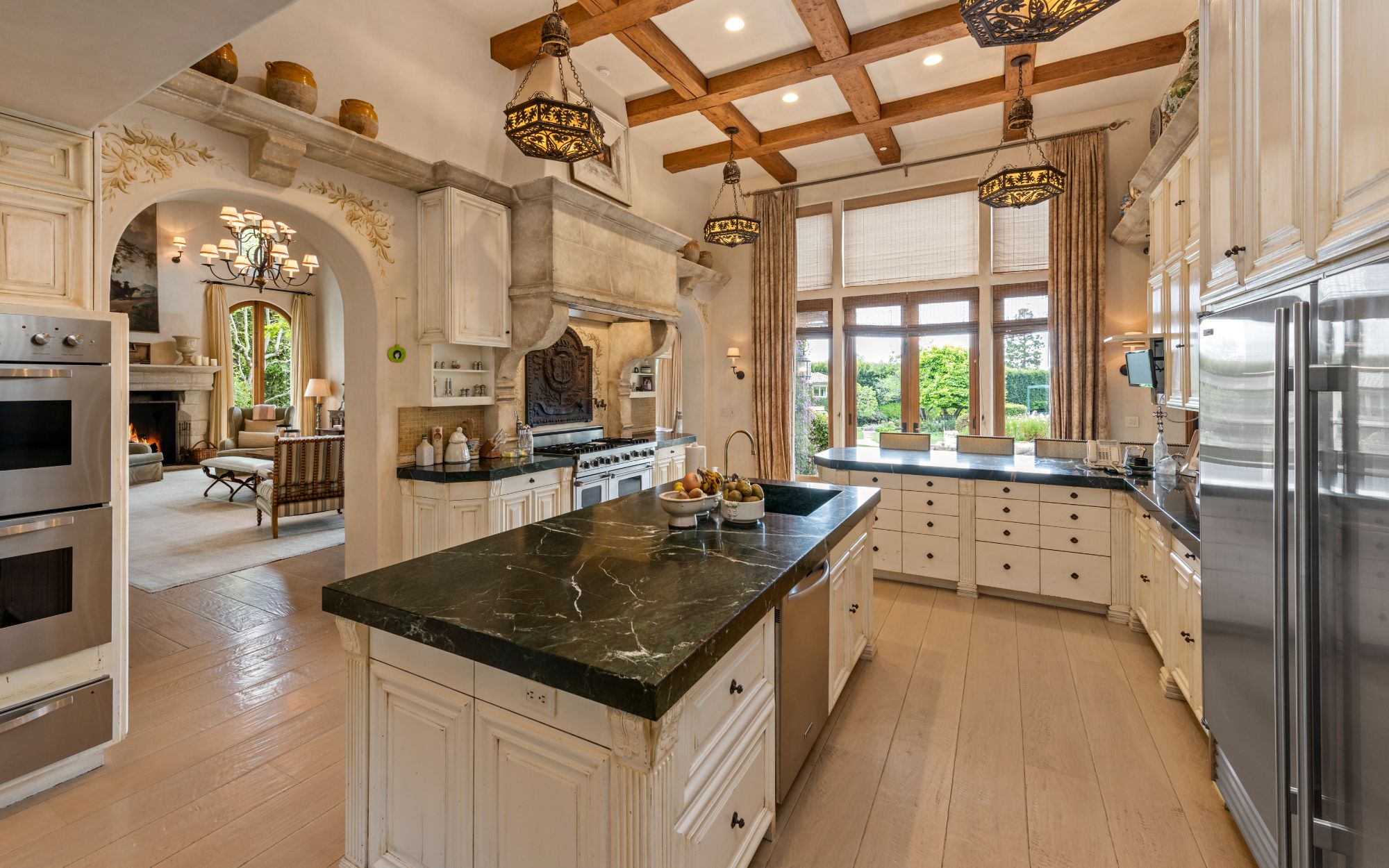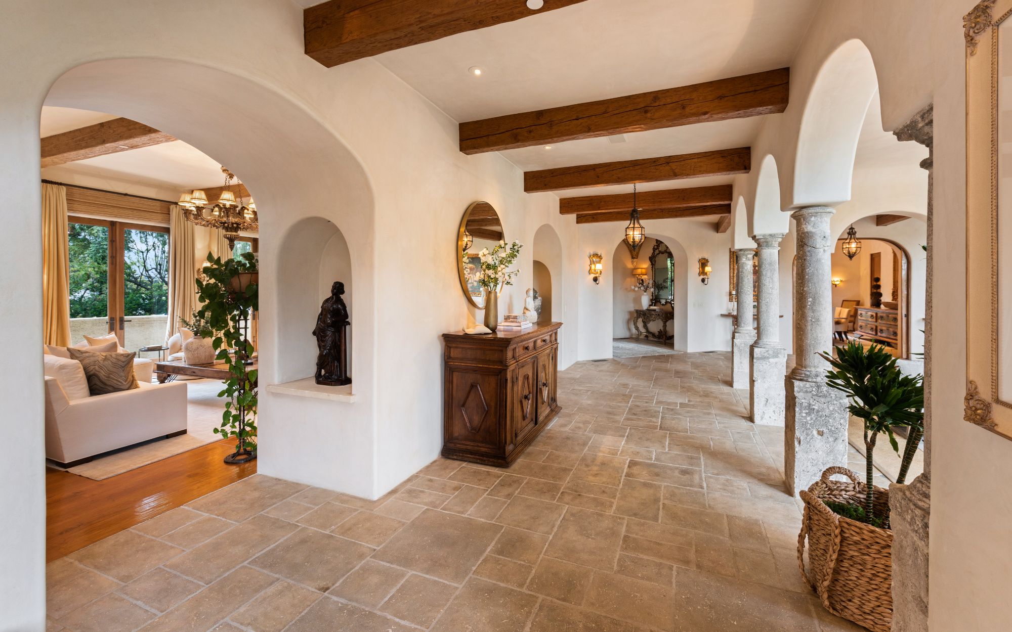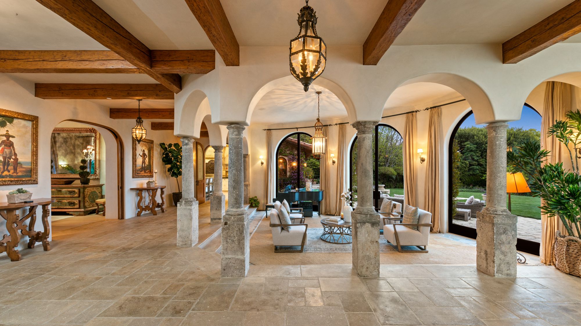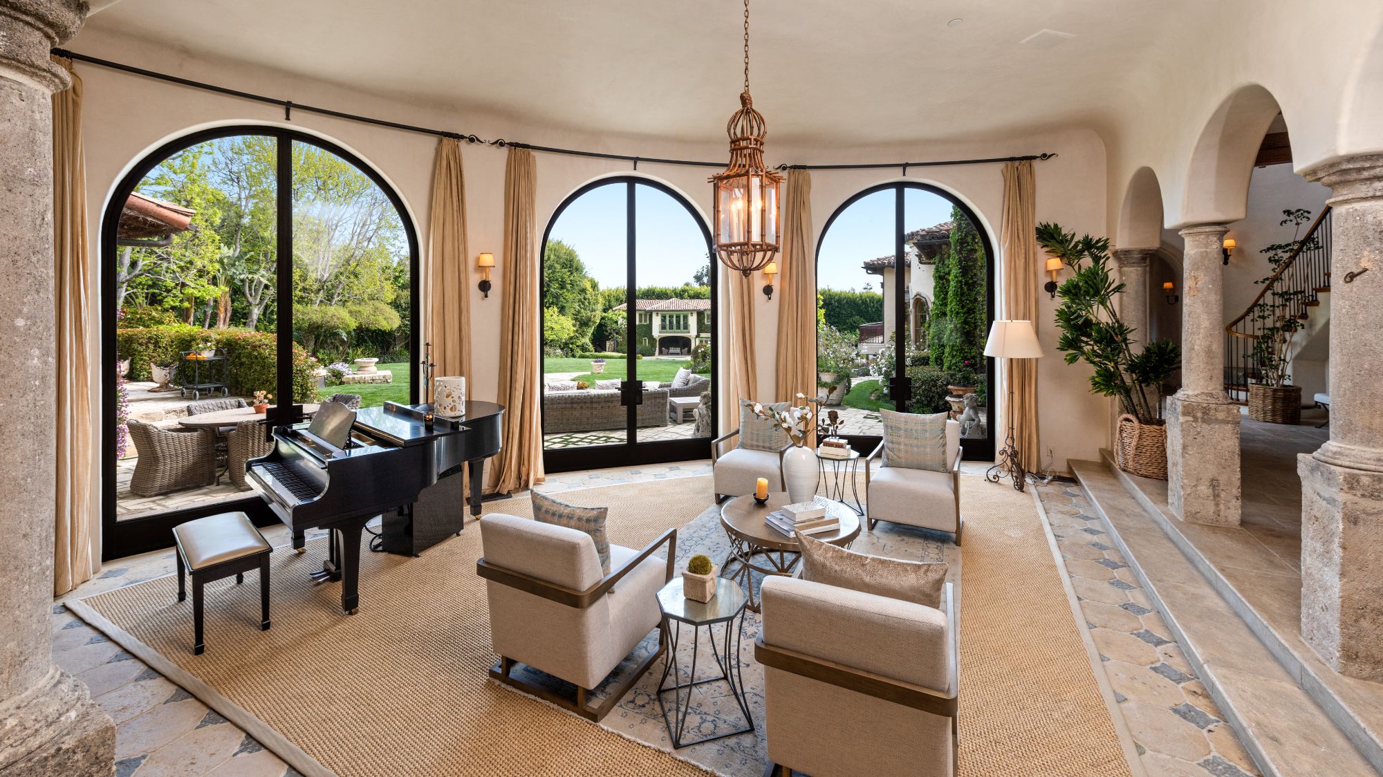 An estate of incomparable grandeur and legacy, this one-of-a-kind Villa is situated on a premier Pacific Palisades street, boasting ~2 acres of immaculate grounds with its own private tennis court. Designed by world-renowned architect Richard Landry, this estate showcases ultimate privacy, set behind large double gates and mature hedging on one of the largest lots in the Riviera. This estate consists of approximately 17,000 square feet of palatial living. Showcasing unparalleled design, this masterpiece is accented with the finest materials. This beautifully crafted Italian compound boasts 8 bedrooms, 15 bathrooms with an expansive floor plan showcasing grand scale, design and functionality. Drenched in natural light, the main home includes elaborate details and finishes with European imported stone, coffered and vaulted beamed ceilings, and rare biblical stone from Jerusalem. Highlights on the main level include a bright solarium, a luxury dining room with access to the grand chef's kitchen that exudes opulence with professional grade appliances, two islands with seating and a large pantry. Upstairs, the lavish primary suite includes a fireplace, sitting area, and private balcony that overlooks the grounds and has gorgeous ocean and canyon views. The spa-like bathroom includes dual layout, each having their own private space with showroom style walk-in closets. The home boasts multiple recreational areas including a screening room, large sitting/playroom upstairs, and a dedicated game room on the main level. Outdoor entertainment at its finest, the sizable backyard includes a newly restored lit private north/south tennis court with viewing area, putting green, built-in BBQ with dining and bask in the large pool/spa in the sun all day. The property also offers a 2-story, private 1-bedroom, 2-bathroom guest house that includes a full kitchen. This once-in-a-generation estate is one that you do not want to miss.