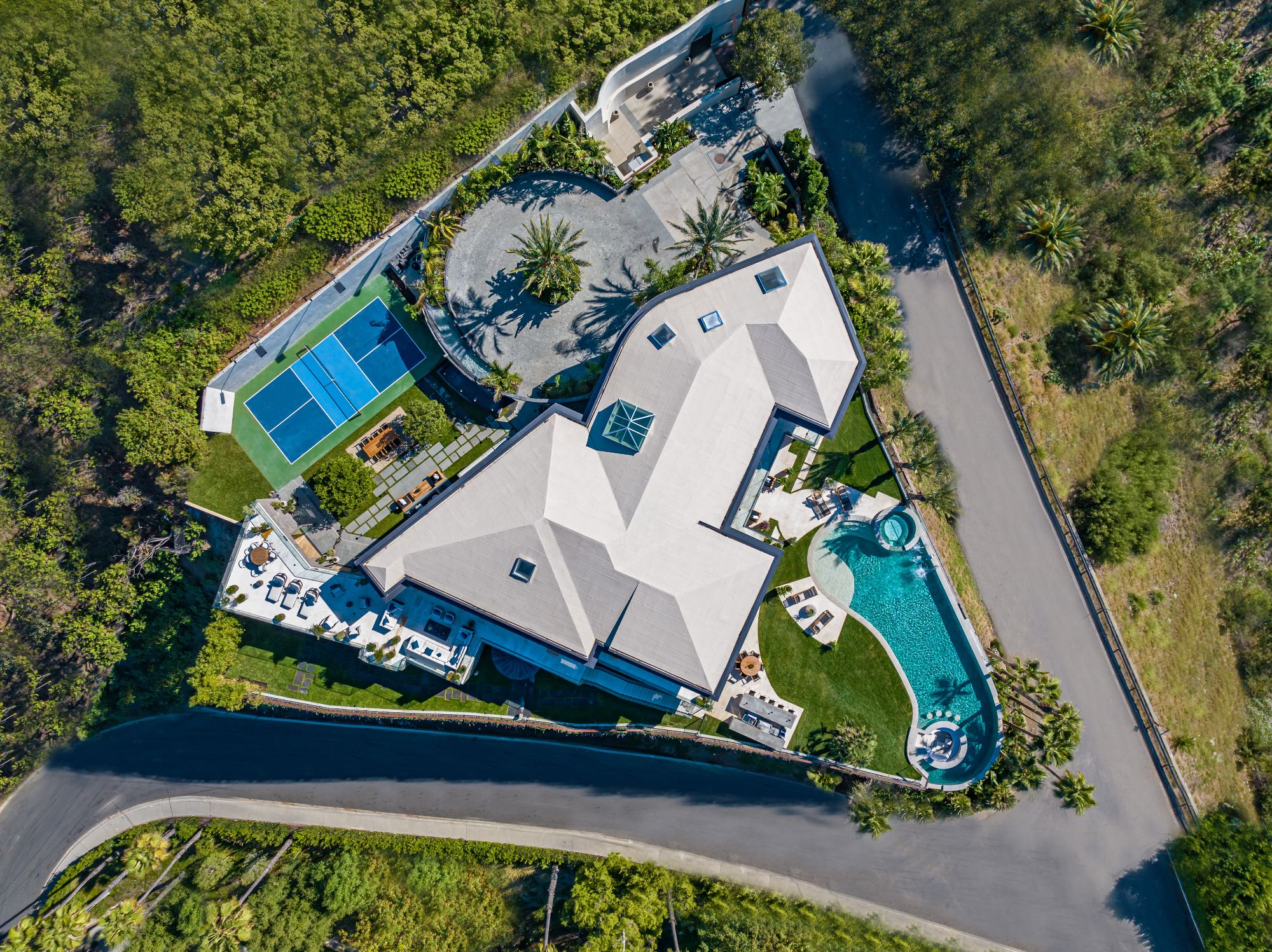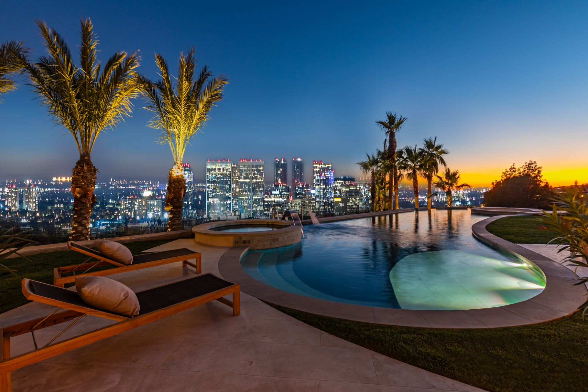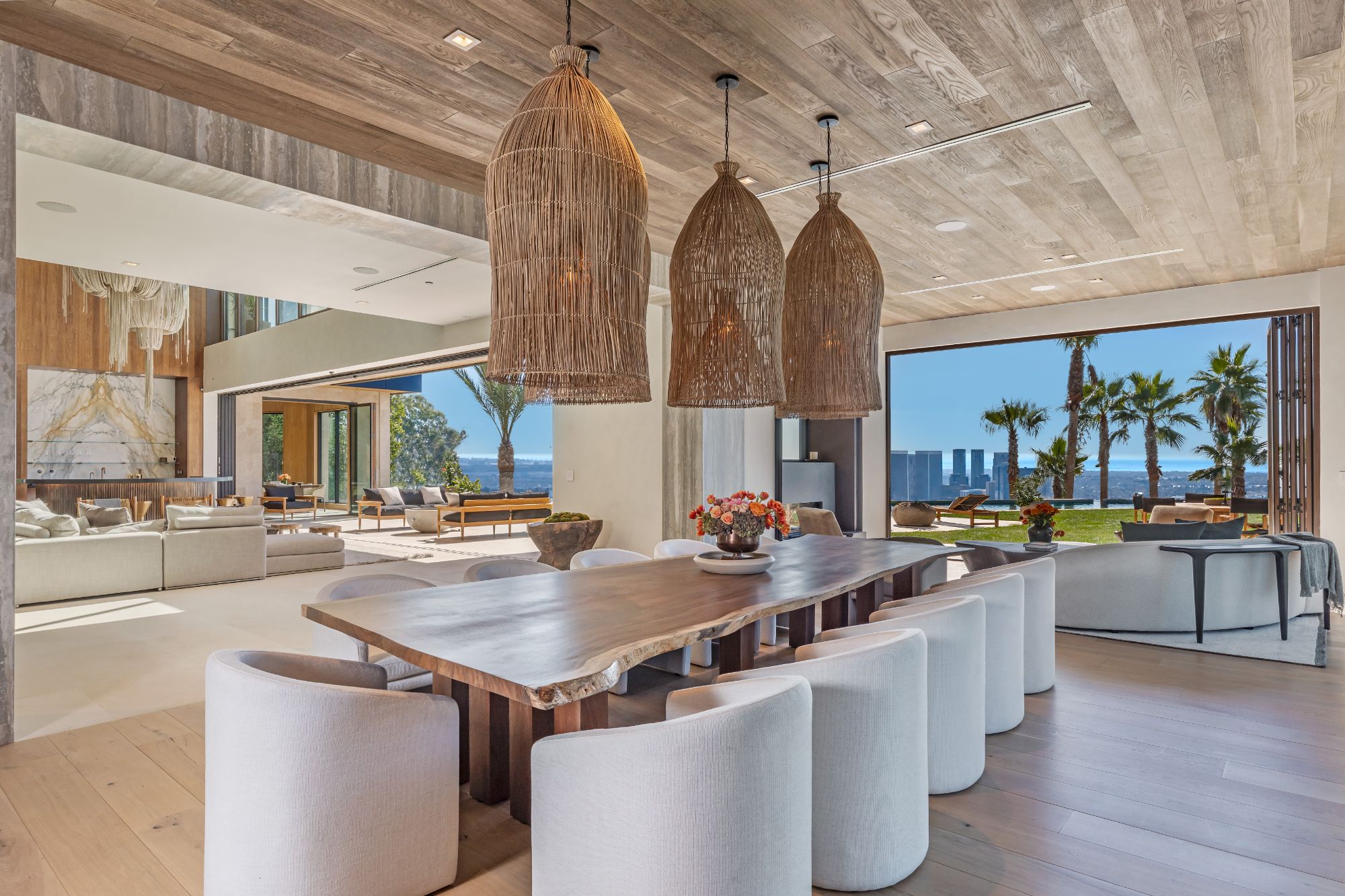 Welcome to Summitridge, the first ultra-luxury private residence Designed by visionary, Richard Heyman. Set on a 24,000 SF flat promontory with panoramic views this stunning 19,000 SF estate offers 7BD, 11BA and features the latest and greatest amenities to create a resort-like experience. A circular drive, surrounded by a waterfall and lush greenery, sets the mood for this Balinese-influenced home. Stones and finishes curated from Bali are used throughout the home to create serene atmosphere. Oversized glass doors slide open for seamless indoor/outdoor living. Enjoy the views from the outdoor oasis with 70 ft pool, spa, sunken seating area with fire pit, large patio area, outdoor kitchen, and lush foliage. Wellness options include a gym and outdoor pickleball court, both with mountain views. Two spacious primary suites with private balconies and fireplaces offer sweeping views. 5 additional bedrooms, including a 2BD, 2BA guest apartment with kitchen and living room, provide plenty of space for family and friends. The lower-level lounge is perfect for entertaining with a full bar, tasting room, 500-bottle tequila display, a 2,000-bottle wine cellar, poker room, and luxurious theater. Additional amenities include a glass elevator and 3,000 SF finished garage. Don’t miss your opportunity to live in this Balinese-inspired paradise set in the heart of Beverly Hills.