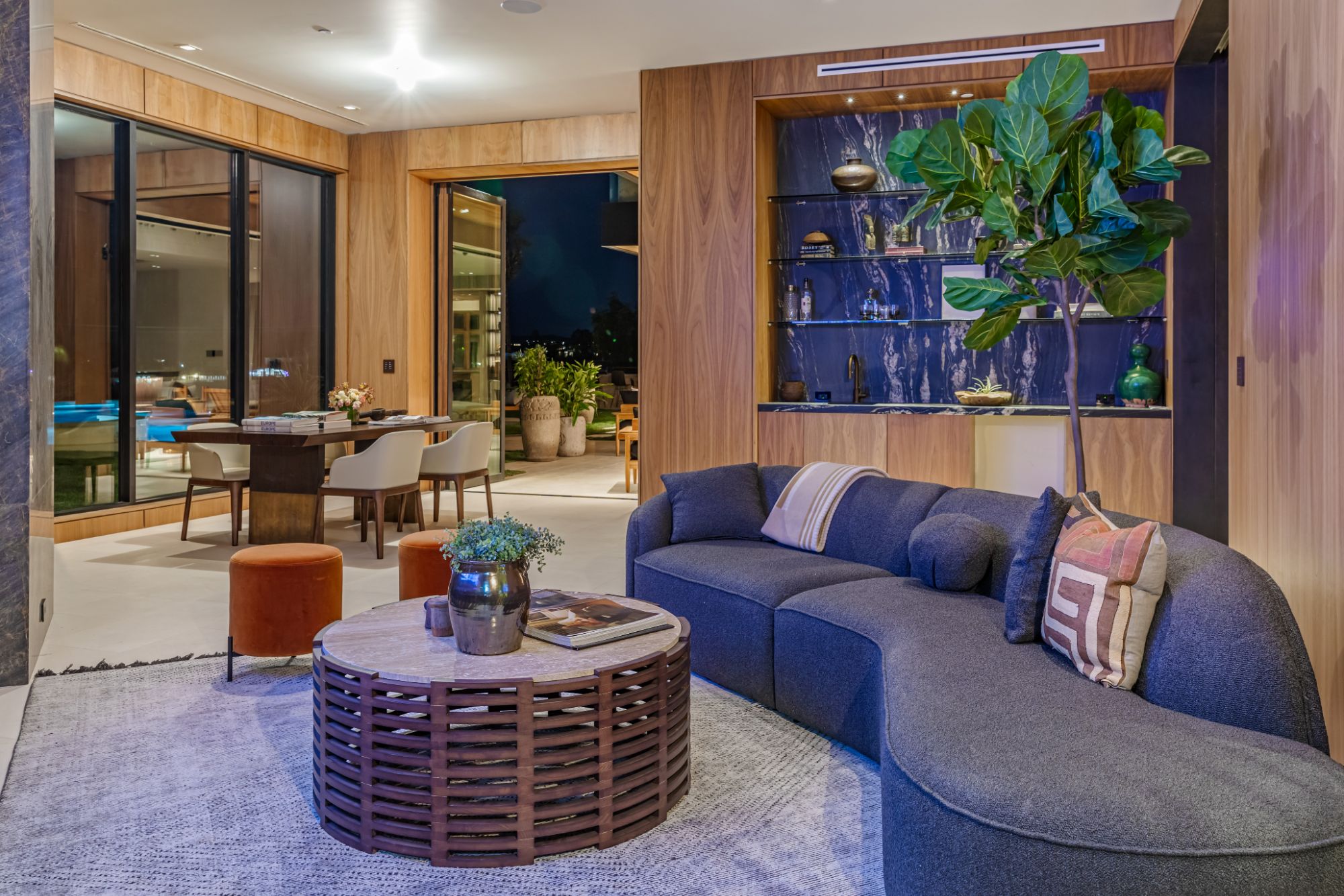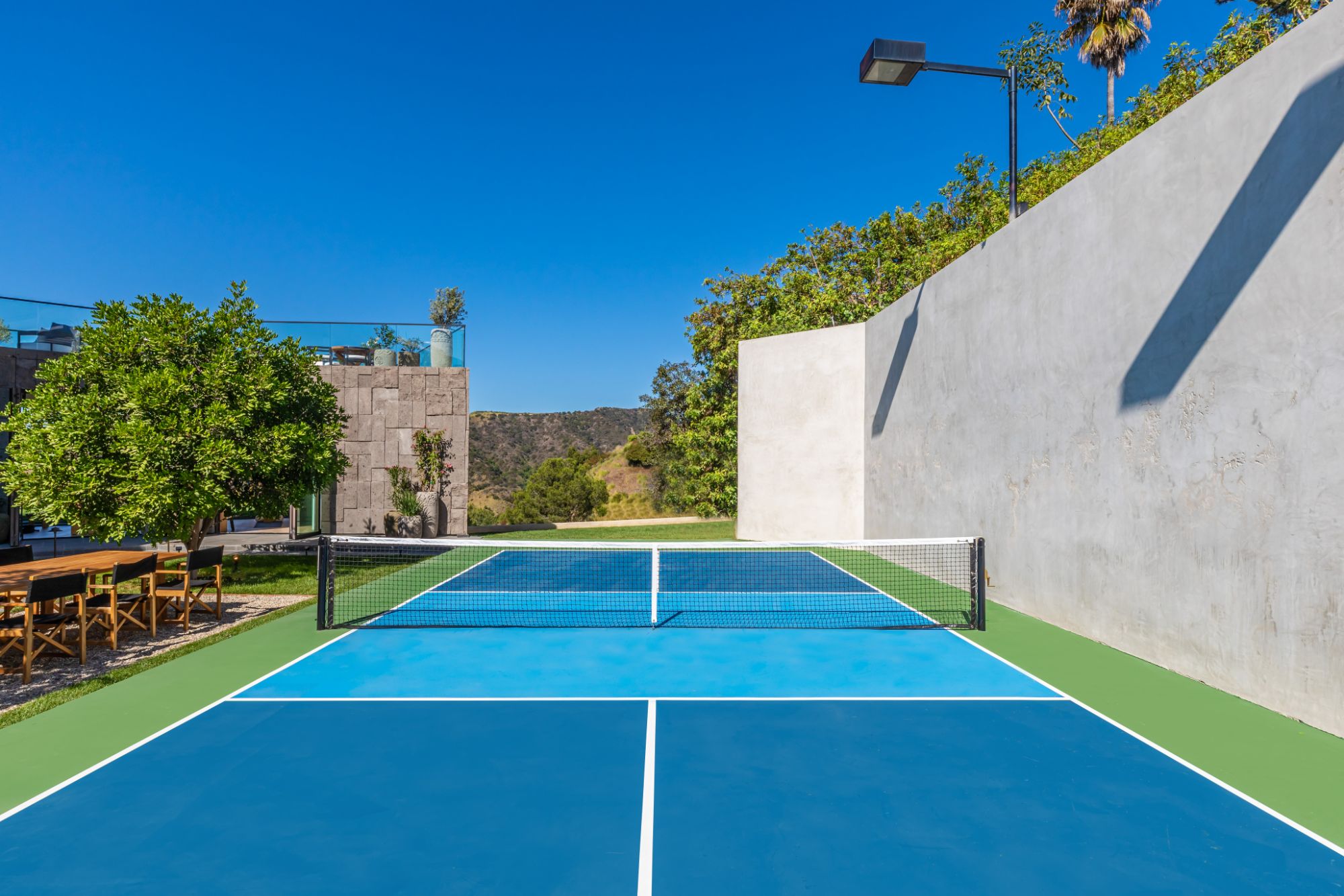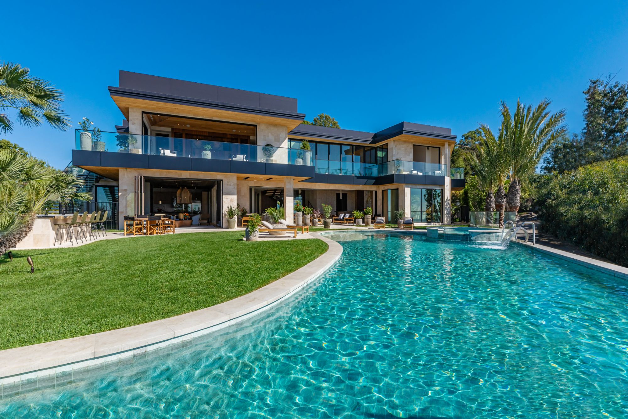 Welcome to Summitridge, the first ultra-luxury private residence Designed by visionary, Richard Heyman. Set on a 24,000 SF flat promontory with panoramic views this stunning 19,000 SF estate offers 7BD, 11BA and features the latest and greatest amenities to create a resort-like experience. A circular drive, surrounded by a waterfall and lush greenery, sets the mood for this Balinese-influenced home. Stones and finishes curated from Bali are used throughout the home to create serene atmosphere. Oversized glass doors slide open for seamless indoor/outdoor living. Enjoy the views from the outdoor oasis with 70 ft pool, spa, sunken seating area with fire pit, large patio area, outdoor kitchen, and lush foliage. Wellness options include a gym and outdoor pickleball court, both with mountain views. Two spacious primary suites with private balconies and fireplaces offer sweeping views. 5 additional bedrooms, including a 2BD, 2BA guest apartment with kitchen and living room, provide plenty of space for family and friends. The lower-level lounge is perfect for entertaining with a full bar, tasting room, 500-bottle tequila display, a 2,000-bottle wine cellar, poker room, and luxurious theater. Additional amenities include a glass elevator and 3,000 SF finished garage. Don’t miss your opportunity to live in this Balinese-inspired paradise set in the heart of Beverly Hills.