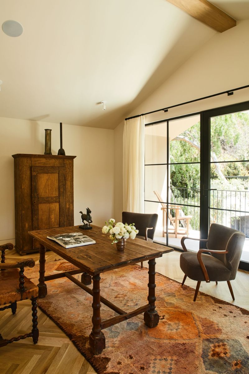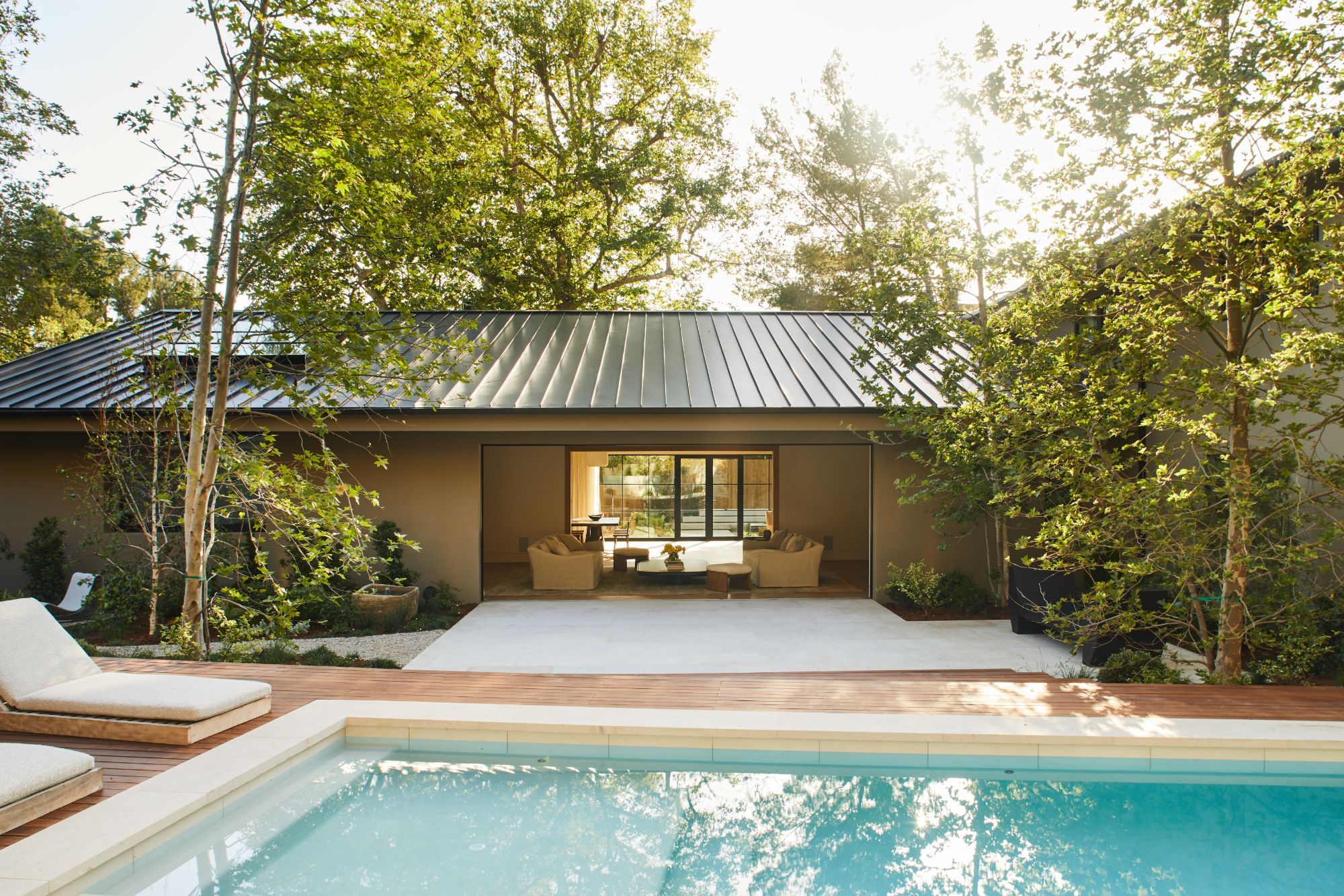Designed and built by OSKLO, this ultra-private and tranquil Belgian-inspired farmhouse in a forested setting of 100-year old Sycamore trees with city light views on a vast, exclusive flat lot in the famed Bird Streets. A one-of-a-kind compound set behind cedar gates and mature hedging, a cobblestone driveway leads to a stunning 7,620-SF retreat containing the foremost of interior and architectural design including dramatic custom stonework, herringbone white oak floors and custom metal windows. A warm and welcoming entertainer’s home, exceptional indoor-outdoor architecture is set between a living and dining room with 25-ft. ceiling and full-height windows framing formal, manicured gardens. An ethereal white paneled kitchen features butler’s pantry, chef’s pantry and pocket-windows facing a rear garden. The backyard is one of the biggest in Doheny Estates, stretching from a formal courtyard leading to a private outdoor dining room with pizza oven and outdoor kitchen to a sprawling lap pool, spa and magnificent 15-ft. outdoor fireplace. A separate pool house doubles as a screening room with 1,000-SF bar with blackened-steel pivot windows and views overlooking the main house and pool. Upstairs, a full-floor master suite with office features double balconies, fireplace, breakfast bar, his-hers custom bathroom vanities, soaking tub and perhaps one of the most magnificent showers in LA under a 20-ft. sky dome. Downstairs, 3 oversized bedrooms each features its own bathroom suite with floral views and private outdoor terraces. A design achievement to be treasured for generations in one of the few private compounds in Doheny Estates.