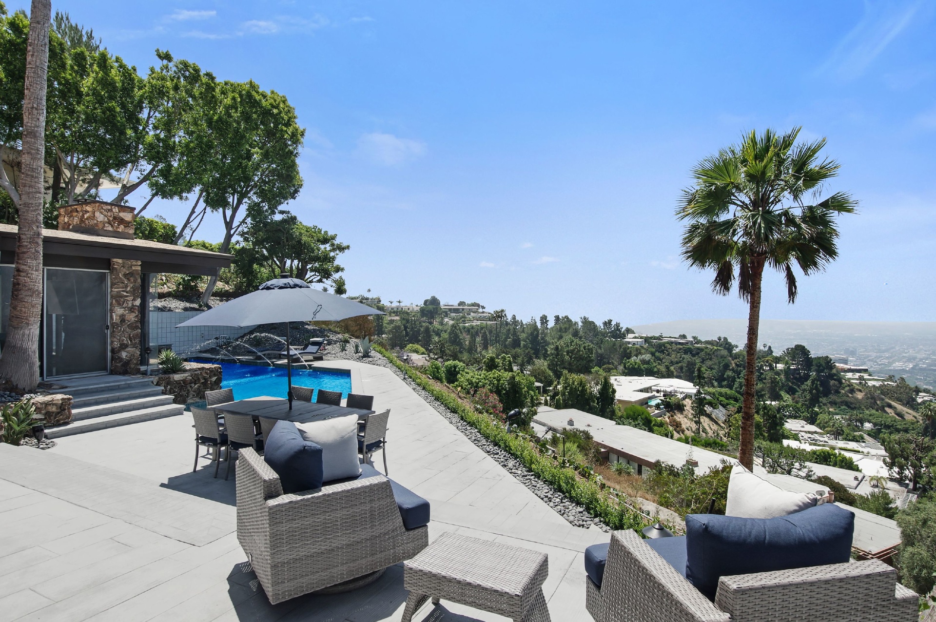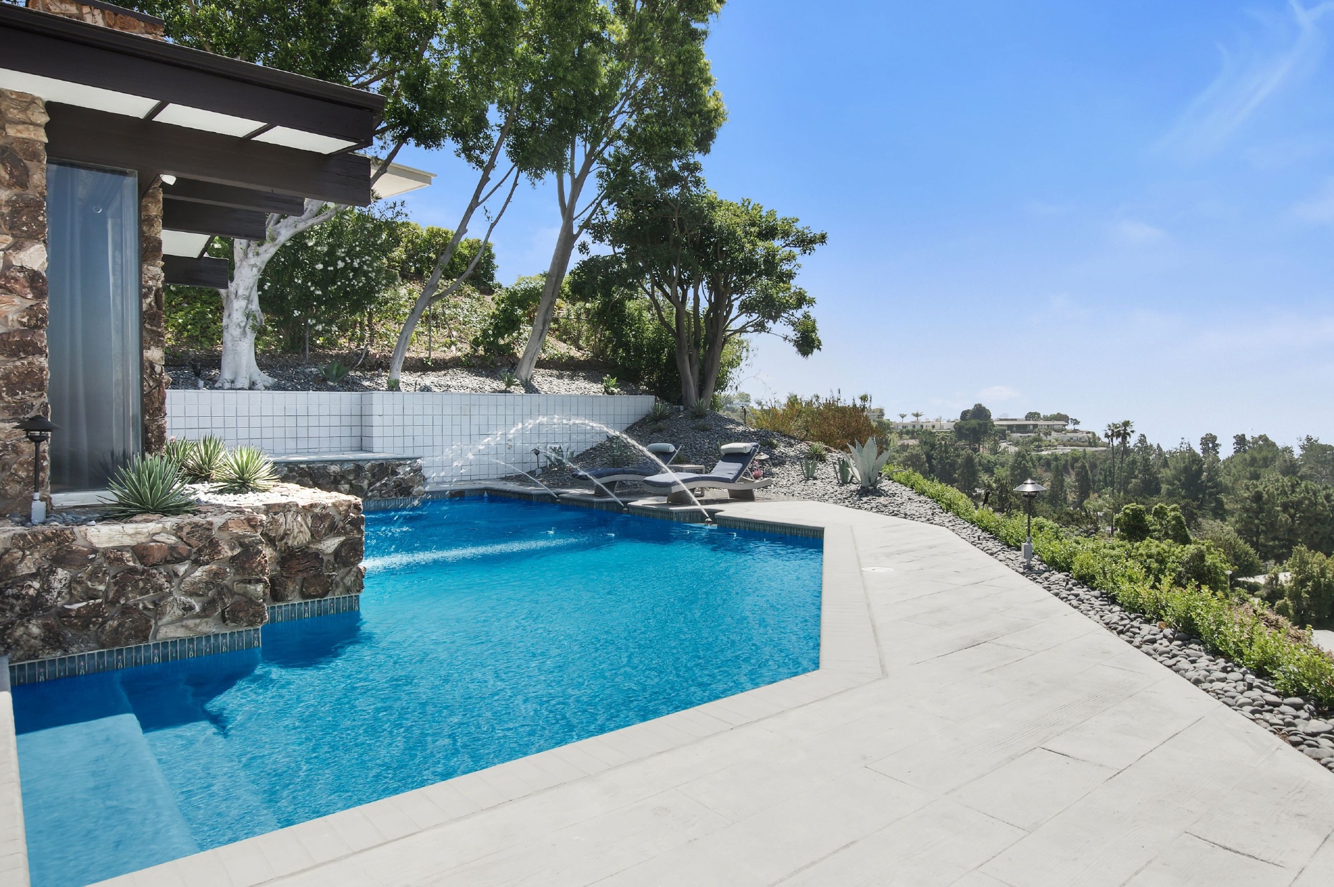 One of a kind Trousdale estate newly restored to its original 1967 mid-century modern grandeur. This home was originally custom built for Ron Waranch, president of construction & friend of Paul Trousdale. Affectionately named Trousdale Palms by the current owners, this is the definition of Trousdale history. With its sophisticated architecture, unique building materials, calming water features & breathtaking 180-degree panoramic city views, this home embodies Trousdale, Beverly Hills, & the ultimate American dream. Trousdale palms features 5 beds, 5 baths, custom kitchen w/new appliances. Rare Philippine mahogany handcrafted woodwork throughout & floor to ceiling views from every room. Step back in time & enjoy a game of pool in the mid-century game room, grab a cocktail & take it outside to the brand new pool, watch the sunset & the city come alive. With parking for 8 cars, enjoy this magnificent masterpiece that can be open & welcoming to friends & family at all times.