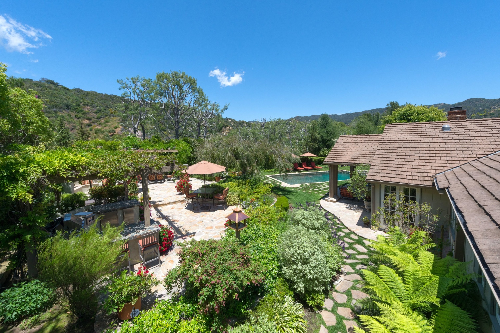 Located at the top of Camino De Yatasto on a wide flat street in The Palisades Highlands, one of the most undervalued places to live in the entire city. Set in it’s own microclimate w/perfect weather. This single level traditional backs up to the untouched Santa Monica Mountains & sits on over a half-acre lot in one of the most beautiful settings. This private and gated community has security staff on duty 24/7. A charming 6 bed, 5 bath with impeccable curb appeal includes a 3-car attached garage, grand entry, formal dining & living room w/fireplace. The large family room has pitched ceilings & exposed wood beams throughout. Take in the majestic mountain views from the fenced in 20,000 sf yard; an oasis complete w/pool, spa, outdoor kitchen, fireplace & dining area perfect for alfresco dining. This is the best of both worlds; a mountaintop paradise just minutes away from the beach, Getty Villa & hiking trails. Kick back & enjoy the life you deserve.