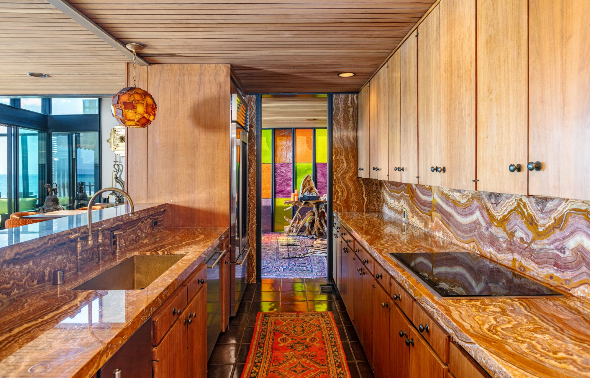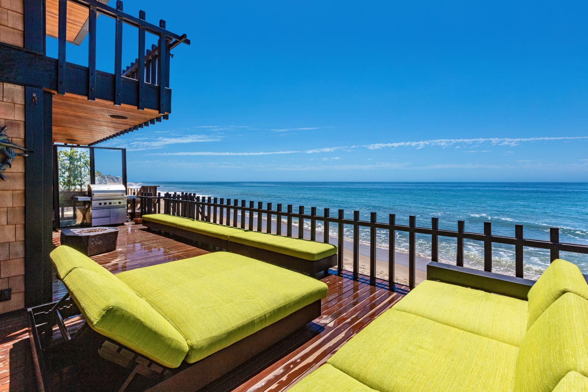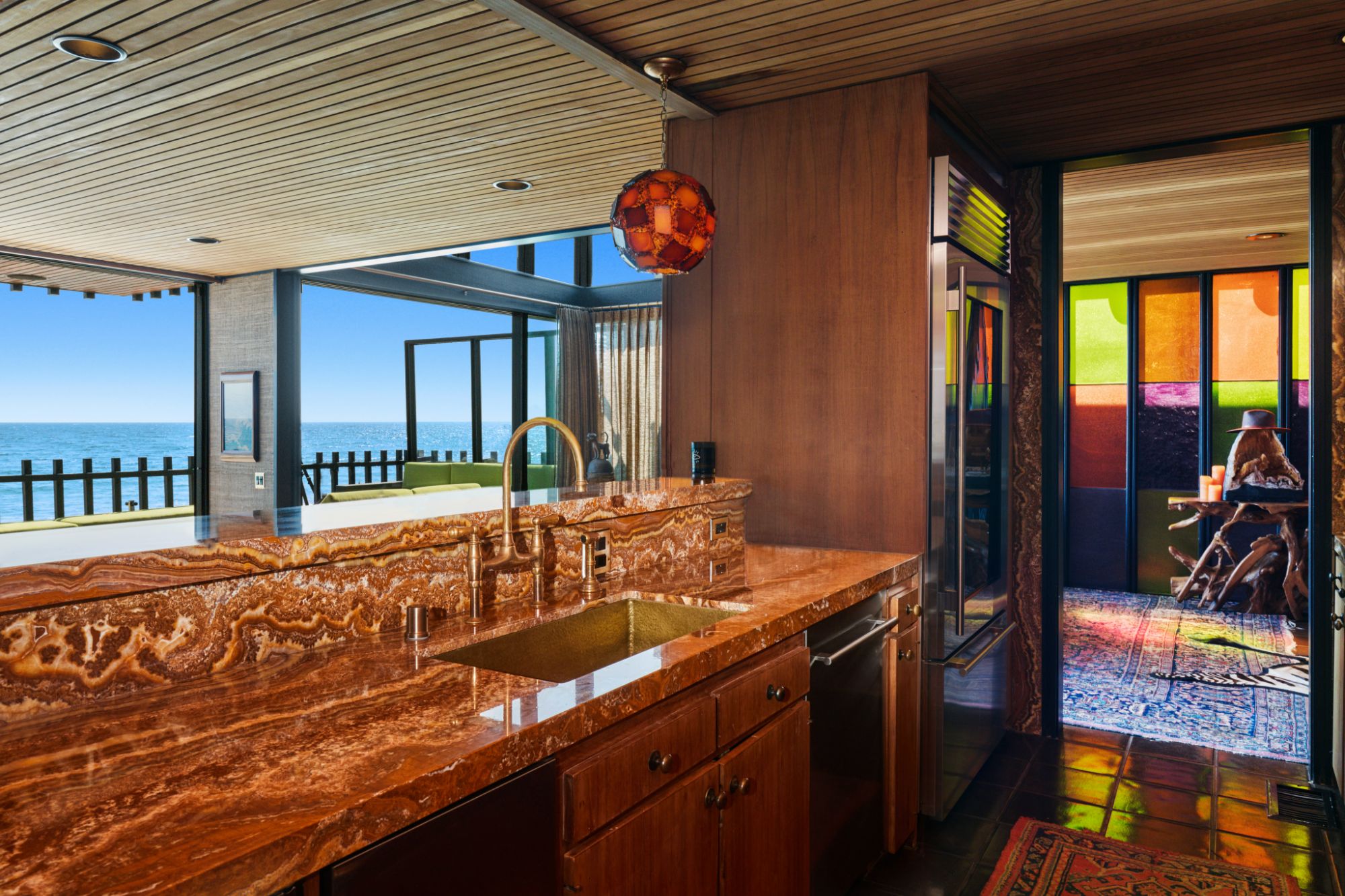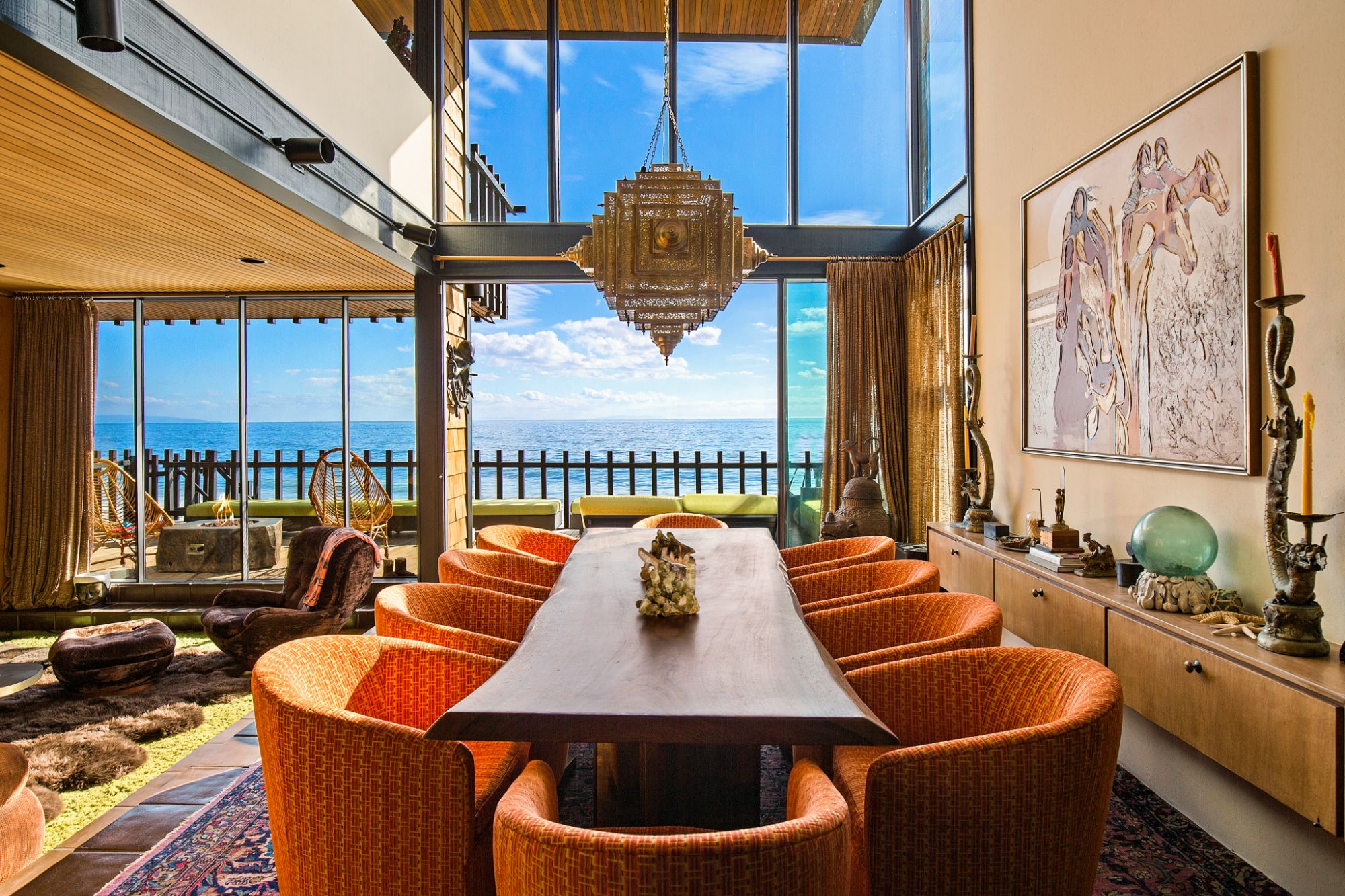 Fully restored architectural mid-century paradise beach house designed by legendary architecture firm Buff and Hensman, built in 1969; the summer of love. The Endless Summer House is located on one of the coolest family friendly beaches in Malibu, La Costa Beach, minutes away from downtown Santa Monica and downtown Malibu. Behind lush landscaping sits this cozy one-of-a-kind Malibu home, designed with the time era in mind. New Styleline sliding windows, Sunburnt orange Onyx kitchen and bathroom, double height Cedar ceilings, cedar exterior shingles, all the latest and greatest amenities and deck that jets out further than your neighbors for full privacy with a few steps down to the sandy beach, views of the Pacific Ocean and all its marine life, Catalina Island, and queen's necklace that sparkles at night. Features three bedrooms, three bathrooms. New Cedar hot tub, outdoor shower, outdoor fire pit. New Zealand green shag wool carpet, pounded brass sinks. New wall mounted Duravits black toilets, wallpapers from France and Asia, stained glass installations and bronze mirrors to give you flash backs to the golden age of Malibu. Properties like this very rarely come up here is your chance to live the endless summer.