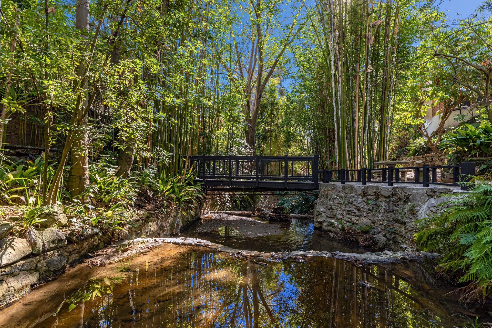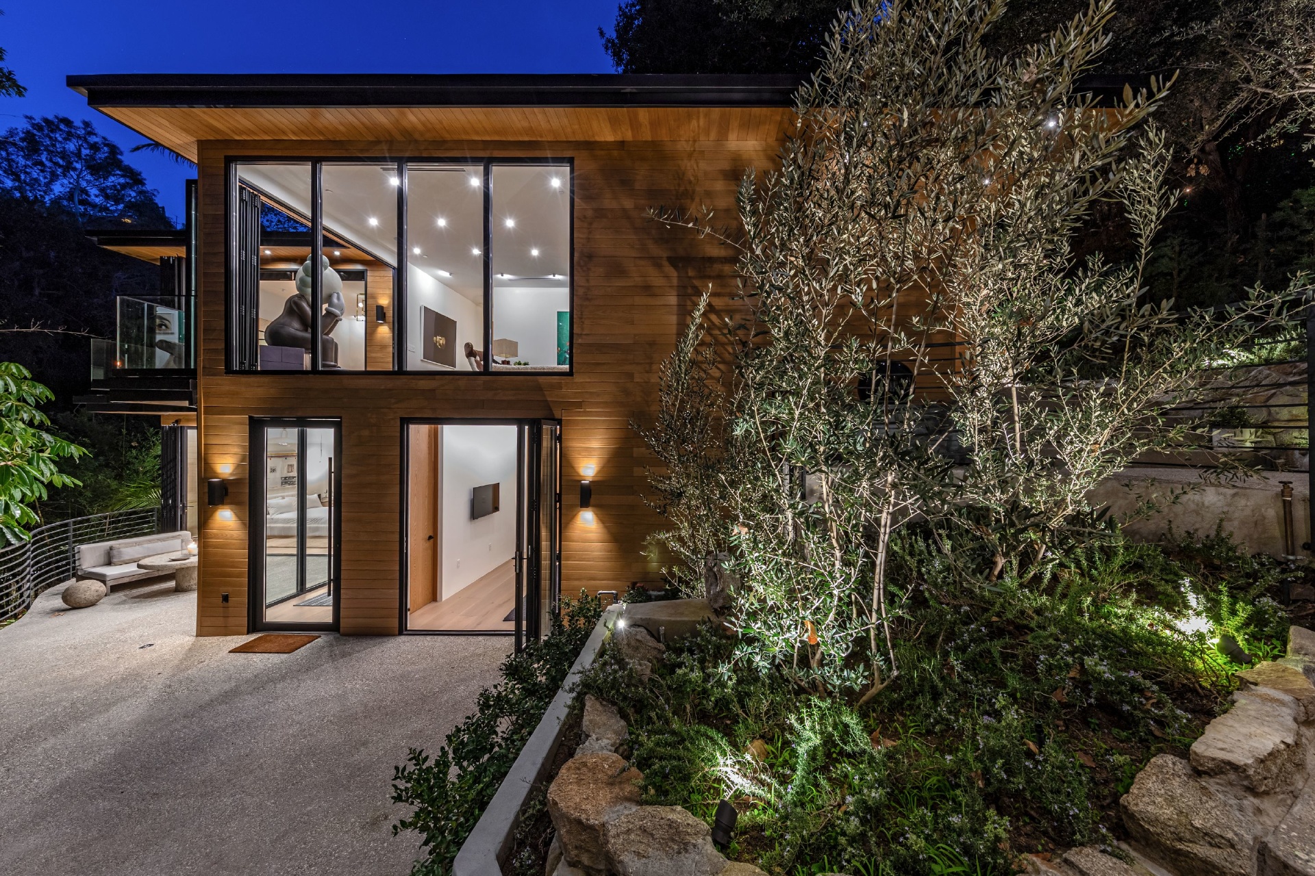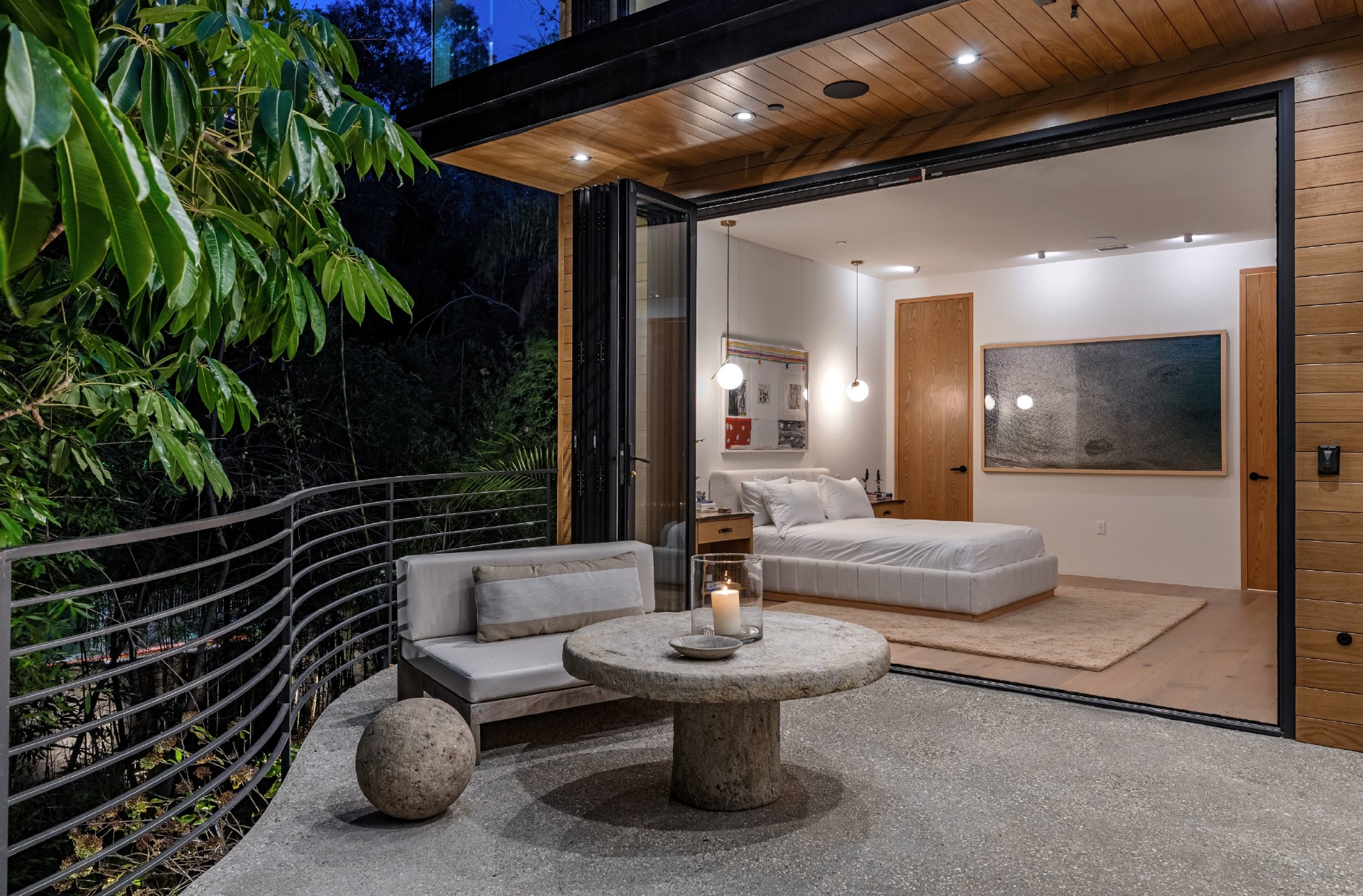 Welcome to Eight Palms, an organic modern private tropical retreat set in the celebrity enclave of Nichols Canyon. This secluded teak-clad dwelling is nestled among the trees and caressed by a trickling stream. Tucked away, yet standing proud in Nichols Canyon’s stunning natural beauty, the clean geometric lines and crisp angles of the structure lend a Zen-like quality that is punctuated by a glass sided pool, carved out of the hillside. Fully retractable sliding glass doors provide an airiness that invites all the natural elements at your whim. With an open-plan main living space and five inviting bedrooms, this sublime woodland residence will encourage you to stay home and relax. Wood, stone, glass, and rich earth tones abound, as the sounds of nature envelope you completely, creating a serene and truly harmonious atmosphere. This is the ultimate one of a kind private tropical oasis not to be missed.