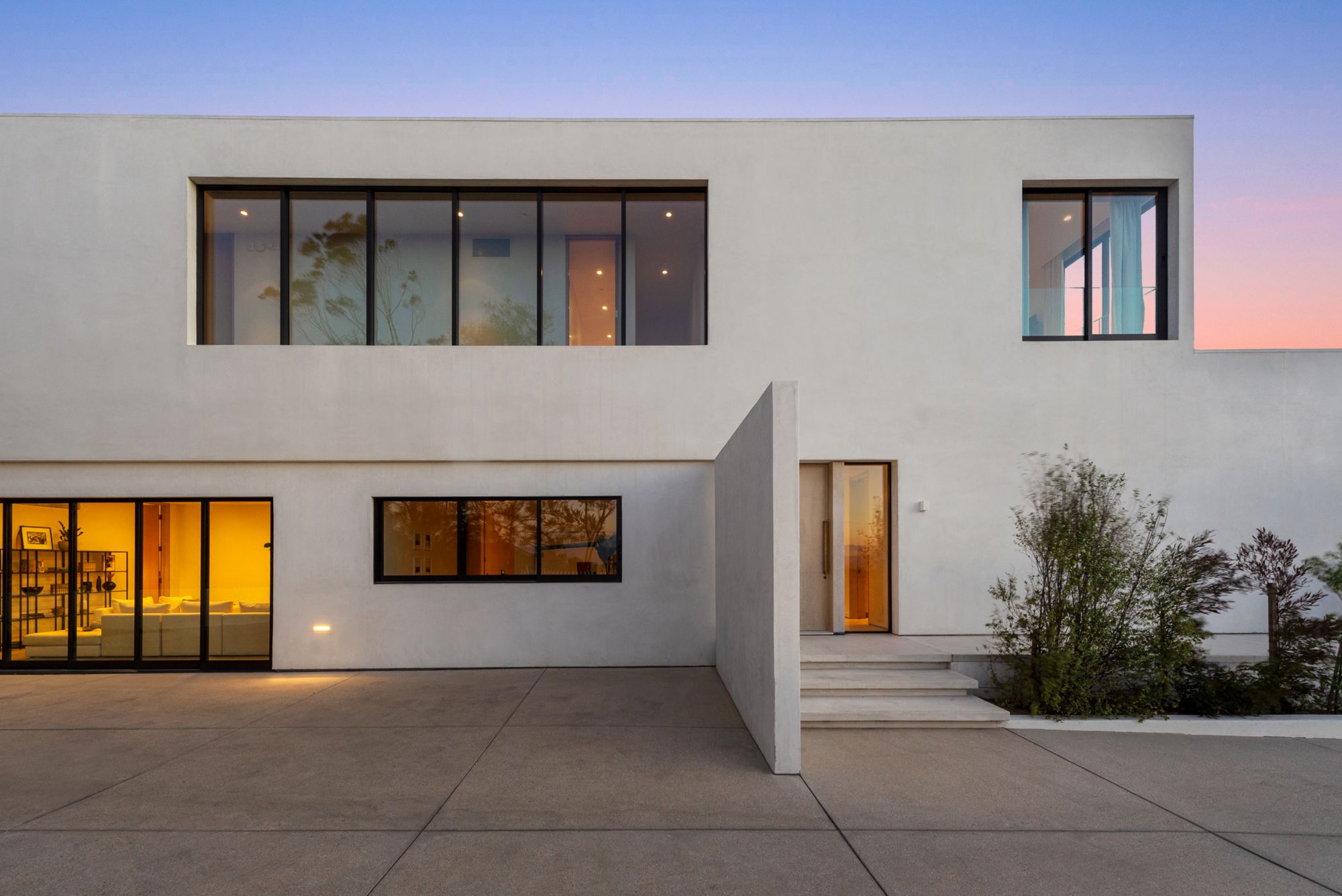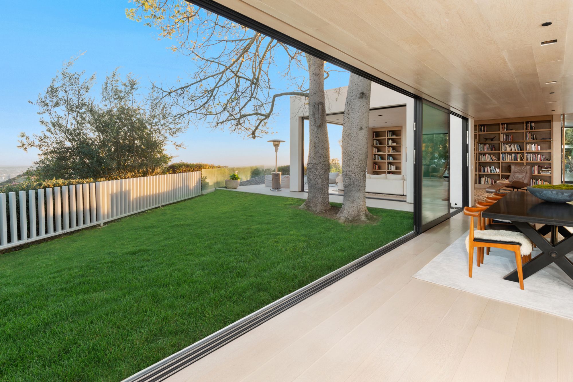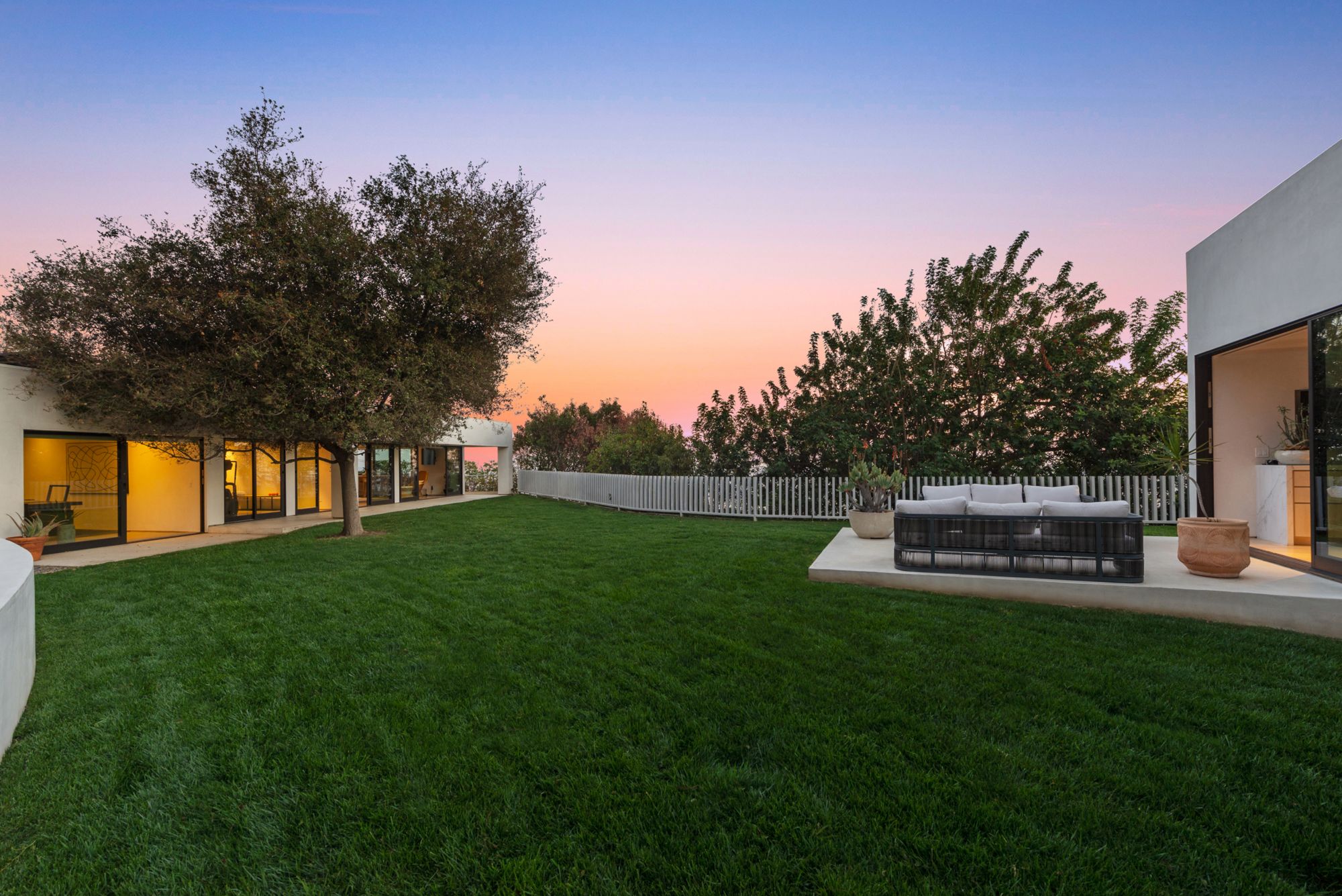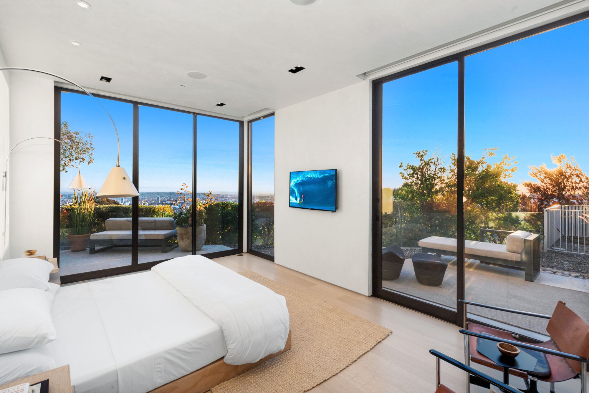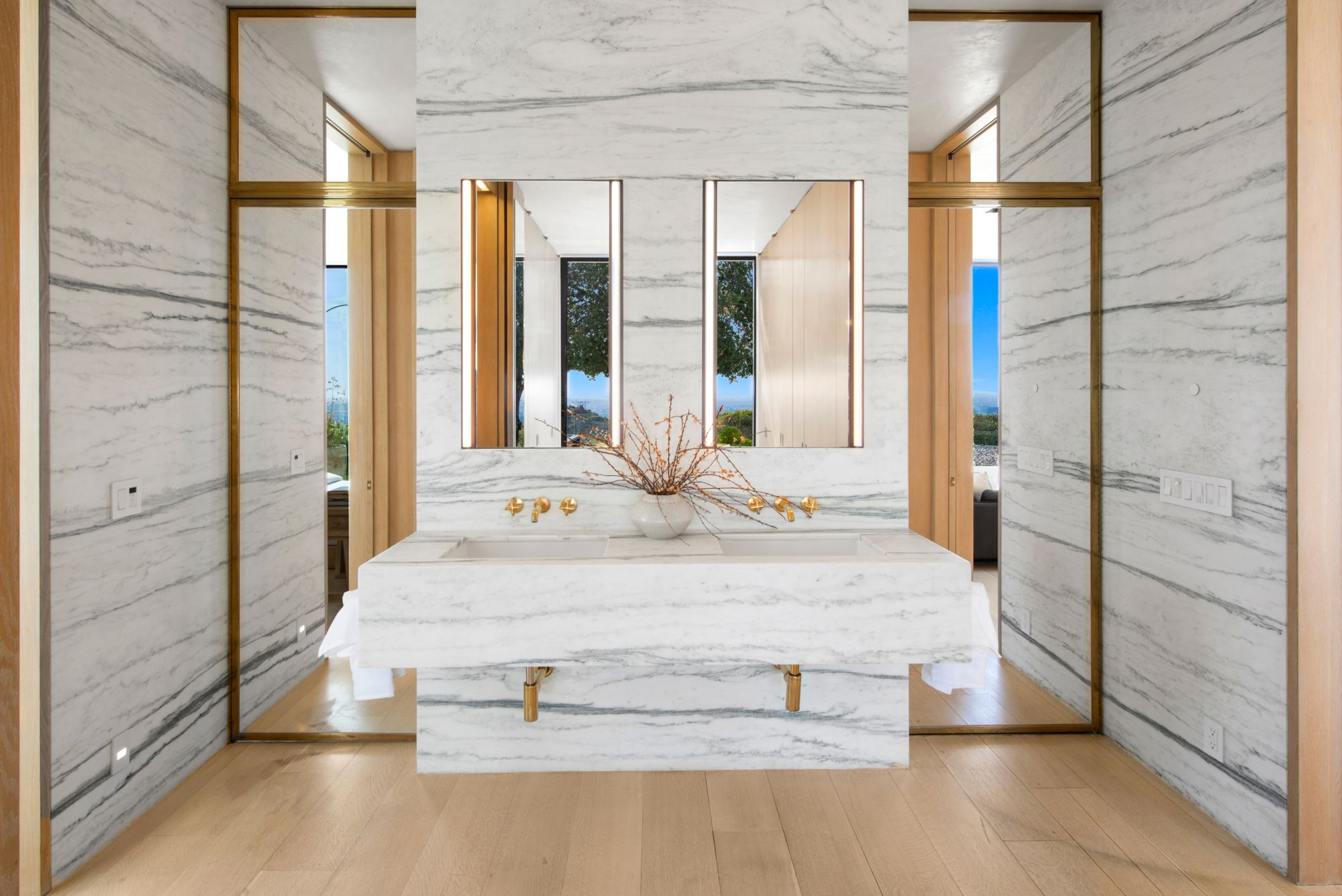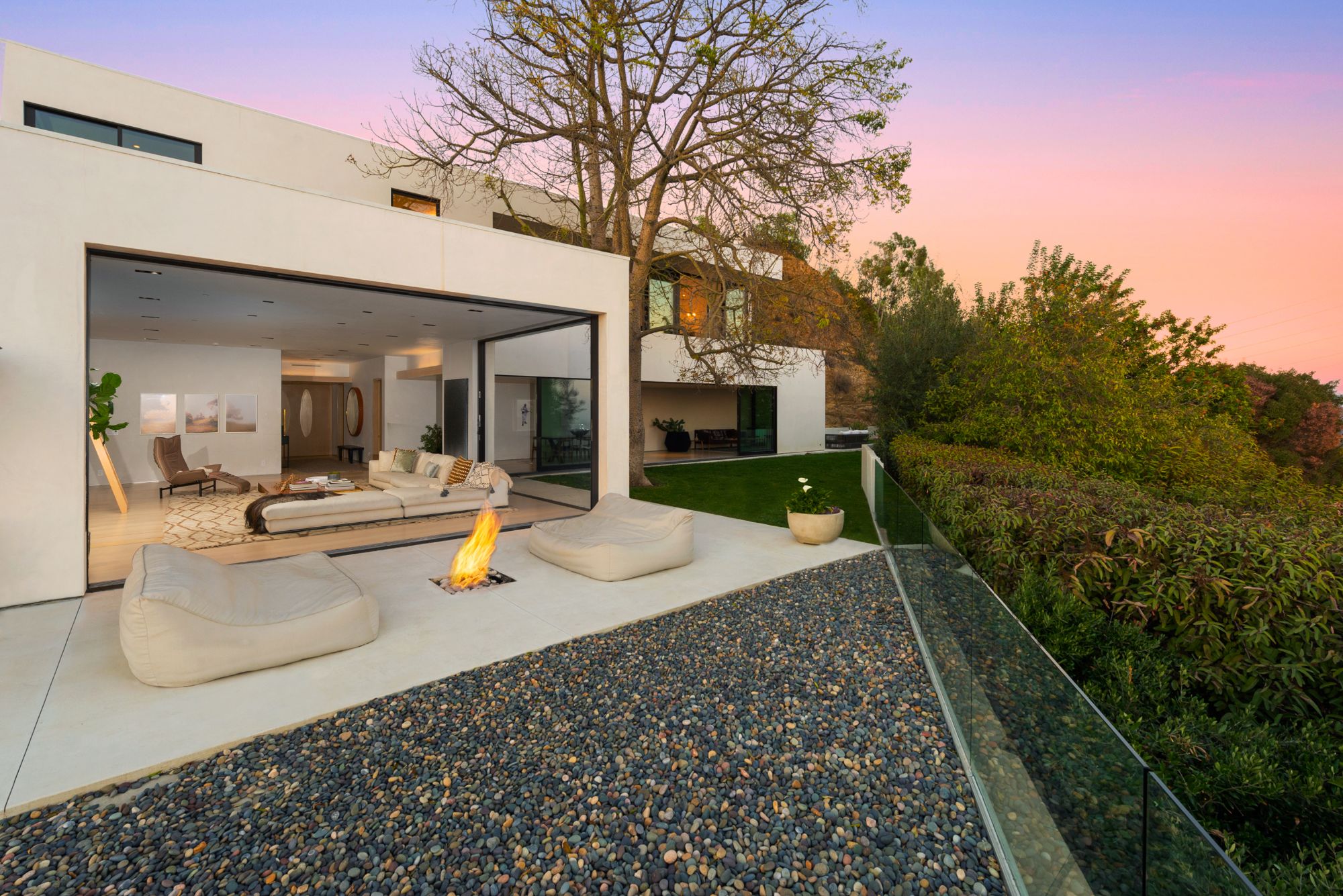 Incredible gated compound set on a rare and extraordinary flat ridge top overlooking the entire LA Basin from East of Downtown to the Ocean. 3 years to create this unique and uncommon environment with spectacular scale, design, high-quality finishes and attention to detail. Large open spaces flooded with natural light and entire walls of pocket doors. High ceilings throughout with expansive gallery. Formal living room with bookcases, fireplace, and incredible views. Gourmet kitchen/family room opens to pool and outdoor kitchen. Separate Media room, Master suite with sitting room, double closets/dressing room and gorgeous marble bath. 5 additional bedrooms ensuite all open to wraparound view terraces. Across the expansive lawn is a 4 room guest house/studio with 2 baths and desert garden along with private and direct access to miles of hiking trails. A rare opportunity to acquire this one of a kind property.