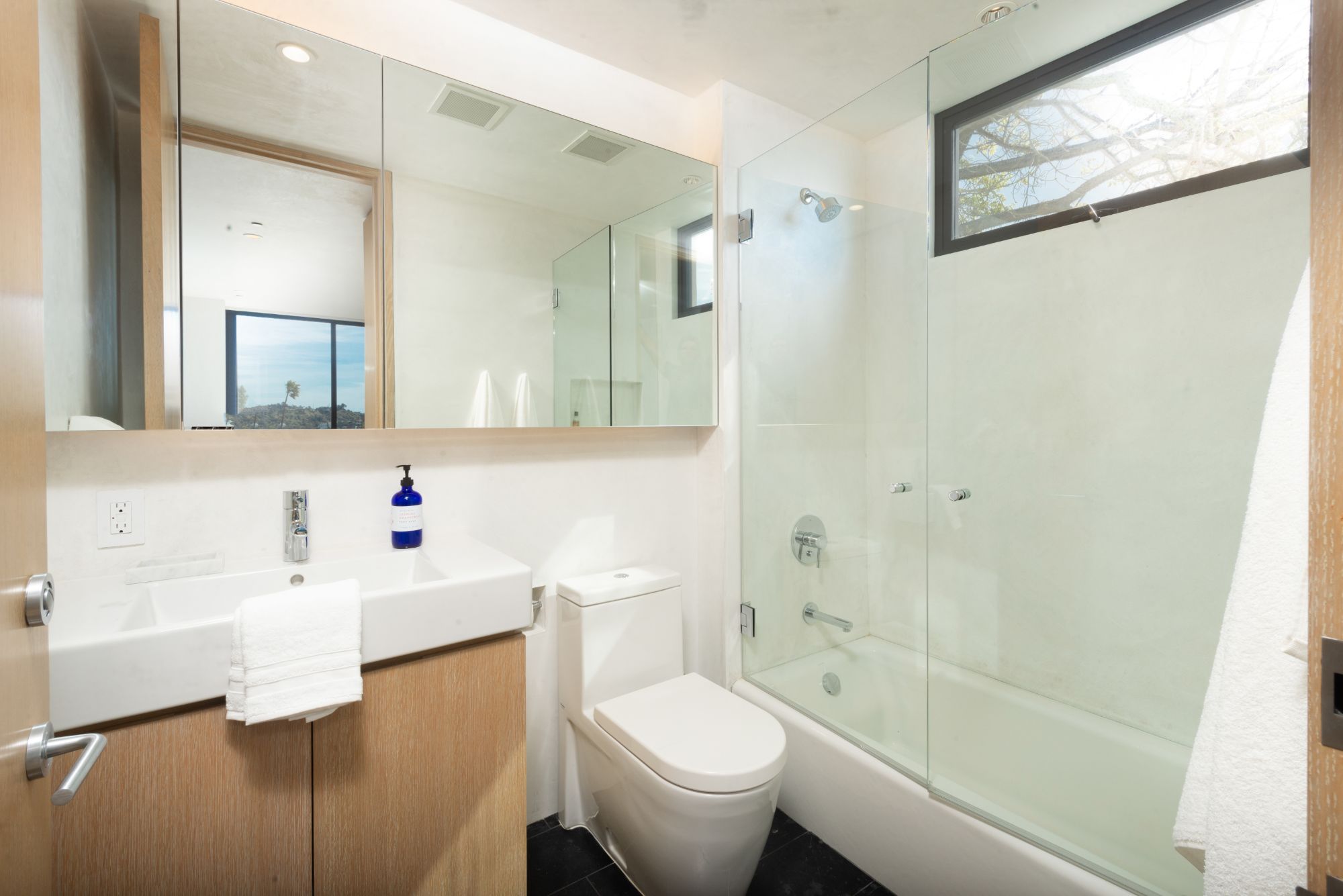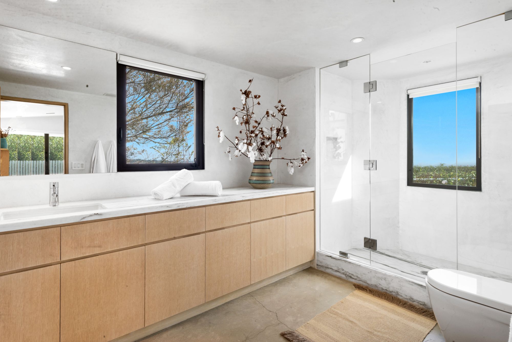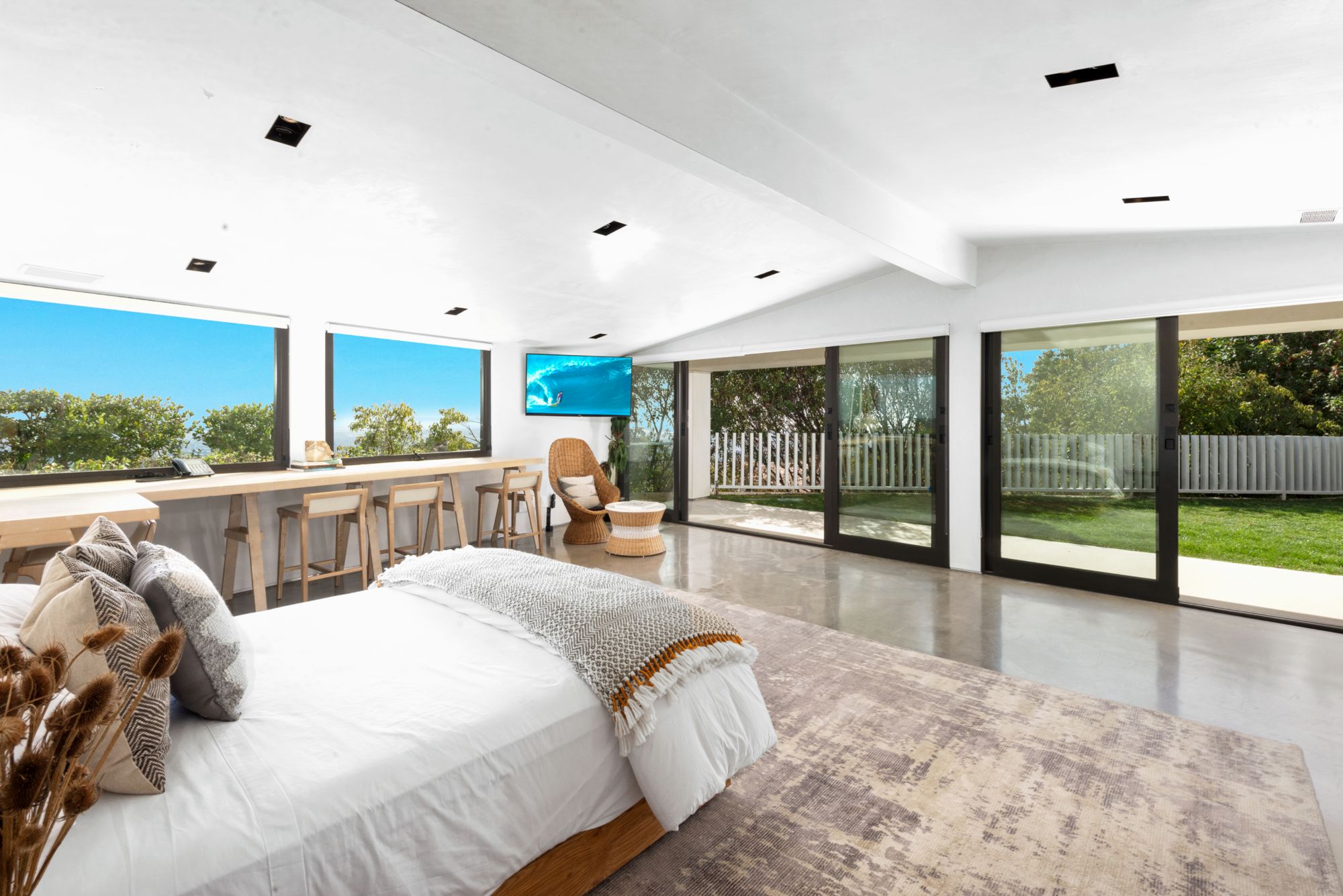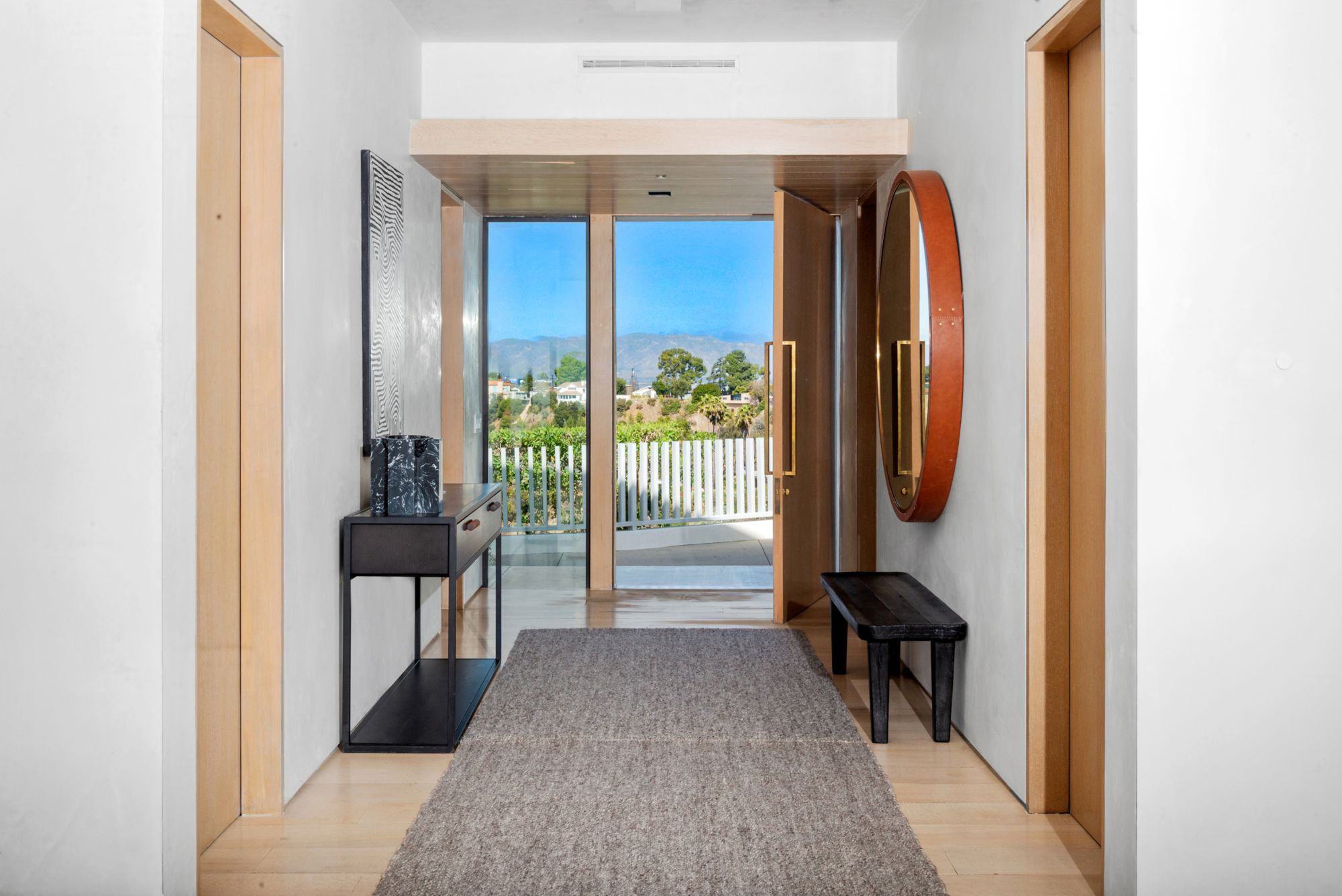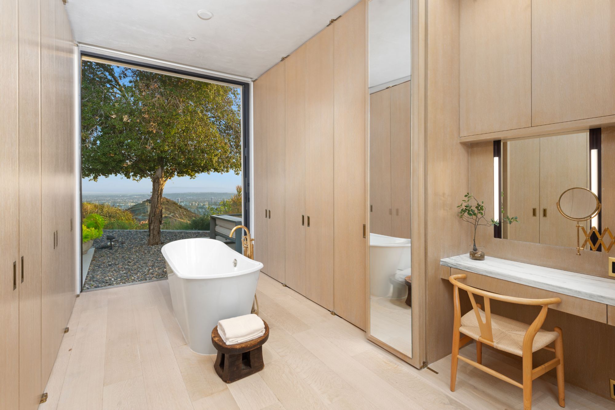Incredible gated compound set on a rare and extraordinary flat ridge top overlooking the entire LA Basin from East of Downtown to the Ocean. 3 years to create this unique and uncommon environment with spectacular scale, design, high-quality finishes and attention to detail. Large open spaces flooded with natural light and entire walls of pocket doors. High ceilings throughout with expansive gallery. Formal living room with bookcases, fireplace, and incredible views. Gourmet kitchen/family room opens to pool and outdoor kitchen. Separate Media room, Master suite with sitting room, double closets/dressing room and gorgeous marble bath. 5 additional bedrooms ensuite all open to wraparound view terraces. Across the expansive lawn is a 4 room guest house/studio with 2 baths and desert garden along with private and direct access to miles of hiking trails. A rare opportunity to acquire this one of a kind property.