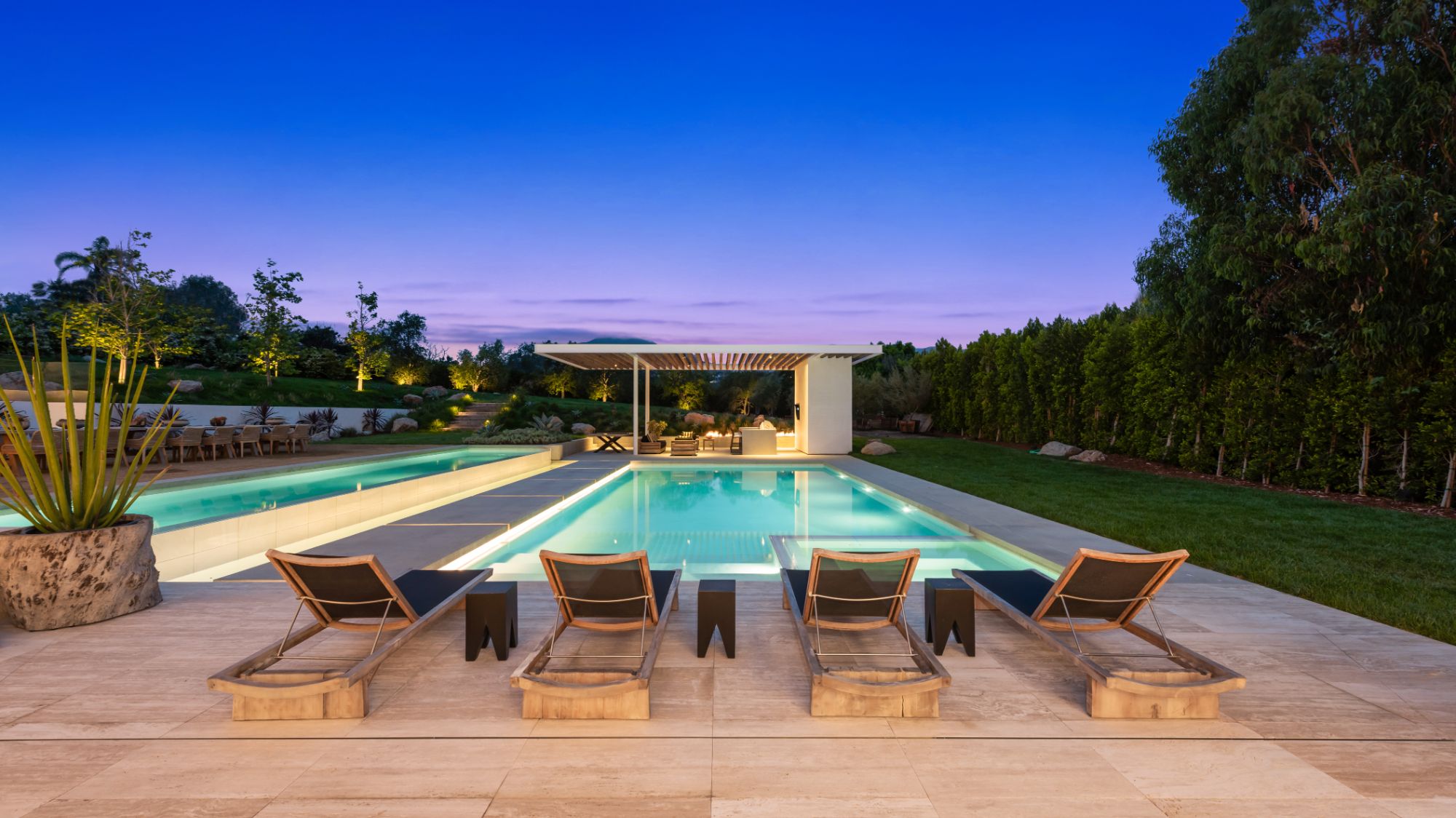 World Class Modern Architecture, seamless indoor/outdoor resort style estate offered in a park like setting on a 1.7 acre mostly flat lot with a beach key to the Riviera 2 gate to private Little Dume Beach. Rarely does Malibu offer ground up new construction designed by celebrity favored Starchitects Standard Architecture, incredible scale in this entertaining home offering 10-13' high cedar clad ceilings, great art walls, tasteful high end finishes including white oak and classic Italian unfilled travertine floors, Imported Italian Calcutta and Mystery White stones in the kitchen and primary bath retreat, Quantum's Afromosia wood sliding pocket doors creating walls of glass and dramatic open spans in a warm and customized setting. This rare find has 5BD, 8BA, a private guest house, 2 pools, 7 fire features, home theater, covered BBQ cabana with a full pool bathroom, Crestron and Lutron automation, Bocci lighting, Cocoon fixtures and custom white oak millwork throughout. Enjoy the best! Point Dume offers a step back in time to a neighborhood that brings back a family vibe unlike anything else. Year round, grab your surfboard, jump on your golf cart or just go for a casual walk through the nature preserve overlooking Big Dume Beach. Experience life on a new level. Why go on vacation when you can live it every day.