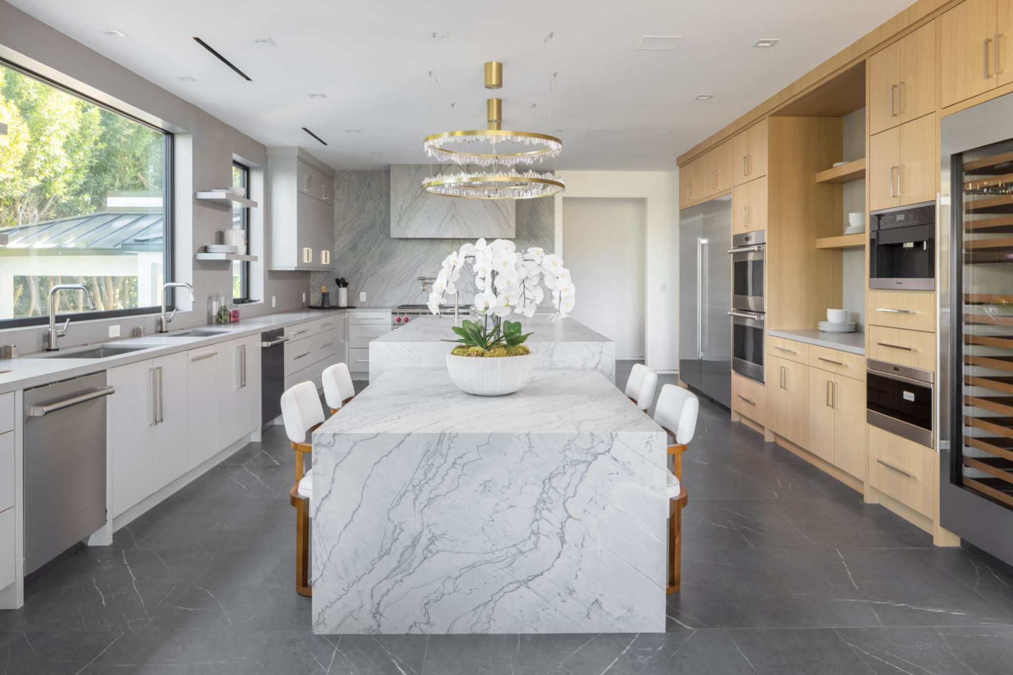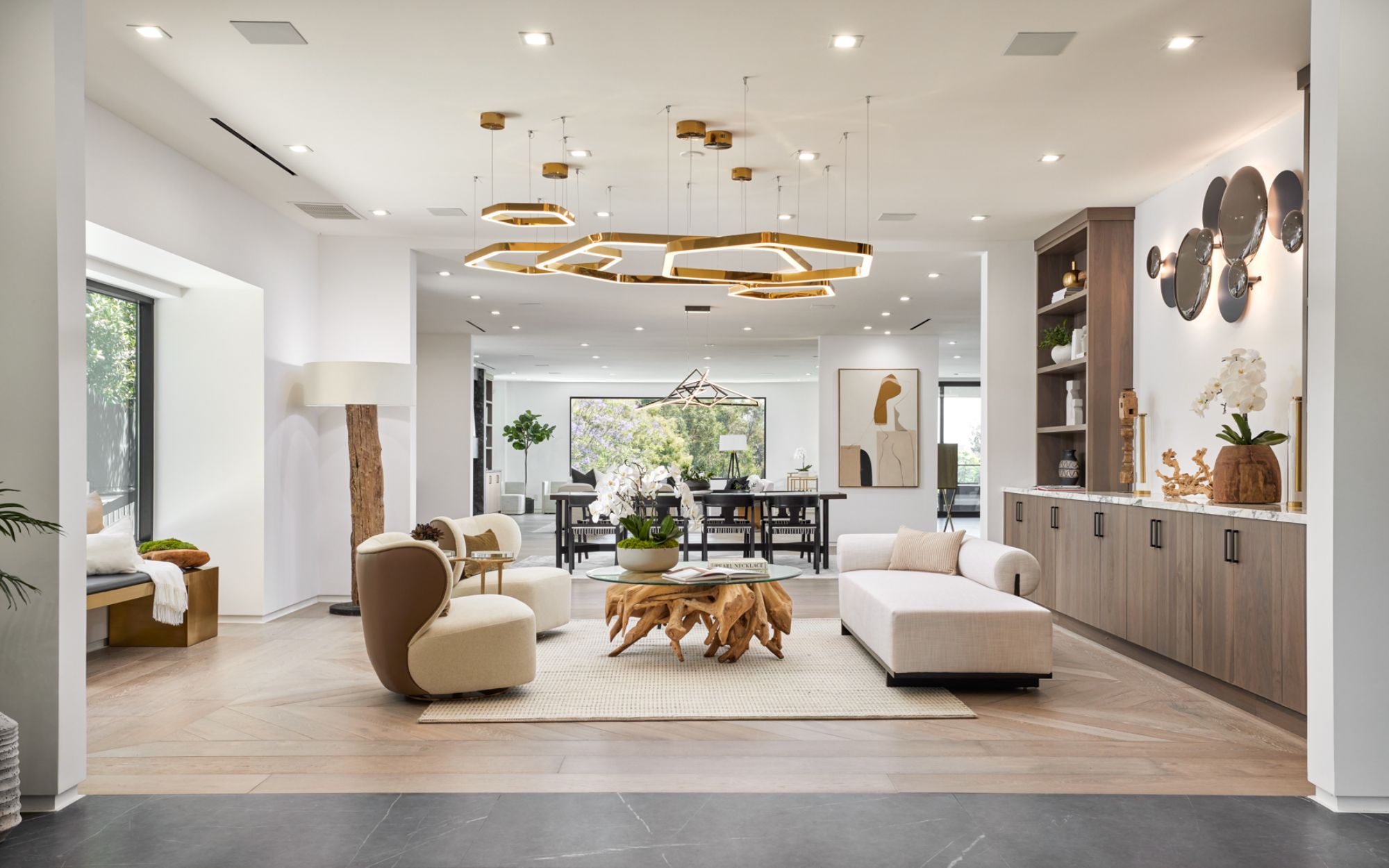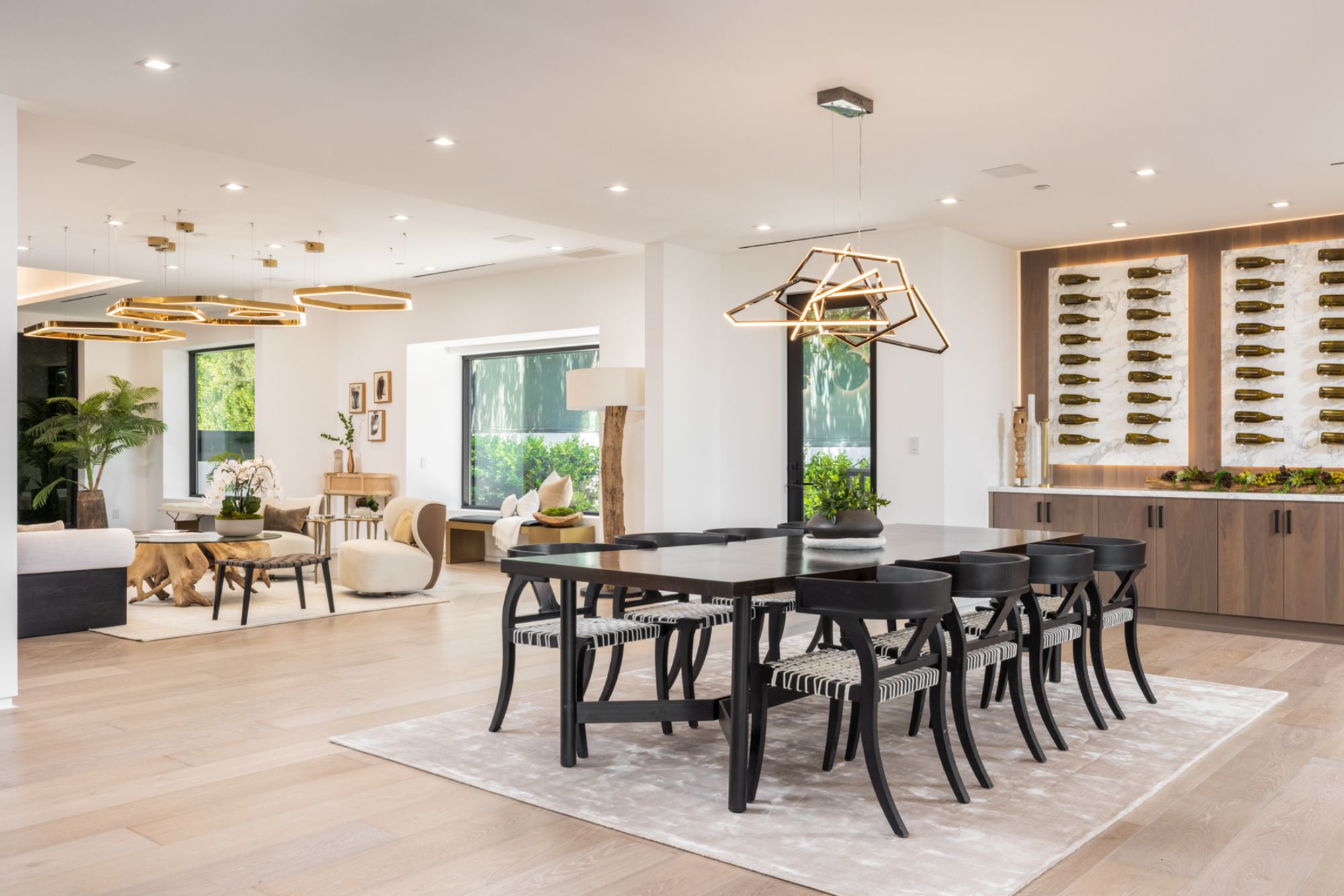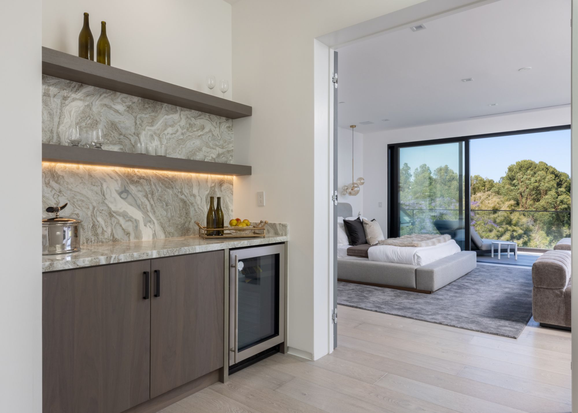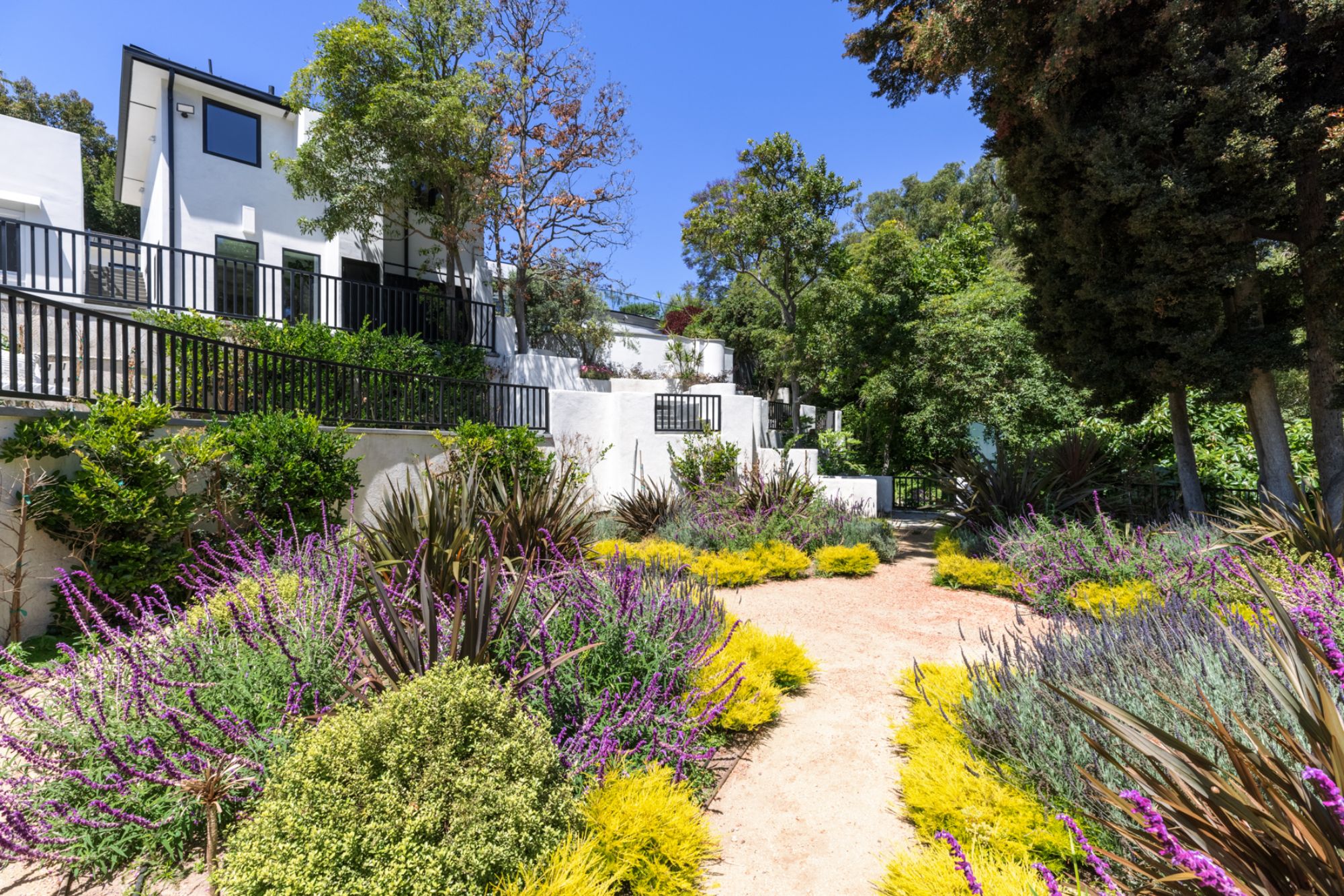 This beautifully updated residence is a luxurious lifestyle compound with multi-level outdoor entertaining spaces sprawling on a gorgeous, forested acre in Brentwood behind the complete privacy of the gates. Comprised of 5 structures, this exceptional retreat is set in a lush and verdant scenery where every inch reflects remarkable craftsmanship, and every step reveals a sensational amenity. Open, sun-filled living spaces encompass 8 bedrooms, 15 bathrooms, multiple living rooms, patio lounges beyond glass doors, formal dining room with a wine wall, theater, and office. Chef's kitchen with rift white oak cabinets, Wolf appliances and an exquisite, tiered stone waterfall island. Expansive outdoor entertaining oasis encompasses a magnificent front court, a vast, a well-landscaped terrace with a wet bar, spectacular infinity pool & spa and a firepit lounge and a garden amidst soaring trees. A long, private driveway leads to additional amenities: a guest house, gym, game room, and an artist studio. Tranquility permeates the 3rd floor resting quarters that feature a pajama lounge, and a lavish primary suite with explosive views, marble filled partners bathrooms with a soaking tub, a fireplace, and a private balcony. This is truly a one-of-a-kind estate at the highest echelon of elegance, design, and entertainment possibilities.