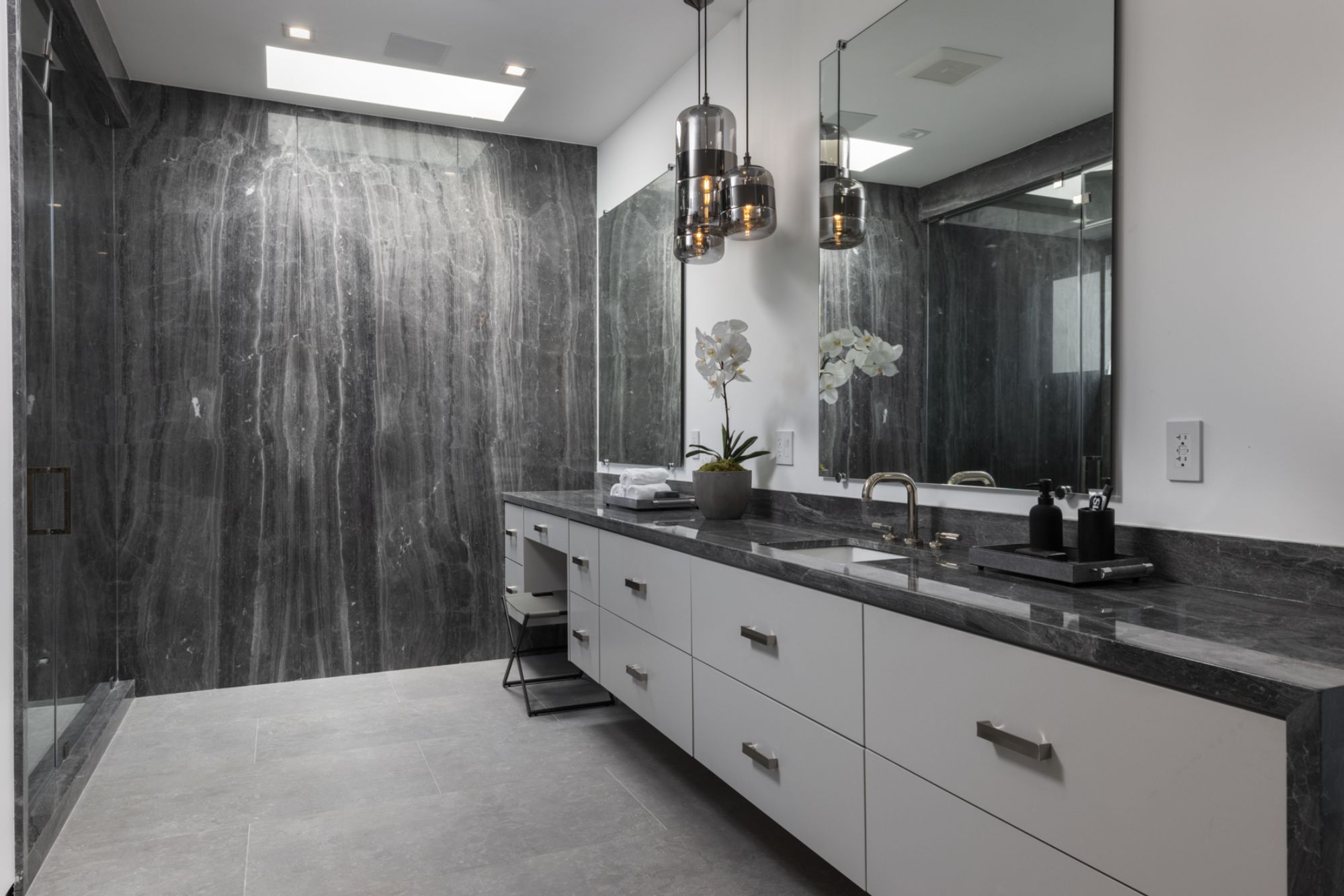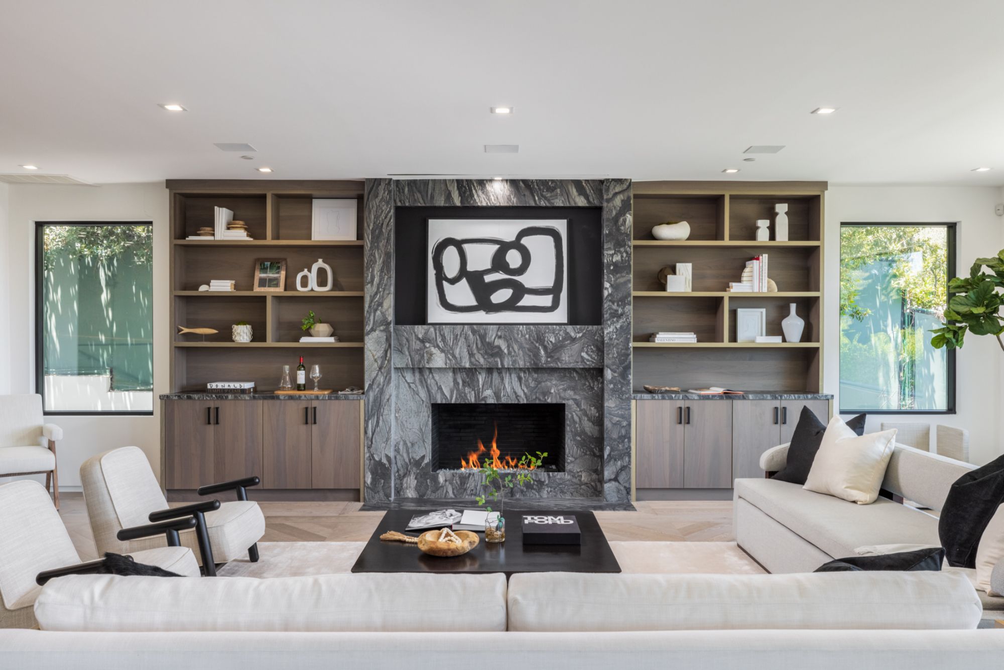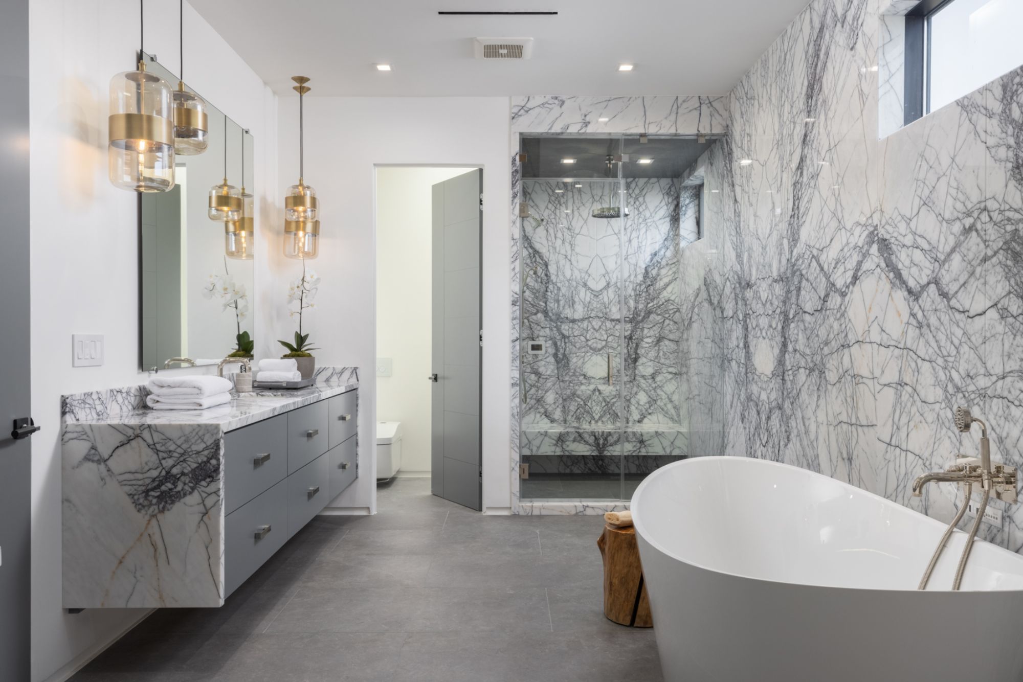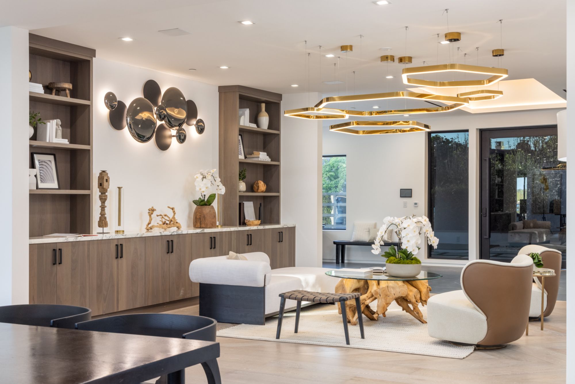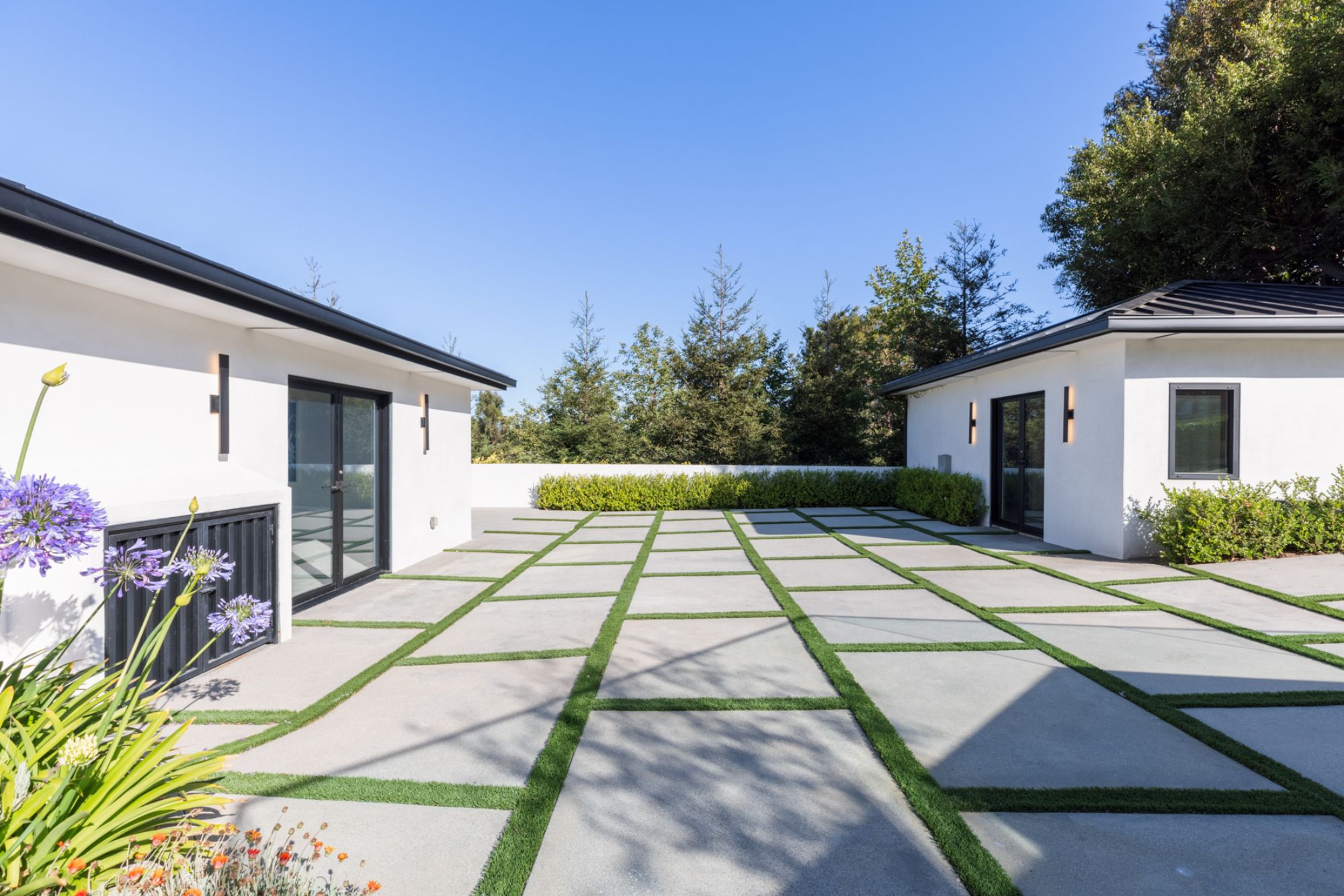 This beautifully updated residence is a luxurious lifestyle compound with multi-level outdoor entertaining spaces sprawling on a gorgeous, forested acre in Brentwood behind the complete privacy of the gates. Comprised of 5 structures, this exceptional retreat is set in a lush and verdant scenery where every inch reflects remarkable craftsmanship, and every step reveals a sensational amenity. Open, sun-filled living spaces encompass 8 bedrooms, 15 bathrooms, multiple living rooms, patio lounges beyond glass doors, formal dining room with a wine wall, theater, and office. Chef's kitchen with rift white oak cabinets, Wolf appliances and an exquisite, tiered stone waterfall island. Expansive outdoor entertaining oasis encompasses a magnificent front court, a vast, a well-landscaped terrace with a wet bar, spectacular infinity pool & spa and a firepit lounge and a garden amidst soaring trees. A long, private driveway leads to additional amenities: a guest house, gym, game room, and an artist studio. Tranquility permeates the 3rd floor resting quarters that feature a pajama lounge, and a lavish primary suite with explosive views, marble filled partners bathrooms with a soaking tub, a fireplace, and a private balcony. This is truly a one-of-a-kind estate at the highest echelon of elegance, design, and entertainment possibilities.
