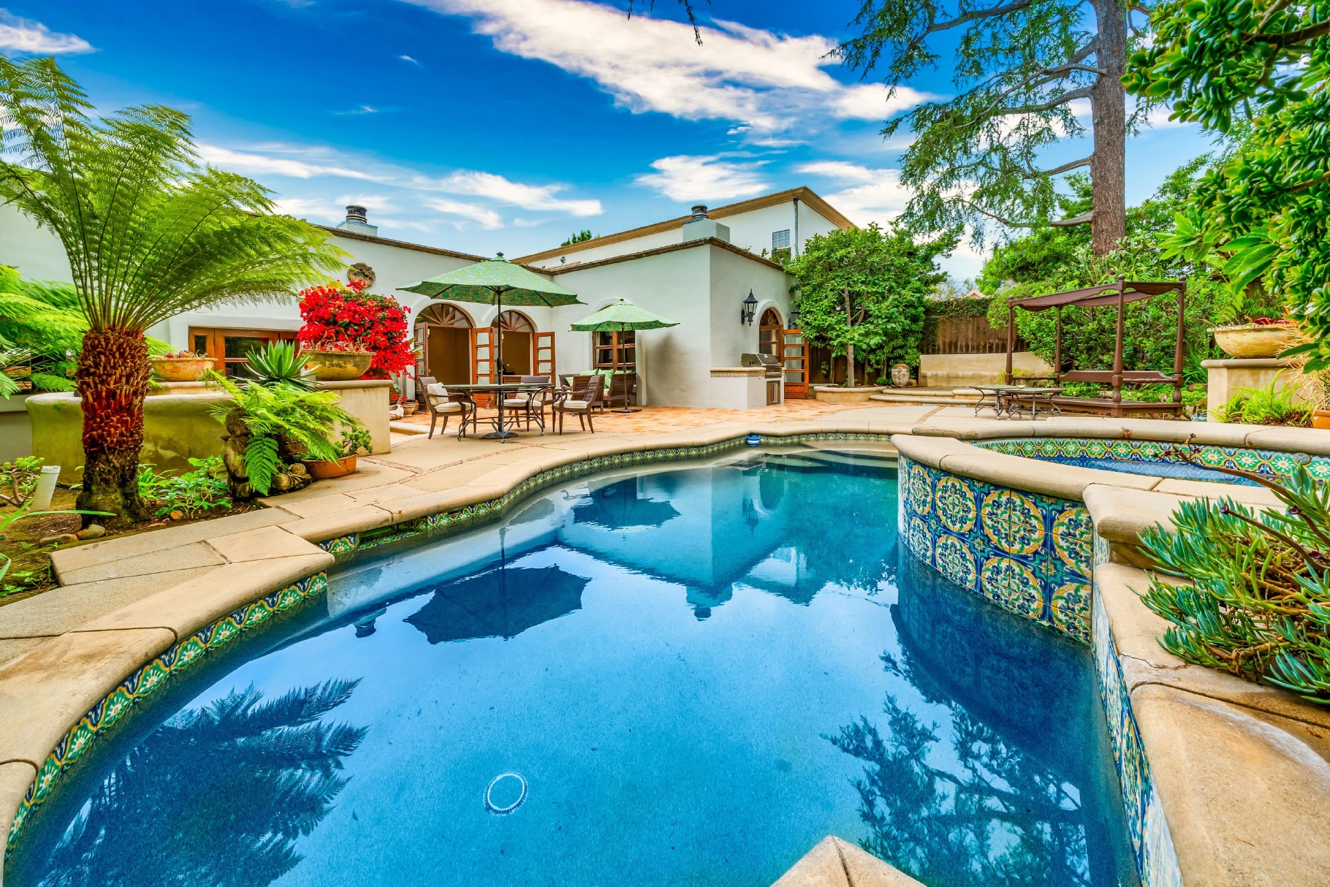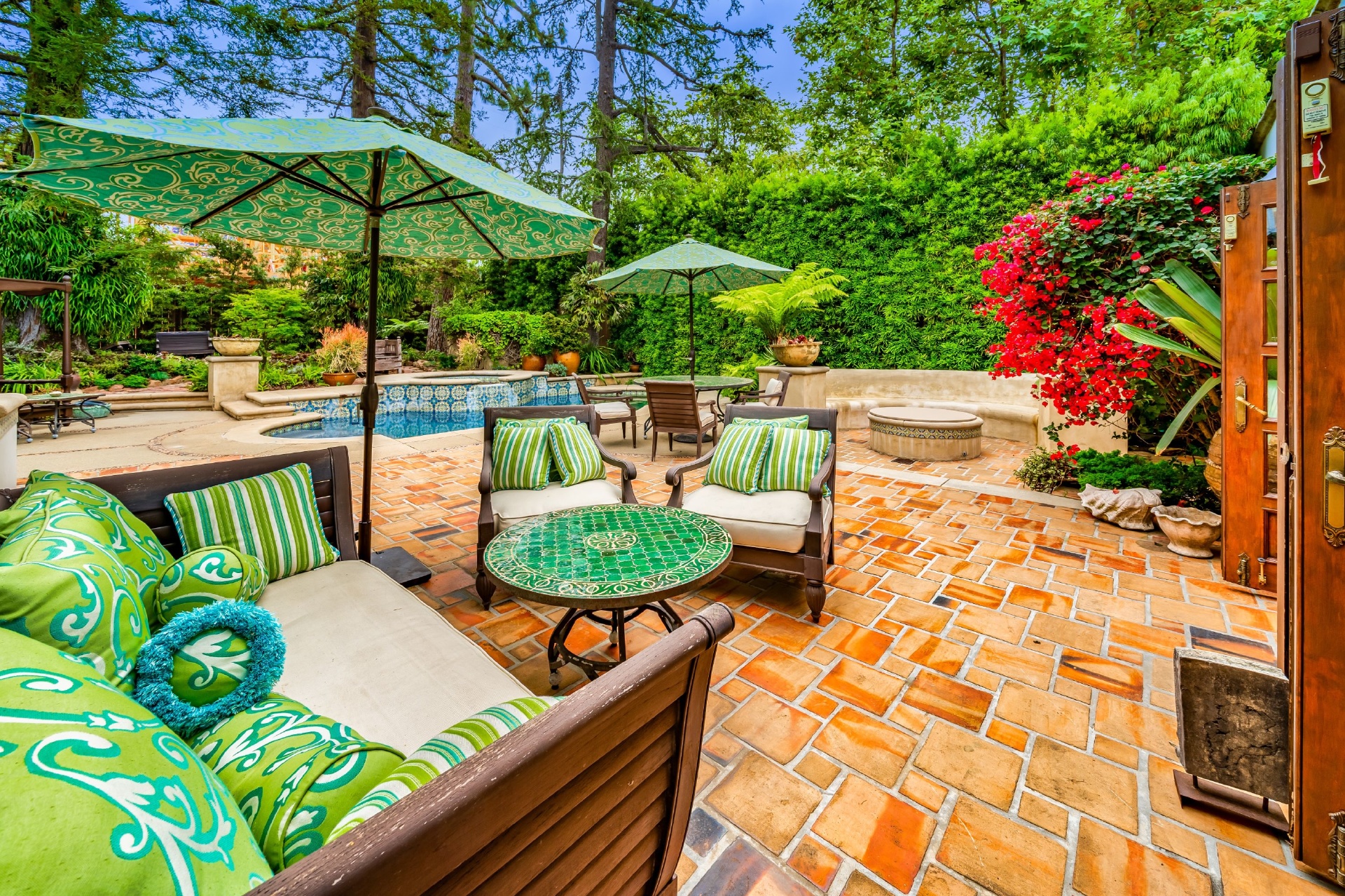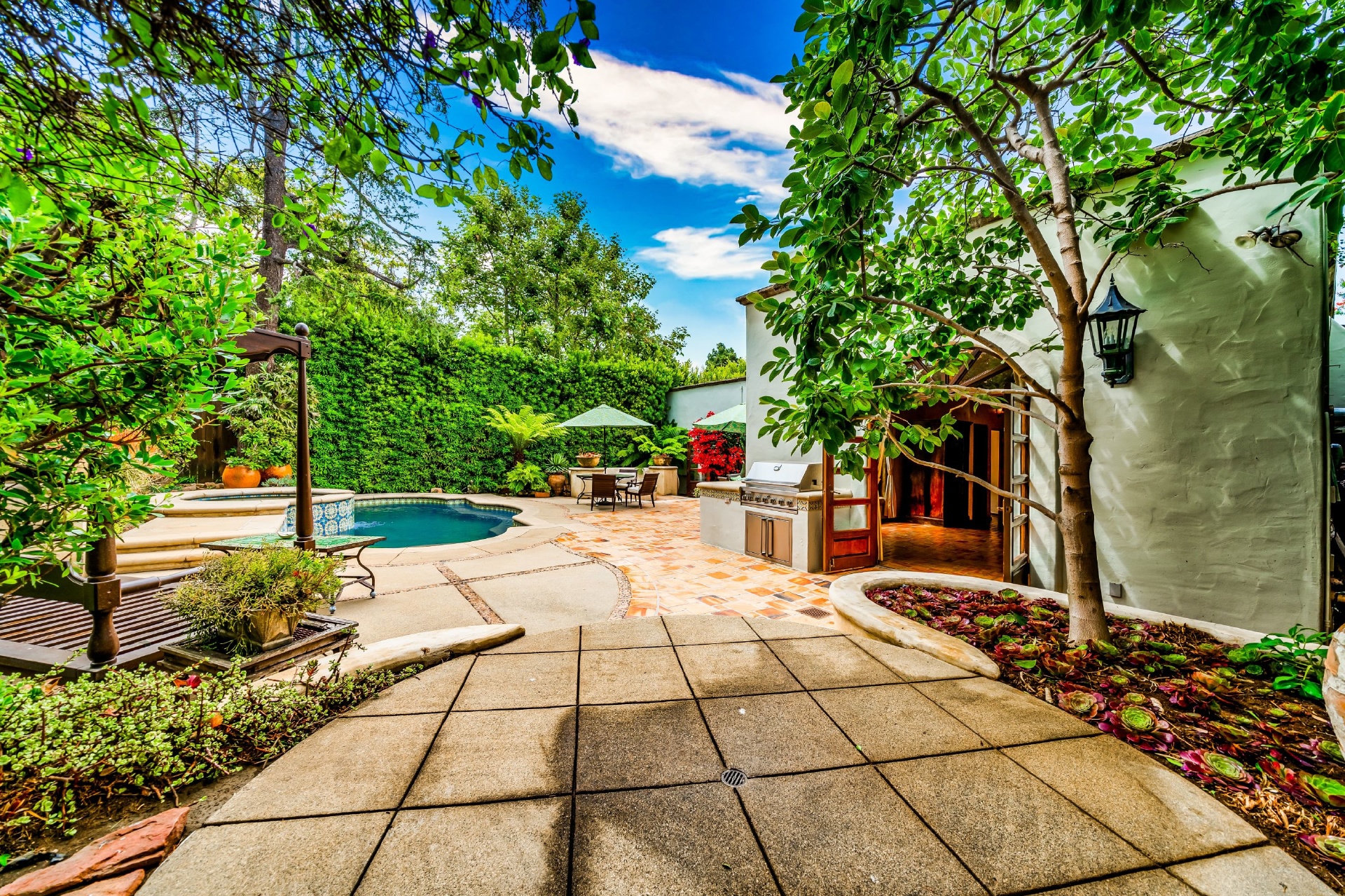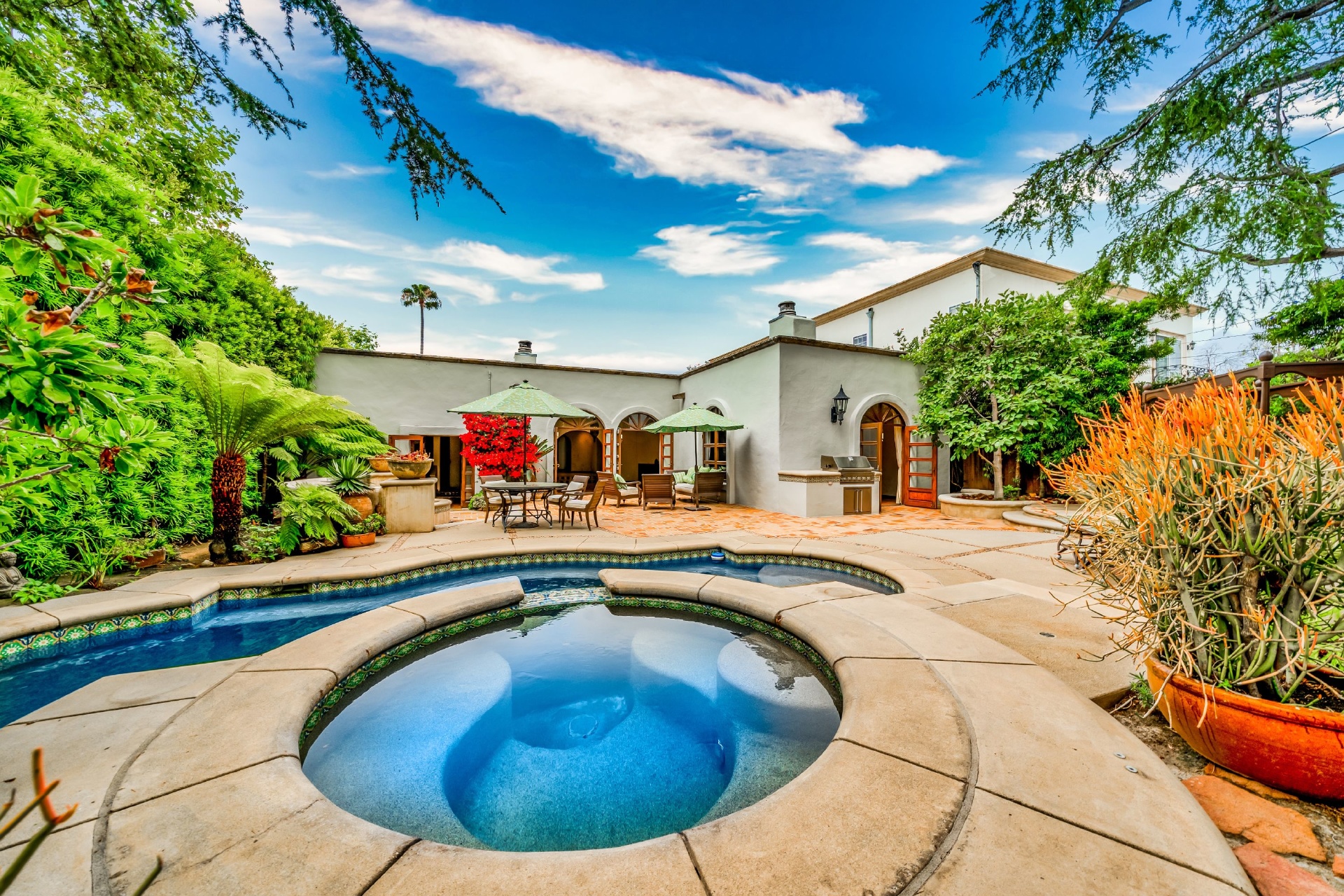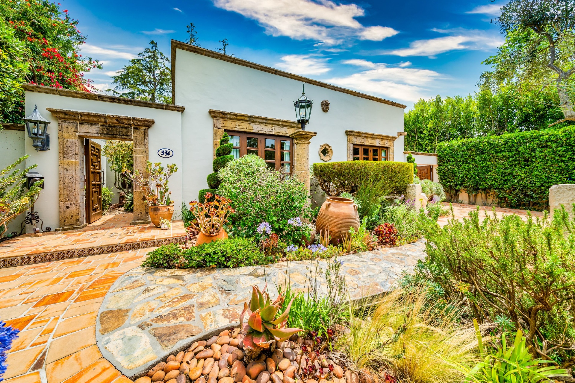 Set in Santa Monica, one block North of Montana & footsteps away from world class shopping & dining at the Brentwood Country Mart. Two blocks from the Brentwood Country Club and just a short bike ride away from the beach and the most gorgeous coastline in the world. Close to all of the best schools on the West Side. Enter the beautiful pedestrian gate or gated driveway w/room for 3 cars to this one of a kind Spanish Villa. This is the best of both worlds, old world charm & modern luxury. Formal living room w/fireplace connects to the dining area & large open family room w/romantic fireplace. The charming master suite includes walk in closet, gorgeous Spanish tiled bathroom, fireplace & French doors that open to the back yard; your own private garden, a lush Zen retreat full of mature trees & landscaping that includes a pool, spa, fire pit, outdoor dining & multiple lounge areas for meditating, reading a book & soaking up the southern California sunshine.
