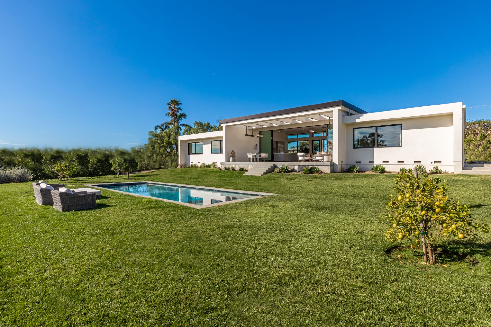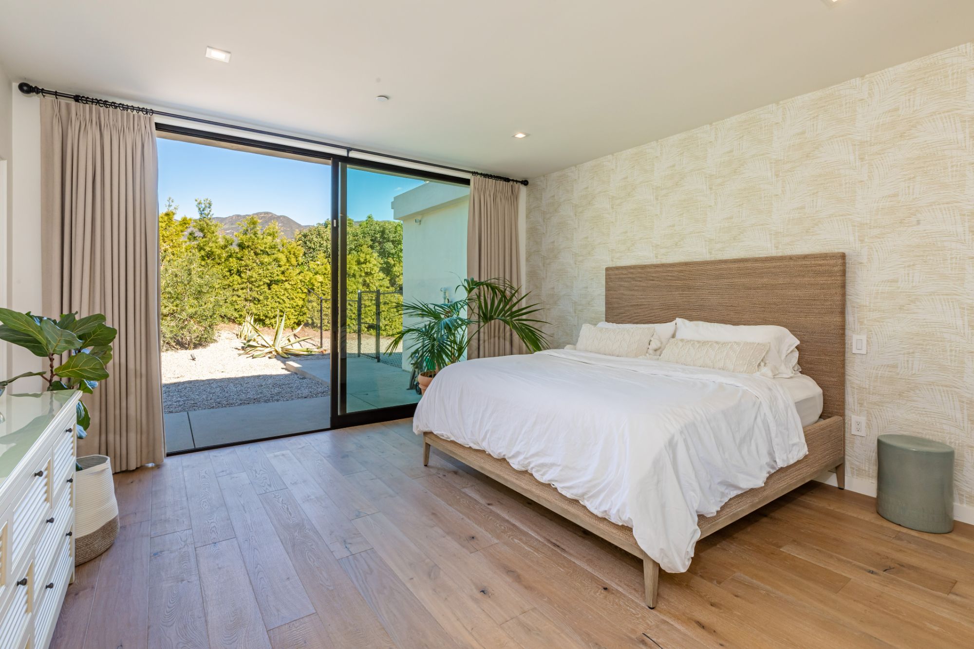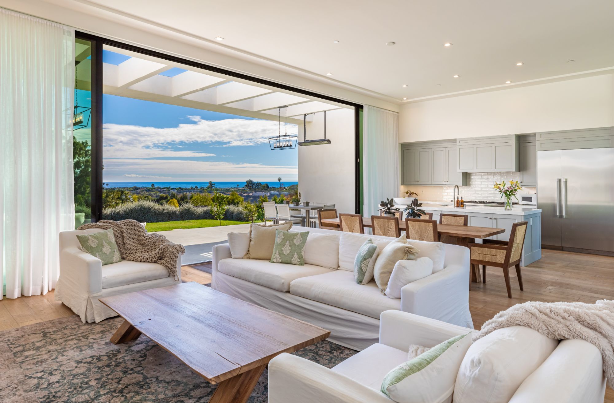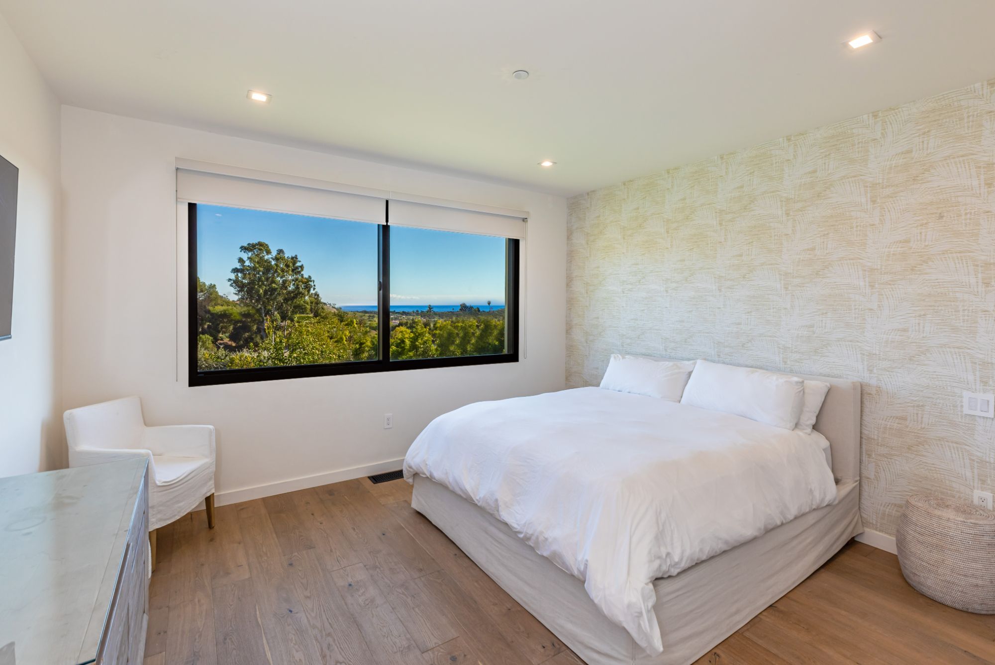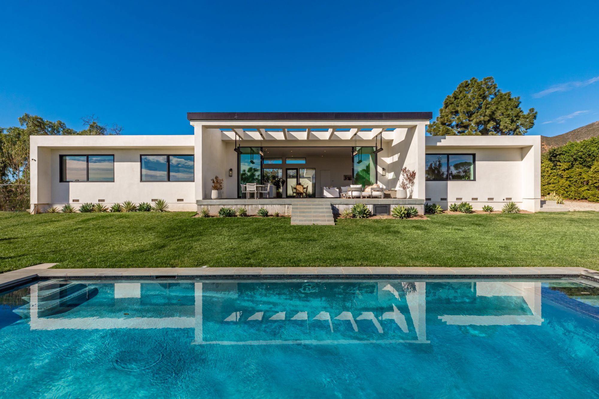 Just completed modern Malibu oasis on over an acre lot with an impeccable floor plan, lush grounds, huge grassy backyard, and views of mountains and the Pacific Ocean. Warm contemporary design with beautiful finishes throughout. This spacious home offers 5 BD, 5BA, and a game room. The living and dining rooms seamlessly blend with the kitchen and have gorgeous natural lighting from floor-to-ceiling sliding glass doors that open for indoor/outdoor living. The patio space has built-in heaters and is perfect for dining al fresco. Additional amenities include a mini ranch, citrus garden, swimming pool with spa, and outdoor space for a sport court. 2-car garage with large, gated driveway for additional parking. This exclusive enclave in prime Malibu Park offers the best hiking and horseback riding in the country. Live minutes from Big Dume State Park and beach and one of the best sandy beaches in all of Southern California, Zuma Beach. Enjoy shopping and dining at the nearby Point Dume Village. This is an incredible Malibu estate, where every day feels like you're on vacation.