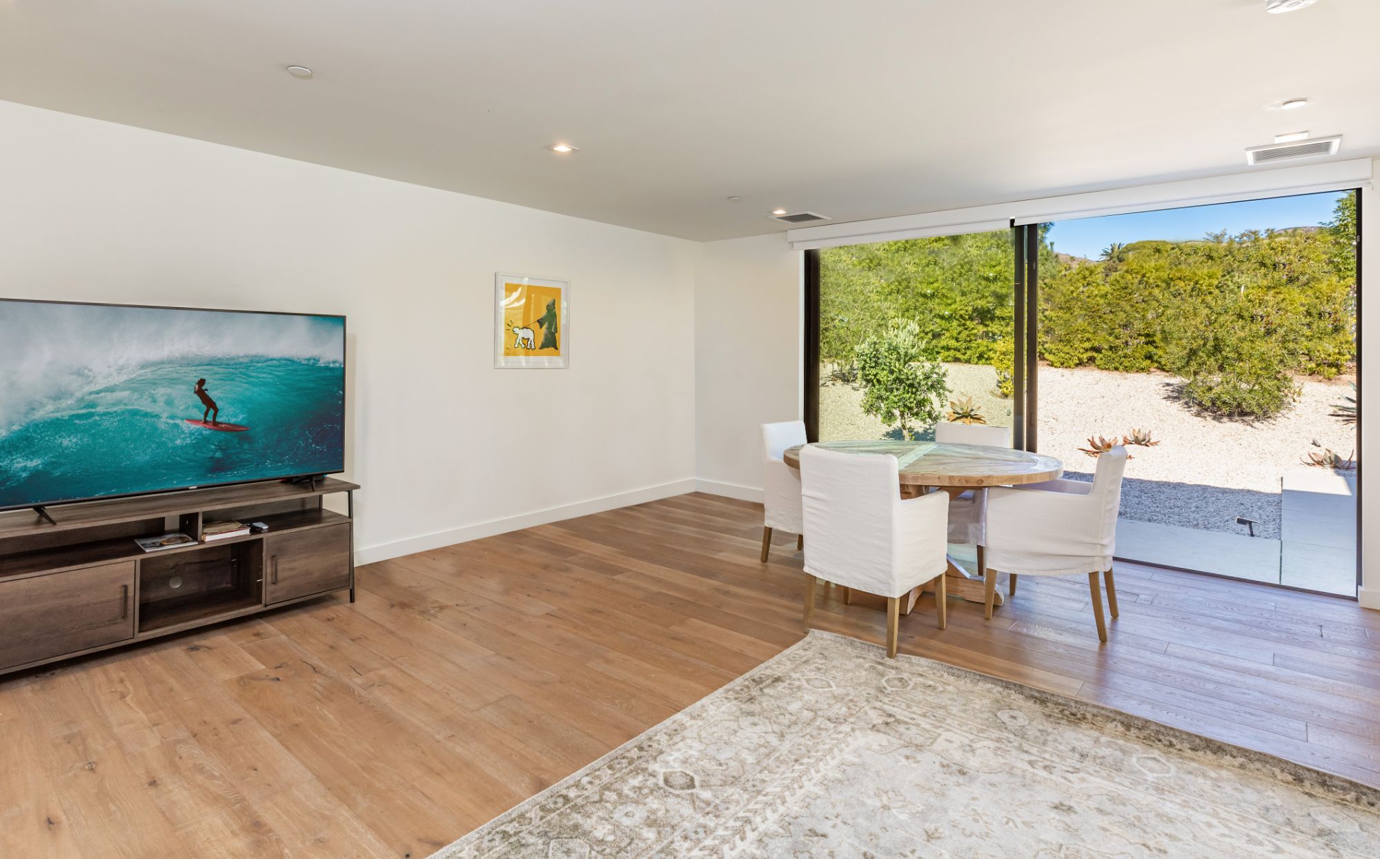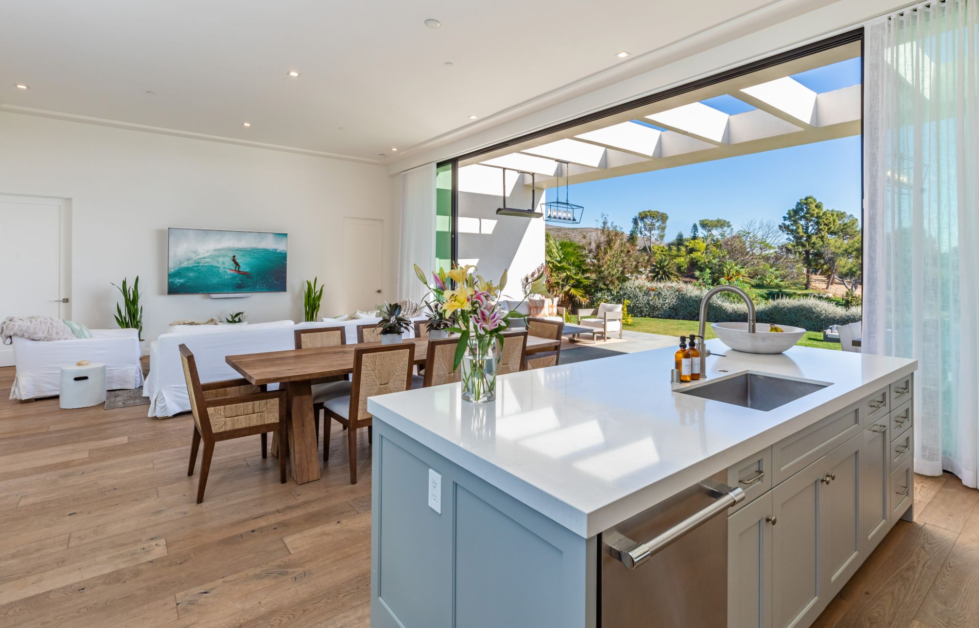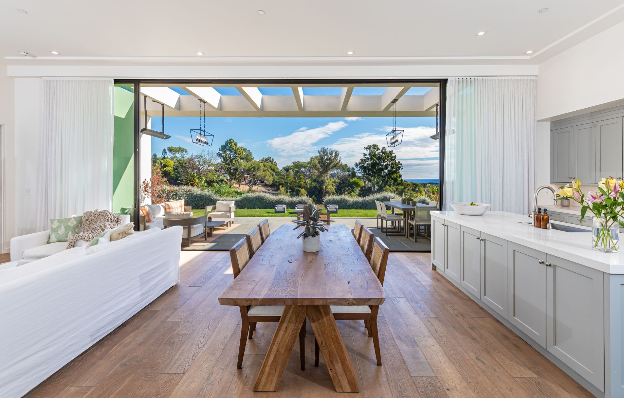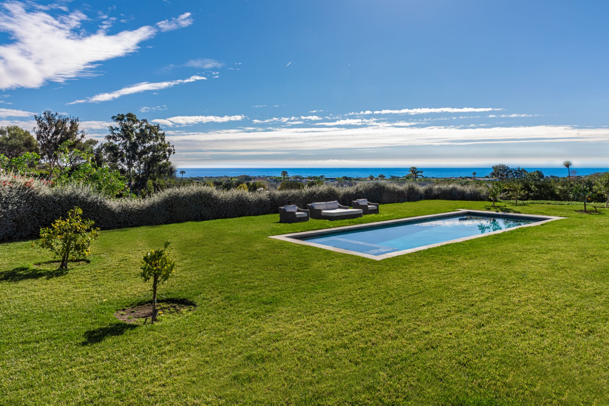 Just completed modern Malibu oasis on over an acre lot with an impeccable floor plan, lush grounds, huge grassy backyard, and views of mountains and the Pacific Ocean. Warm contemporary design with beautiful finishes throughout. This spacious home offers 5 BD, 5BA, and a game room. The living and dining rooms seamlessly blend with the kitchen and have gorgeous natural lighting from floor-to-ceiling sliding glass doors that open for indoor/outdoor living. The patio space has built-in heaters and is perfect for dining al fresco. Additional amenities include a mini ranch, citrus garden, swimming pool with spa, and outdoor space for a sport court. 2-car garage with large, gated driveway for additional parking. This exclusive enclave in prime Malibu Park offers the best hiking and horseback riding in the country. Live minutes from Big Dume State Park and beach and one of the best sandy beaches in all of Southern California, Zuma Beach. Enjoy shopping and dining at the nearby Point Dume Village. This is an incredible Malibu estate, where every day feels like you're on vacation.