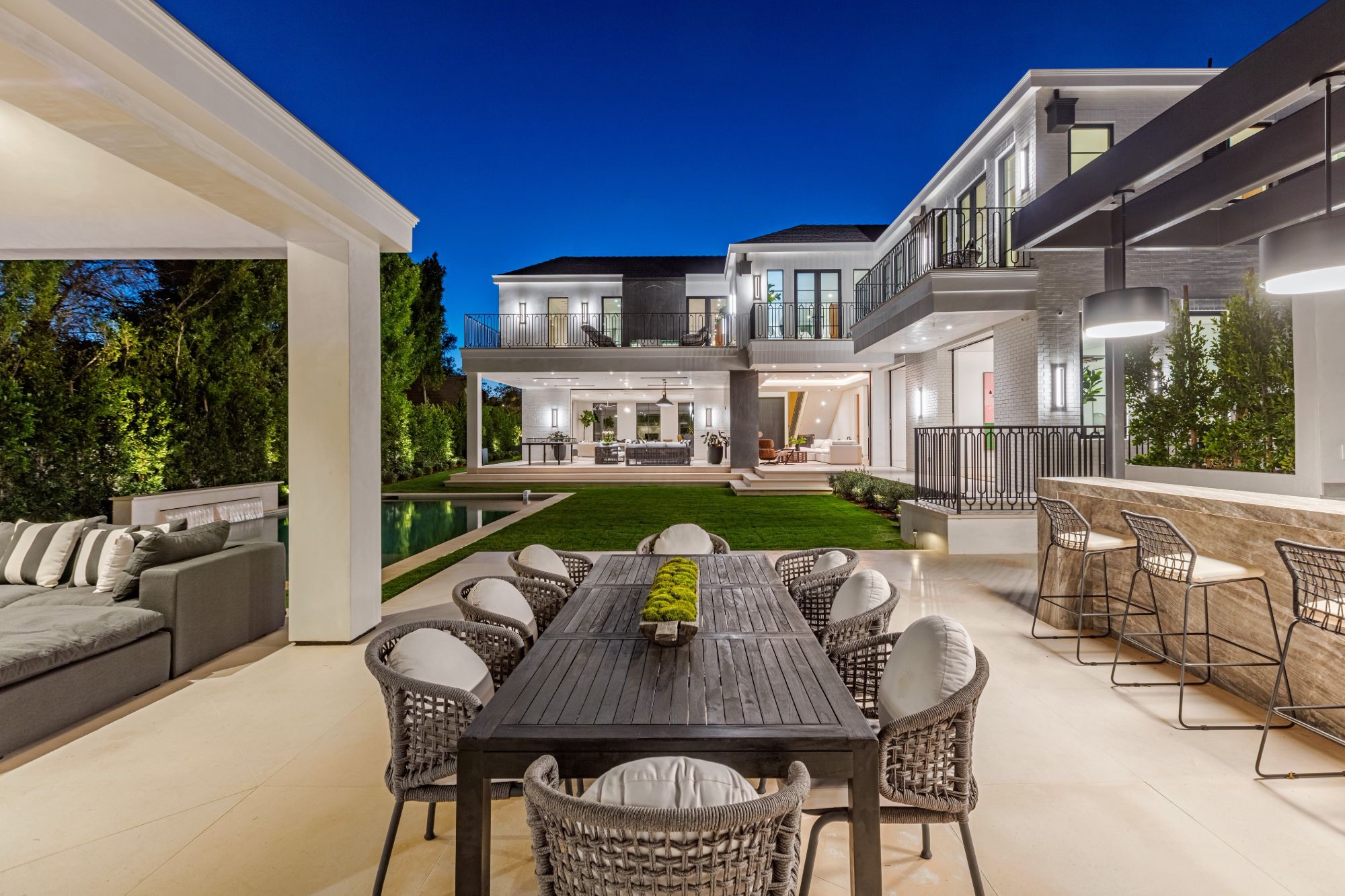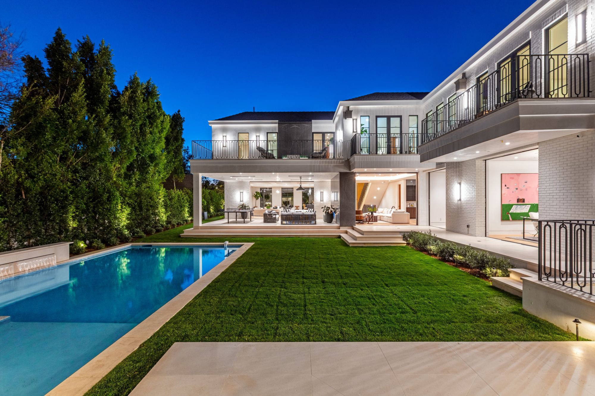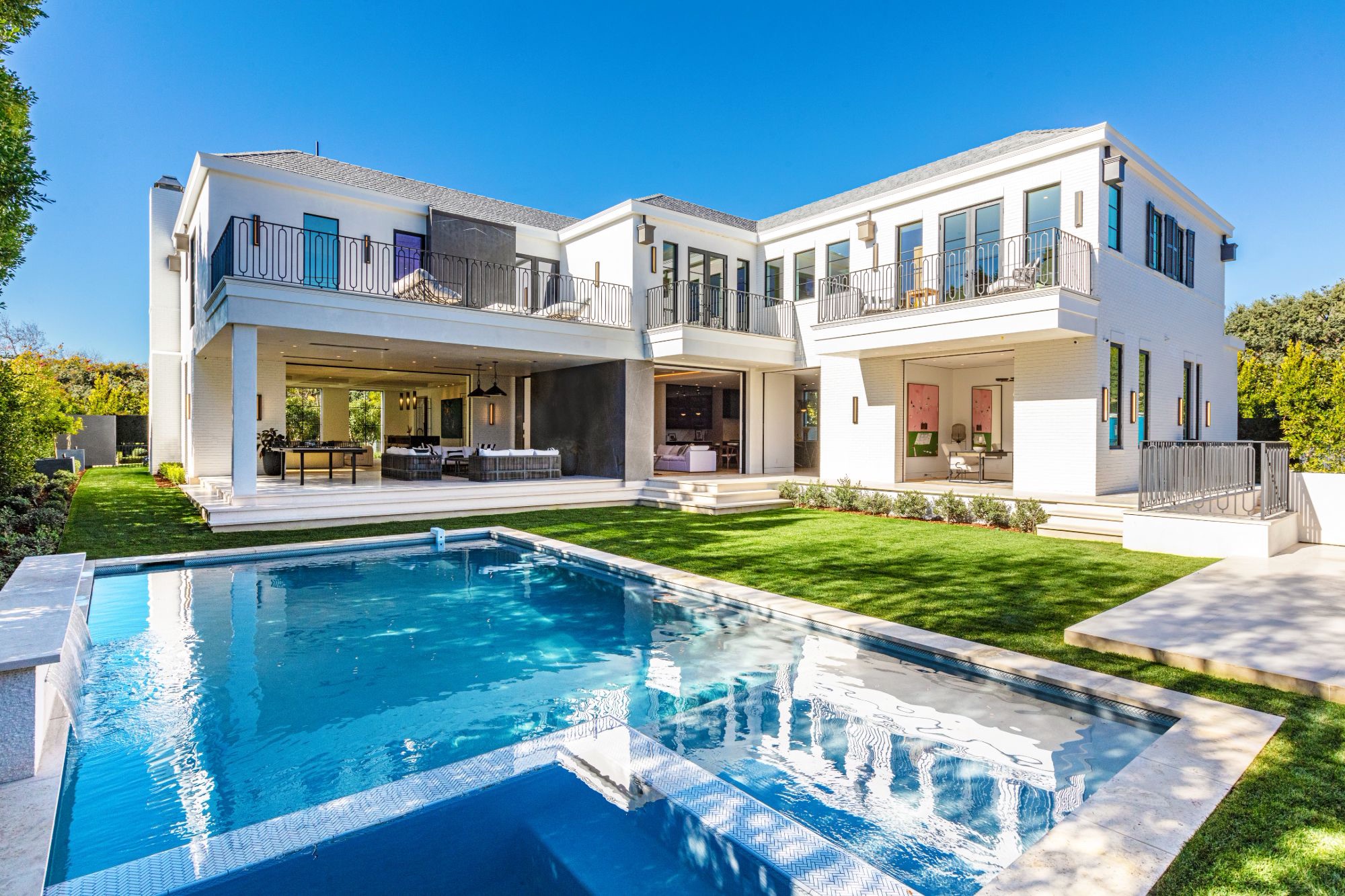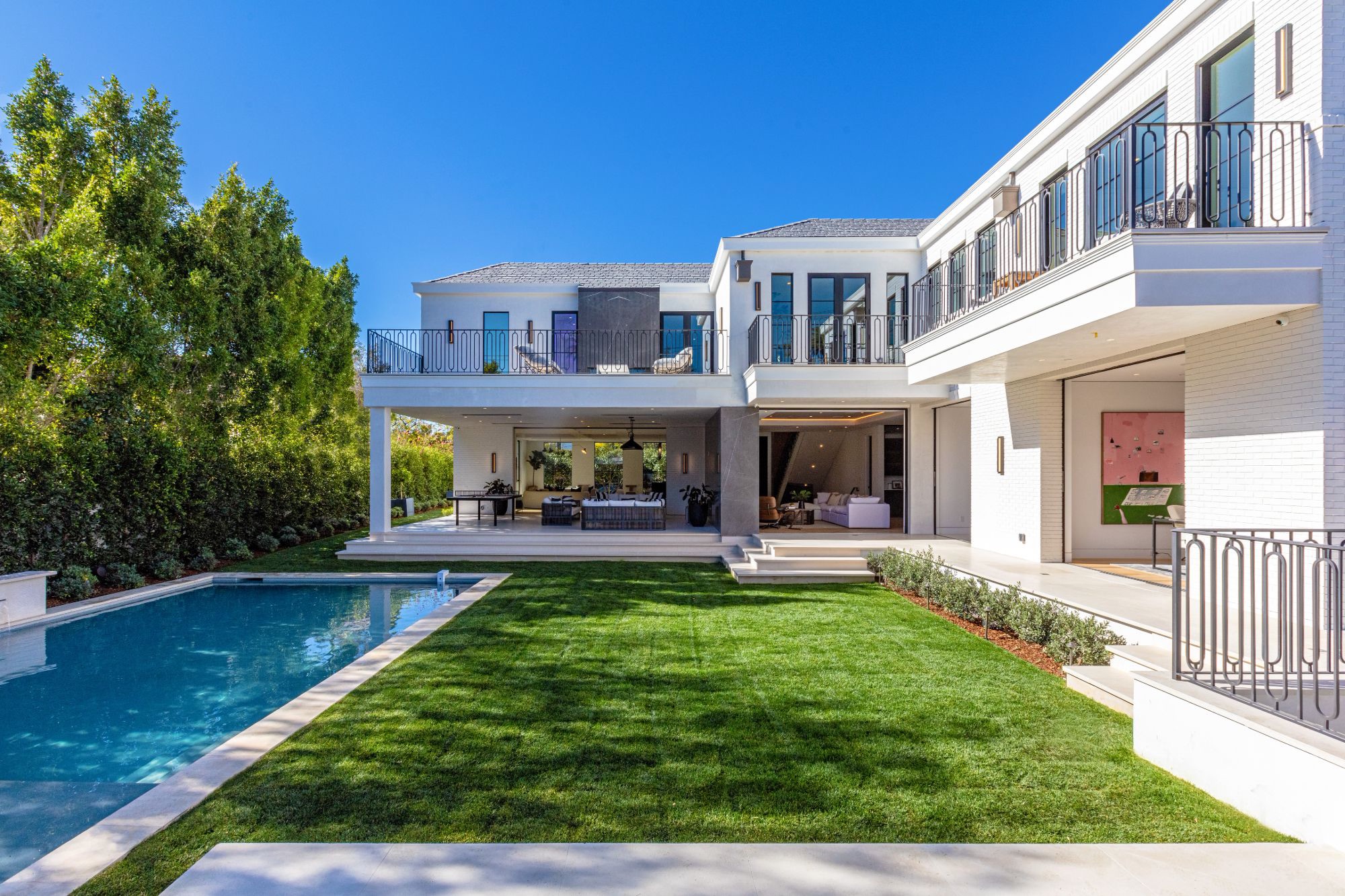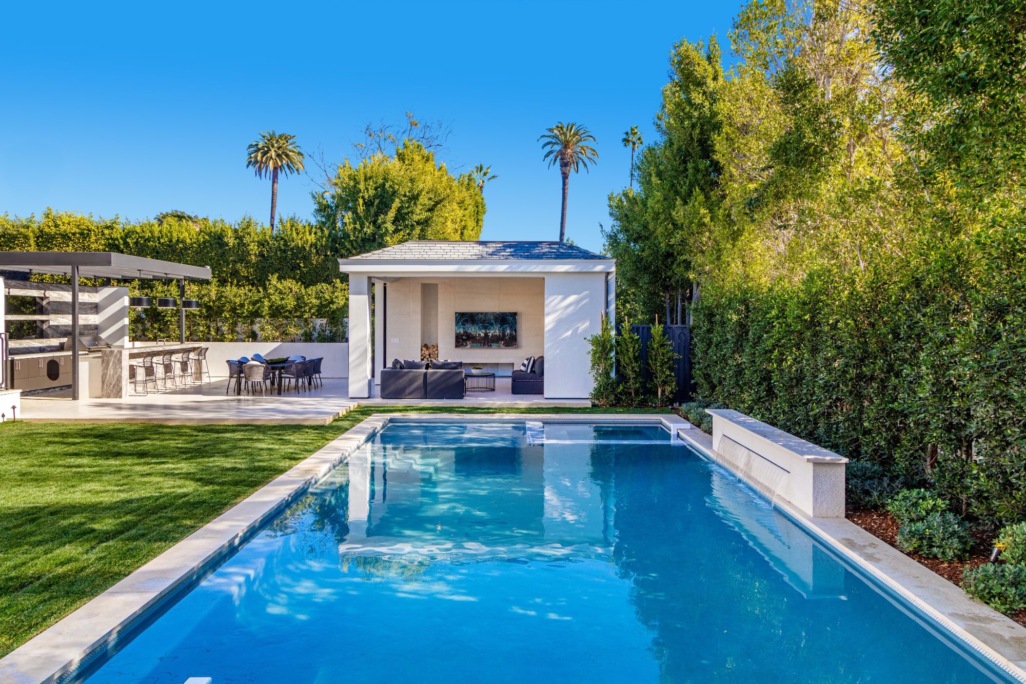 Behind the gates & lush landscape in the coveted Beverly Hills Flats, this brand-new Hamptons-inspired modern with a 5-car subterranean garage is the culmination of privacy, style & entertainment near Rodeo Dr & other world-class destinations. Perfect indoor/outdoor lifestyle awaits in an L-shaped estate with exquisite walnut wood paneling & Hermes leather backdrop, overlooking an expansive pool. Formal living, dining & office are framed by glass sliders showcasing a custom-built outdoor entertaining area with BBQ, bar, pool & spa. Rarely does a home embody both warmth & modern aesthetics & provide social & family possibilities. Chefs kitchen & an oversized glass wine cellar fulfill culinary ideals. Downstairs is an entertainment oasis with soaring 11-ft ceilings, glowing marble wine wall, bar, theater with blue leather seats, gym, sauna and massage. Upstairs boasts study & 5 bedrooms including a sumptuous primary suite with marble baths & soaking tub. The ultimate entertainers dream home.