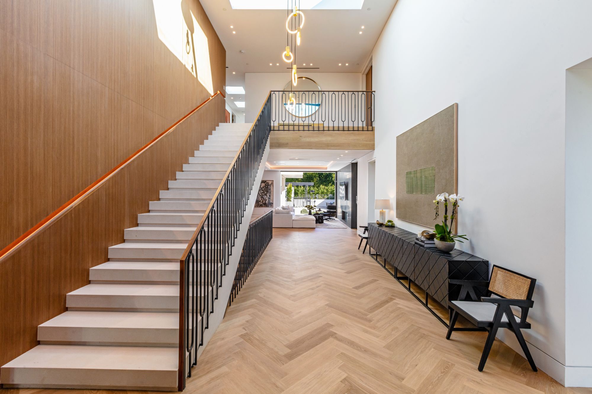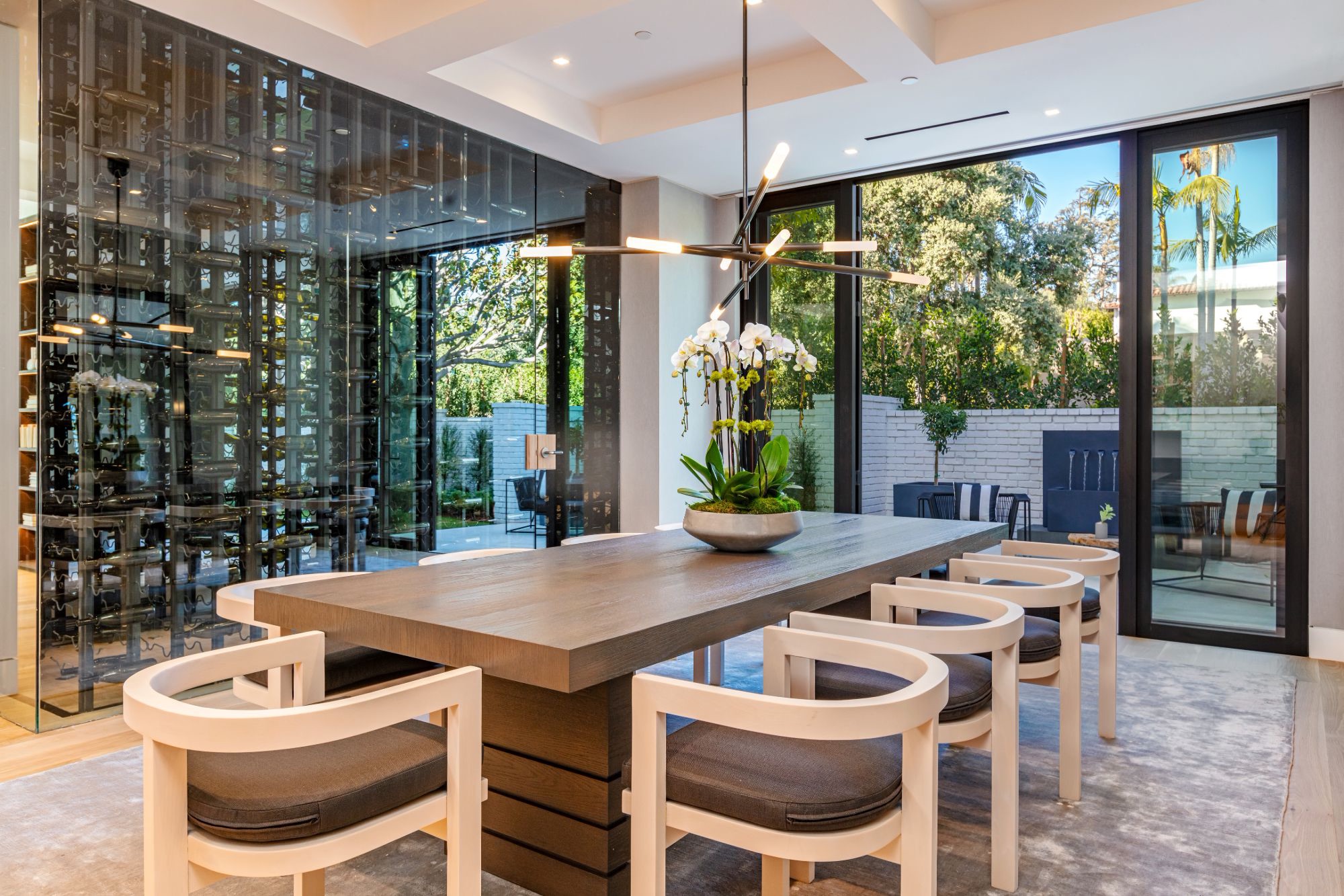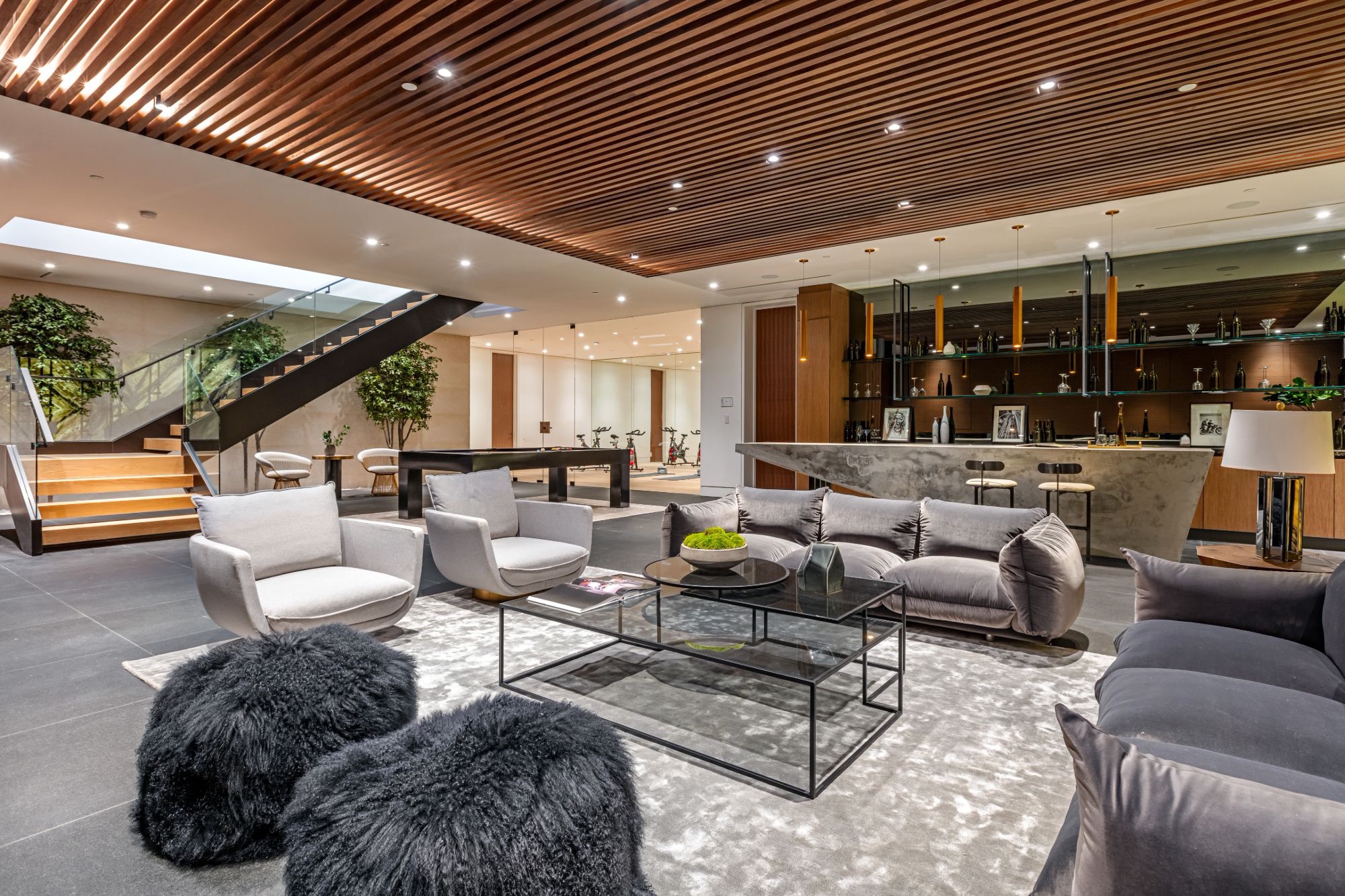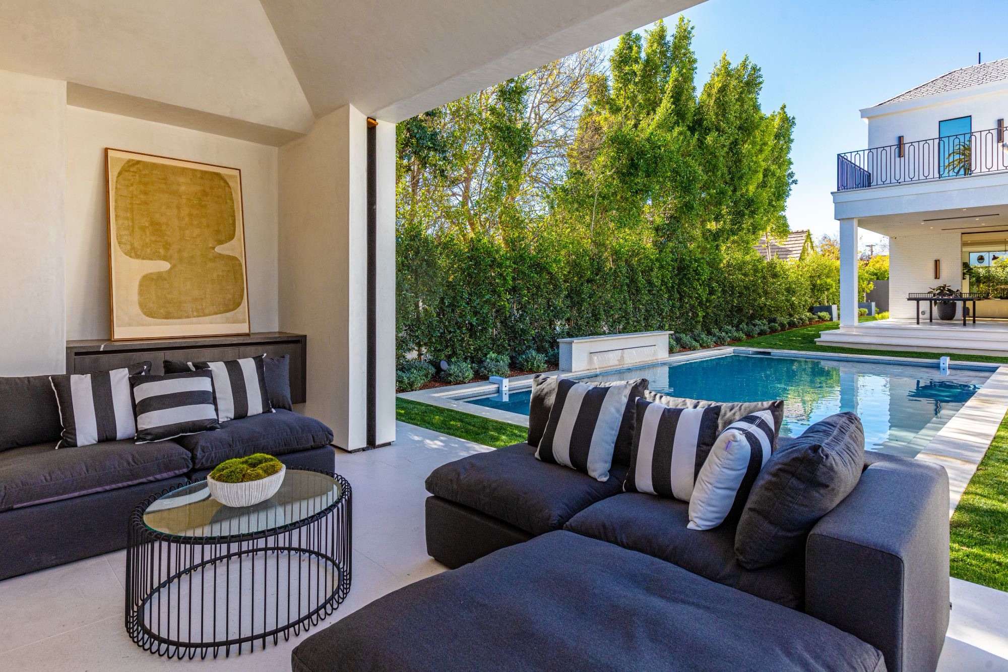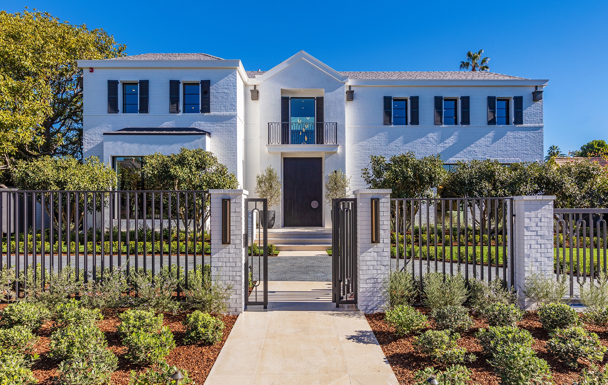 Behind the gates & lush landscape in the coveted Beverly Hills Flats, this brand-new Hamptons-inspired modern with a 5-car subterranean garage is the culmination of privacy, style & entertainment near Rodeo Dr & other world-class destinations. Perfect indoor/outdoor lifestyle awaits in an L-shaped estate with exquisite walnut wood paneling & Hermes leather backdrop, overlooking an expansive pool. Formal living, dining & office are framed by glass sliders showcasing a custom-built outdoor entertaining area with BBQ, bar, pool & spa. Rarely does a home embody both warmth & modern aesthetics & provide social & family possibilities. Chefs kitchen & an oversized glass wine cellar fulfill culinary ideals. Downstairs is an entertainment oasis with soaring 11-ft ceilings, glowing marble wine wall, bar, theater with blue leather seats, gym, sauna and massage. Upstairs boasts study & 5 bedrooms including a sumptuous primary suite with marble baths & soaking tub. The ultimate entertainers dream home.