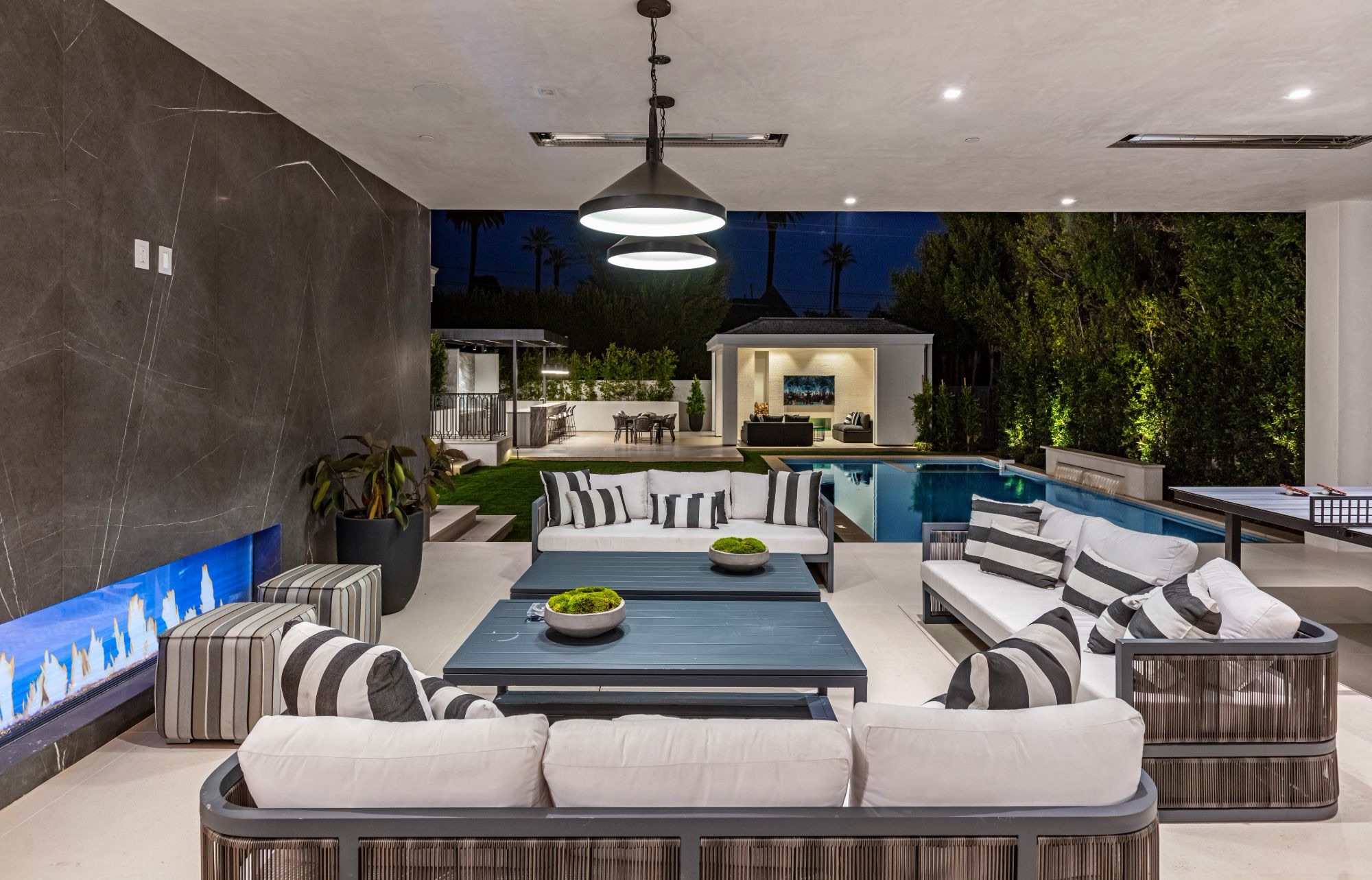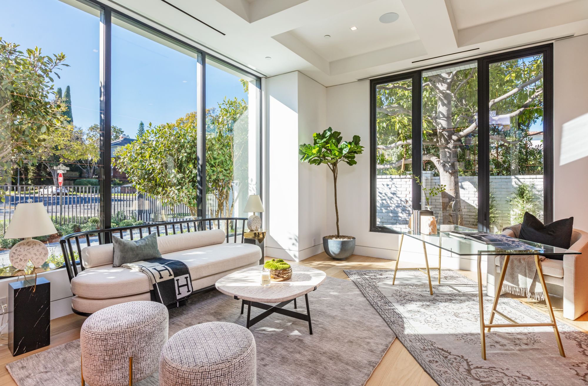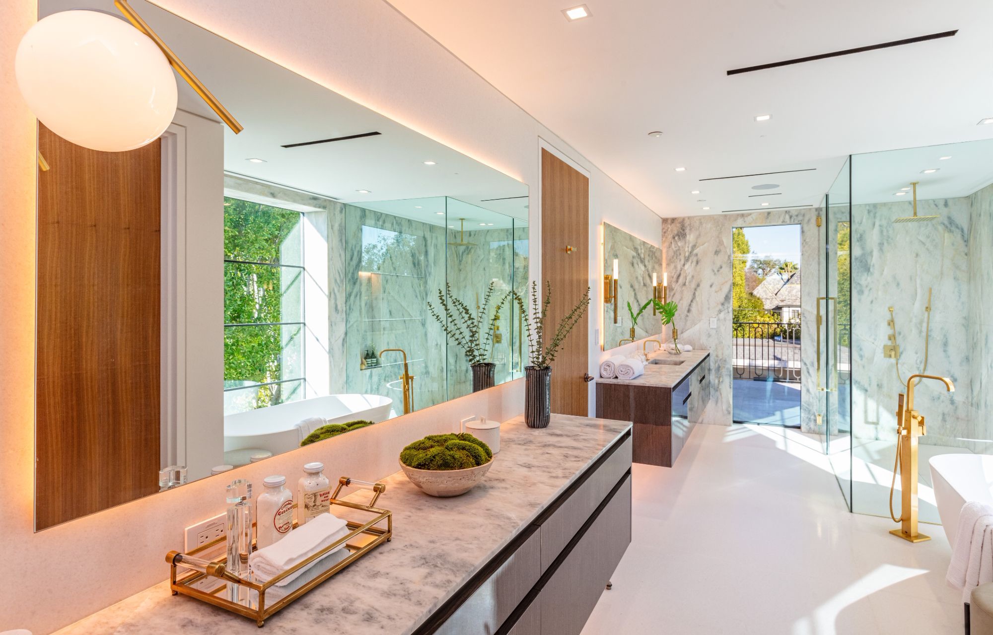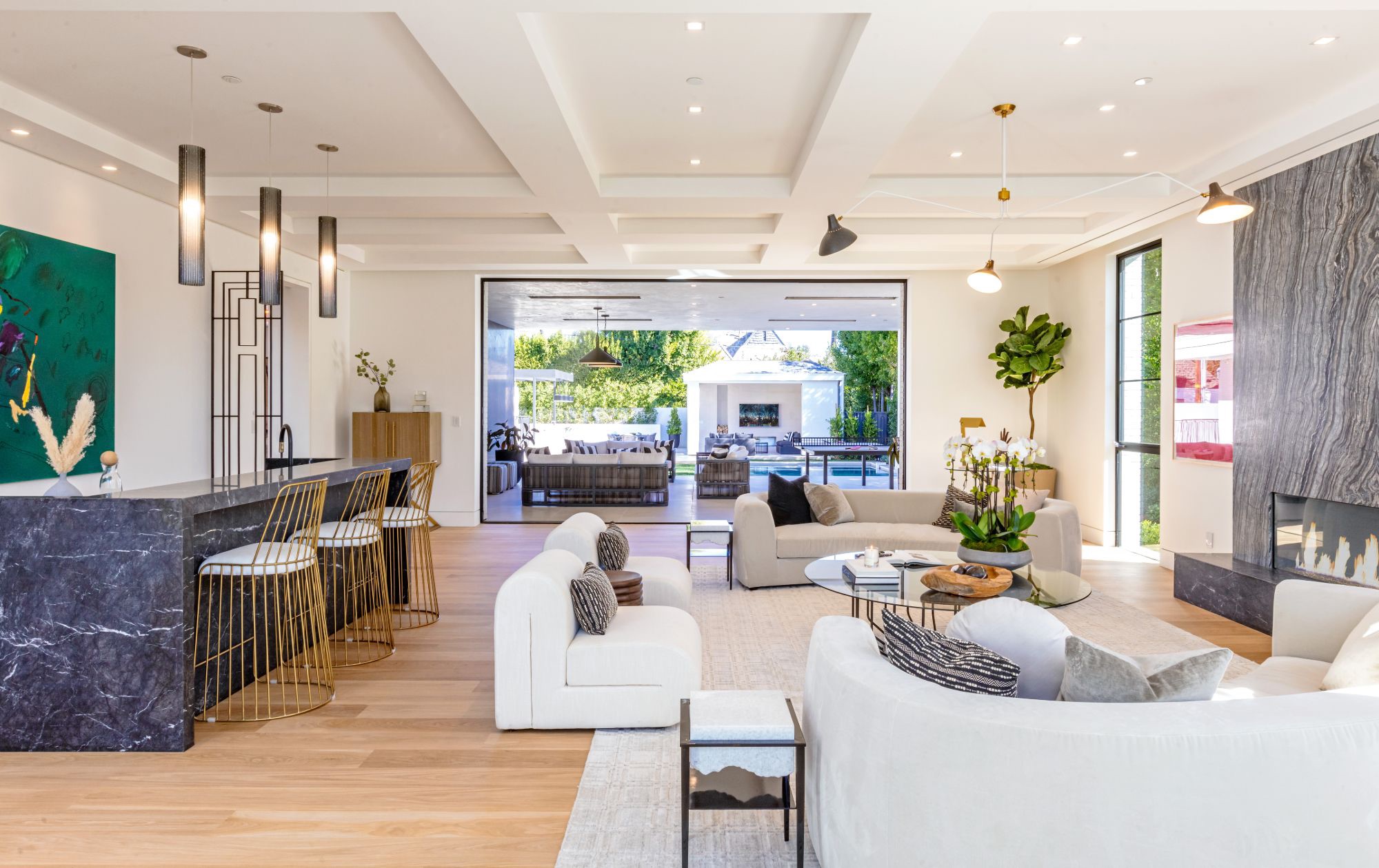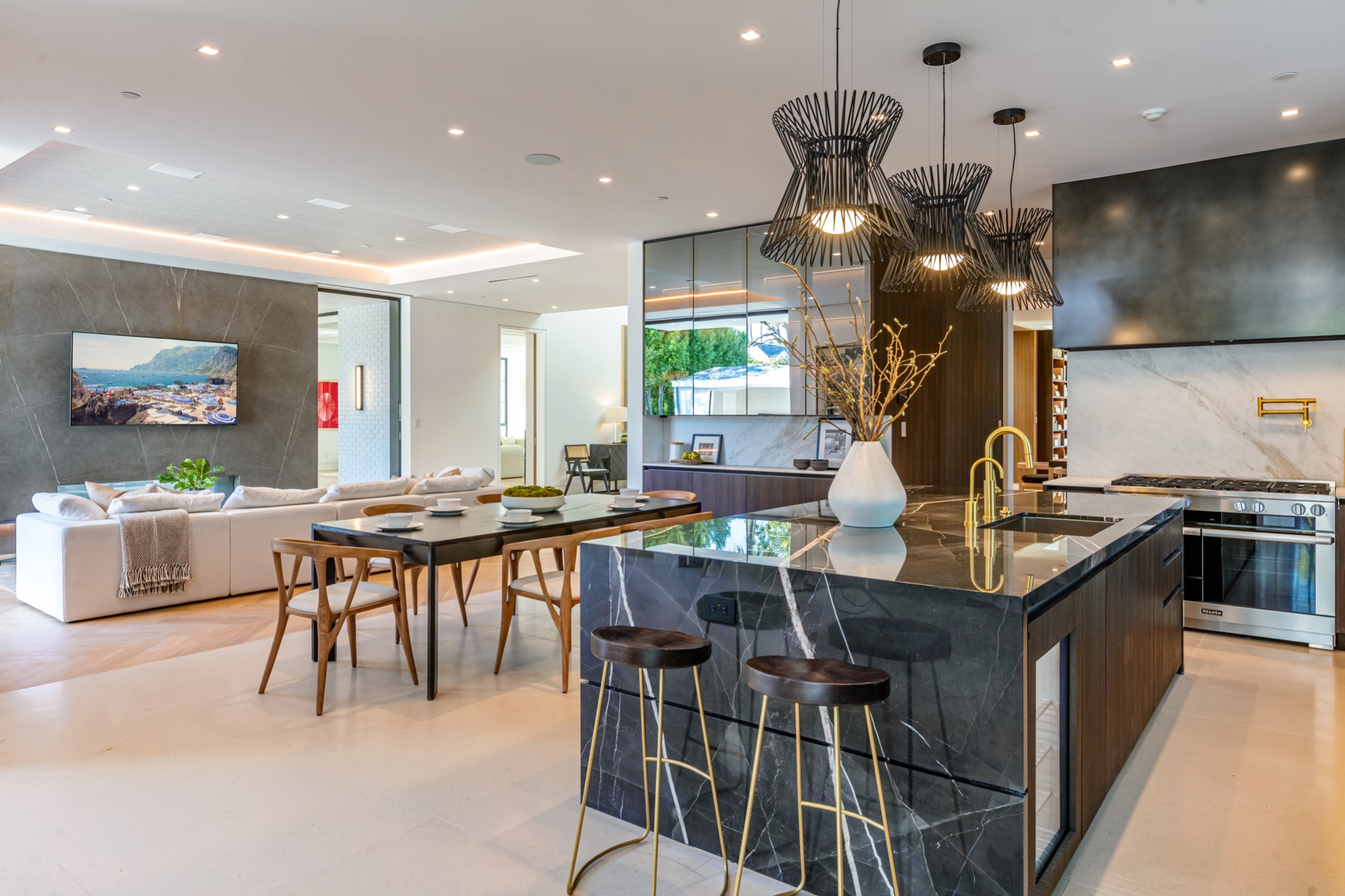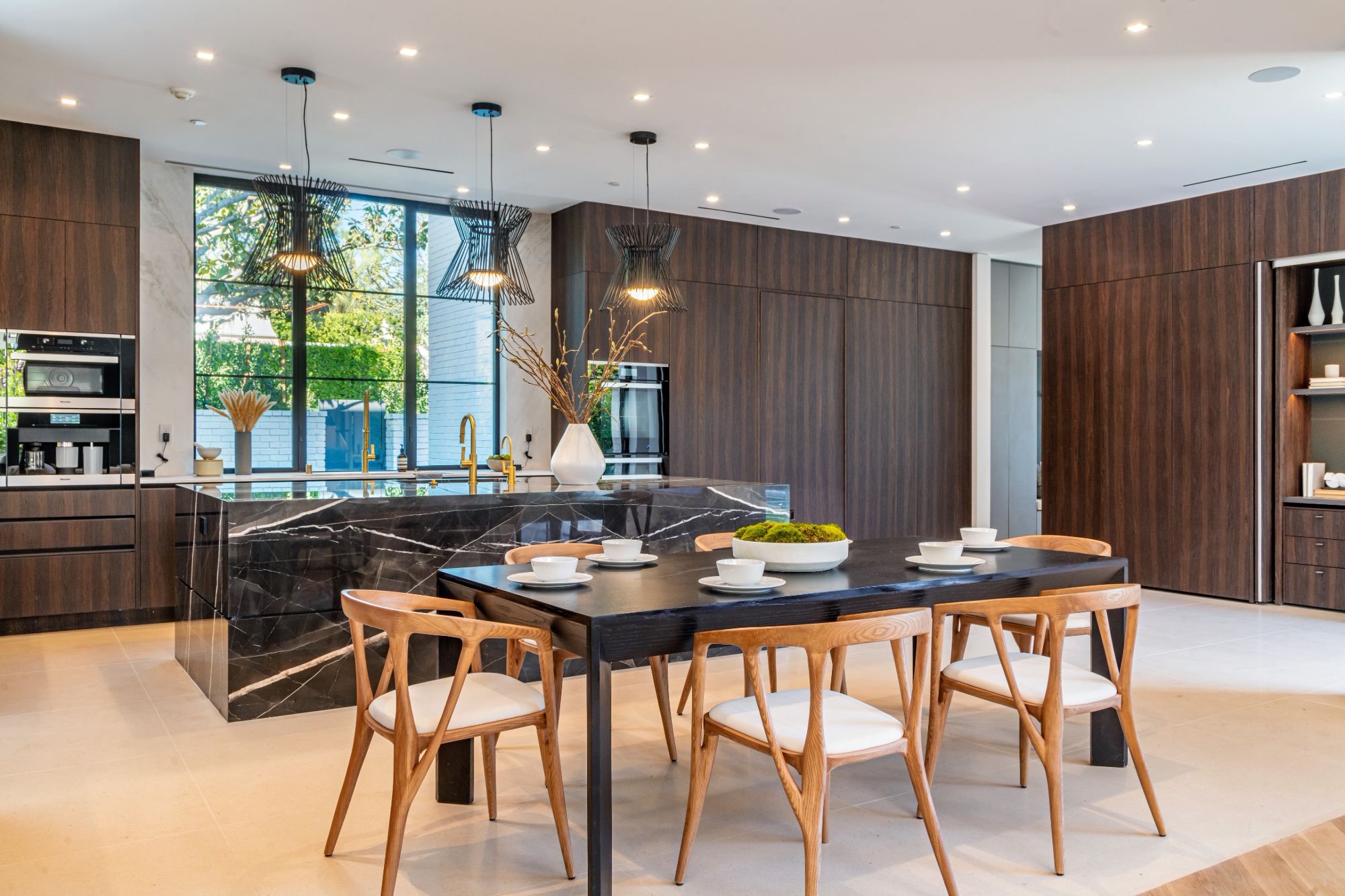 Behind the gates & lush landscape in the coveted Beverly Hills Flats, this brand-new Hamptons-inspired modern with a 5-car subterranean garage is the culmination of privacy, style & entertainment near Rodeo Dr & other world-class destinations. Perfect indoor/outdoor lifestyle awaits in an L-shaped estate with exquisite walnut wood paneling & Hermes leather backdrop, overlooking an expansive pool. Formal living, dining & office are framed by glass sliders showcasing a custom-built outdoor entertaining area with BBQ, bar, pool & spa. Rarely does a home embody both warmth & modern aesthetics & provide social & family possibilities. Chefs kitchen & an oversized glass wine cellar fulfill culinary ideals. Downstairs is an entertainment oasis with soaring 11-ft ceilings, glowing marble wine wall, bar, theater with blue leather seats, gym, sauna and massage. Upstairs boasts study & 5 bedrooms including a sumptuous primary suite with marble baths & soaking tub. The ultimate entertainers dream home.