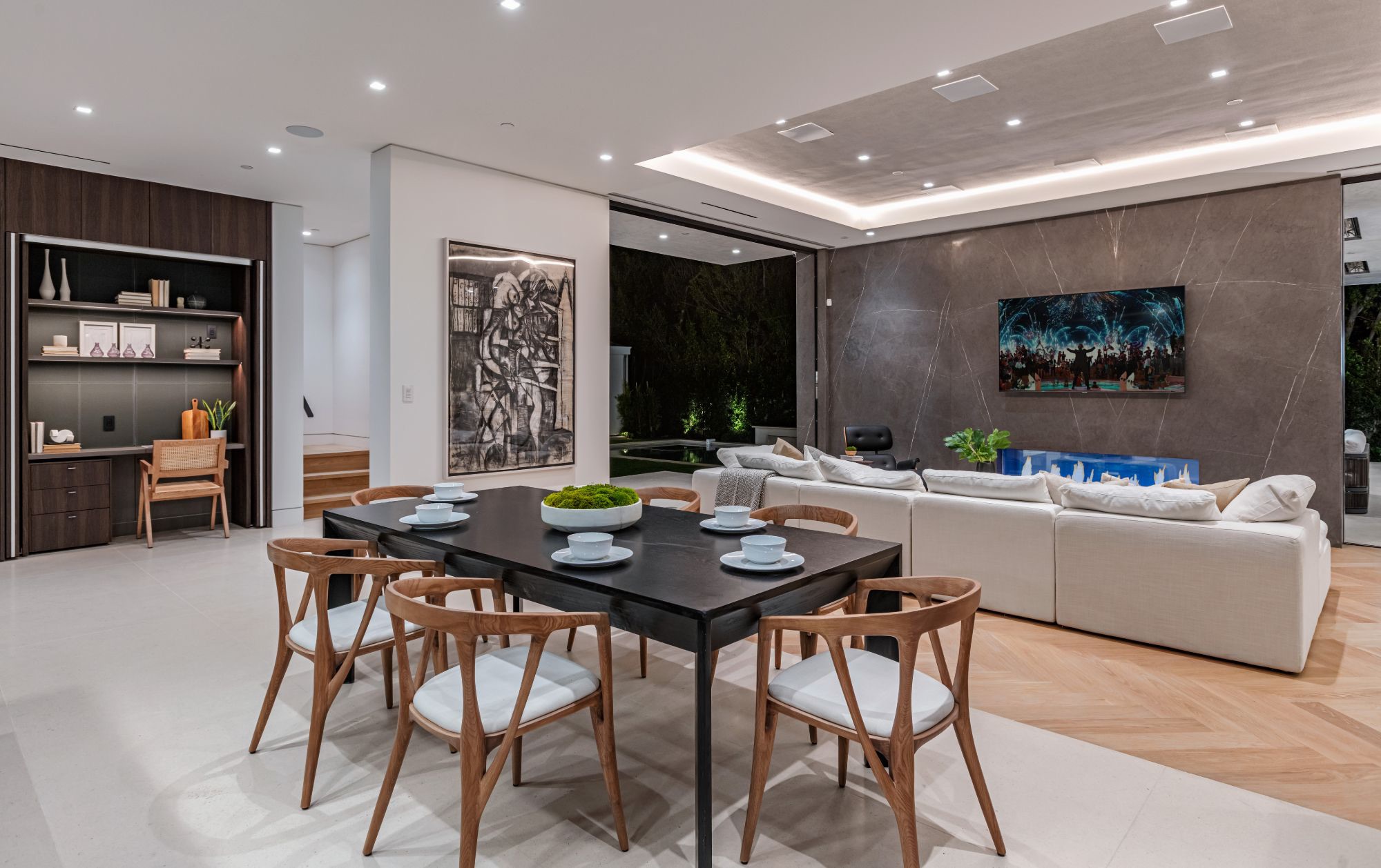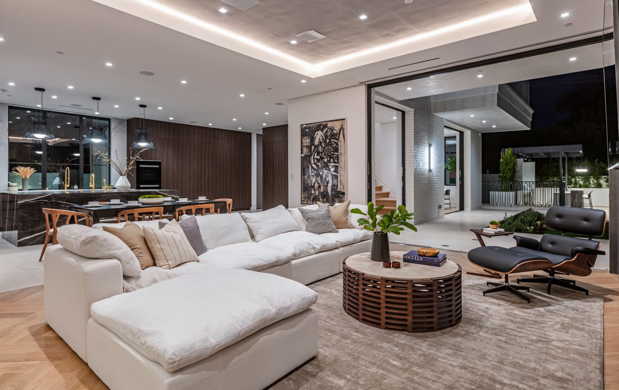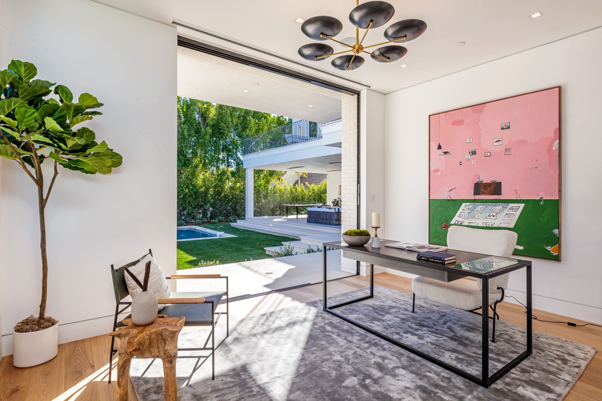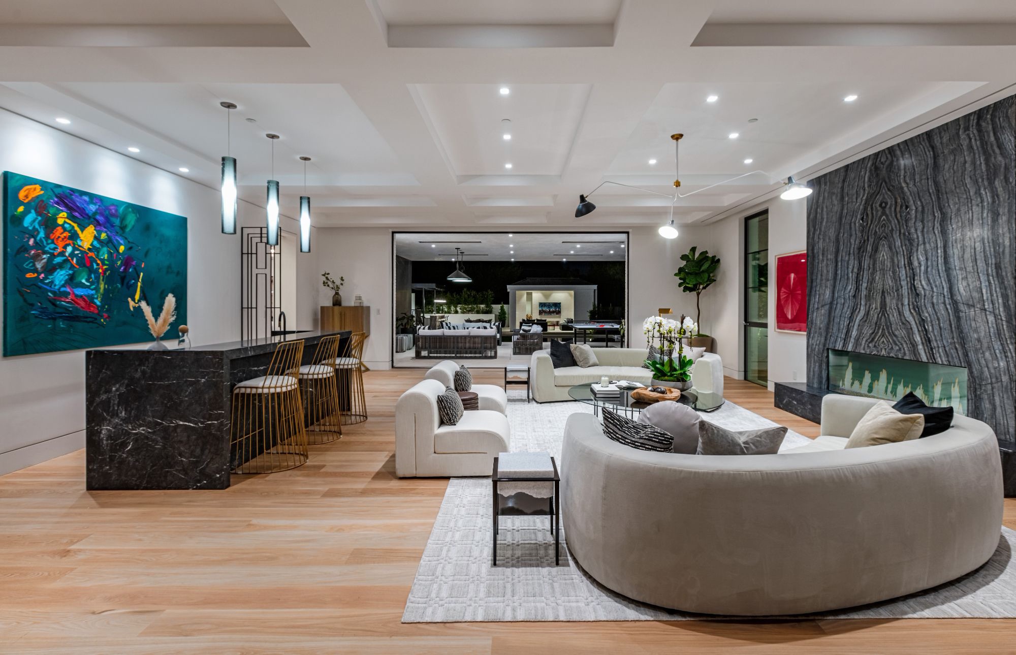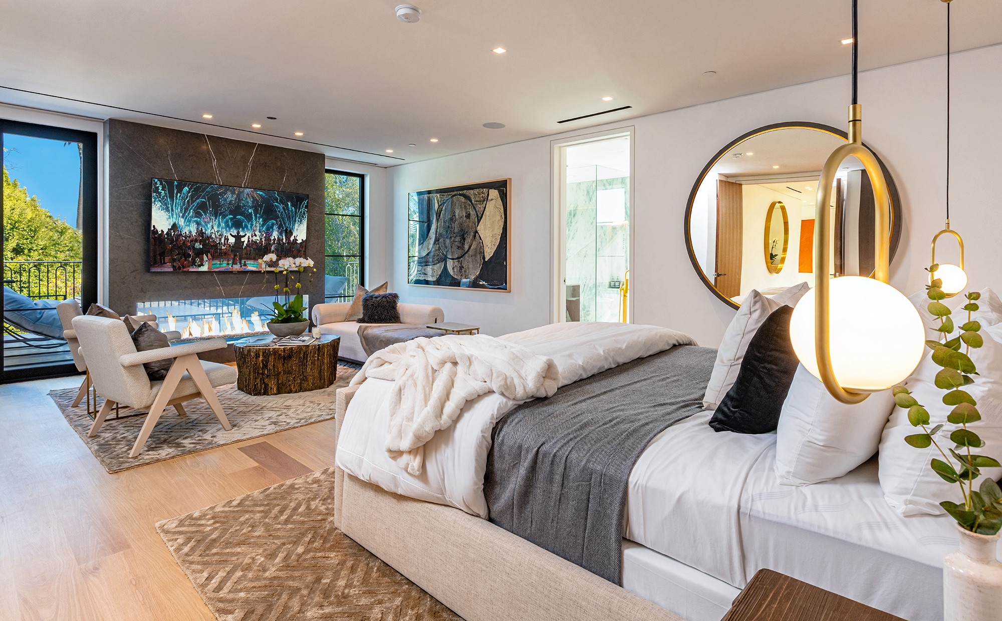 Behind the gates & lush landscape in the coveted Beverly Hills Flats, this brand-new Hamptons-inspired modern with a 5-car subterranean garage is the culmination of privacy, style & entertainment near Rodeo Dr & other world-class destinations. Perfect indoor/outdoor lifestyle awaits in an L-shaped estate with exquisite walnut wood paneling & Hermes leather backdrop, overlooking an expansive pool. Formal living, dining & office are framed by glass sliders showcasing a custom-built outdoor entertaining area with BBQ, bar, pool & spa. Rarely does a home embody both warmth & modern aesthetics & provide social & family possibilities. Chefs kitchen & an oversized glass wine cellar fulfill culinary ideals. Downstairs is an entertainment oasis with soaring 11-ft ceilings, glowing marble wine wall, bar, theater with blue leather seats, gym, sauna and massage. Upstairs boasts study & 5 bedrooms including a sumptuous primary suite with marble baths & soaking tub. The ultimate entertainers dream home.
