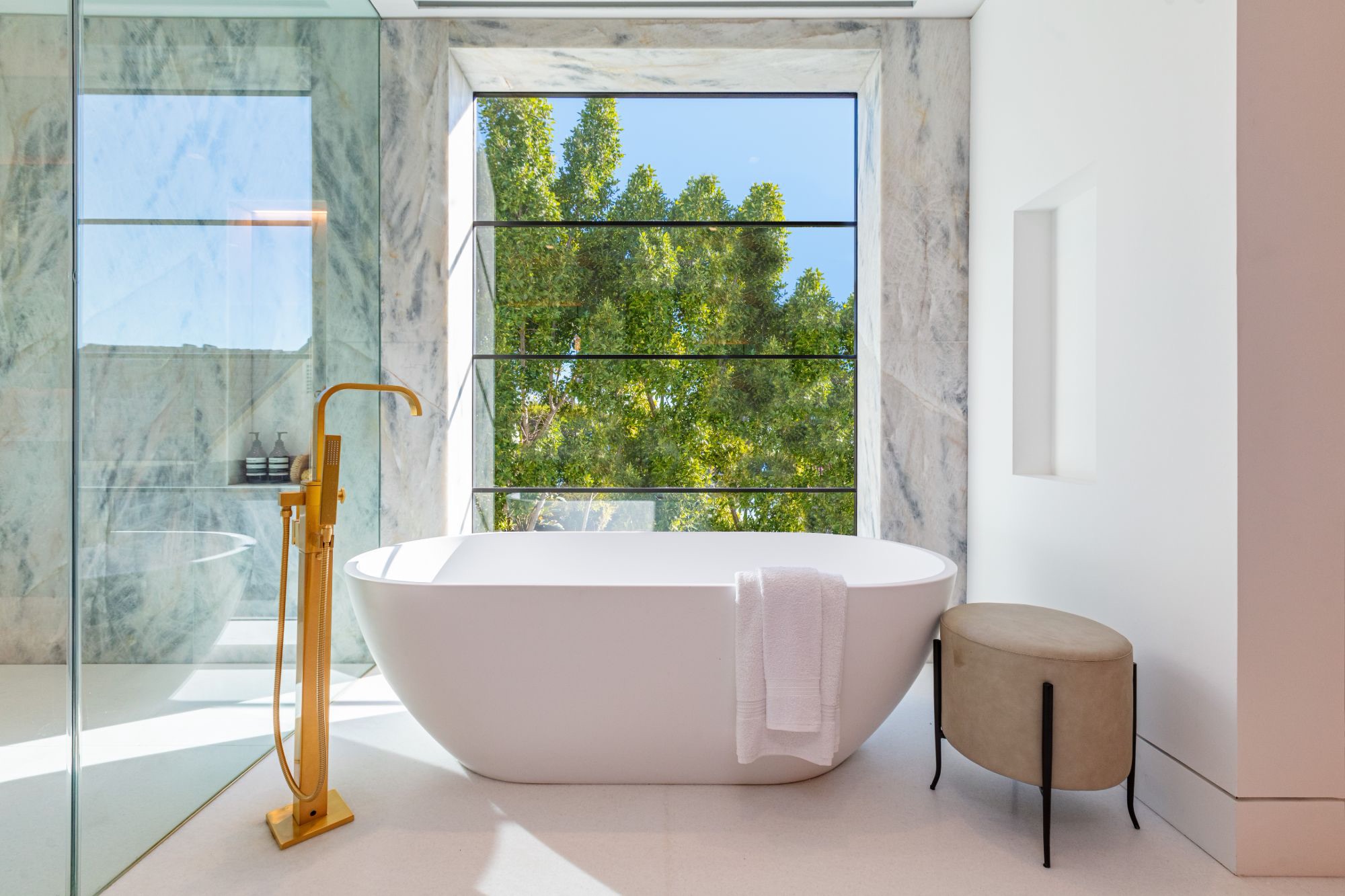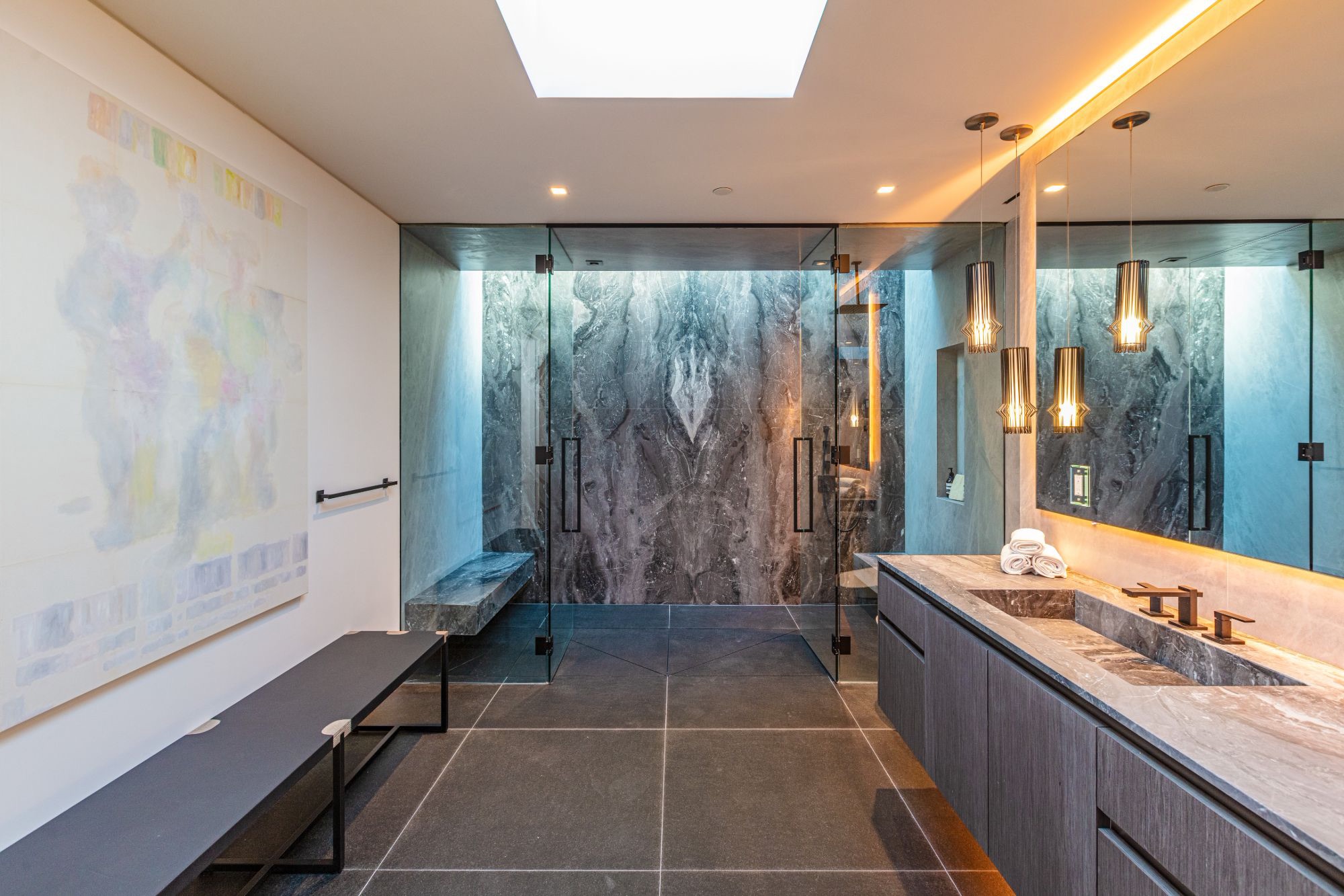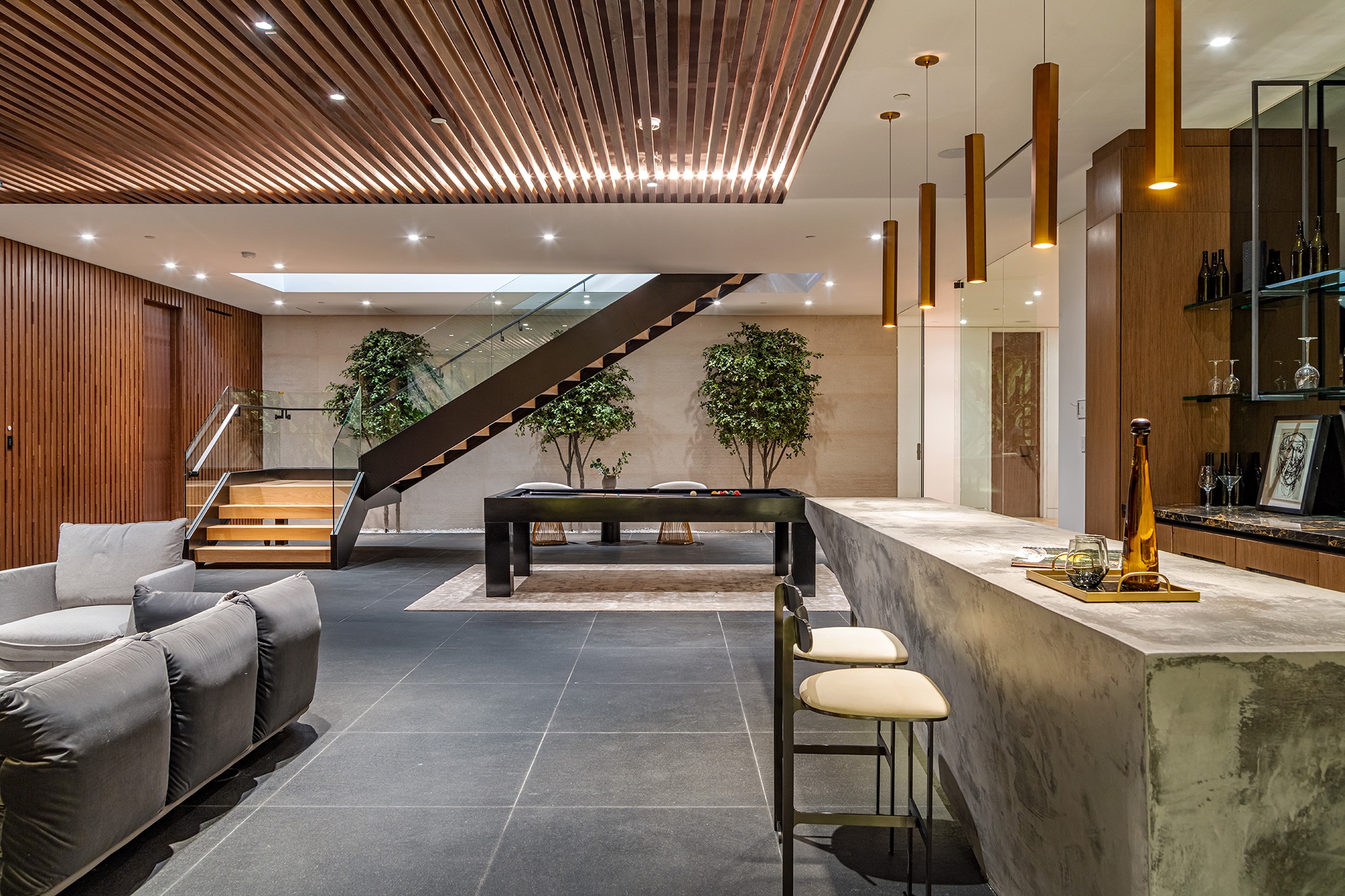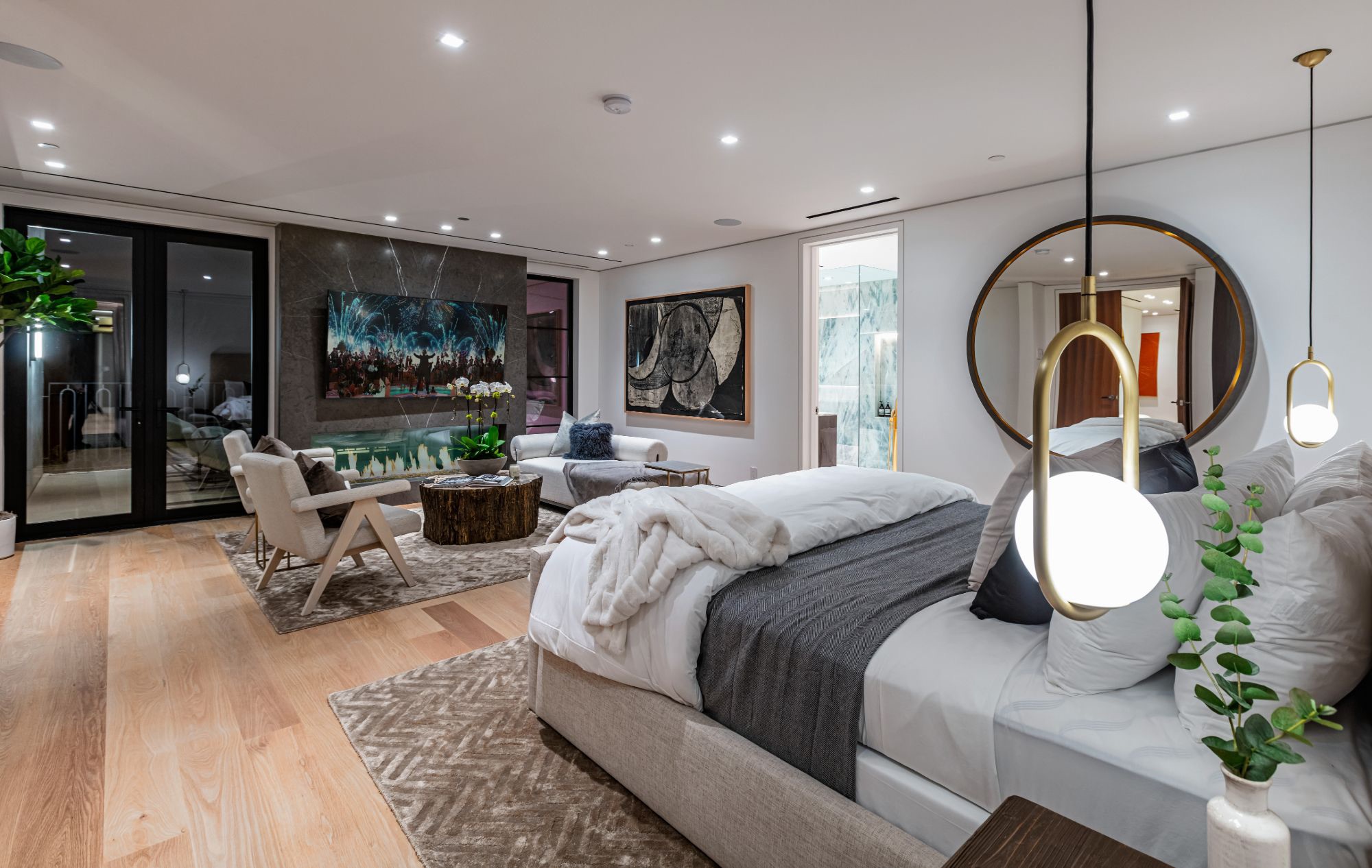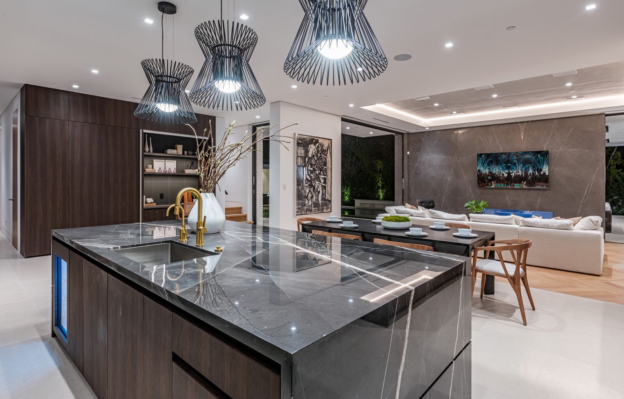 Behind the gates & lush landscape in the coveted Beverly Hills Flats, this brand-new Hamptons-inspired modern with a 5-car subterranean garage is the culmination of privacy, style & entertainment near Rodeo Dr & other world-class destinations. Perfect indoor/outdoor lifestyle awaits in an L-shaped estate with exquisite walnut wood paneling & Hermes leather backdrop, overlooking an expansive pool. Formal living, dining & office are framed by glass sliders showcasing a custom-built outdoor entertaining area with BBQ, bar, pool & spa. Rarely does a home embody both warmth & modern aesthetics & provide social & family possibilities. Chefs kitchen & an oversized glass wine cellar fulfill culinary ideals. Downstairs is an entertainment oasis with soaring 11-ft ceilings, glowing marble wine wall, bar, theater with blue leather seats, gym, sauna and massage. Upstairs boasts study & 5 bedrooms including a sumptuous primary suite with marble baths & soaking tub. The ultimate entertainers dream home.