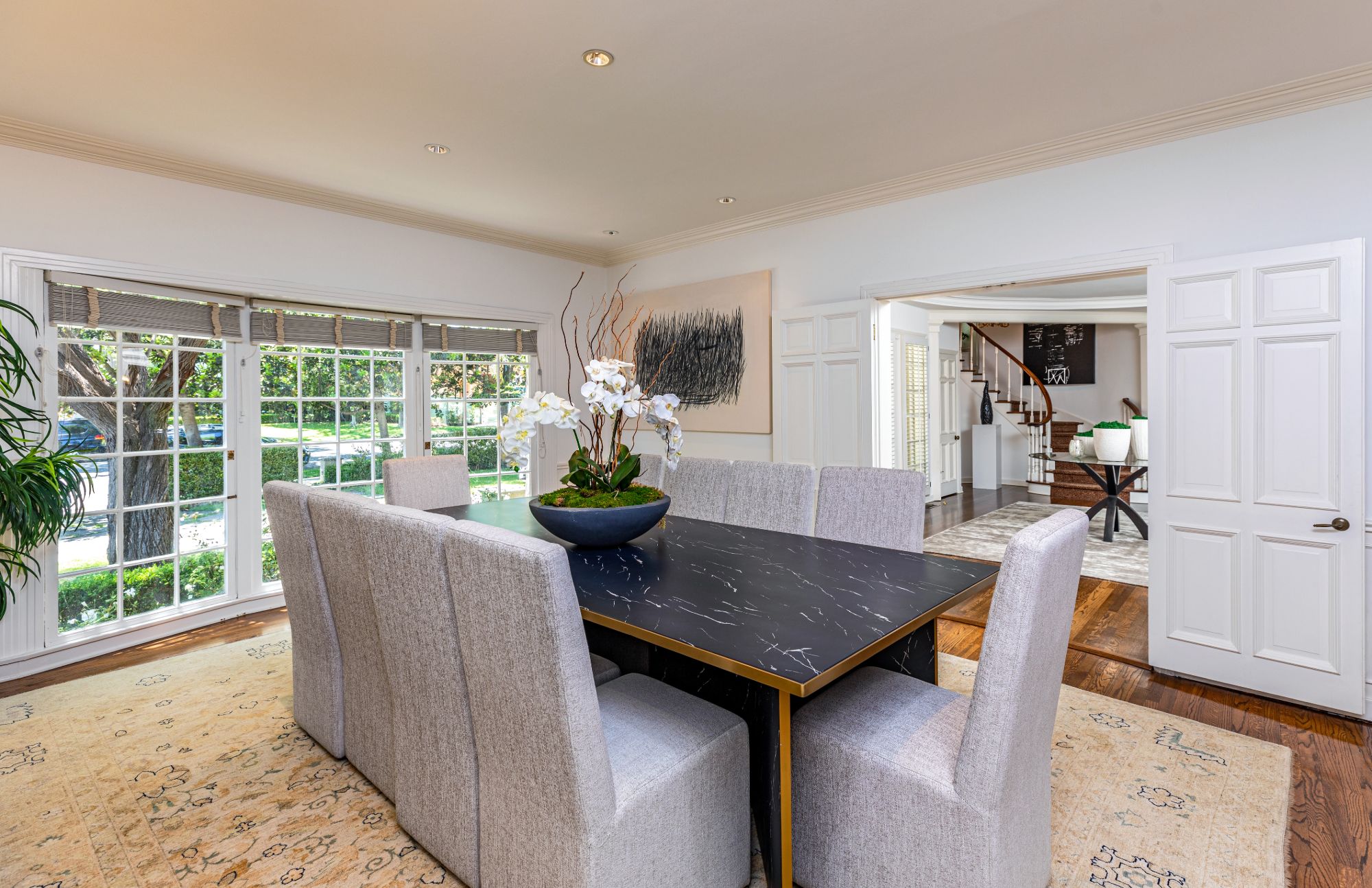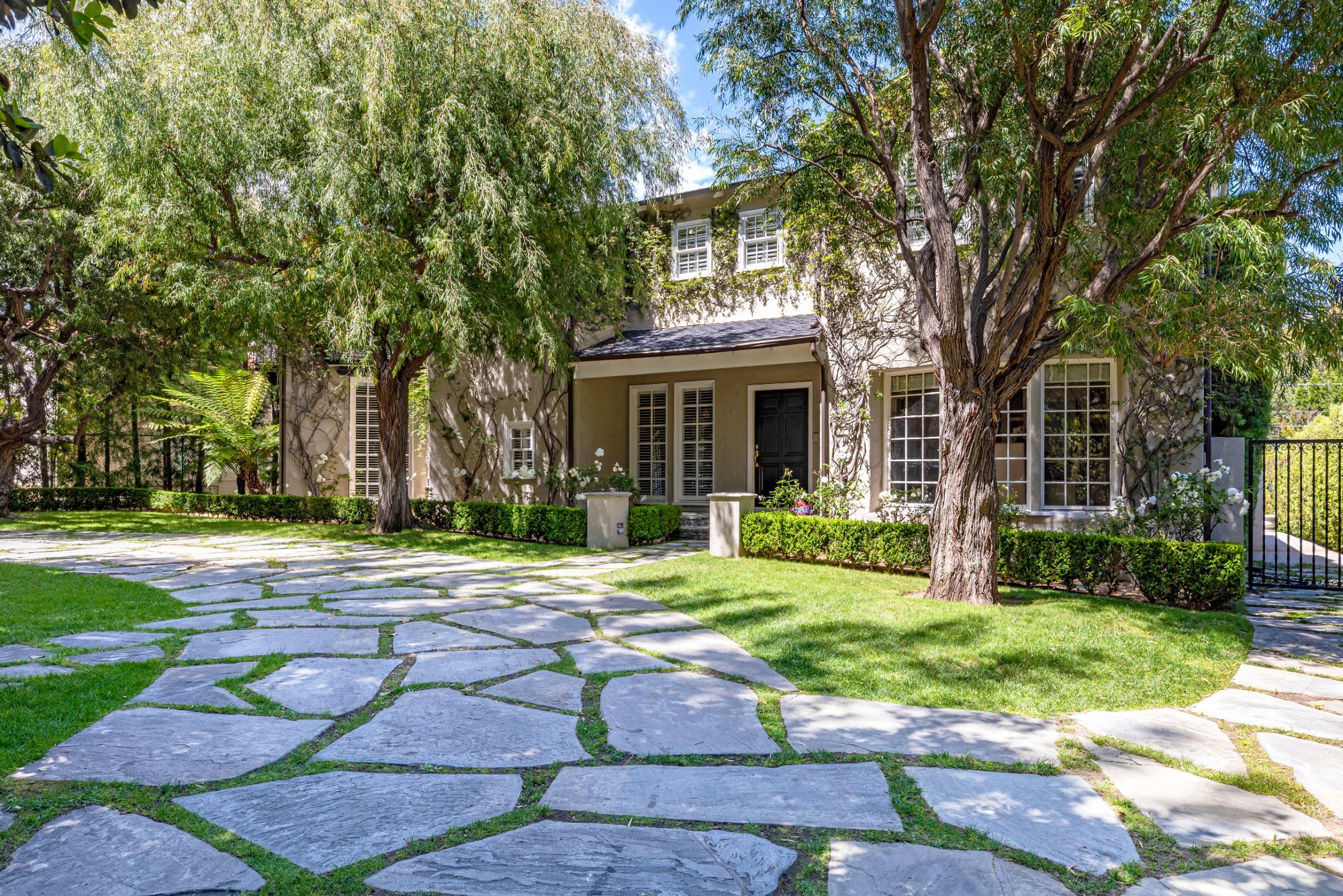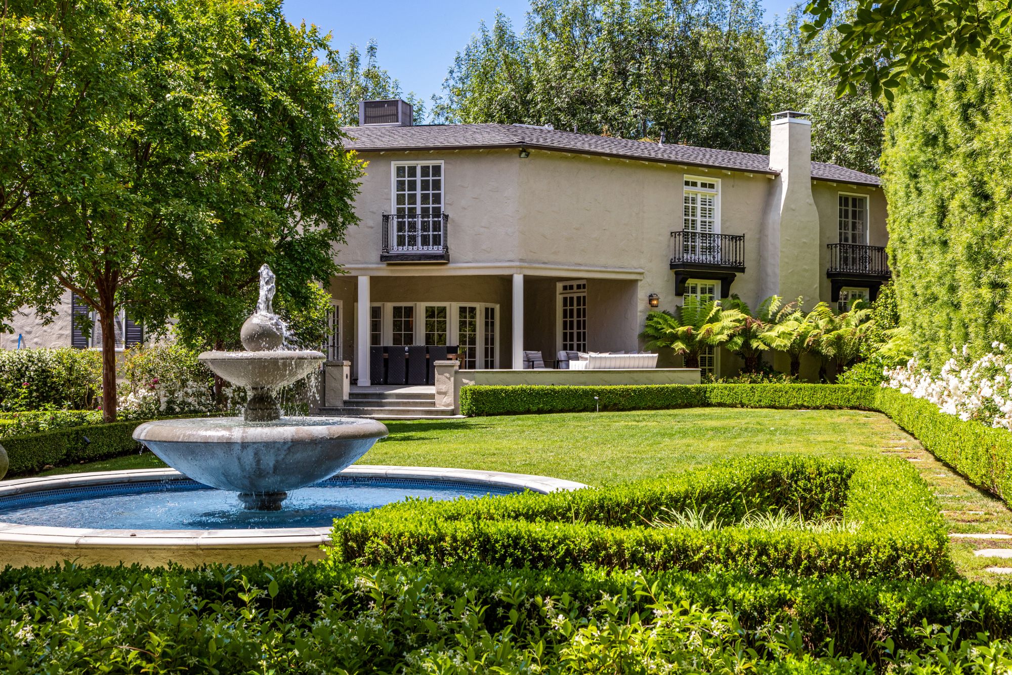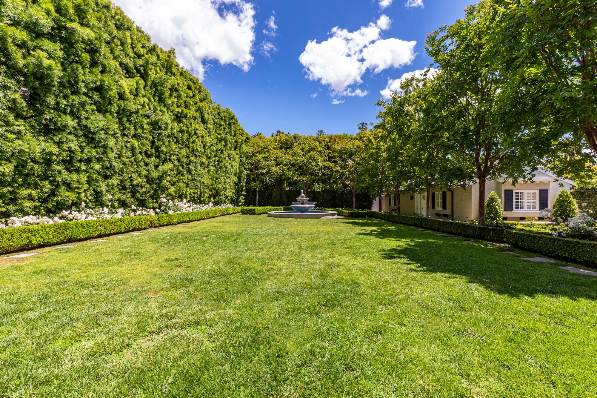 This beautiful private & serene French traditional is set on an almost half-acre lot. Sprawling with meticulous gardens & majestic water features this gem is located on one of the most desirable streets in the flats of Beverly Hills. Within walking distance to all the world class dining & entertainment Beverly Hills has to offer. Enter to a grand entry with hardwood floors and spiral staircase leading to an impeccably designed living room w/ fireplace, den & dining room. A luxurious chefs kitchen flows open to the covered al-fresco dining area perfect for your next dinner party. Complete with 4 guest suites and bonus maids room downstairs. This is the ultimate in sophistication & luxury; don't miss your chance to claim your spot on the most prestigious block in the world famous 90210 zip code.