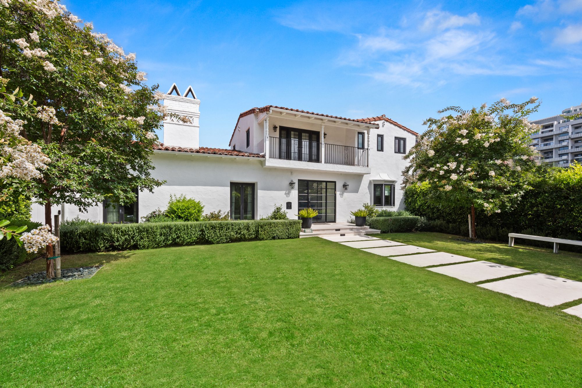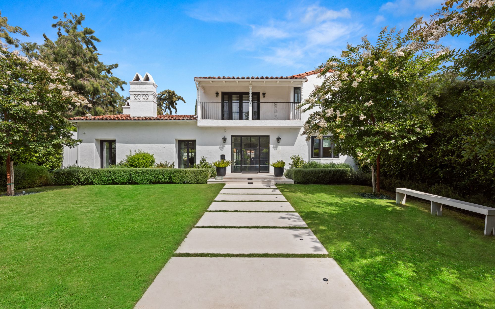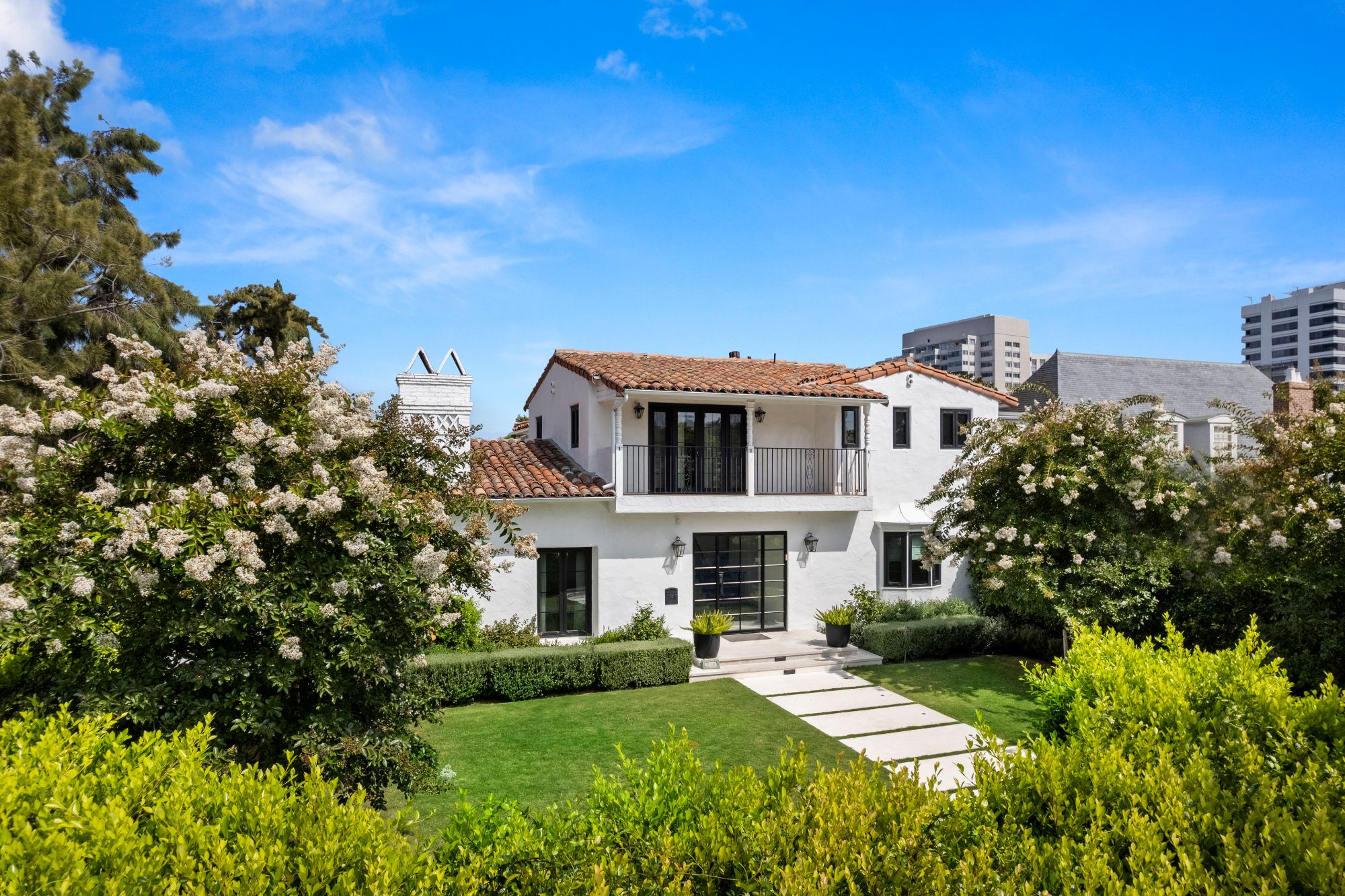 This is an exceptional opportunity to own a meticulously renovated home in the coveted Little Holmby neighborhood. The 5BD, 6BA home seamlessly blends its original Spanish architectural charm with contemporary design and upscale finishes. Set behind a gated entrance and lush hedges to provide privacy, the property features a bright foyer with limestone flooring and an abundance of natural light. The main level includes a den, formal living room, formal dining room, and modern kitchen. Upstairs, there's a spacious primary suite with walk-in closet and spa-like bathroom. The backyard boasts a courtyard with outdoor fireplace, a large patio for dining al fresco, and a swimming pool with a large deck. Additional highlights include a detached two-car garage, off-street parking for three cars, and a central location close to Century City, Beverly Hills, Westwood Village, and UCLA. An unparalleled blend of timeless elegance and contemporary luxury awaits in the heart of the prestigious Little Holmby neighborhood.