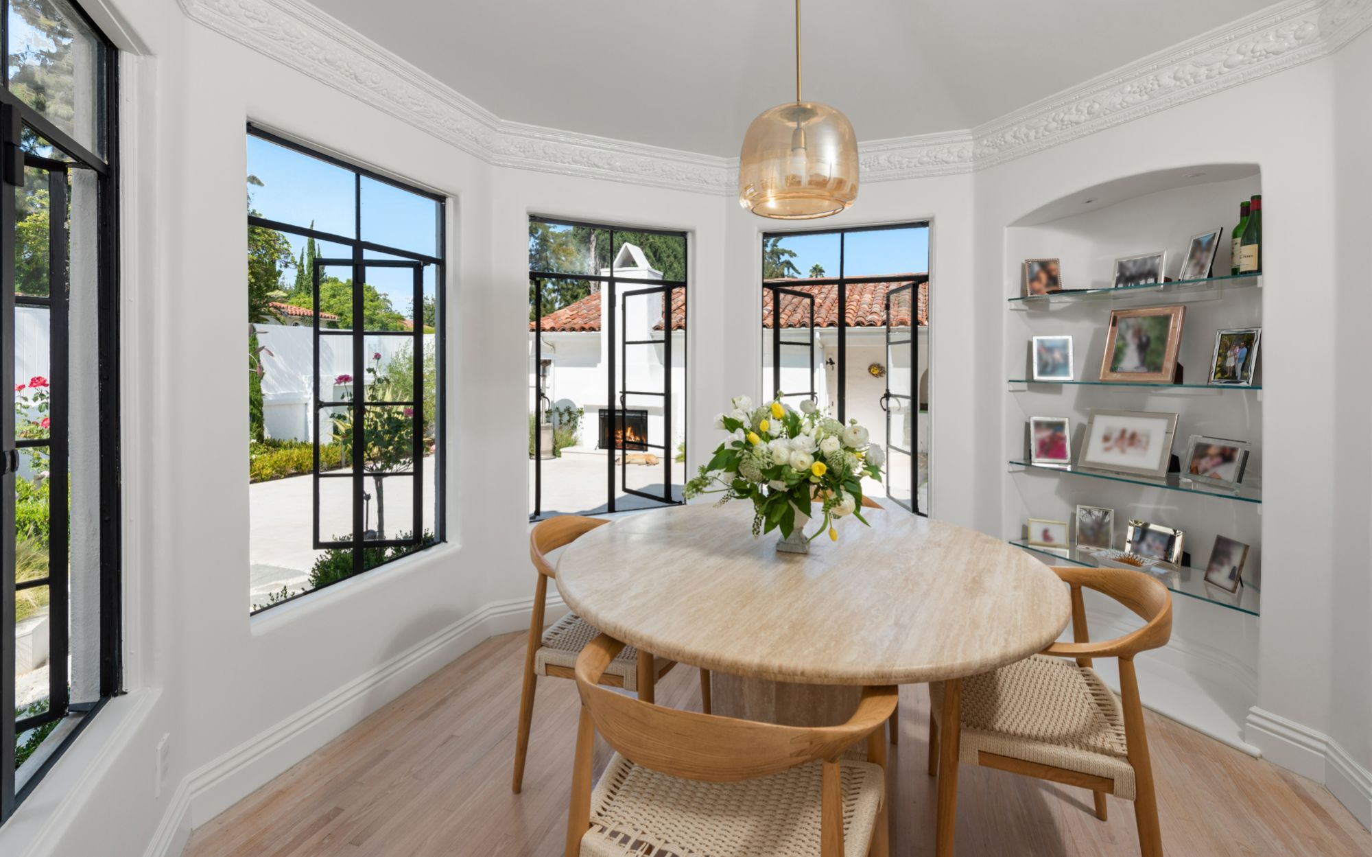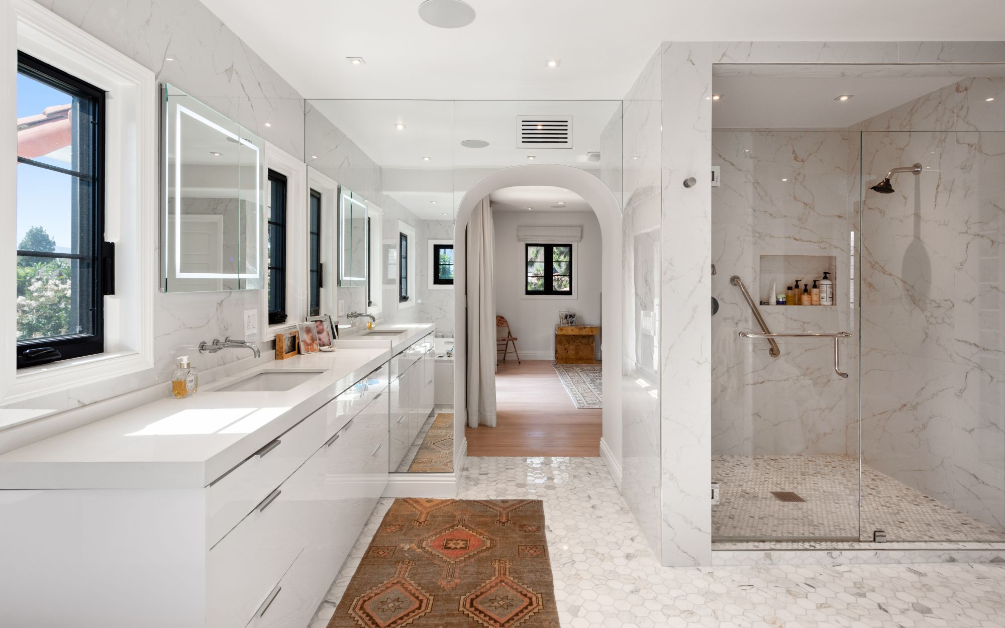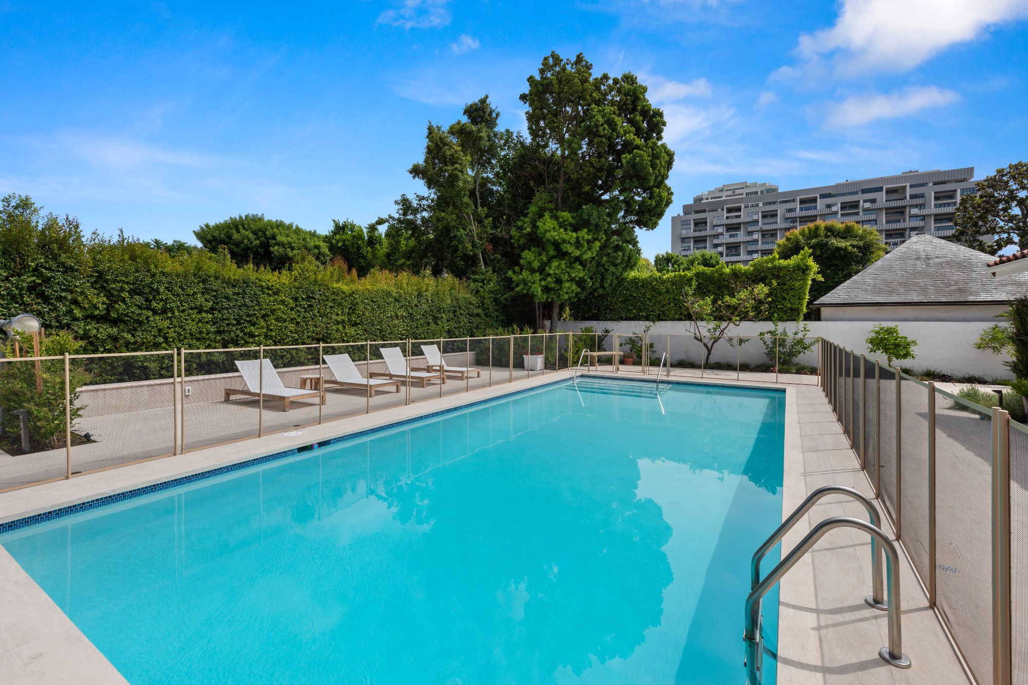 This is an exceptional opportunity to own a meticulously renovated home in the coveted Little Holmby neighborhood. The 5BD, 6BA home seamlessly blends its original Spanish architectural charm with contemporary design and upscale finishes. Set behind a gated entrance and lush hedges to provide privacy, the property features a bright foyer with limestone flooring and an abundance of natural light. The main level includes a den, formal living room, formal dining room, and modern kitchen. Upstairs, there's a spacious primary suite with walk-in closet and spa-like bathroom. The backyard boasts a courtyard with outdoor fireplace, a large patio for dining al fresco, and a swimming pool with a large deck. Additional highlights include a detached two-car garage, off-street parking for three cars, and a central location close to Century City, Beverly Hills, Westwood Village, and UCLA. An unparalleled blend of timeless elegance and contemporary luxury awaits in the heart of the prestigious Little Holmby neighborhood.