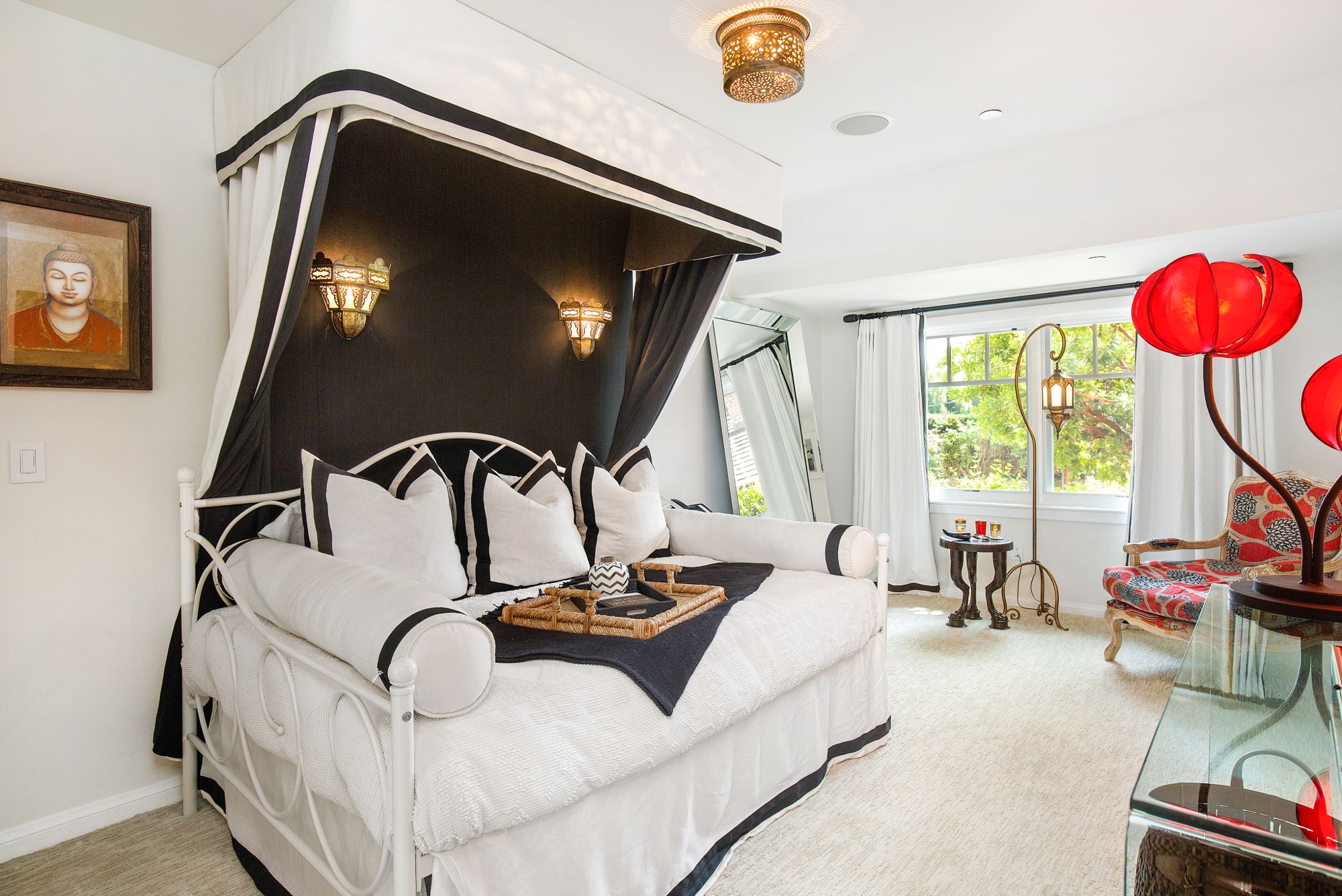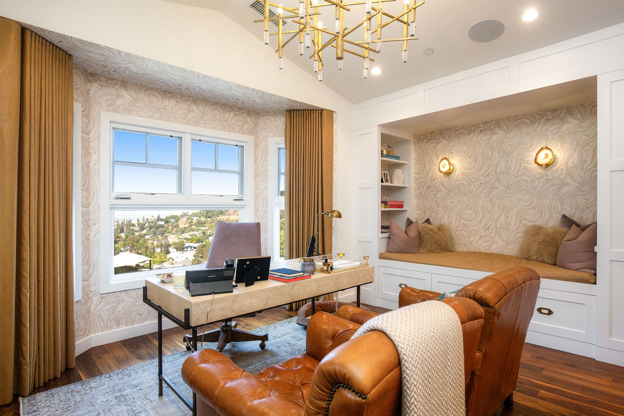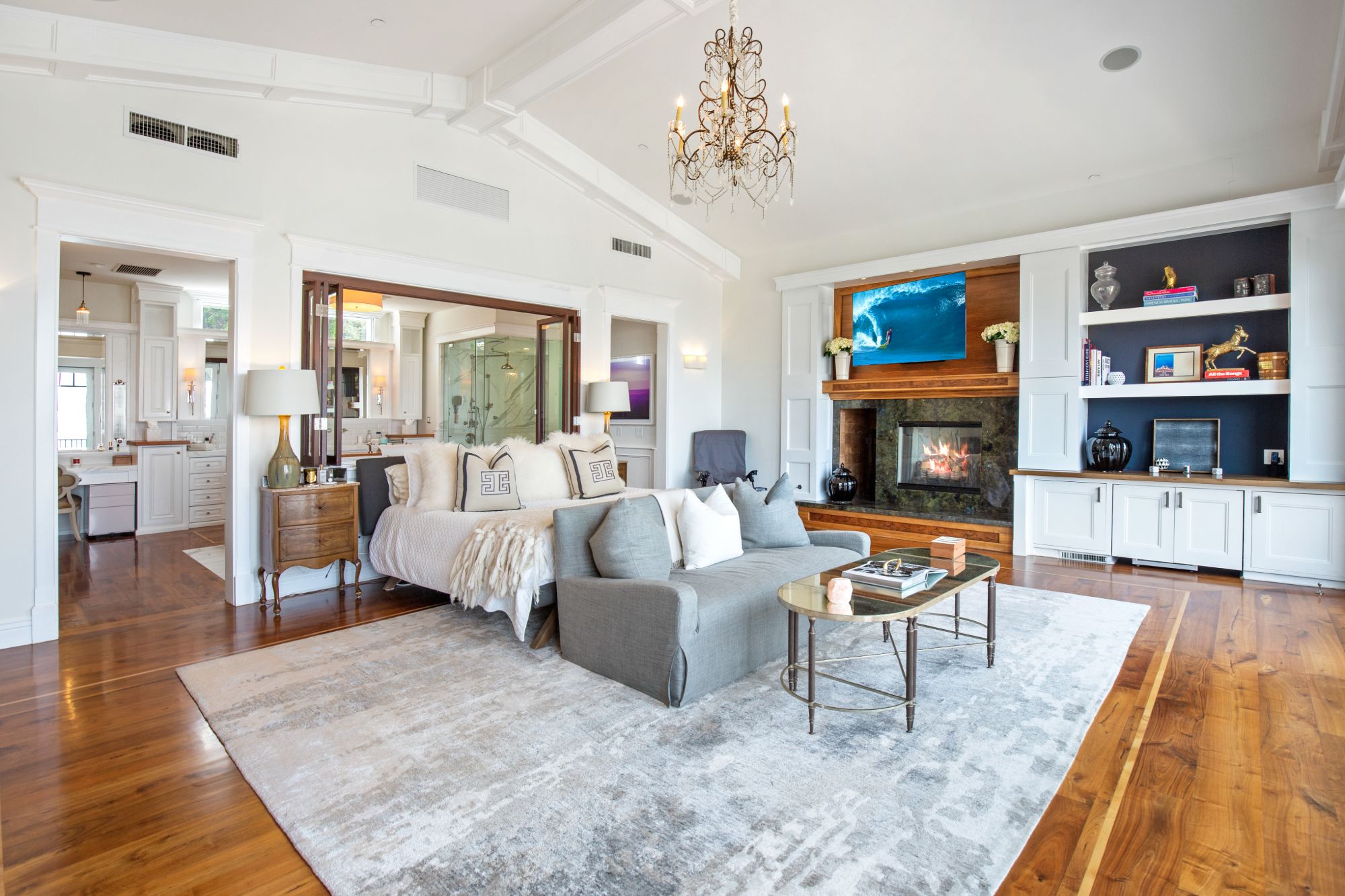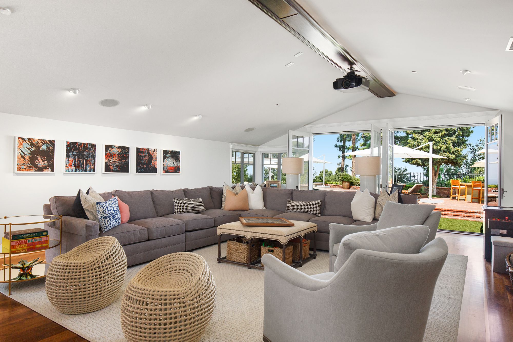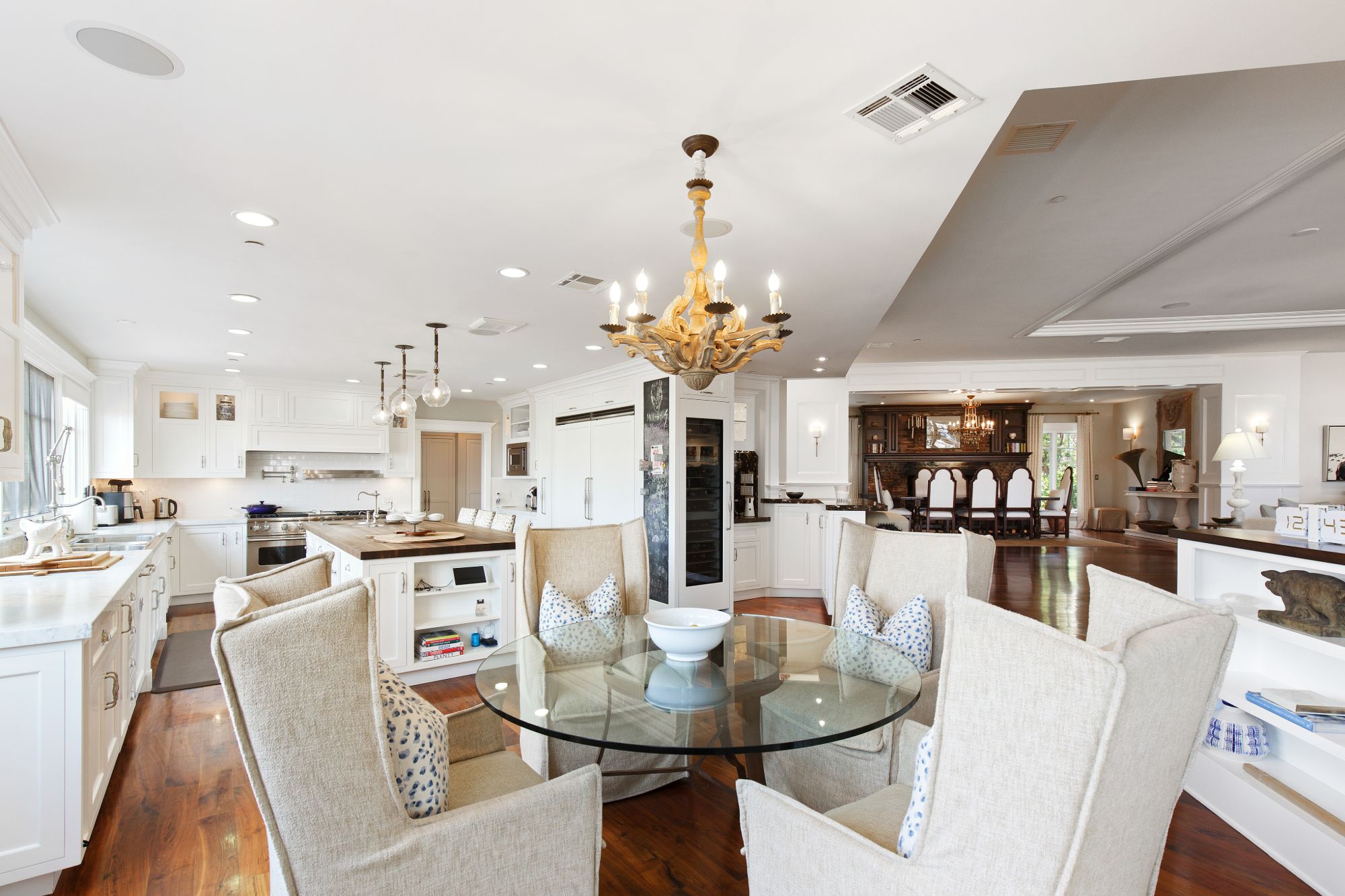 Stunning private, gated estate set on over half an acre of land with expansive city & mountain views. Near the coveted Fryman Estates hiking trails, and just 2 miles from world famous Sunset Strip shopping & dining. This luxurious resort like estate was once home to Hollywood icon Mickey Rooney. The traditional 6 bed, 8 bath main house is complimented by a two-story English brick guesthouse and two-story gym & spa. A dramatic open floor plan ties together the main living spaces including a living room with home theater, formal living area, dining room and kitchen that all open to the outdoors, bringing the inside out. A gourmet chef's kitchen includes Carrera marble counters & top of the line appliances. Luxurious master retreat includes large private terrace with stunning city views, fireplace, walk-in steam shower & spa tub. Grounds feature a pool, spa, massage area, steam room & sauna, full gym, Koi pond, outdoor fire pits, waterfall, outdoor kitchen with full bar & wood-fire pizza oven.