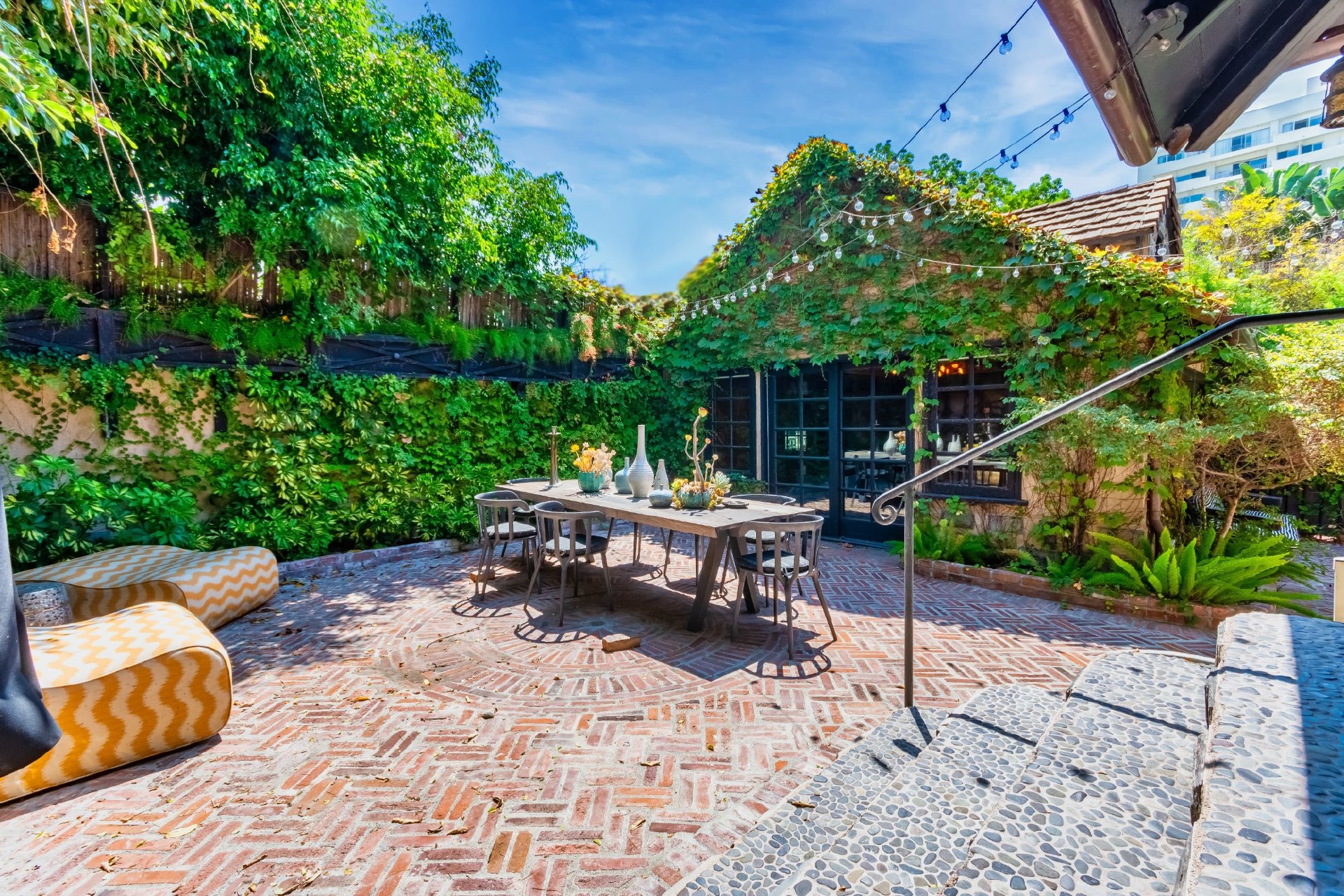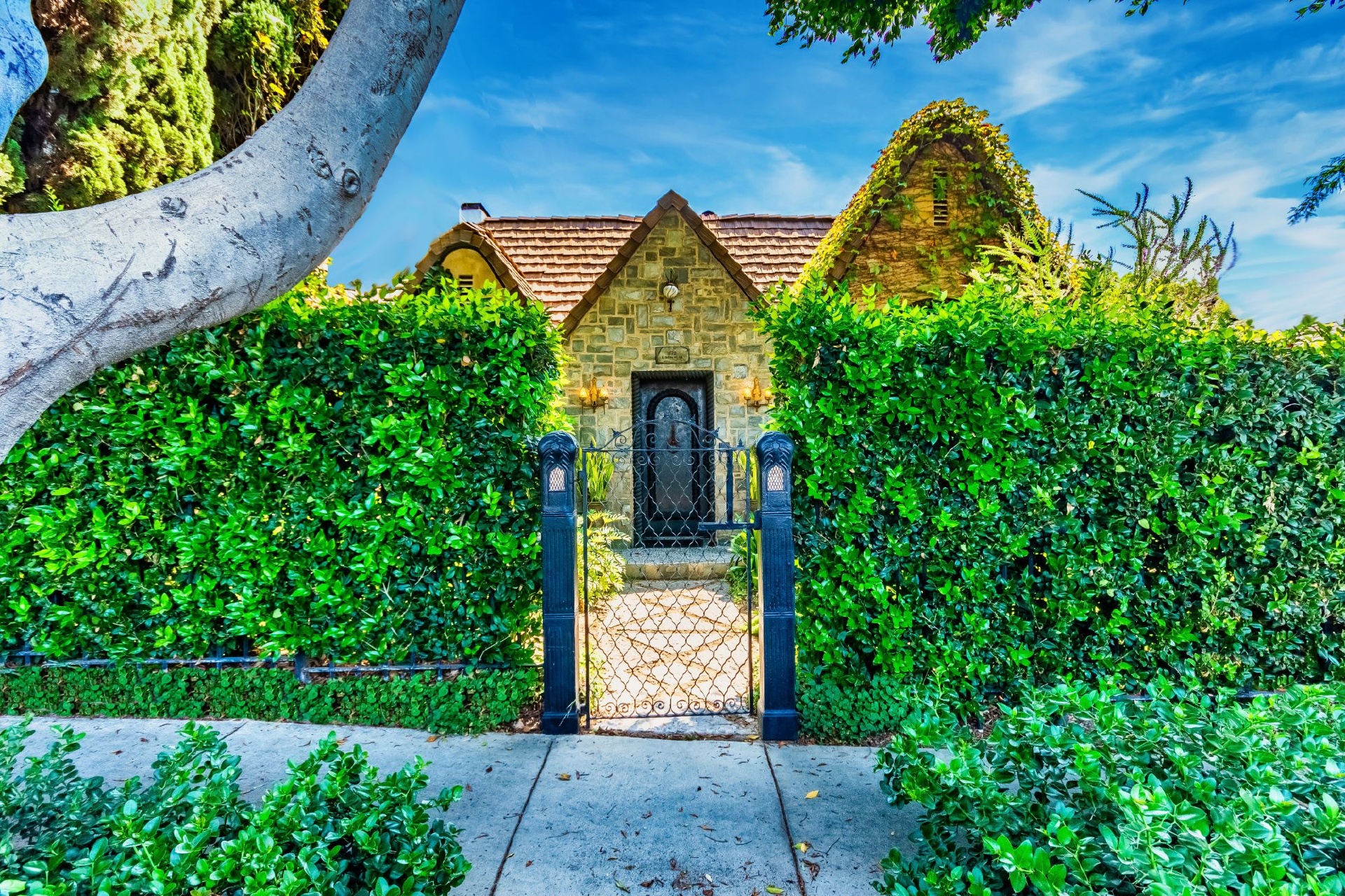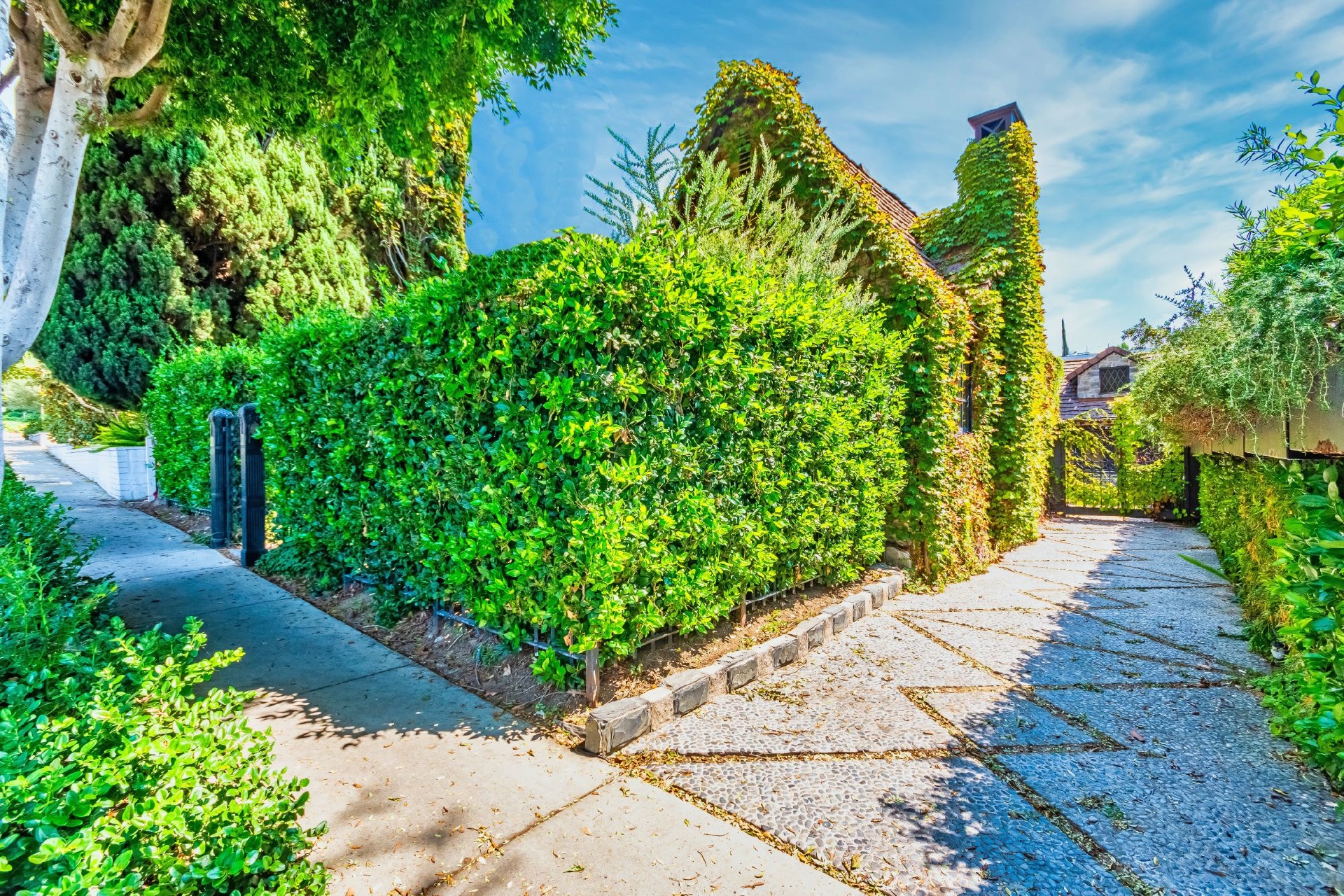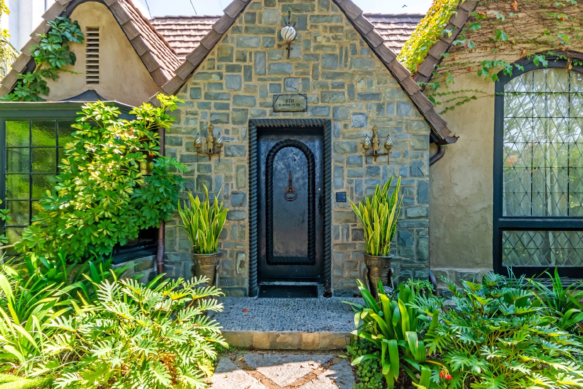 Set in the heart of West Hollywood just around the corner from the Doheny Room, Dan Tana's and The Troubadour, and footsteps from Beverly Hills, this English-style manor is the perfect blend of serenity and modern luxury. A masterfully done 2-bed, 2-bath cottage replete with top-of-the-line finishes throughout. Enter through an antique wrought iron gate to Indonesian river rock tiles that lead through the lush green front yard with mature landscaping to a stone entrance with hand-carved front door. Once inside the wooden panel lined foyer, dining room & living room with fireplace create a sense of warmth and relaxation. Leaded Tudor windows add to the whimsical ambiance of the home and provide tons of natural light. The property is equipped with state-of-the-art electrical, communications, alarm, heating/cooling, and plumbing systems. Meticulously landscaped grounds provide privacy and patios for entertaining.