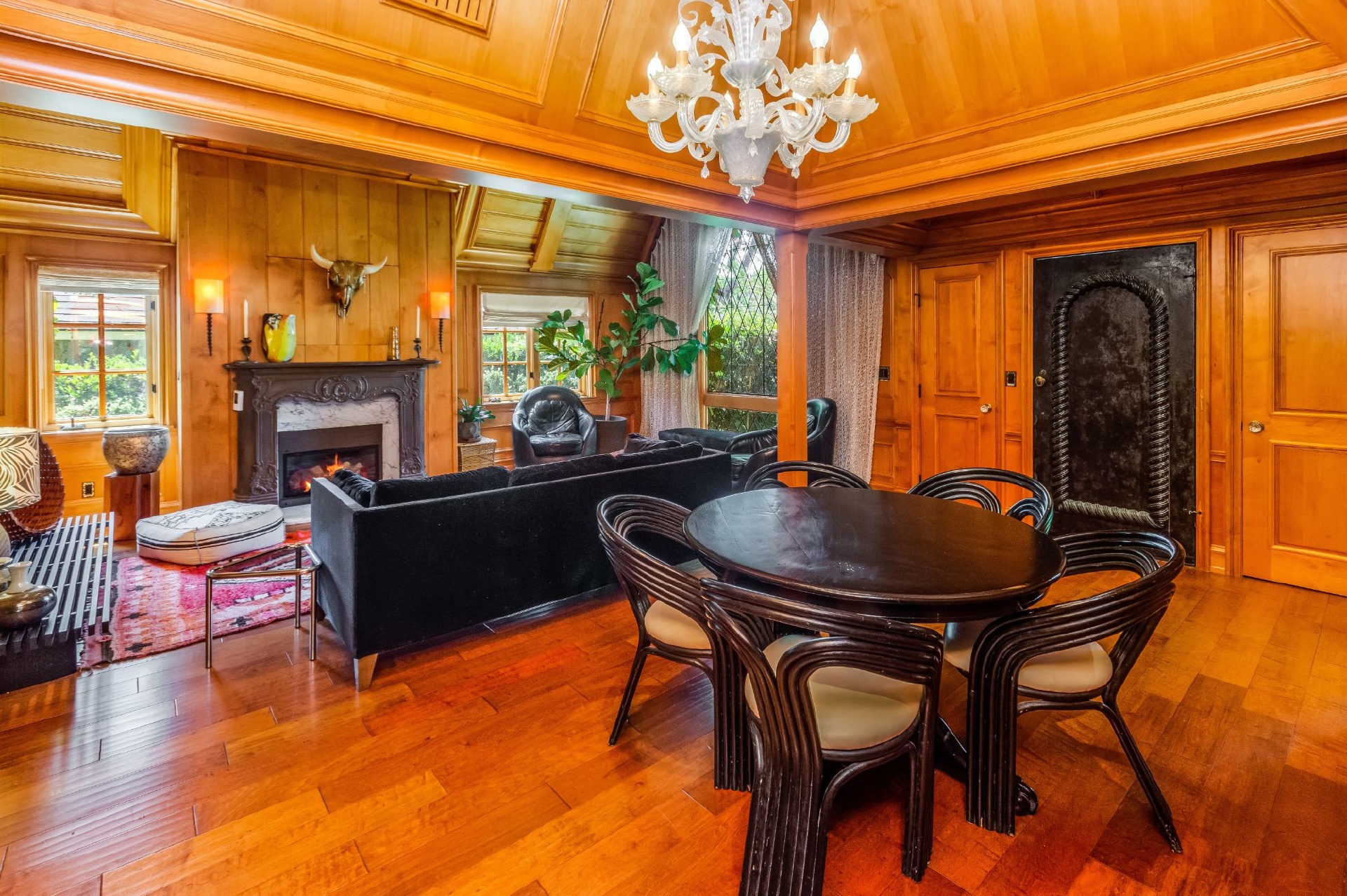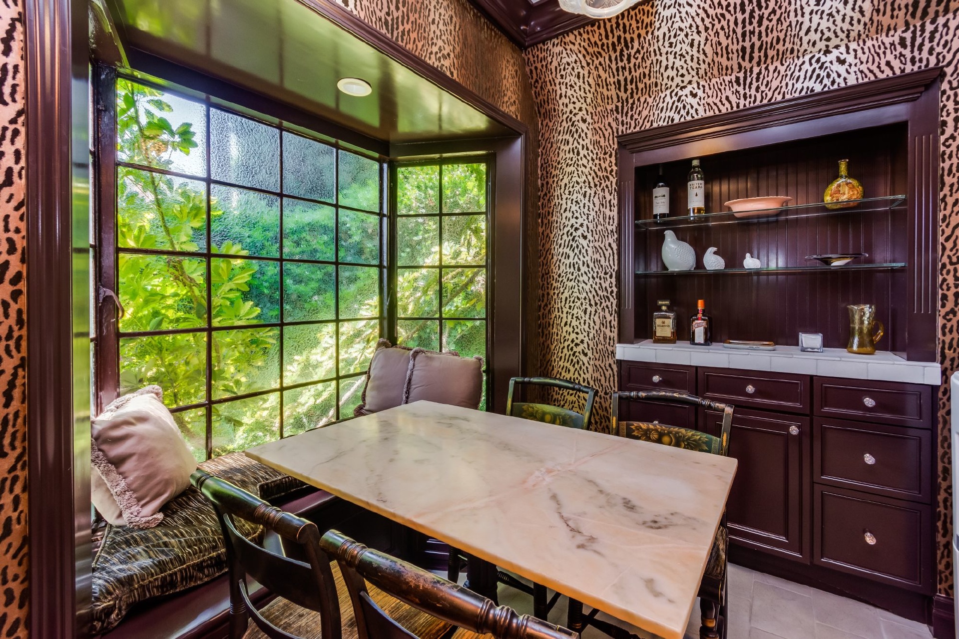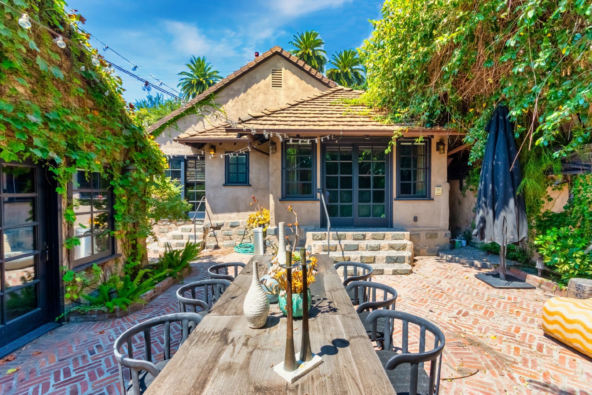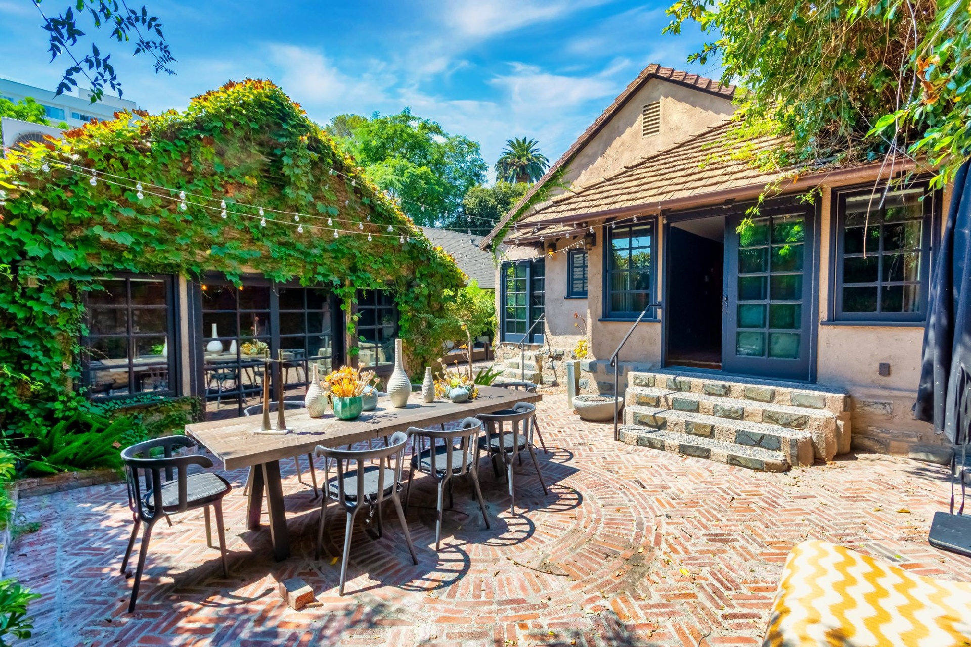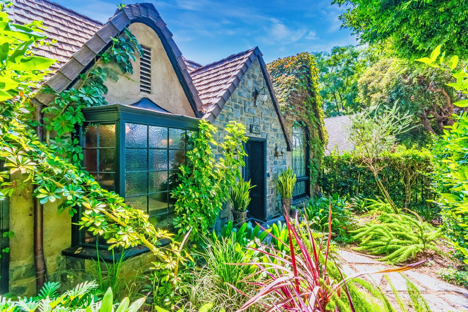 Set in the heart of West Hollywood just around the corner from the Doheny Room, Dan Tana's and The Troubadour, and footsteps from Beverly Hills, this English-style manor is the perfect blend of serenity and modern luxury. A masterfully done 2-bed, 2-bath cottage replete with top-of-the-line finishes throughout. Enter through an antique wrought iron gate to Indonesian river rock tiles that lead through the lush green front yard with mature landscaping to a stone entrance with hand-carved front door. Once inside the wooden panel lined foyer, dining room & living room with fireplace create a sense of warmth and relaxation. Leaded Tudor windows add to the whimsical ambiance of the home and provide tons of natural light. The property is equipped with state-of-the-art electrical, communications, alarm, heating/cooling, and plumbing systems. Meticulously landscaped grounds provide privacy and patios for entertaining.