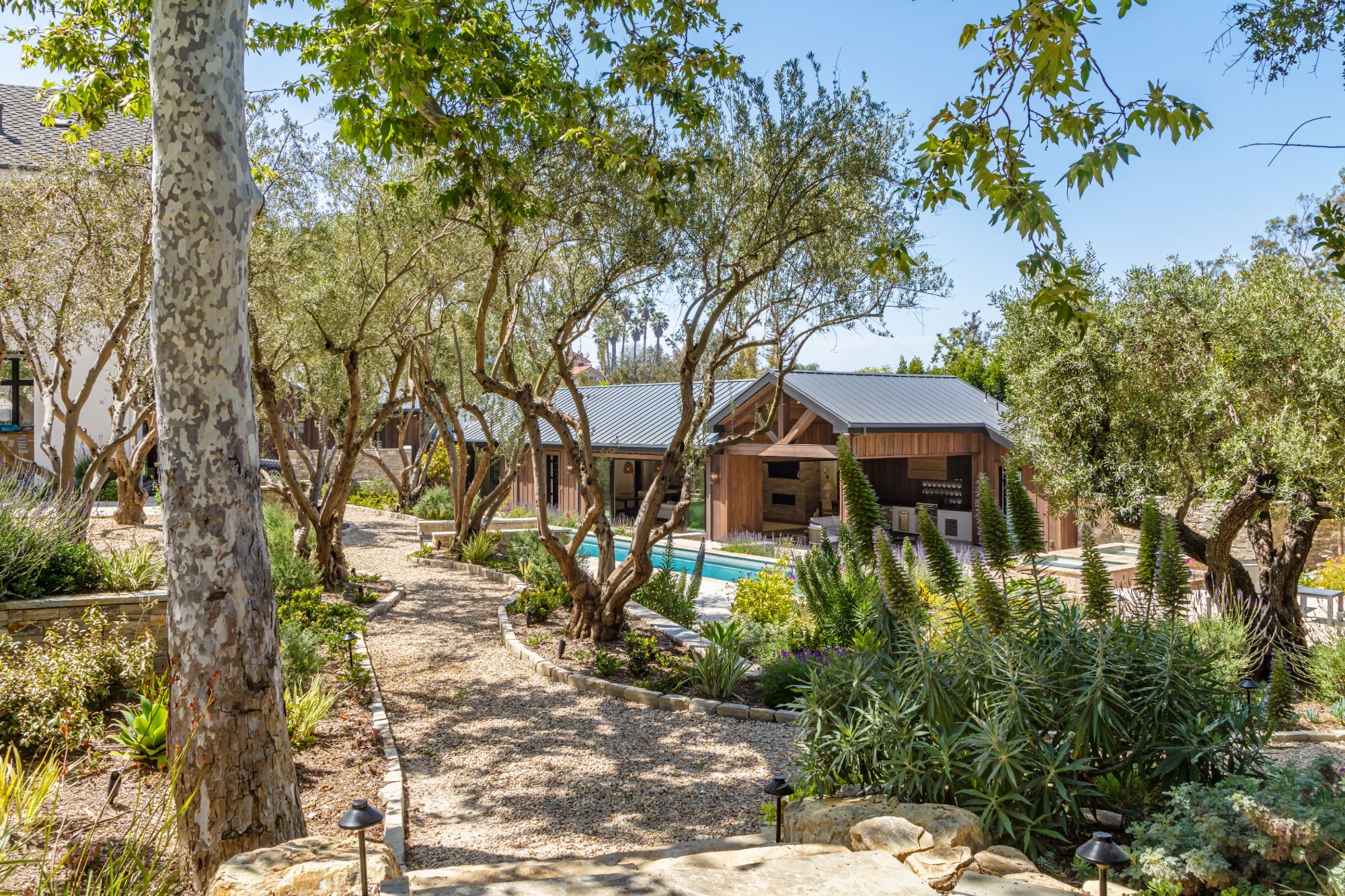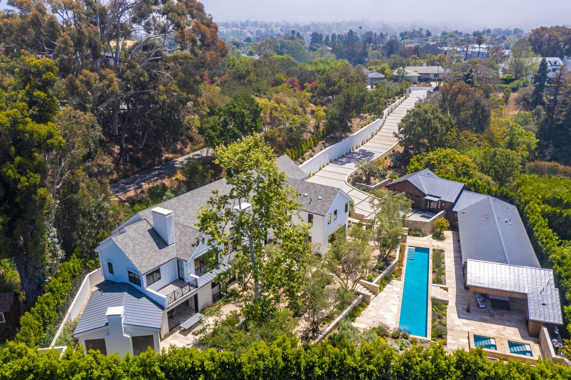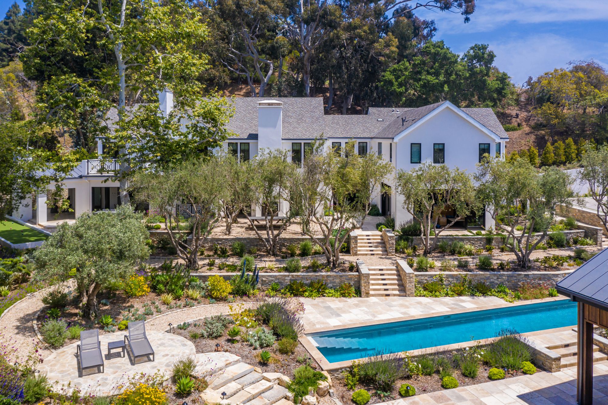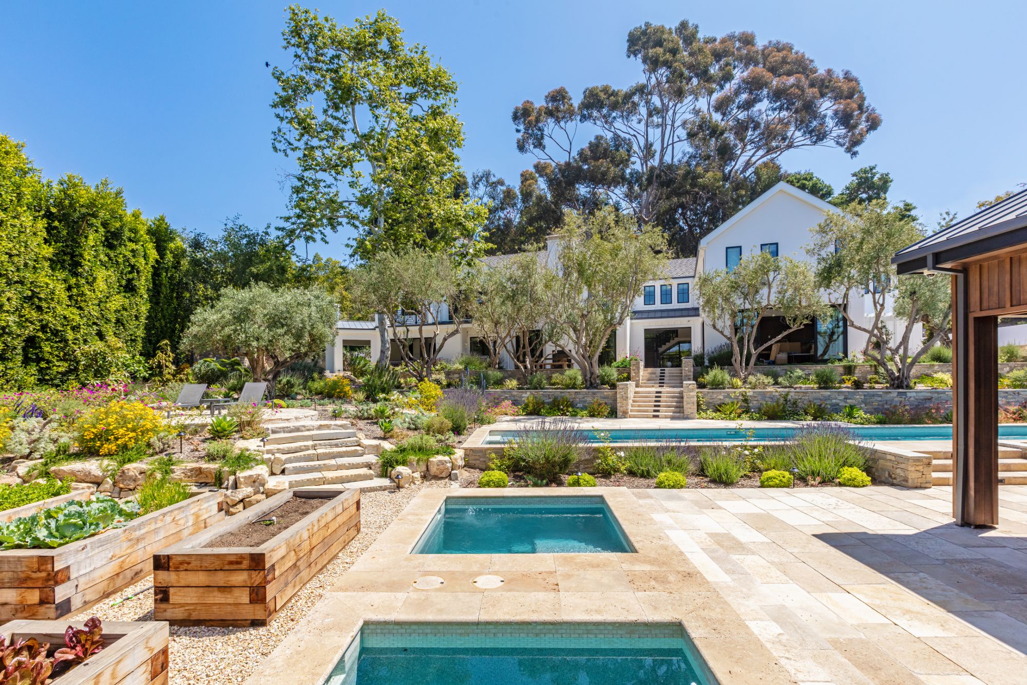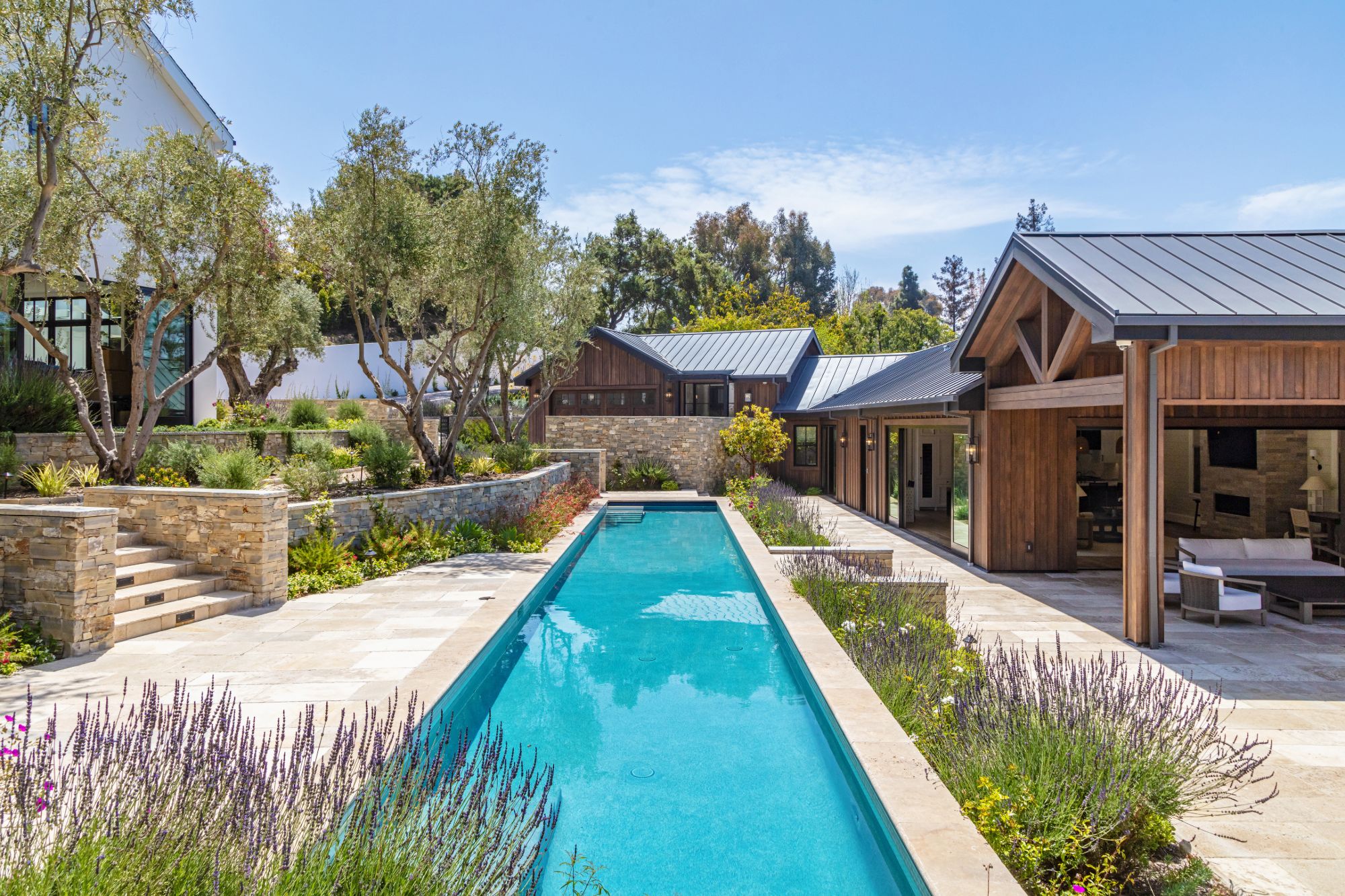 This brand new Backen-inspired contemporary farmhouse estate is a stunning, private, green retreat set on an exclusive, park-like acre in Pacific Palisades, only minutes to the beach. Behind reclaimed oak gates, a well-manicured driveway leads to the ultimate wellness & entertainment compound. Floor-to-ceiling doors throughout open onto outdoor entertaining areas featuring a 70’ ozone lap pool, hot & cold plunges, bocce court and alfresco dining. Complete with a theater, gym, infrared sauna, & massive standalone barn guest house in the serenity of imported 50+ year old olive trees from Napa, blooming flowers, & edible gardens. This 6-bed, 8-bath beautiful home is crafted with world-class finishes such as French limestone, handmade tile, & European oak floors & beams throughout that fully harmonizes with its natural surroundings. Open, sun-kissed living spaces with high ceilings feature a living room with a double height fireplace and chef’s kitchen. Upstairs house a multi-room primary suite boasting a marble shower & 2-sided fireplace & a designer closet with private elevator access. A voluminous, light-filled, xxx-SF guest barn with rustic charm features a great room with a stone fireplace & gourmet kitchen, all opens to the surrounding gardens & pool. Your luxurious, private wellness retreat in this exclusive community.