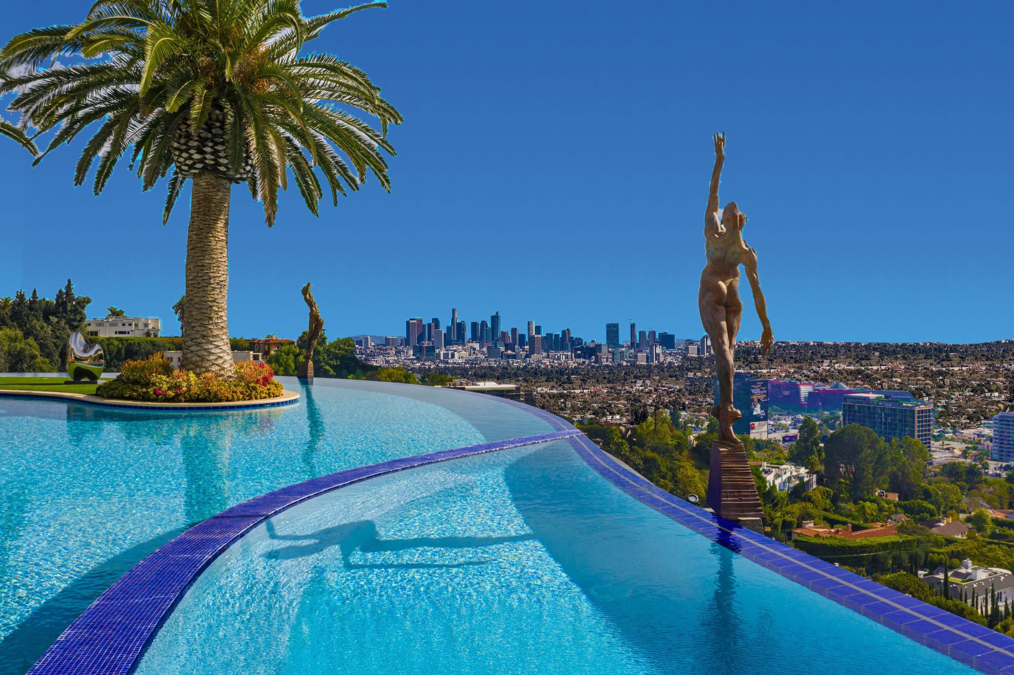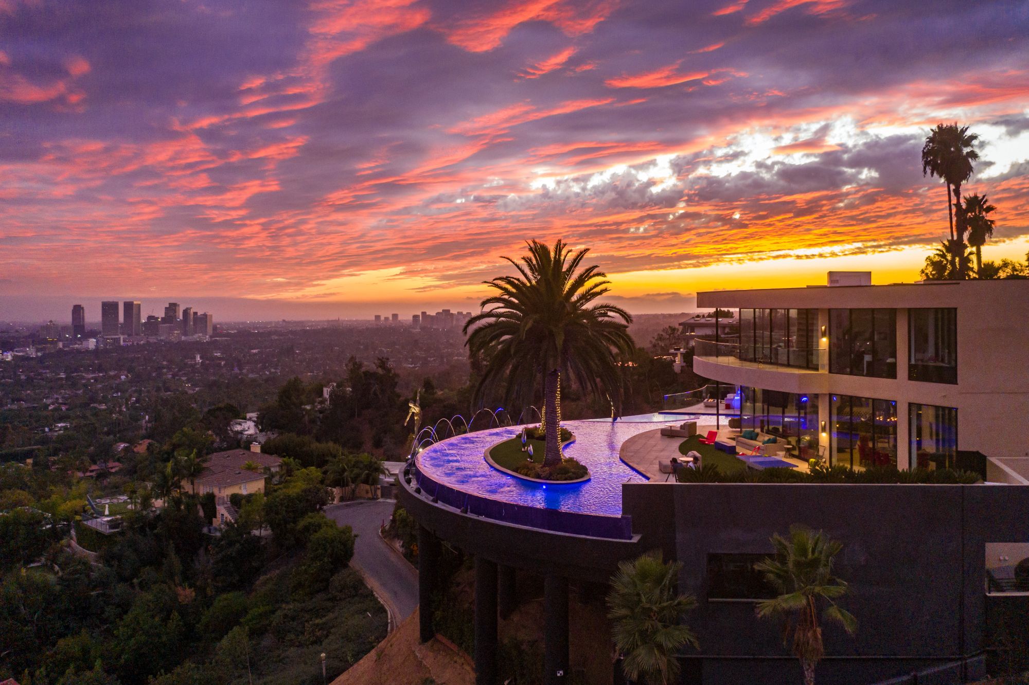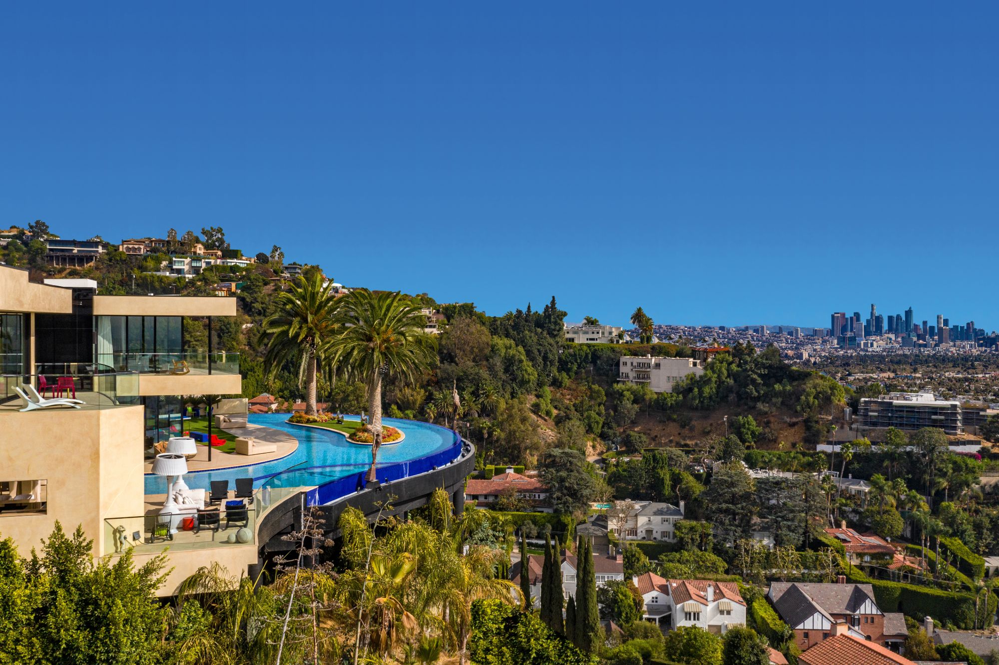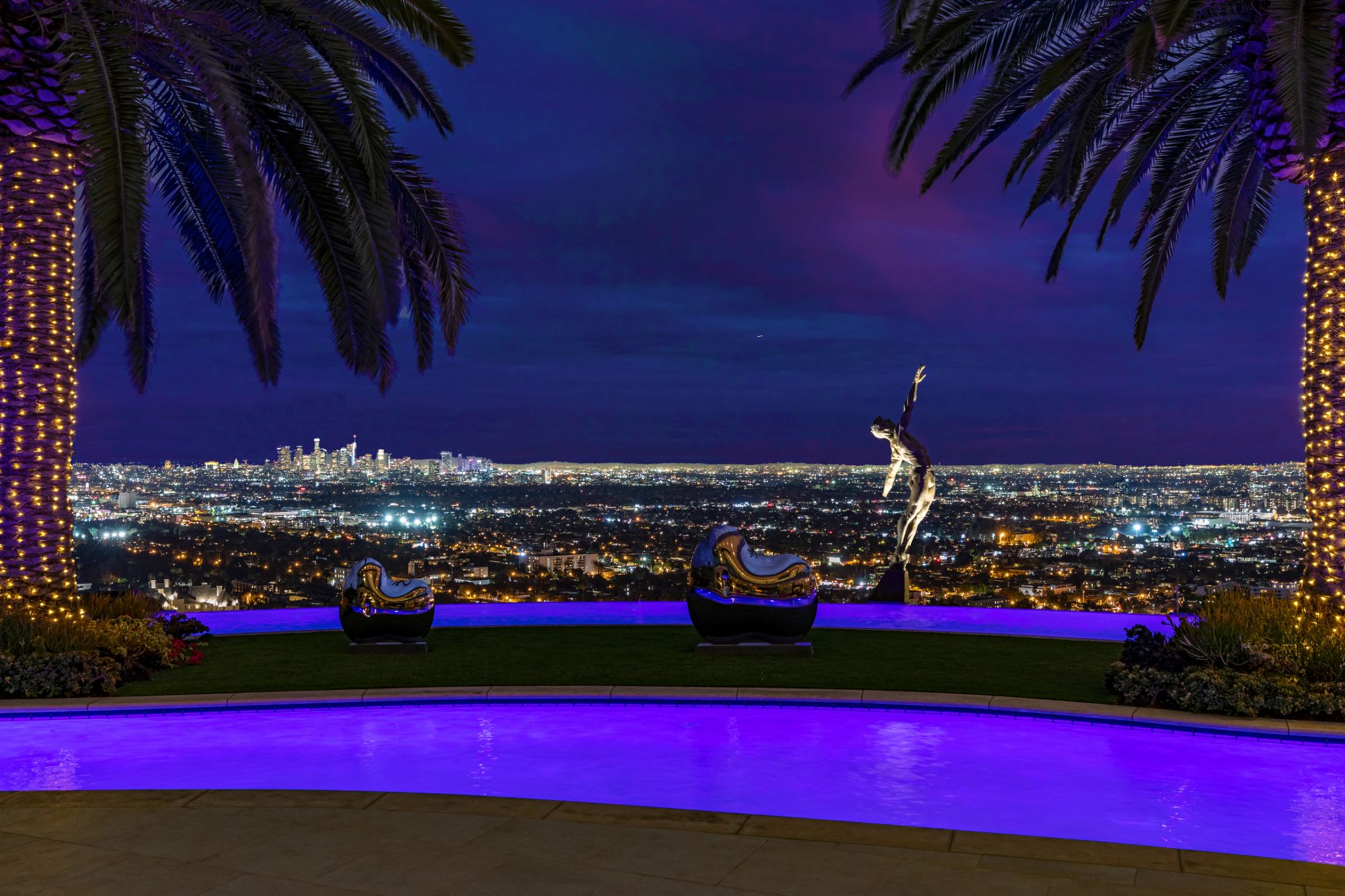 The most rare promontory in the Bird Streets set on 1.7 acres w/a 300 ft. private driveway & massive 20-car motor court. Your own private island; secluded for privacy & security in the best location in Los Angeles w/explosive jetliner views of the city from downtown to the ocean. 17,000 sq. ft. of living space between main house & 2 guest villas. This exquisitely designed estate is the vision of Paul McClean, master of architecture light and flow. A lazy river pool surrounds the estate hovering out over panoramic views. Beyond its striking 2-story entry w/dramatic circular staircases is an open living area with double height ceilings. Outdoor terrace features a one-of-a-kind pool curved to breathtaking views with a Palm Island in the middle. Upper level includes primary suite w/dual closets, spa like bath, gym, sauna & massage room. State of the art theater & all the latest and greatest amenities. Live among the stars and titans of industry in the most coveted location in the world.