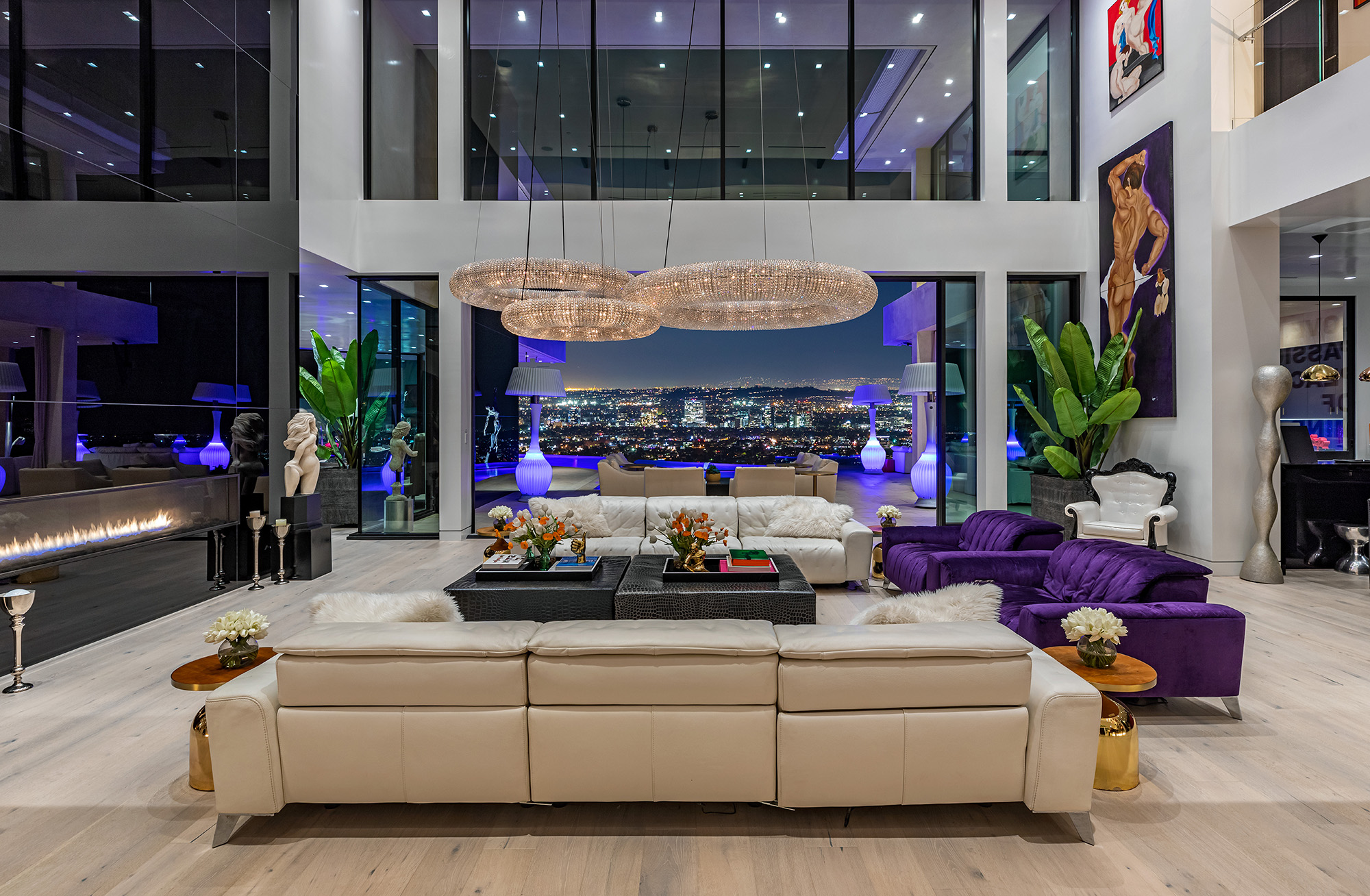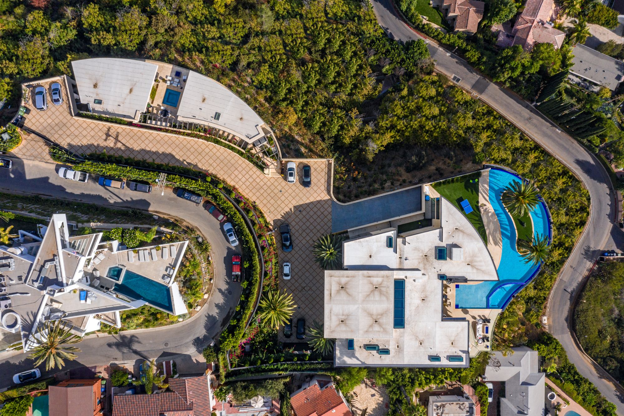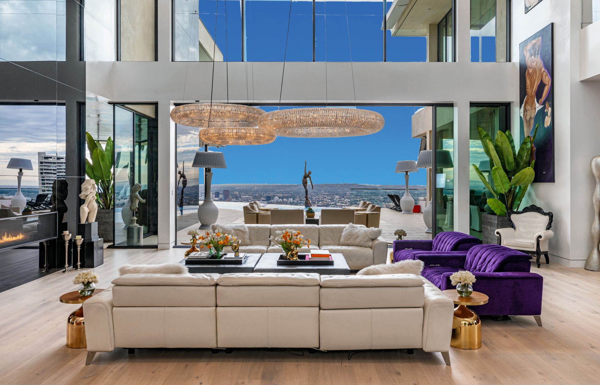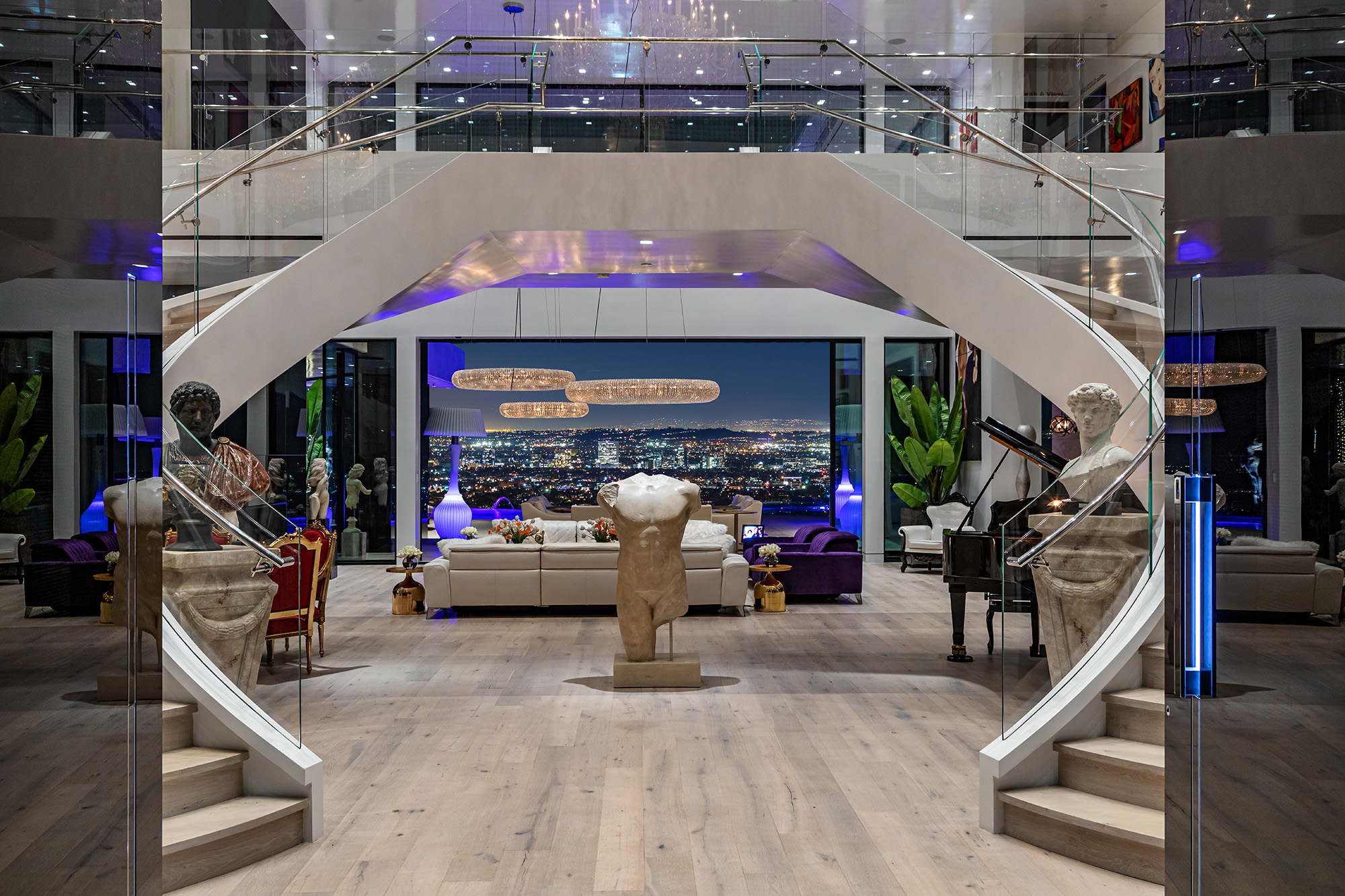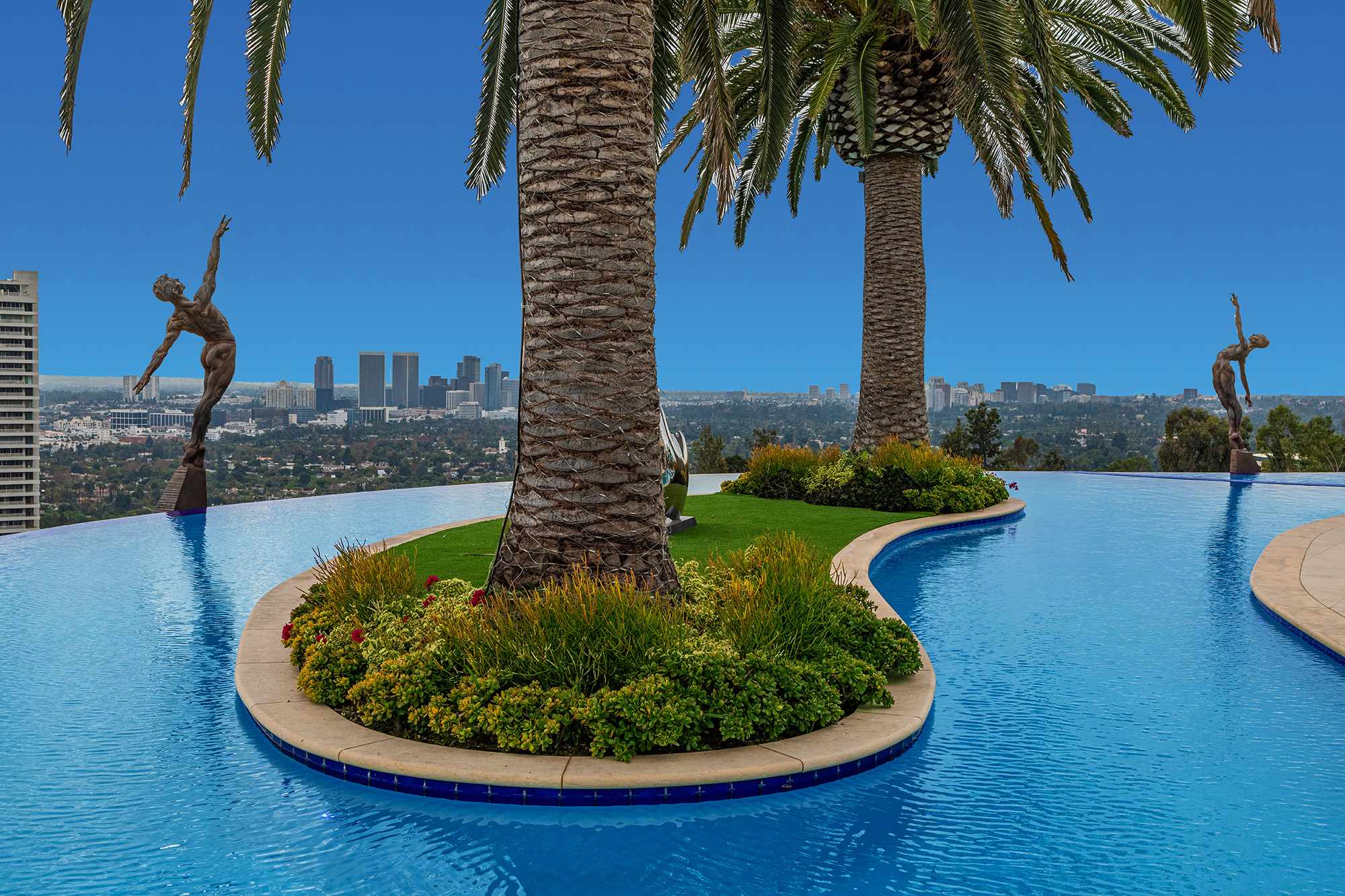 The most rare promontory in the Bird Streets set on 1.7 acres w/a 300 ft. private driveway & massive 20-car motor court. Your own private island; secluded for privacy & security in the best location in Los Angeles w/explosive jetliner views of the city from downtown to the ocean. 17,000 sq. ft. of living space between main house & 2 guest villas. This exquisitely designed estate is the vision of Paul McClean, master of architecture light and flow. A lazy river pool surrounds the estate hovering out over panoramic views. Beyond its striking 2-story entry w/dramatic circular staircases is an open living area with double height ceilings. Outdoor terrace features a one-of-a-kind pool curved to breathtaking views with a Palm Island in the middle. Upper level includes primary suite w/dual closets, spa like bath, gym, sauna & massage room. State of the art theater & all the latest and greatest amenities. Live among the stars and titans of industry in the most coveted location in the world.