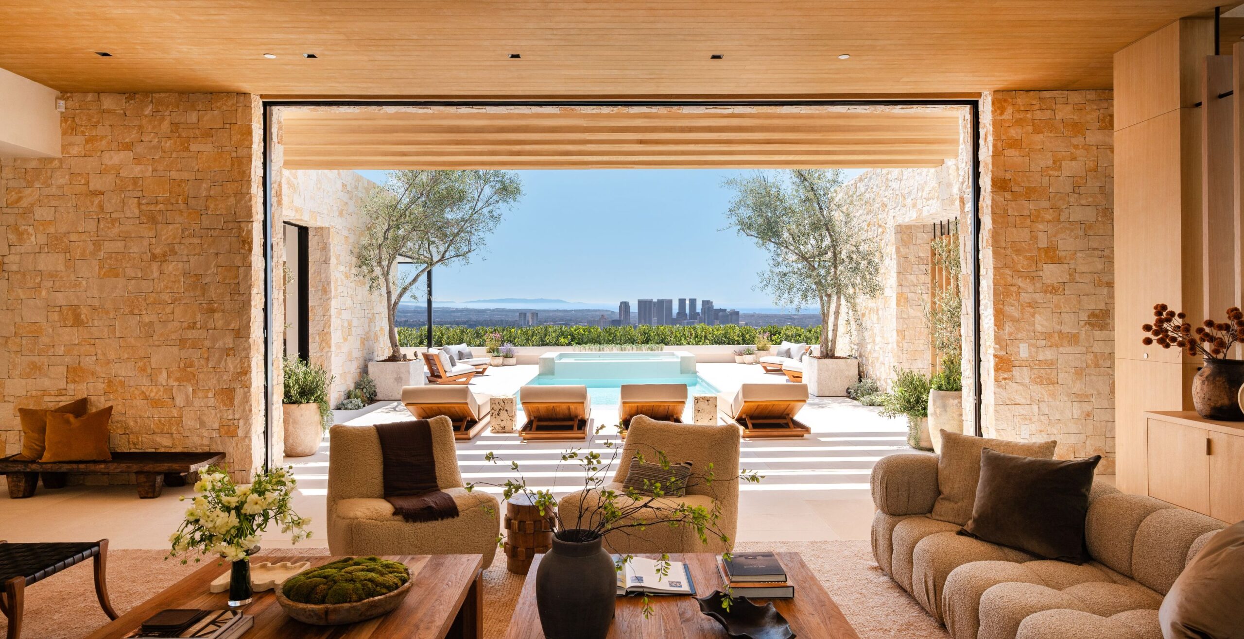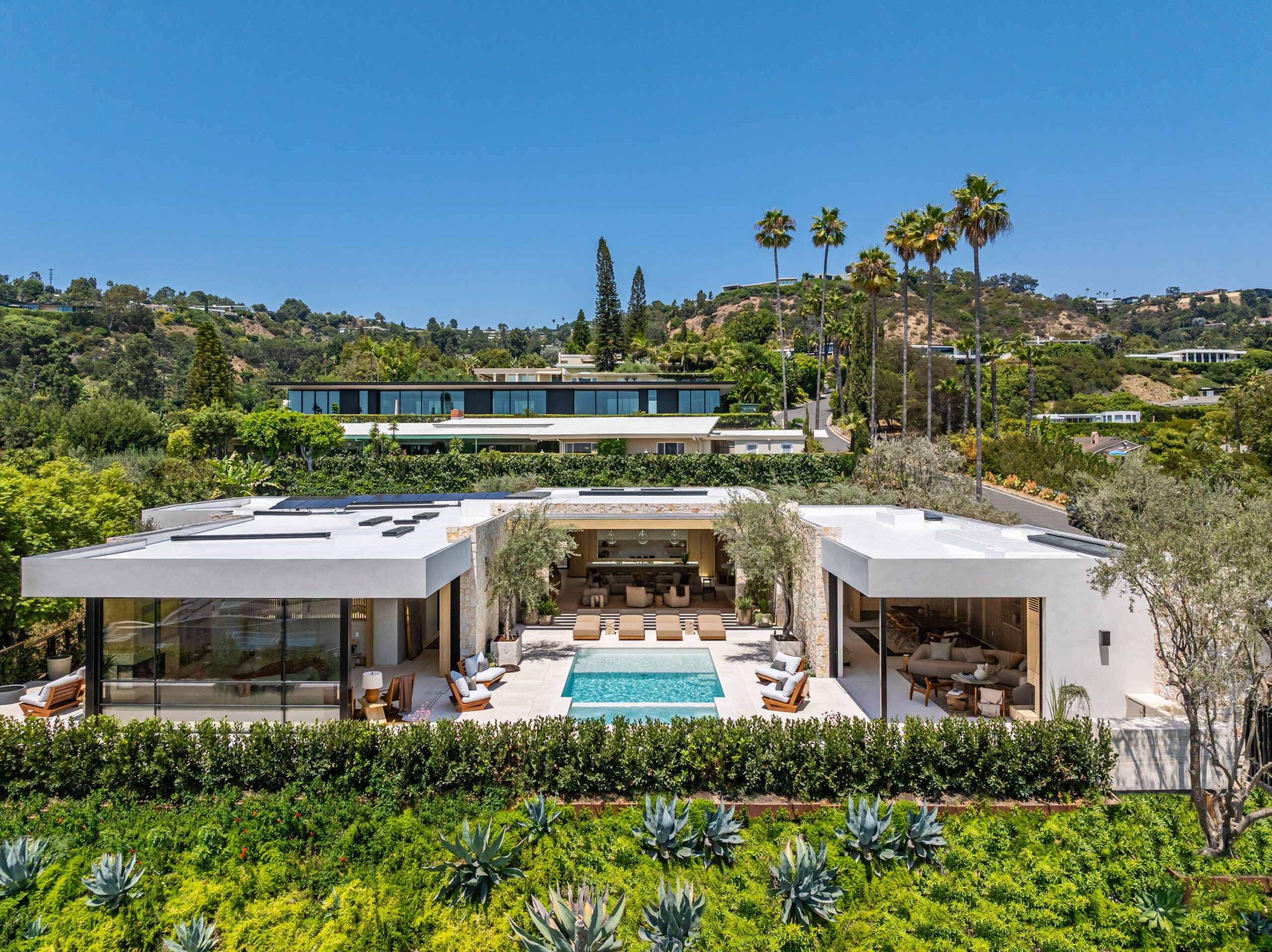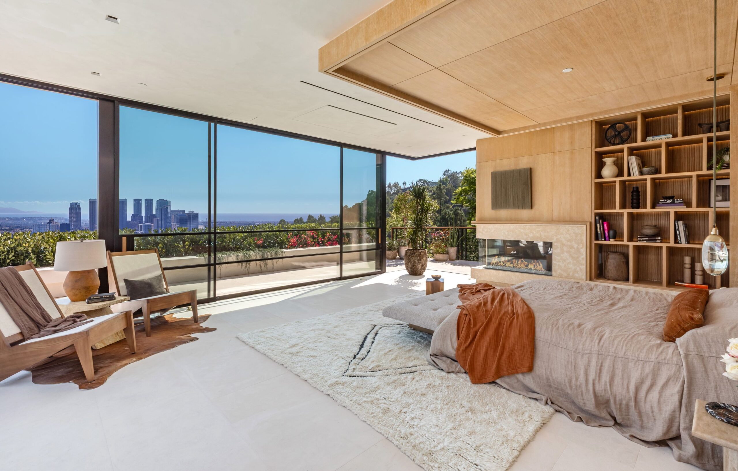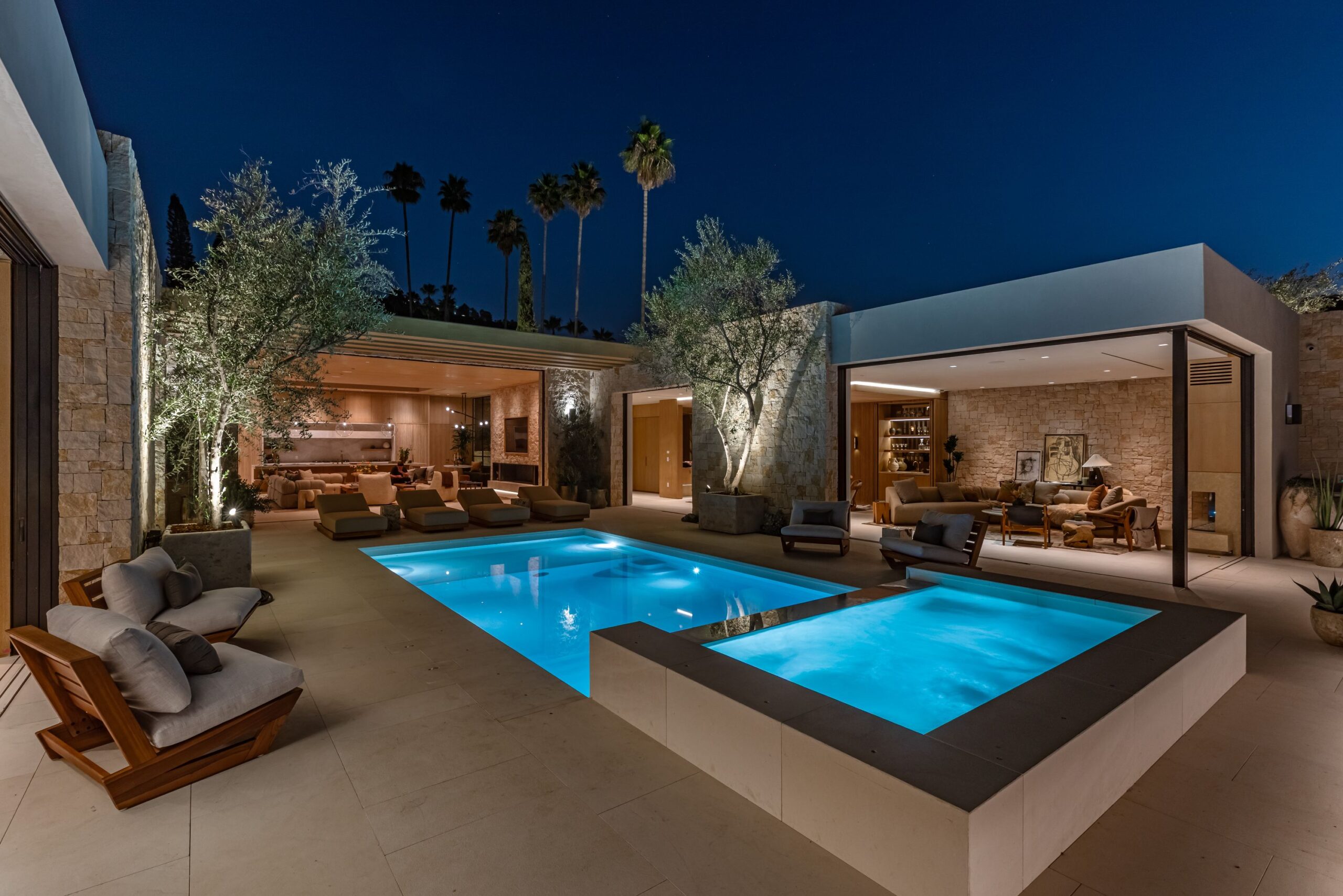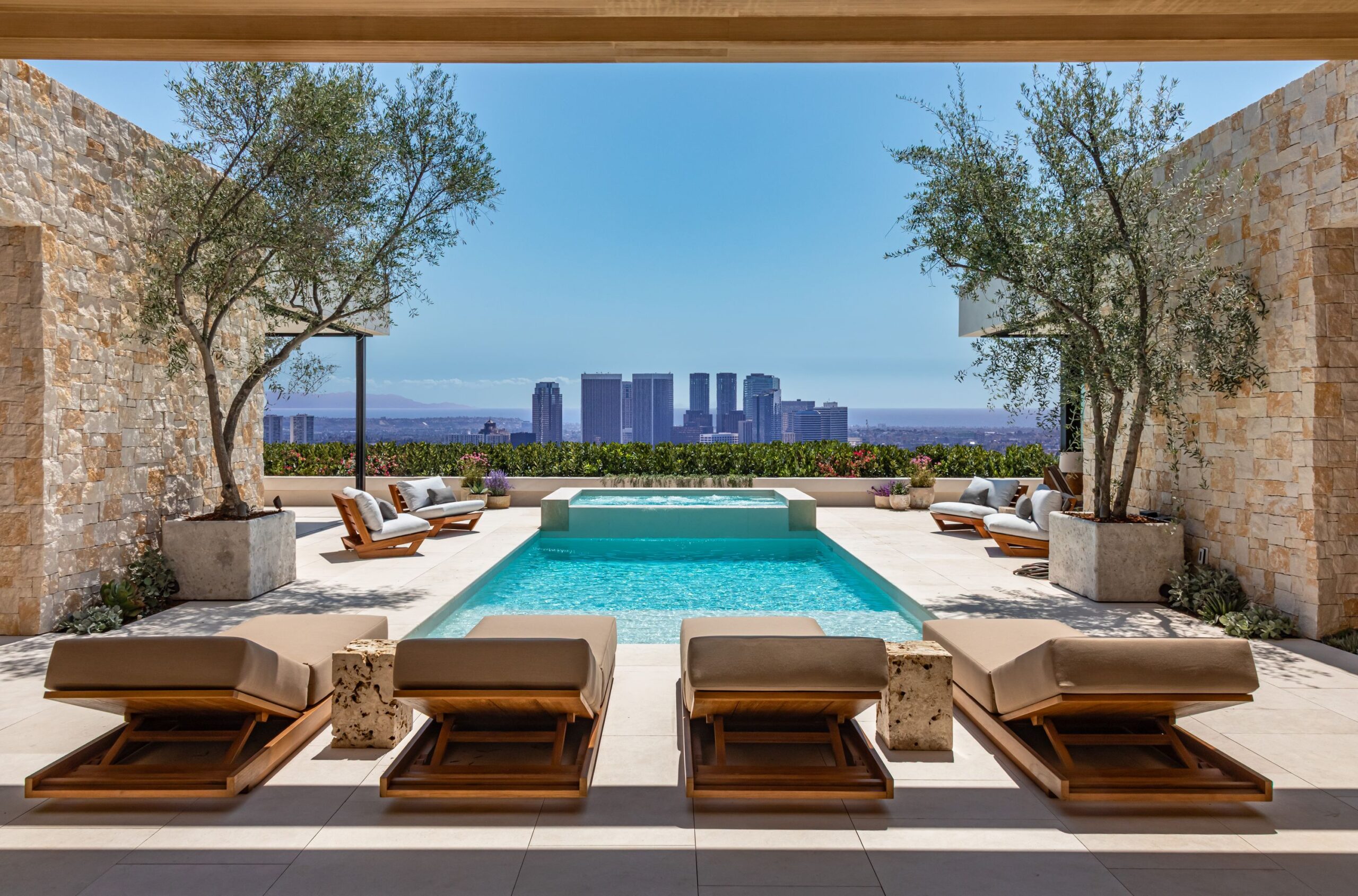 Experience timeless elegance in the exclusive Trousdale neighborhood of Beverly Hills. This organic estate designed by renowned designer Charles Infante, weaves his experience in film to create a narrative fit for entertainment and curated for elevated living in every possible way. Spanning 10,000 square feet, this architectural masterpiece showcases rich natural tones with Portuguese limestone, Italian Navona travertine, white oak paneling and floors, organic custom plaster walls, and motorized custom steel windows. Sleek lines perfectly frame cinematic city-to-ocean views. Inside, the main living spaces are open and airy, with walls of glass that fully pocket to create a seamless indoor/outdoor flow to the pool, spa, and patio. The expansive living room, dining area, and both the main and chef's kitchens are designed for grand scale living and entertaining. Four ensuite bedrooms offer refined comfort, in addition to a spacious, tranquil primary suite with motorized walls of glass, panoramic city views, and a spa-style bath. Luxurious amenities include a sleek gym with sauna, a temperature-controlled wine display, and an epic entertainment lounge with a sunken conversation pit, full bar, and state-of-the-art theater. The fully finished showcase garage features a car turntable; perfect for showcasing your collection. This is your moment to live above it all, in a home that sets the new standard for Trousdale living.