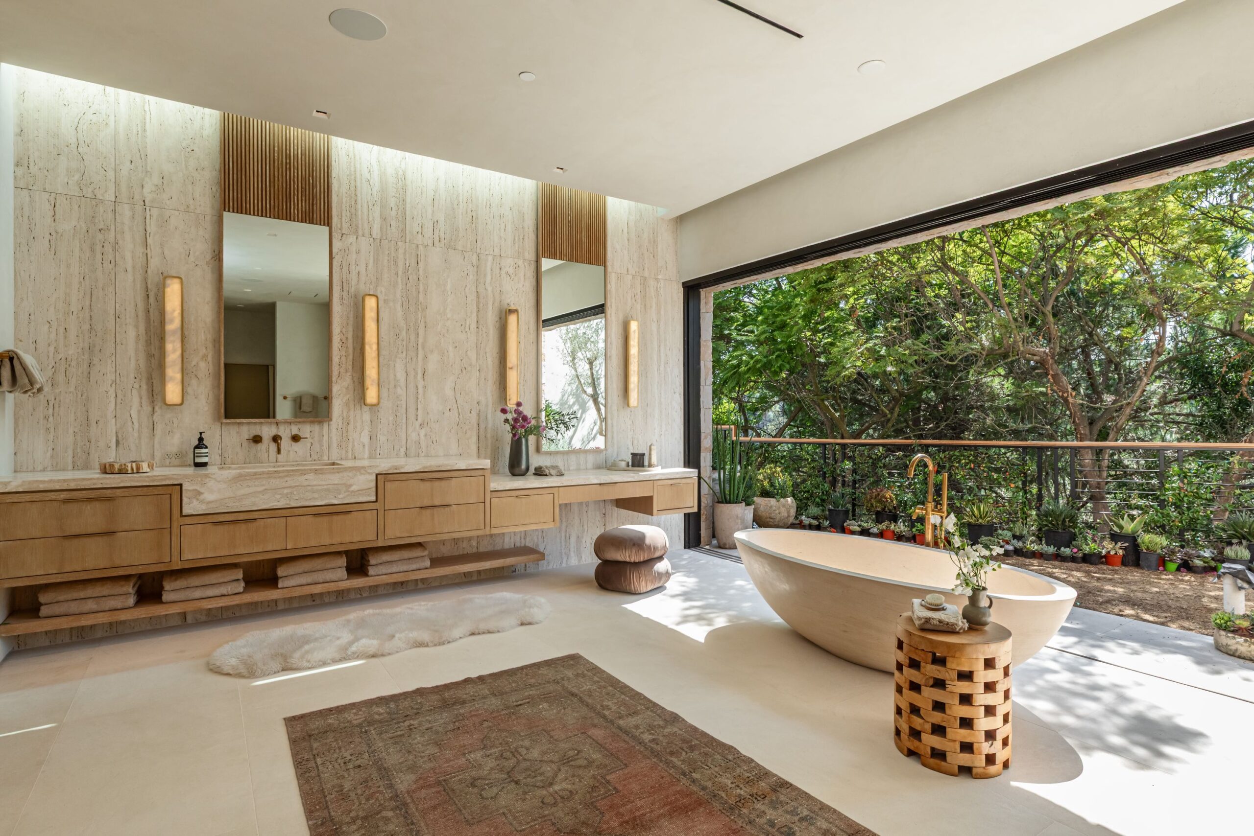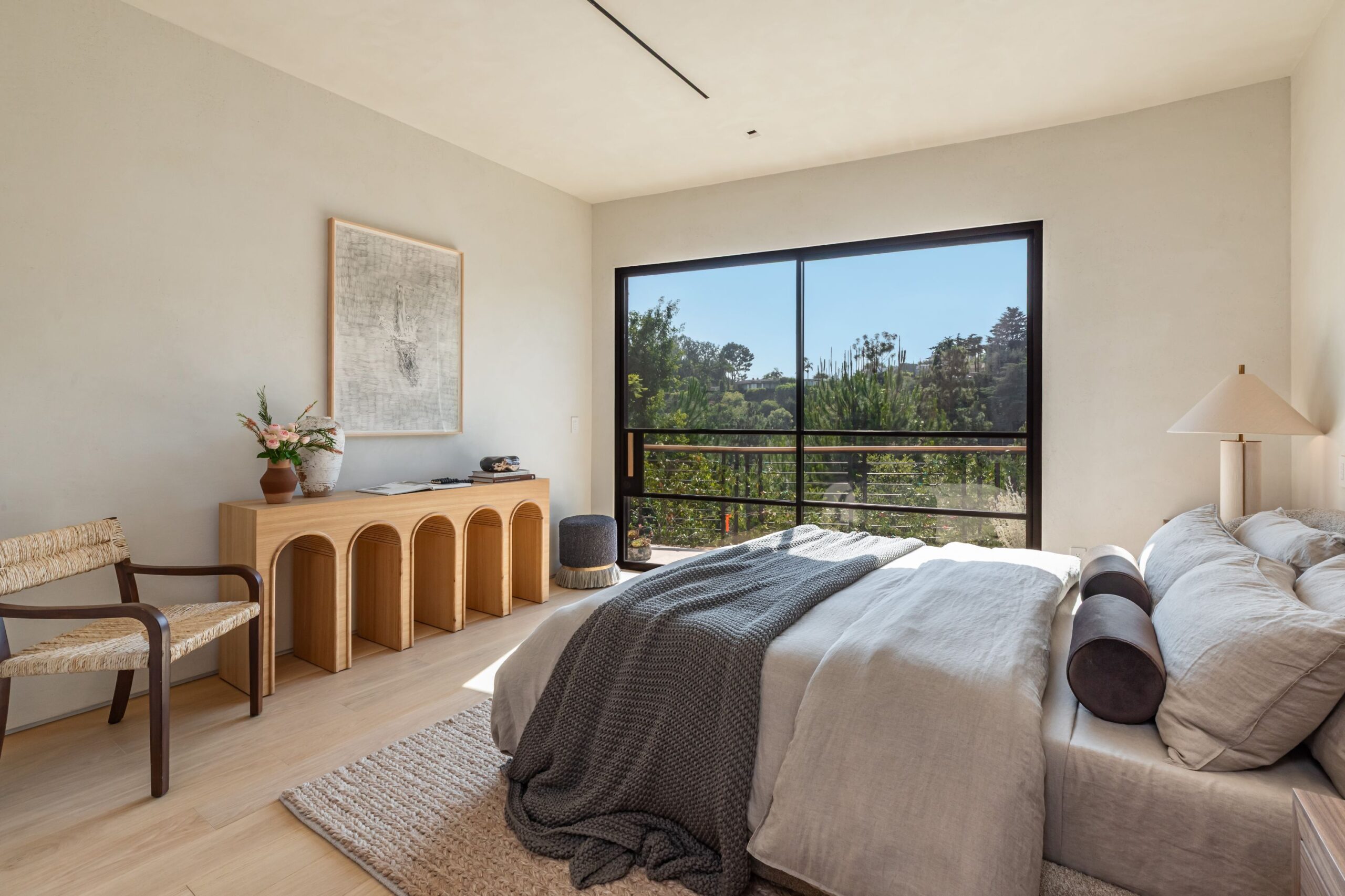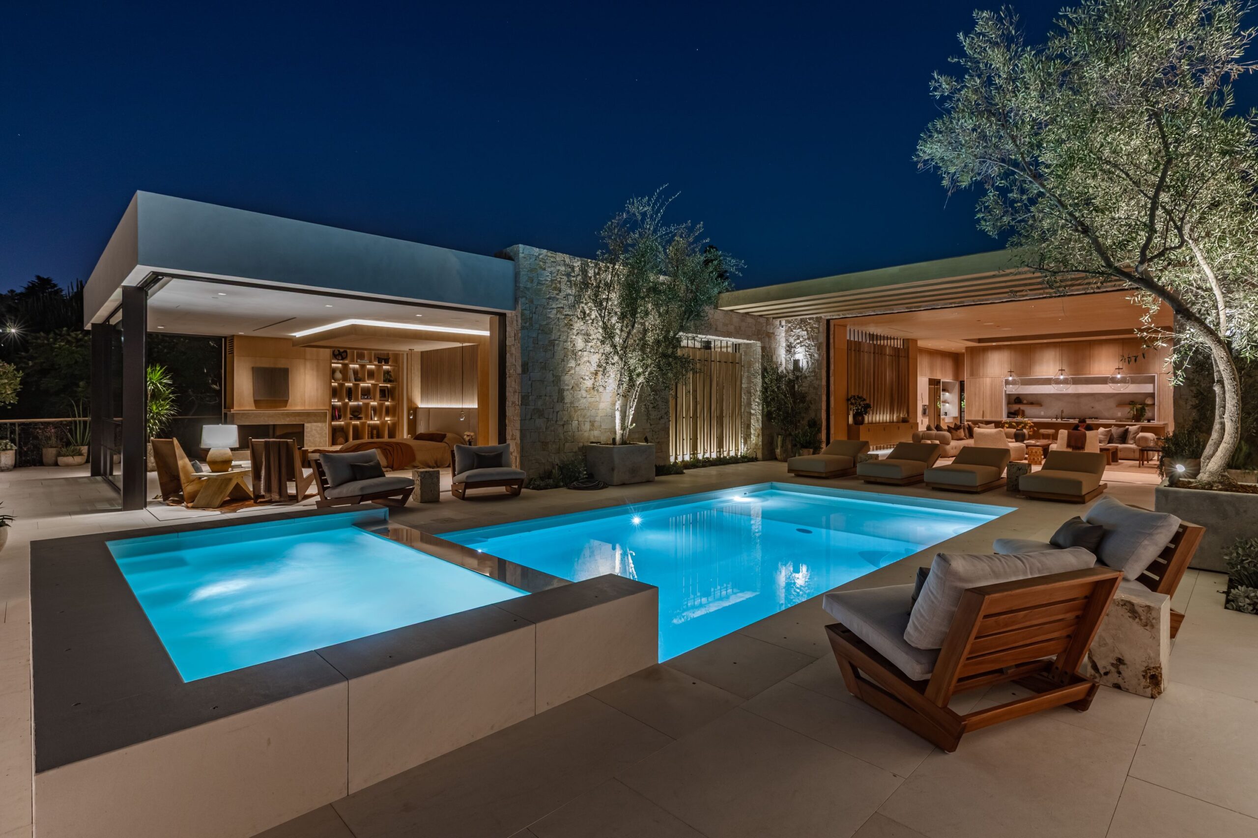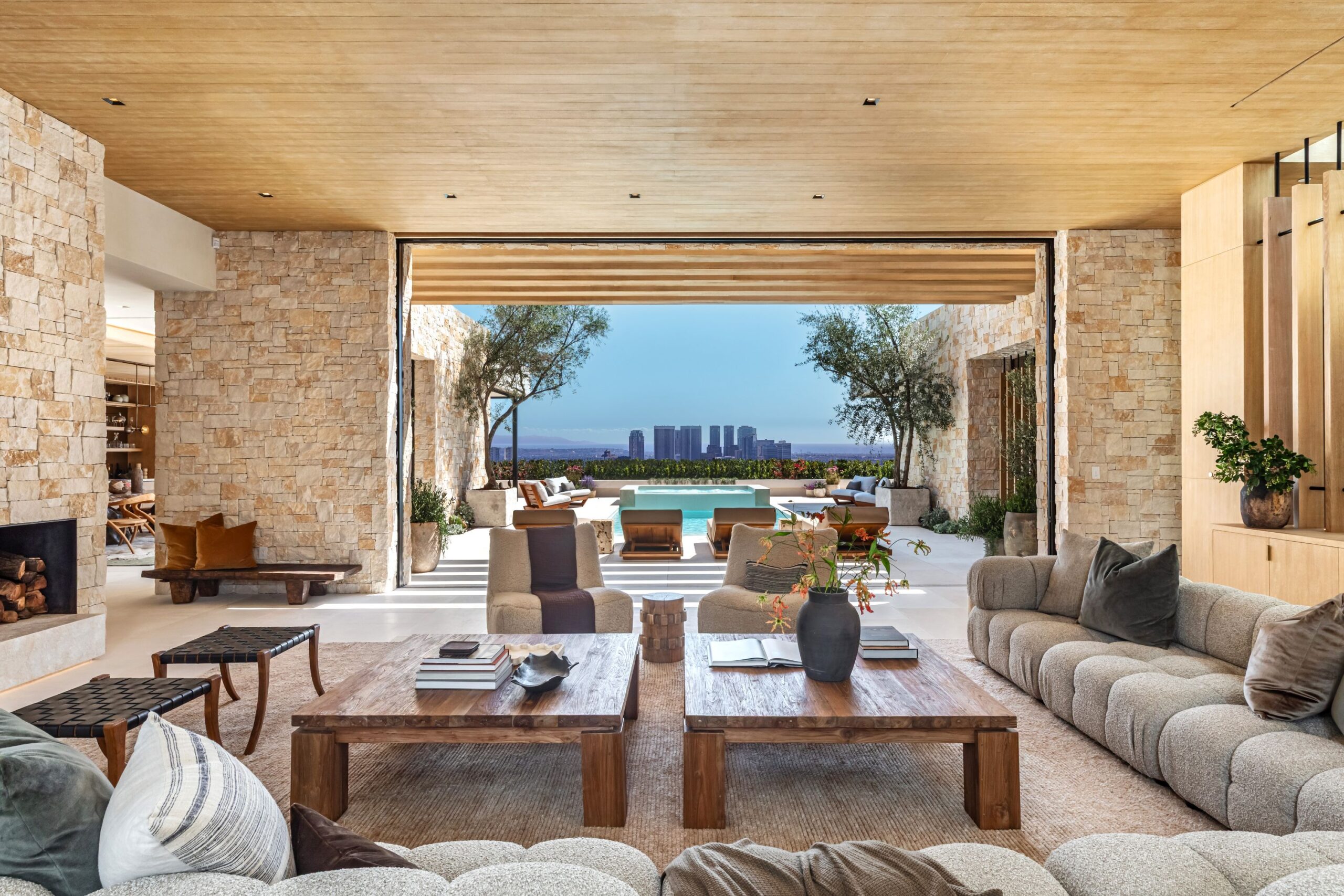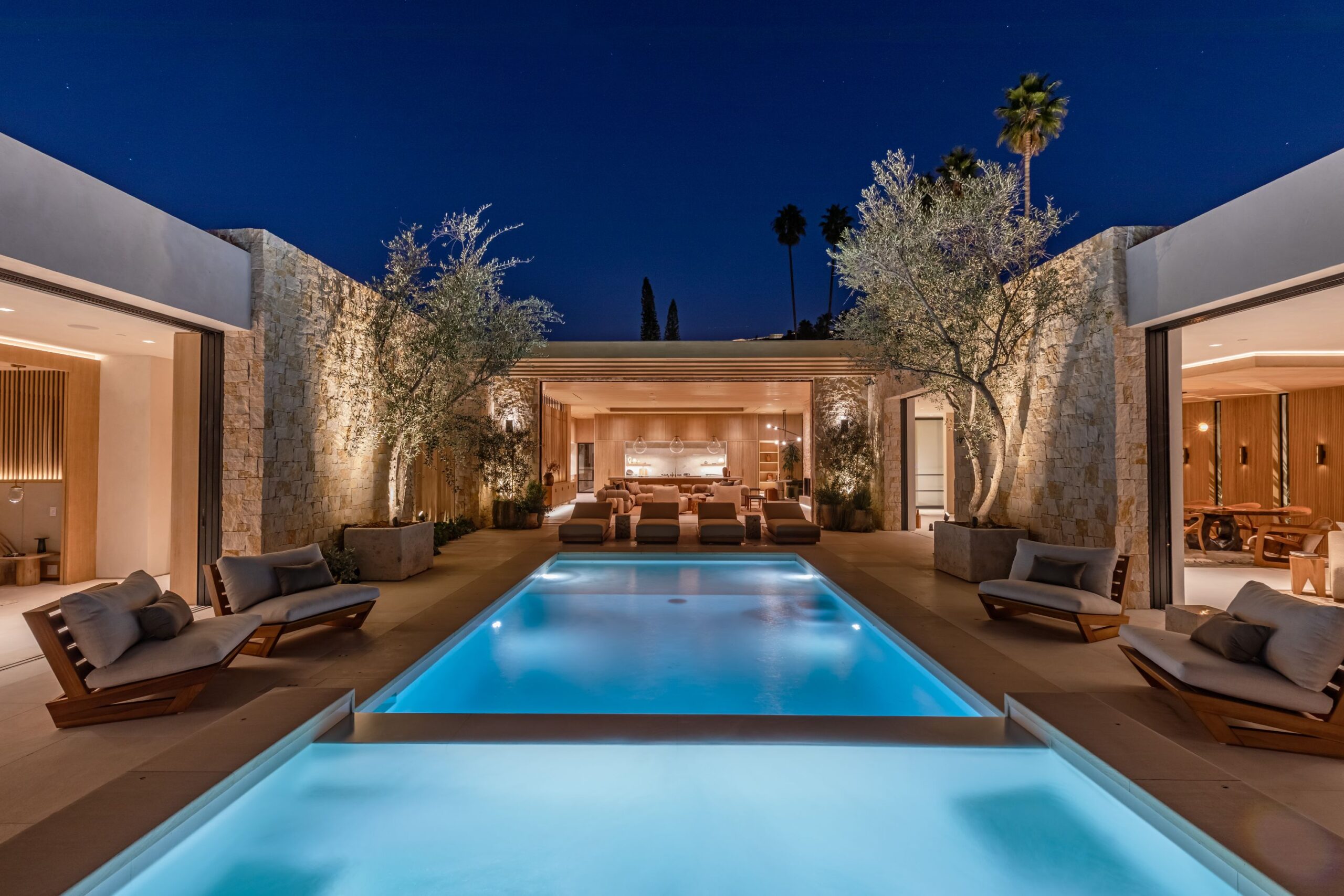 Experience timeless elegance in the exclusive Trousdale neighborhood of Beverly Hills. This organic estate designed by renowned designer Charles Infante, weaves his experience in film to create a narrative fit for entertainment and curated for elevated living in every possible way. Spanning 10,000 square feet, this architectural masterpiece showcases rich natural tones with Portuguese limestone, Italian Navona travertine, white oak paneling and floors, organic custom plaster walls, and motorized custom steel windows. Sleek lines perfectly frame cinematic city-to-ocean views. Inside, the main living spaces are open and airy, with walls of glass that fully pocket to create a seamless indoor/outdoor flow to the pool, spa, and patio. The expansive living room, dining area, and both the main and chef's kitchens are designed for grand scale living and entertaining. Four ensuite bedrooms offer refined comfort, in addition to a spacious, tranquil primary suite with motorized walls of glass, panoramic city views, and a spa-style bath. Luxurious amenities include a sleek gym with sauna, a temperature-controlled wine display, and an epic entertainment lounge with a sunken conversation pit, full bar, and state-of-the-art theater. The fully finished showcase garage features a car turntable; perfect for showcasing your collection. This is your moment to live above it all, in a home that sets the new standard for Trousdale living.