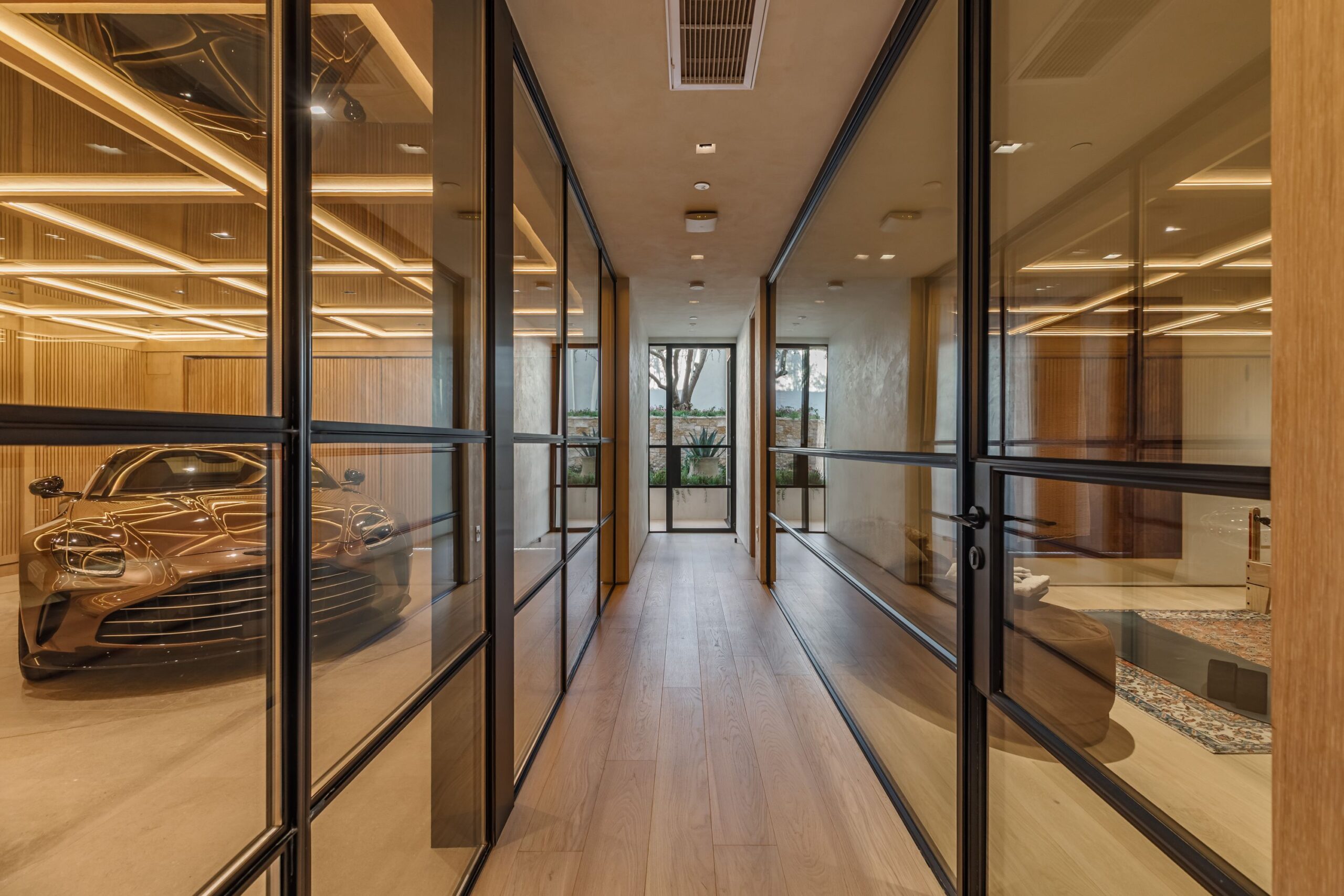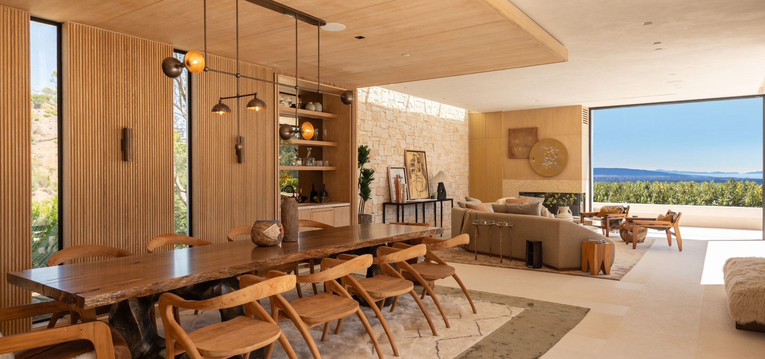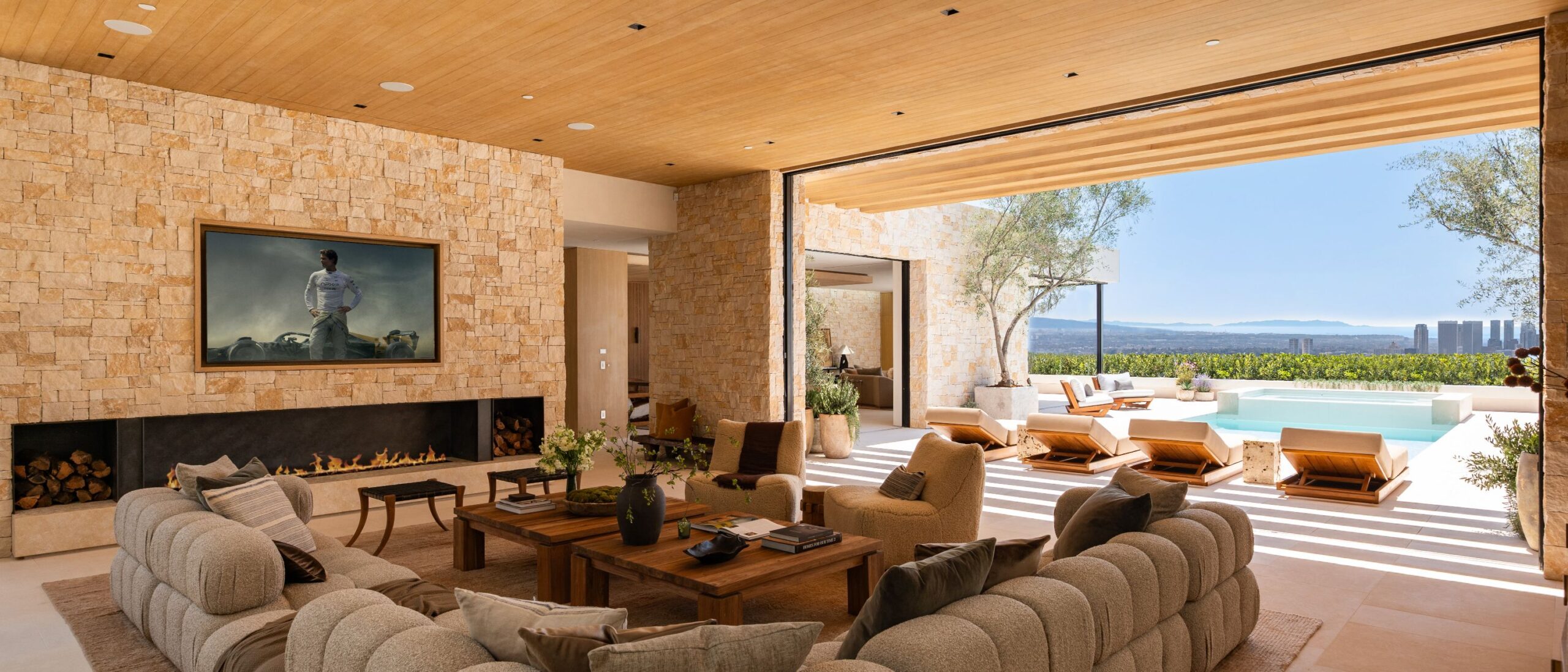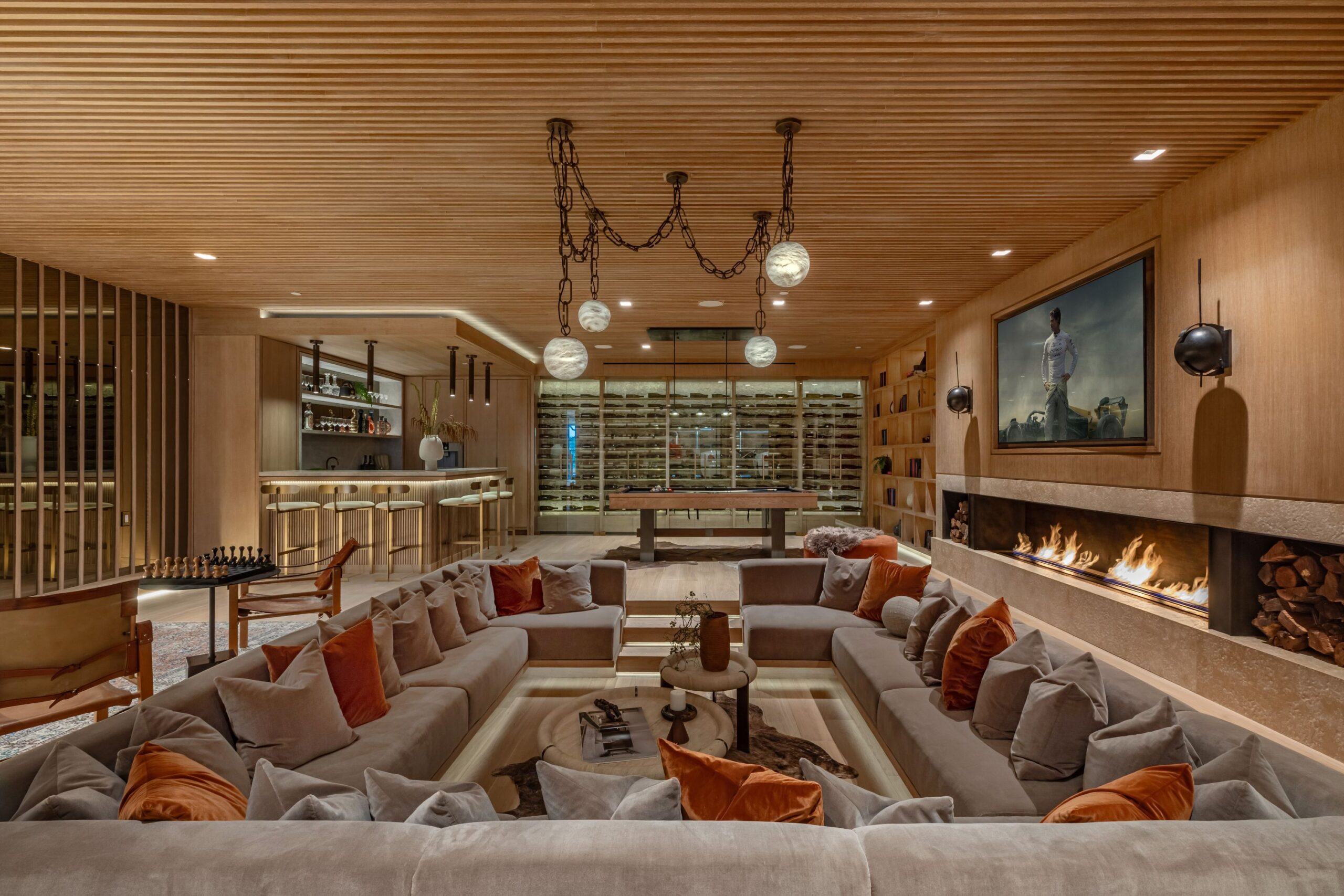Experience timeless elegance in the exclusive Trousdale neighborhood of Beverly Hills. This organic estate designed by renowned designer Charles Infante, weaves his experience in film to create a narrative fit for entertainment and curated for elevated living in every possible way. Spanning 10,000 square feet, this architectural masterpiece showcases rich natural tones with Portuguese limestone, Italian Navona travertine, white oak paneling and floors, organic custom plaster walls, and motorized custom steel windows. Sleek lines perfectly frame cinematic city-to-ocean views. Inside, the main living spaces are open and airy, with walls of glass that fully pocket to create a seamless indoor/outdoor flow to the pool, spa, and patio. The expansive living room, dining area, and both the main and chef's kitchens are designed for grand scale living and entertaining. Four ensuite bedrooms offer refined comfort, in addition to a spacious, tranquil primary suite with motorized walls of glass, panoramic city views, and a spa-style bath. Luxurious amenities include a sleek gym with sauna, a temperature-controlled wine display, and an epic entertainment lounge with a sunken conversation pit, full bar, and state-of-the-art theater. The fully finished showcase garage features a car turntable; perfect for showcasing your collection. This is your moment to live above it all, in a home that sets the new standard for Trousdale living.