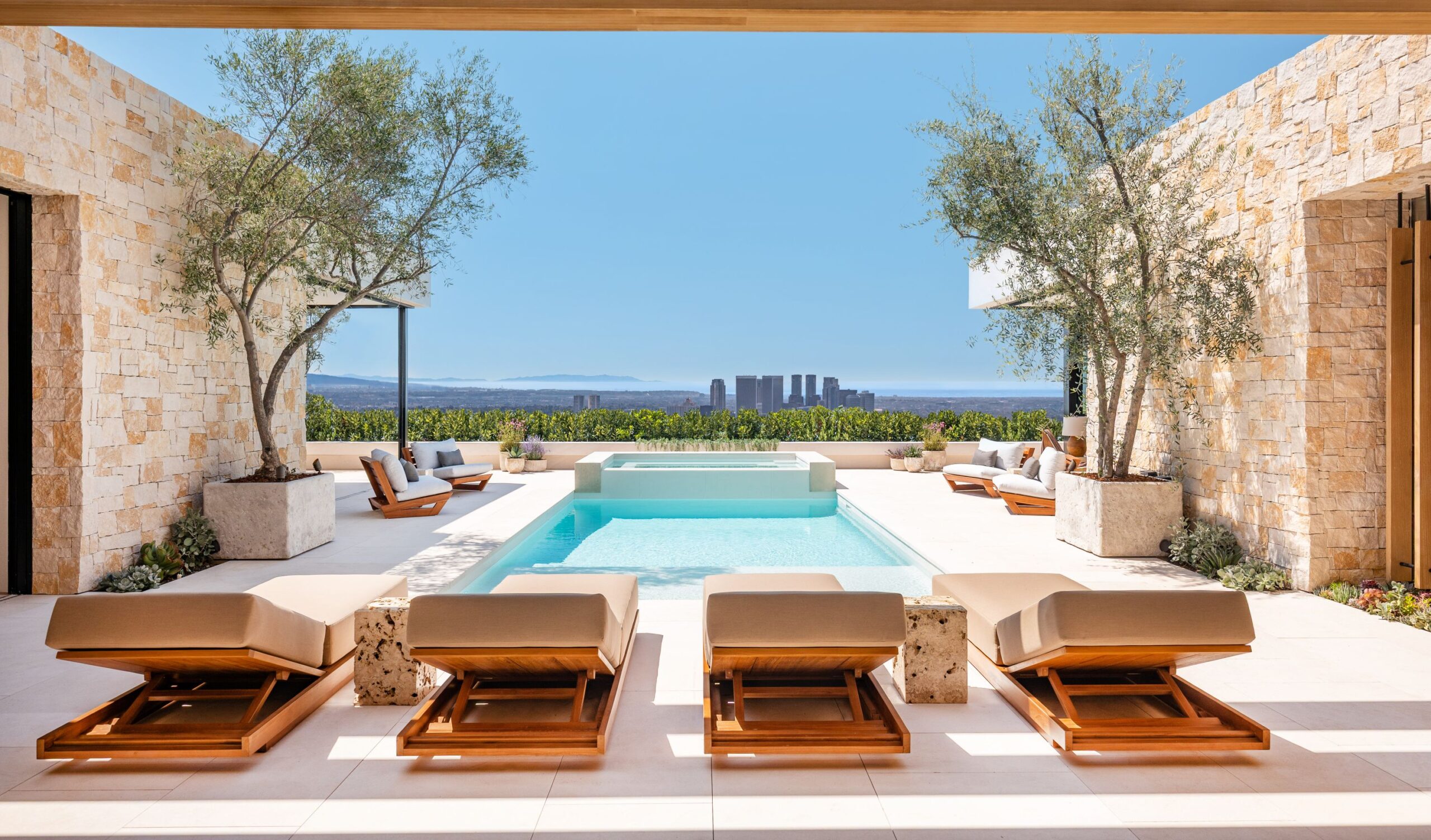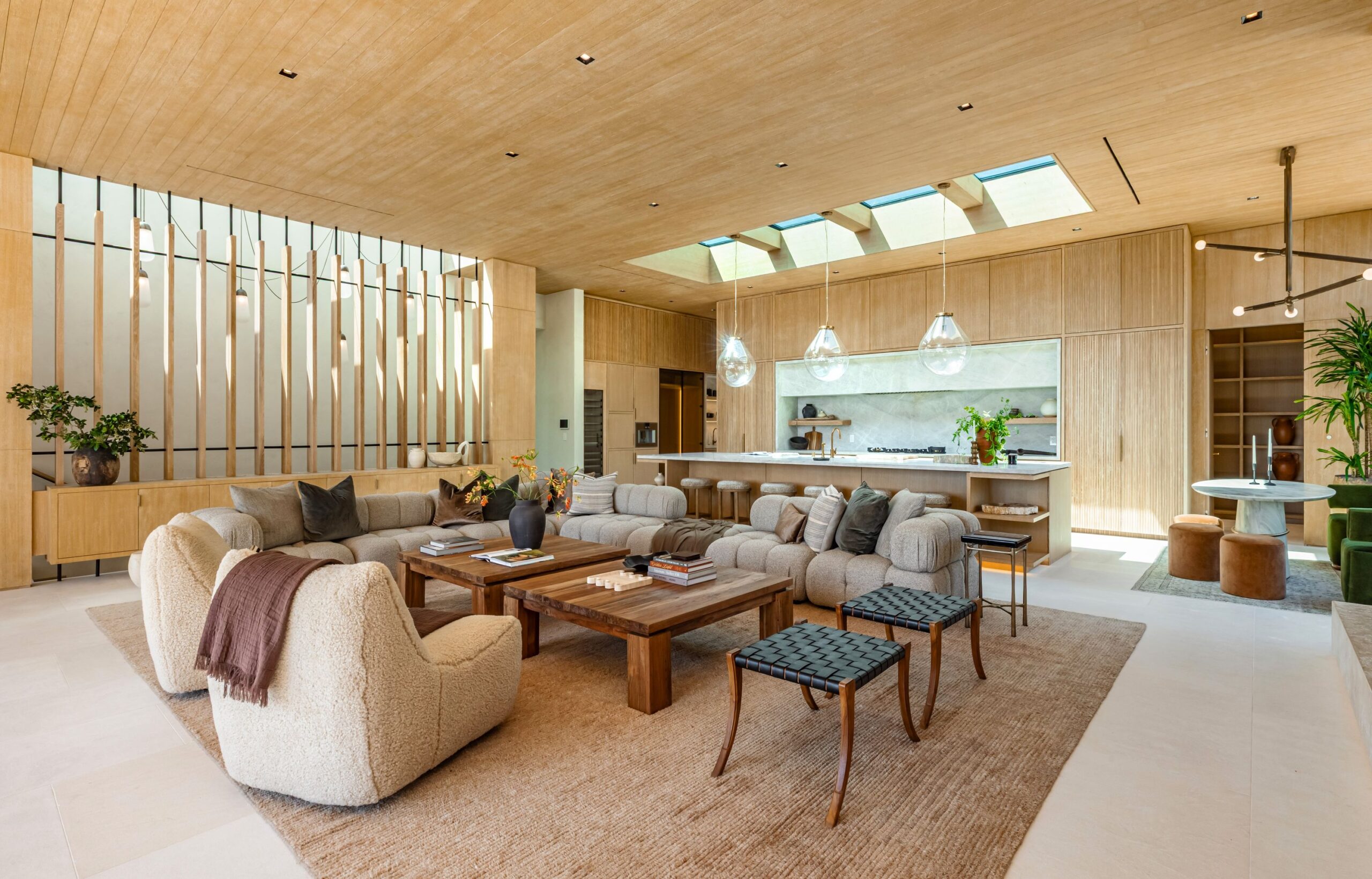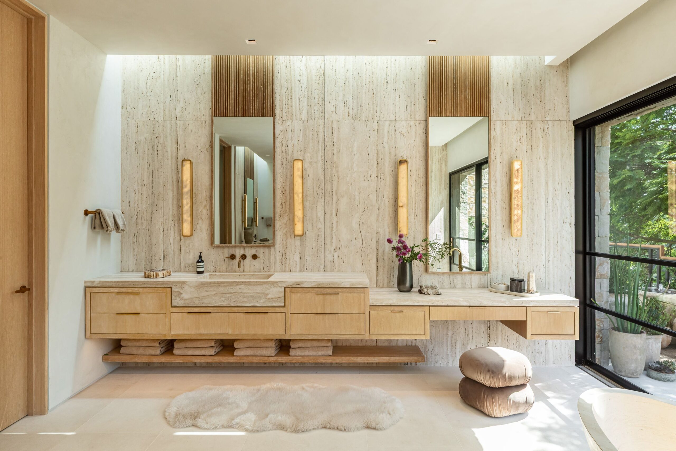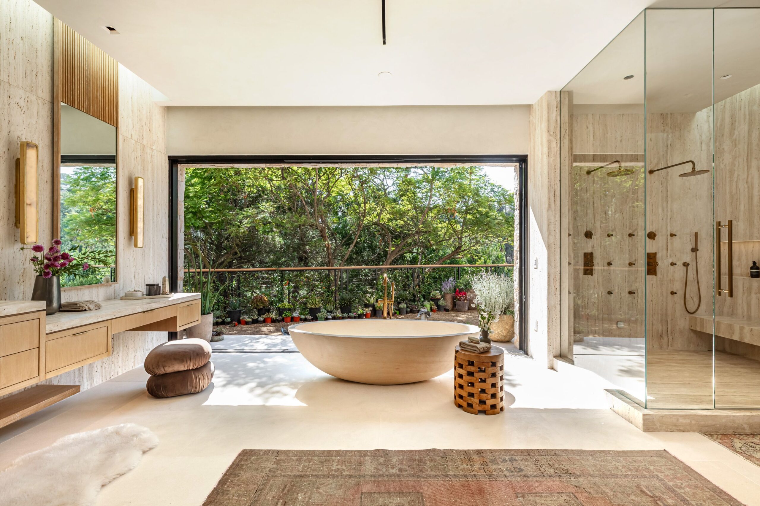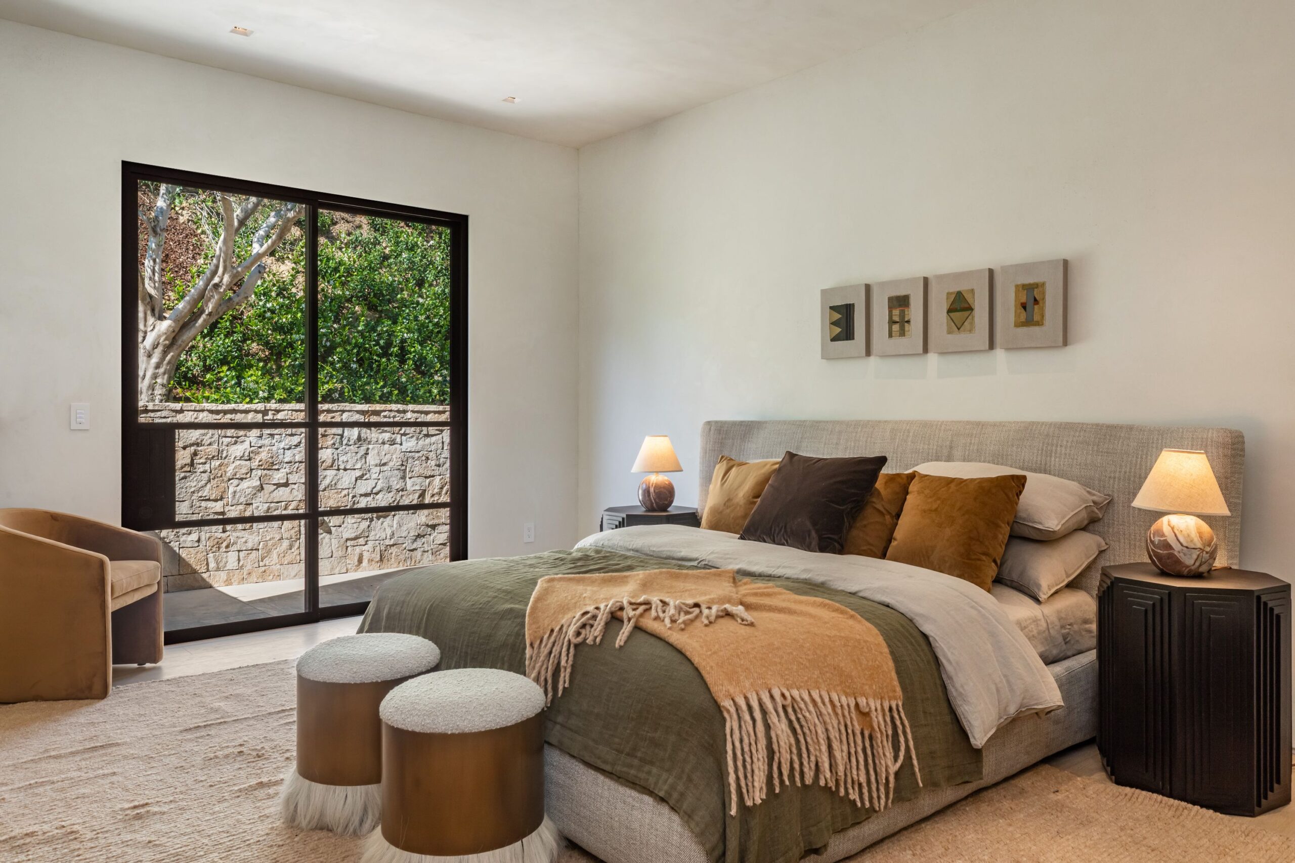 Experience timeless elegance in the exclusive Trousdale neighborhood of Beverly Hills. This organic estate designed by renowned designer Charles Infante, weaves his experience in film to create a narrative fit for entertainment and curated for elevated living in every possible way. Spanning 10,000 square feet, this architectural masterpiece showcases rich natural tones with Portuguese limestone, Italian Navona travertine, white oak paneling and floors, organic custom plaster walls, and motorized custom steel windows. Sleek lines perfectly frame cinematic city-to-ocean views. Inside, the main living spaces are open and airy, with walls of glass that fully pocket to create a seamless indoor/outdoor flow to the pool, spa, and patio. The expansive living room, dining area, and both the main and chef's kitchens are designed for grand scale living and entertaining. Four ensuite bedrooms offer refined comfort, in addition to a spacious, tranquil primary suite with motorized walls of glass, panoramic city views, and a spa-style bath. Luxurious amenities include a sleek gym with sauna, a temperature-controlled wine display, and an epic entertainment lounge with a sunken conversation pit, full bar, and state-of-the-art theater. The fully finished showcase garage features a car turntable; perfect for showcasing your collection. This is your moment to live above it all, in a home that sets the new standard for Trousdale living.